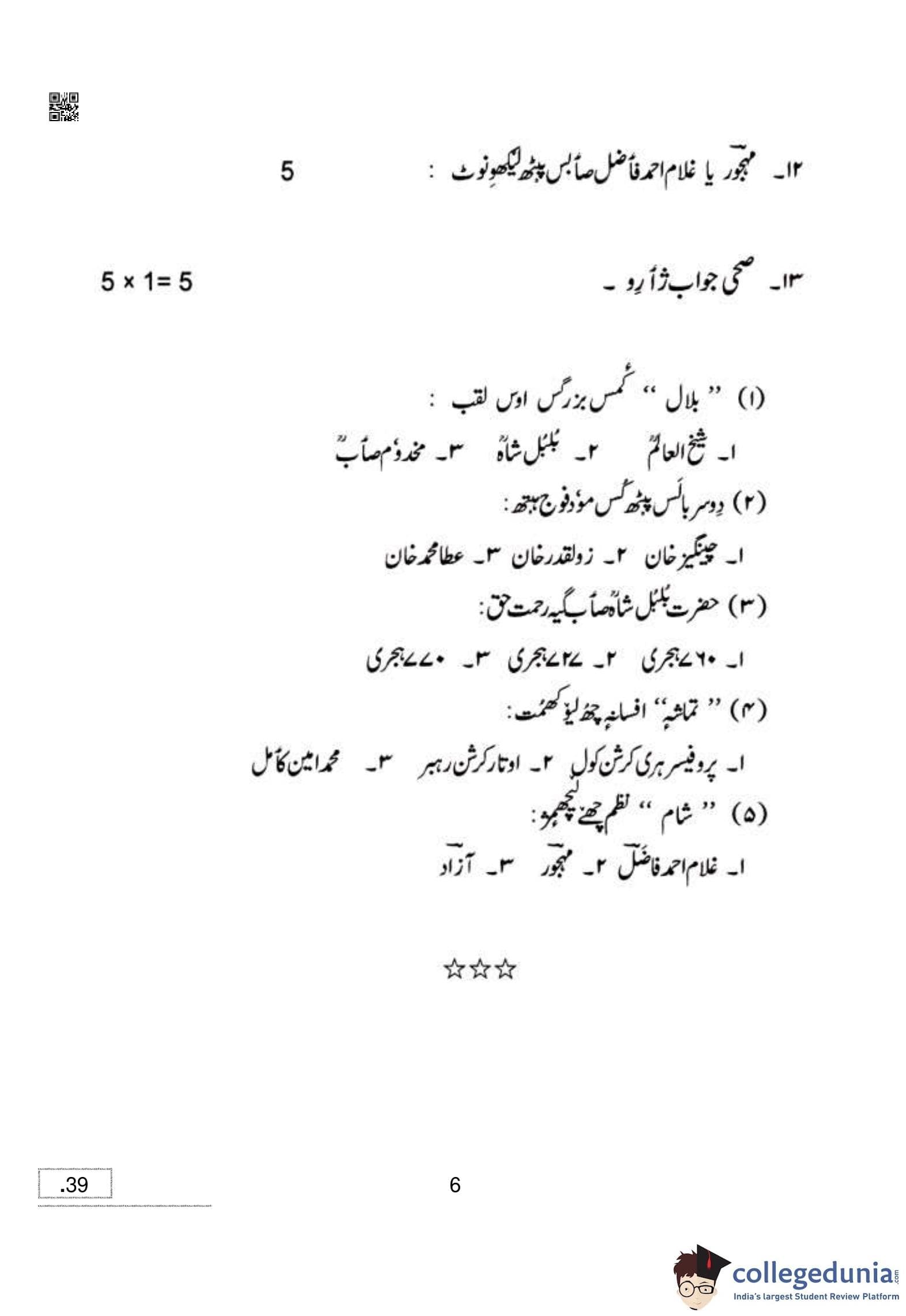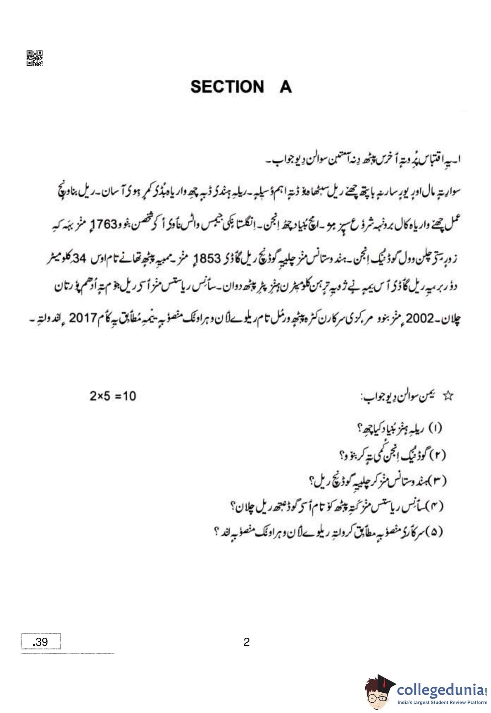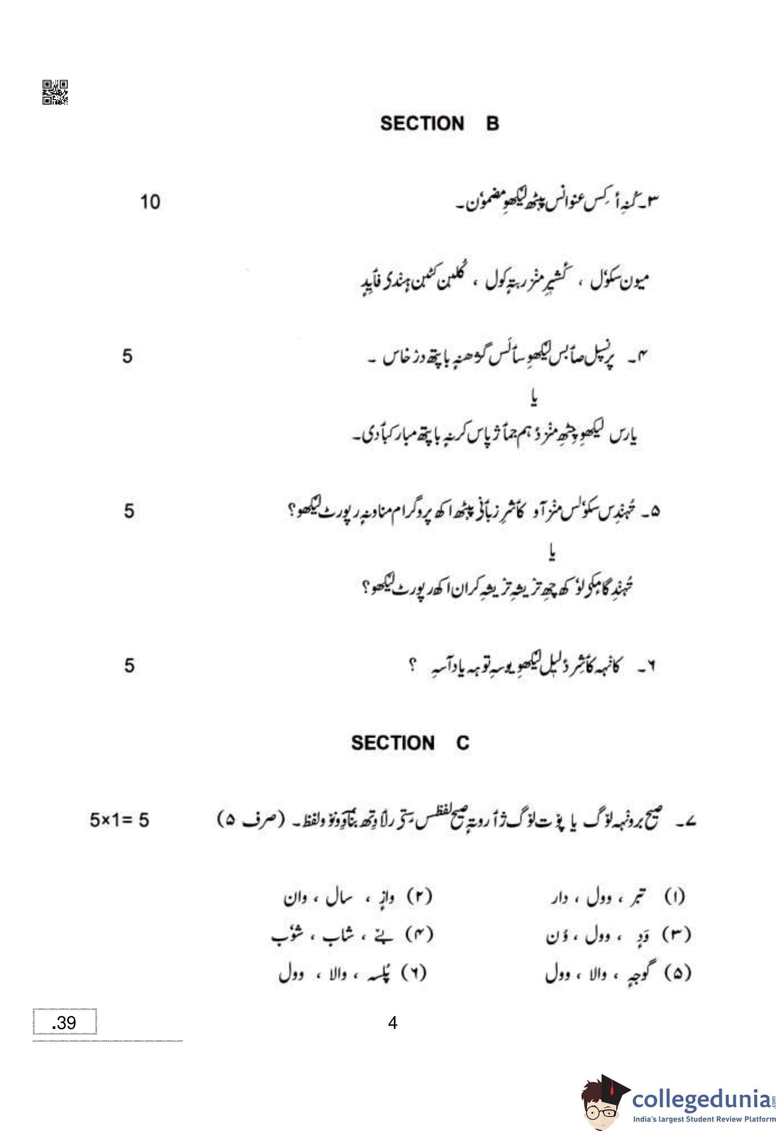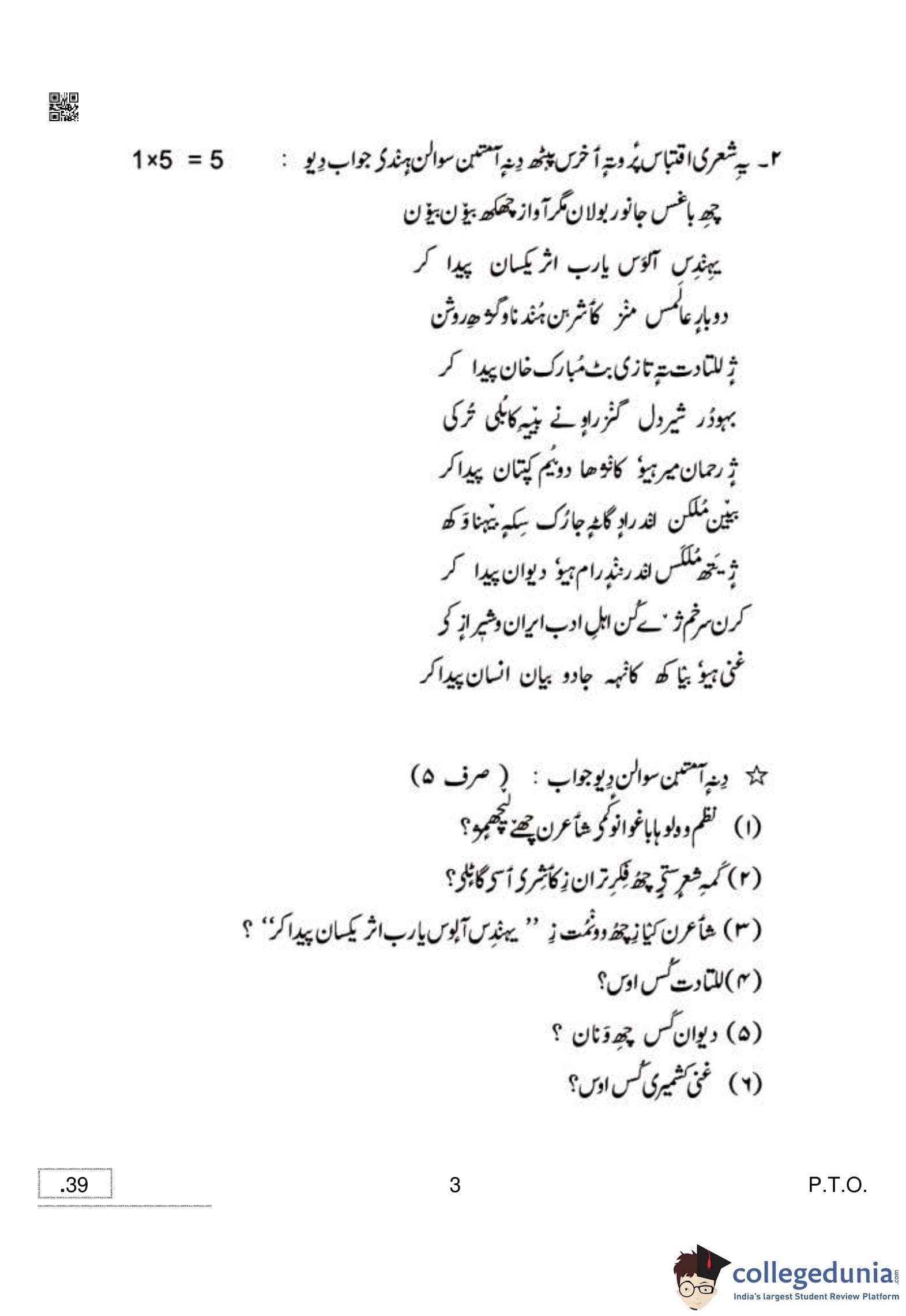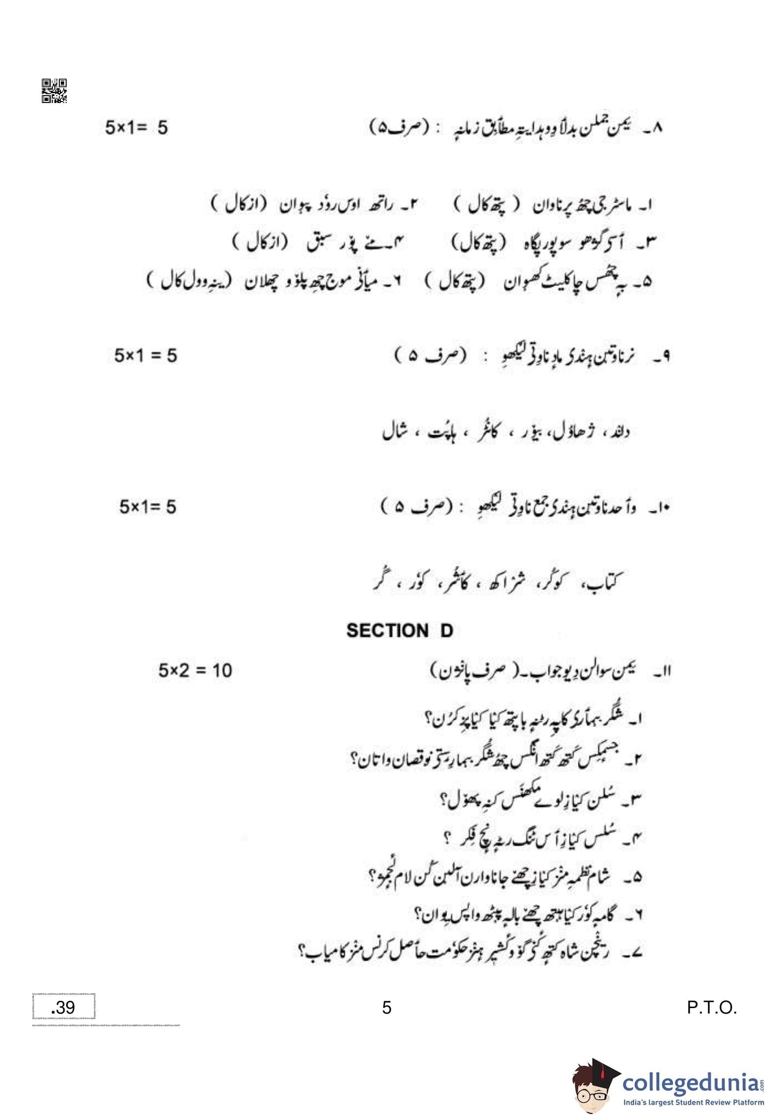 CBSE Class 10 Kashmiri Question Paper 2020 with Answer Key (February 24)