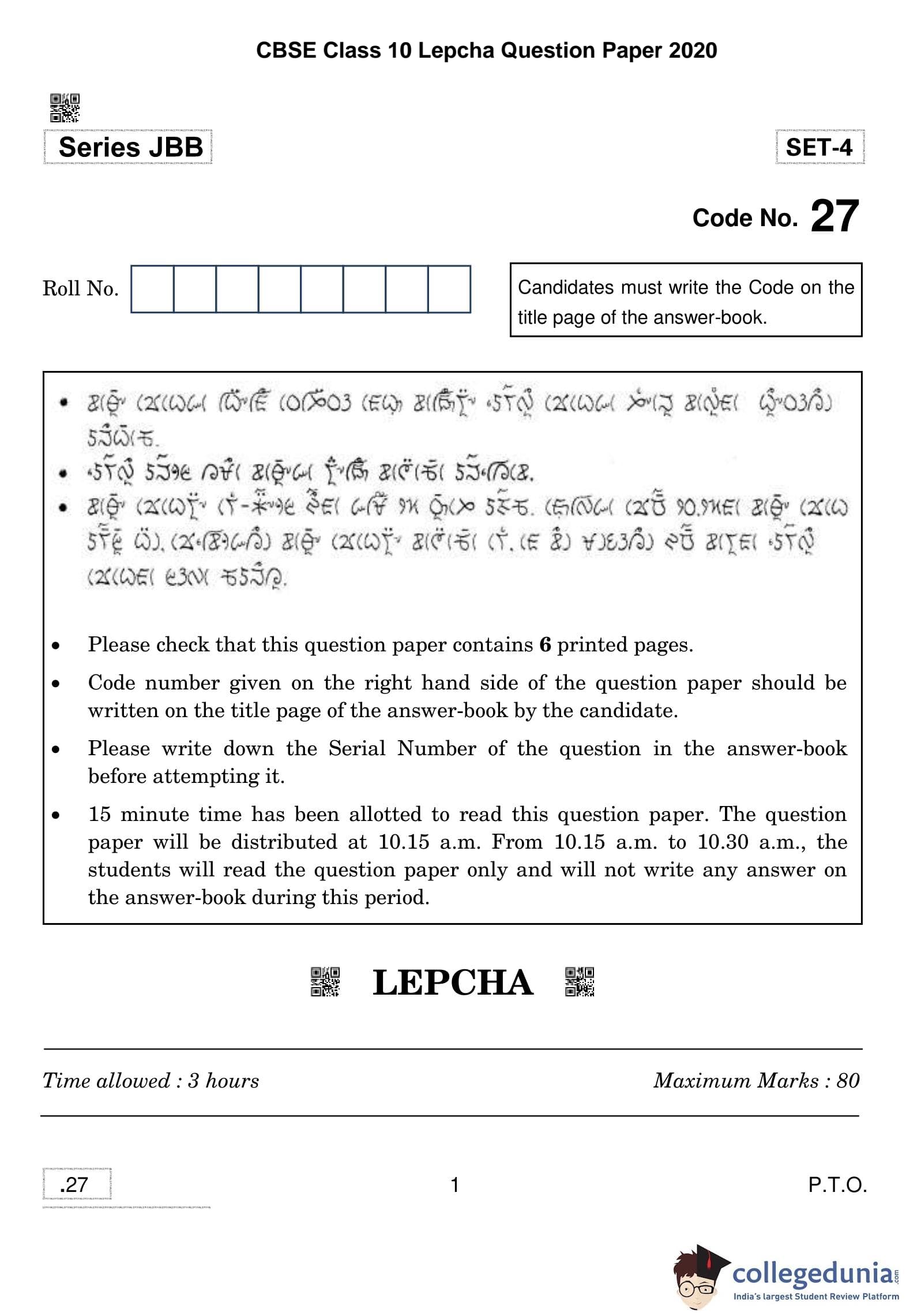| CBSE Class 10 Lepcha Question Paper 2020 PDF | CBSE Class 10 Lepcha Answer Key 2020 PDF |
