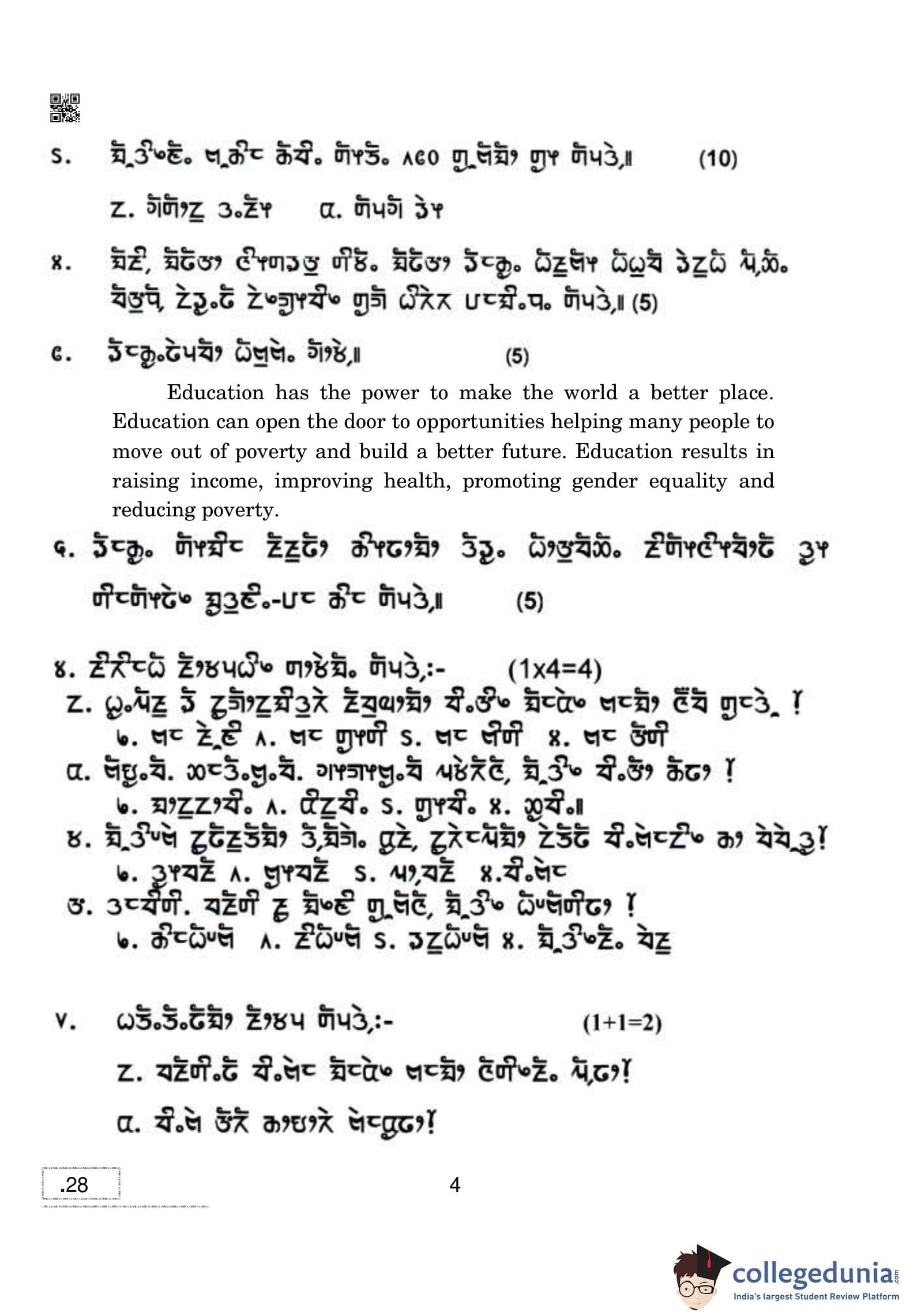 CBSE Class 10 Limboo Question Paper 2020 with Answer Key Set 4 is available for download. The exam was conducted by the Central Board of Secondary Education on February 24, 2020 in the Morning Session 10:30 AM to 1:30 PM. The medium of paper was Limboo. The question paper comprised a total of 19 questions.
