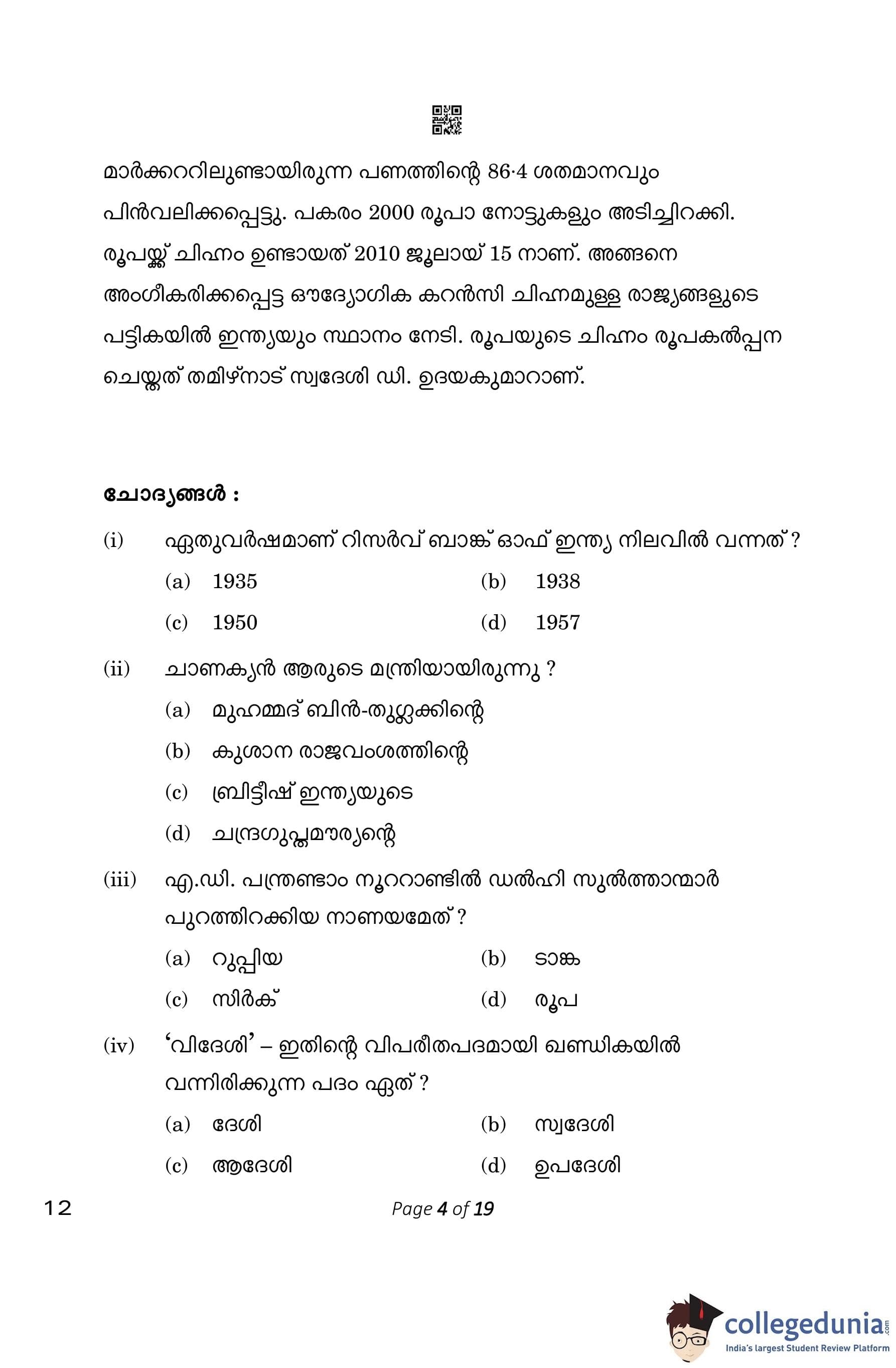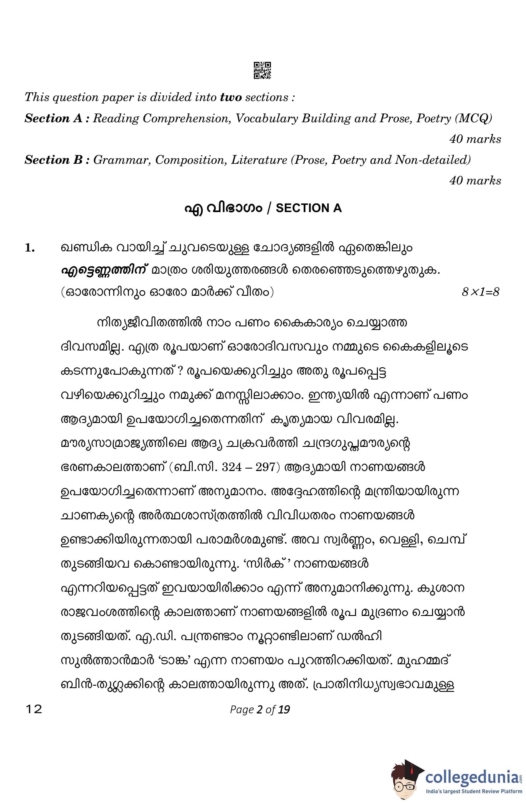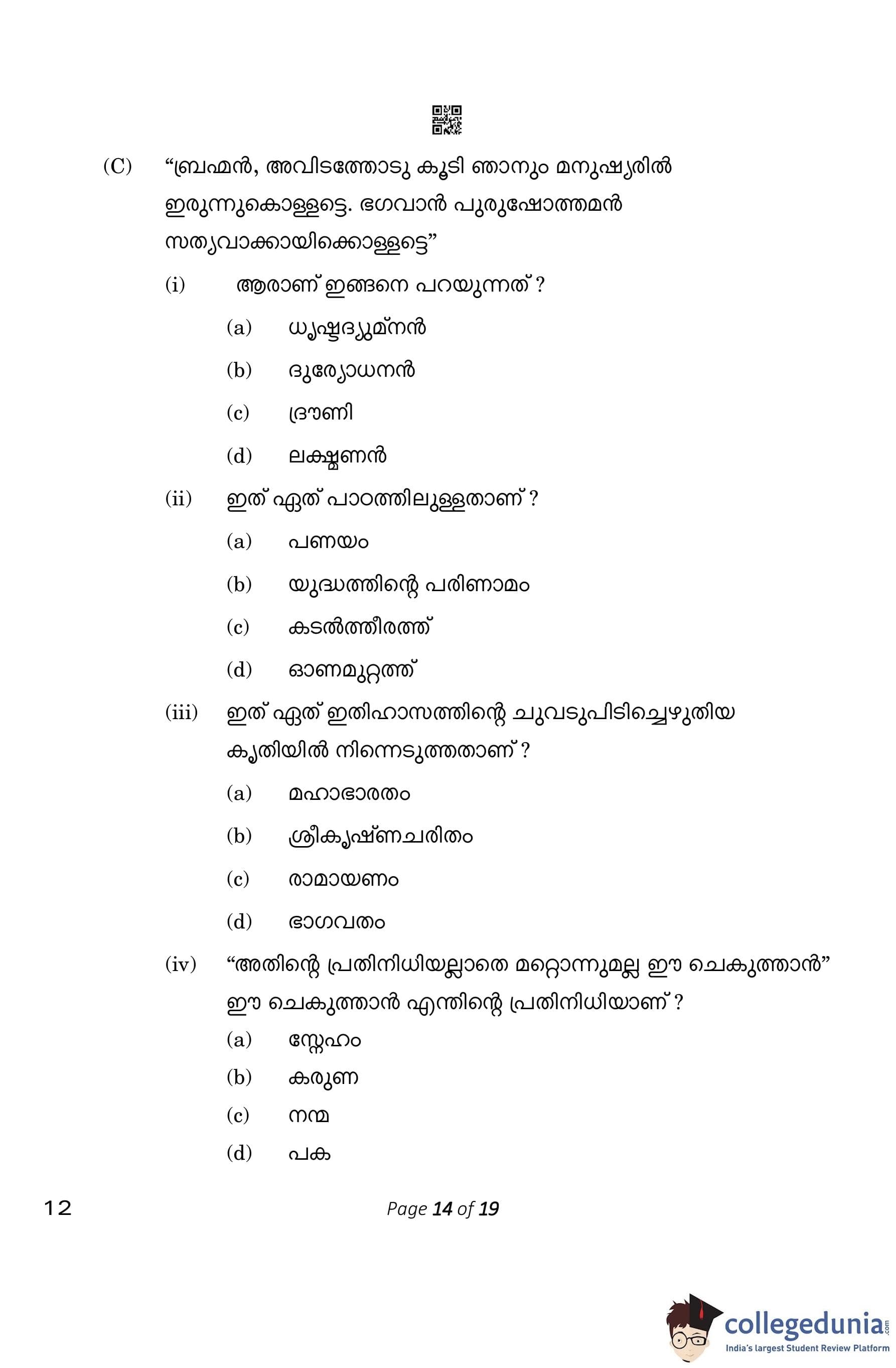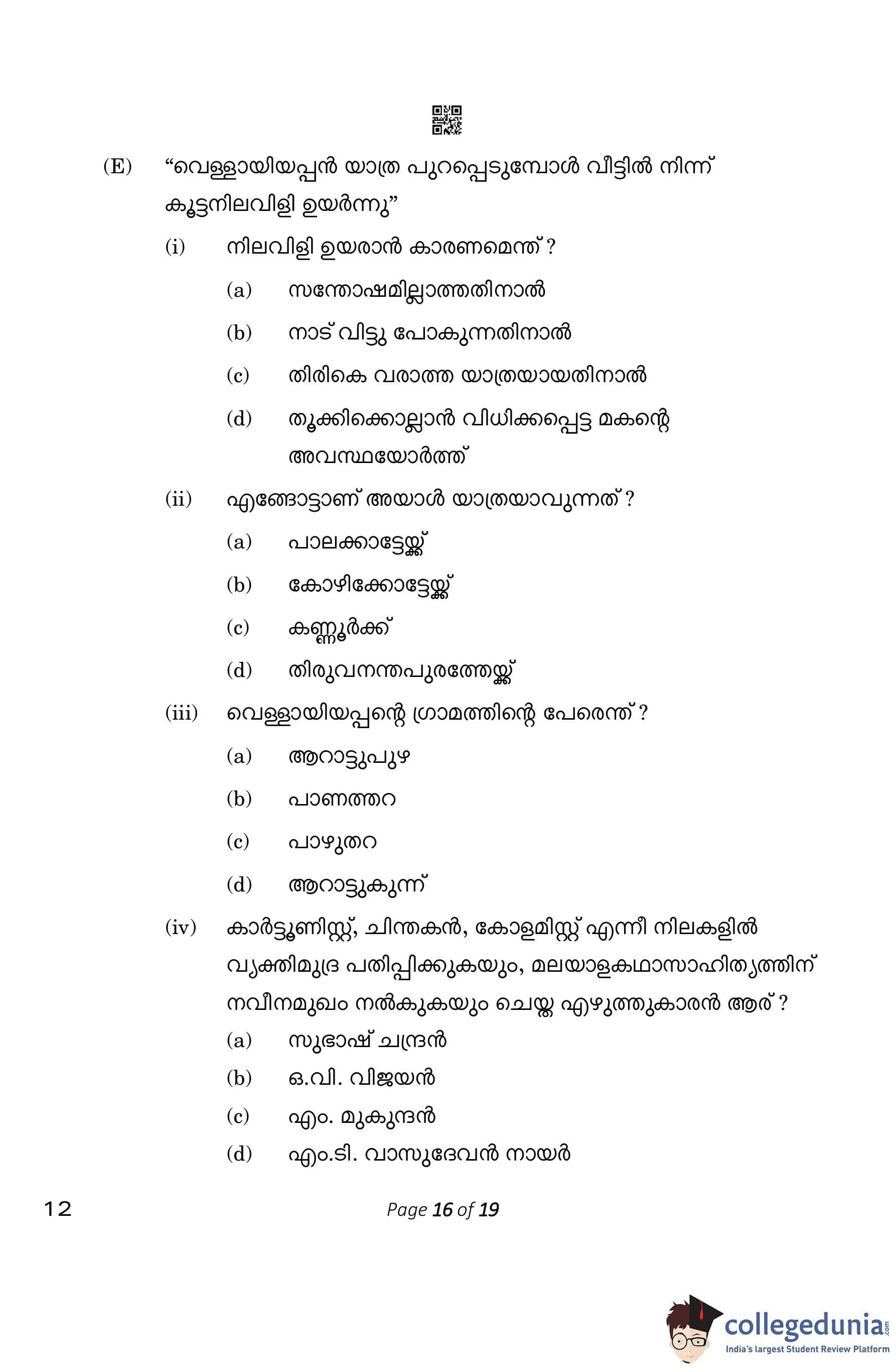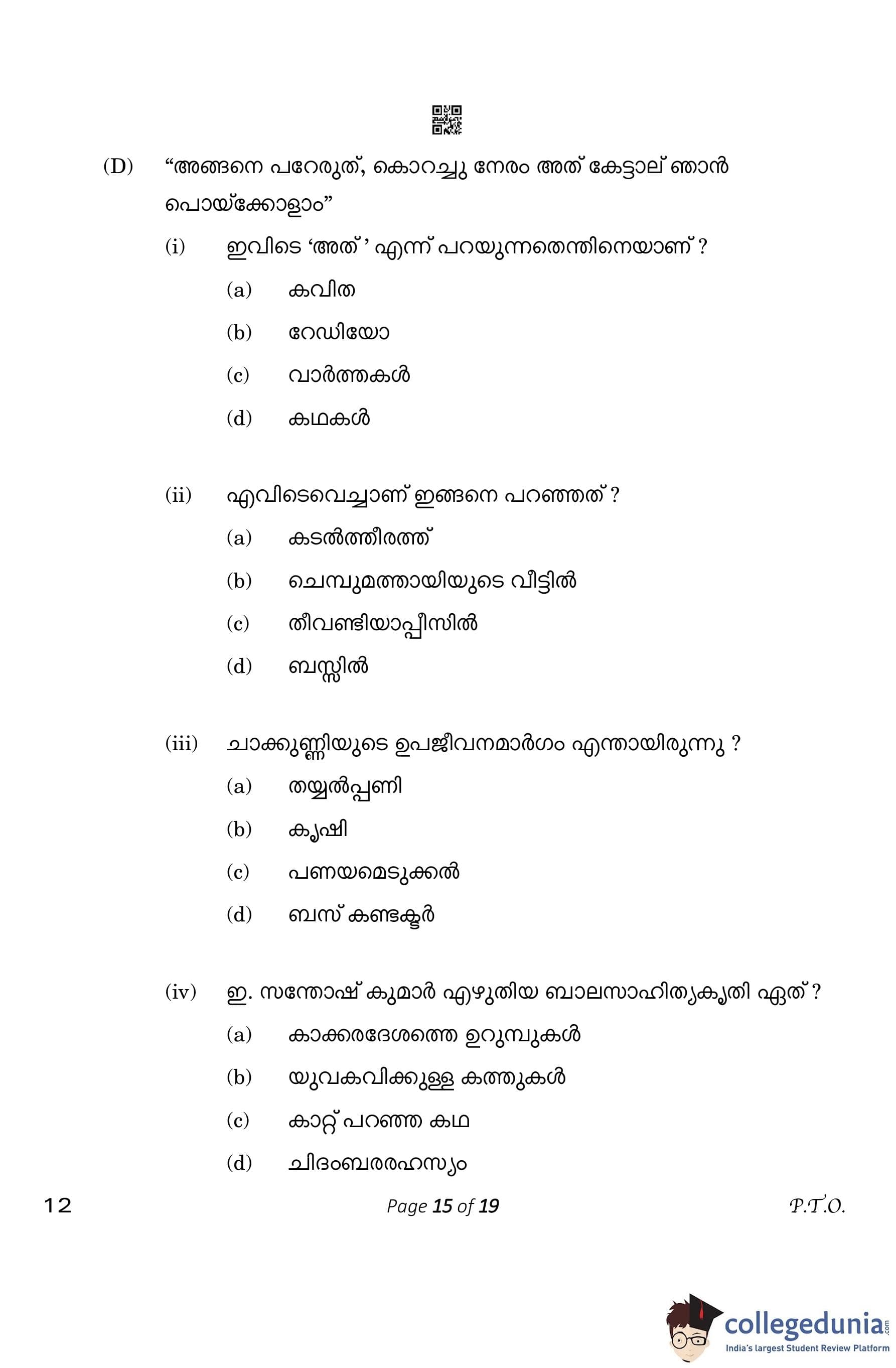 CBSE Class 10 Malayalam Question Paper 2023 (Set 4- 12) with Answer Key pdf is available for download here. The exam was conducted by Central Board of Secondary Education on March 1, 2023. The question paper comprised a total of 7 questions divided among 2 sections.