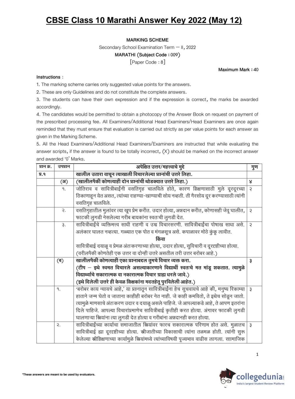 | CBSE Class 10 Marathi Question Paper 2022 PDF | CBSE Class 10 Marathi Answer Key 2022 PDF | Detailed Solutions |