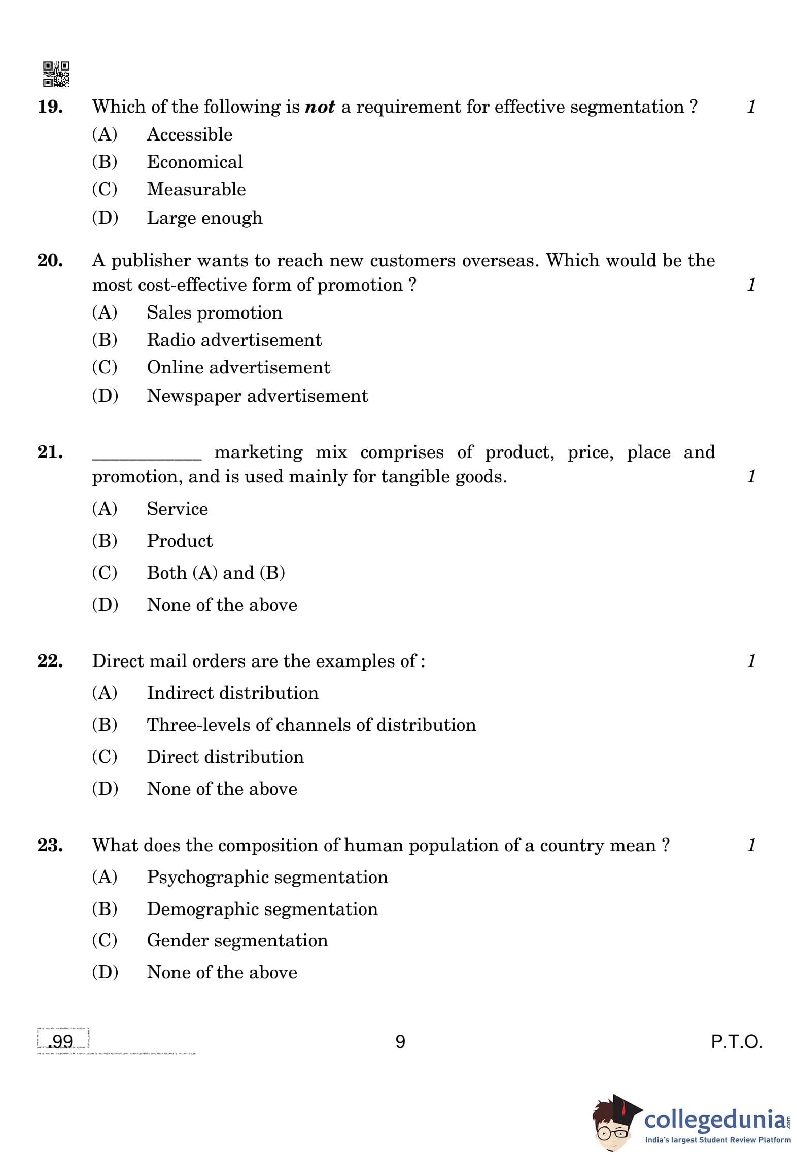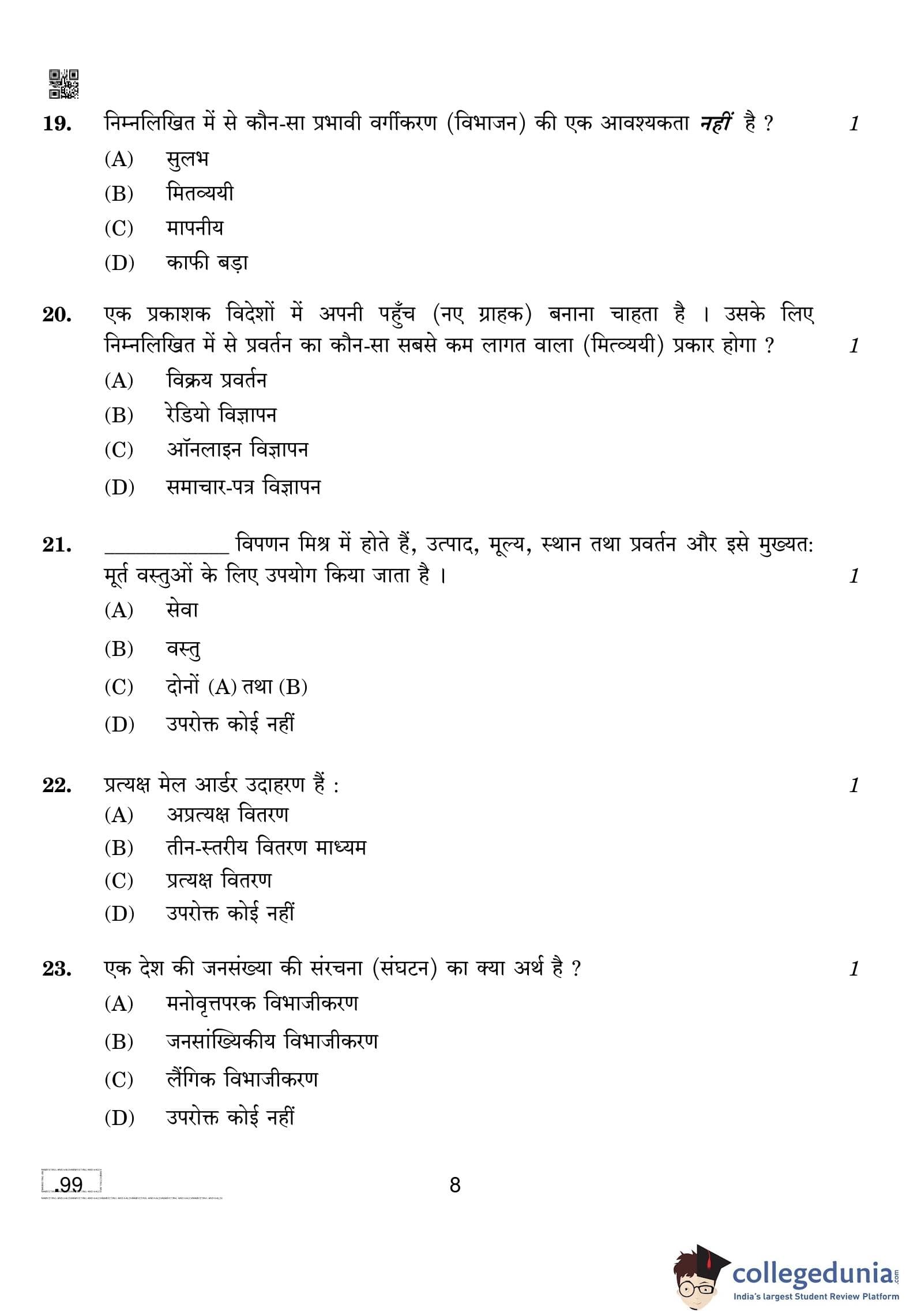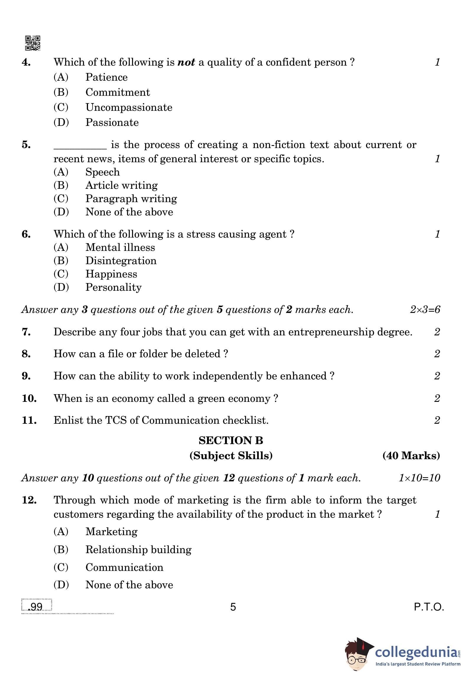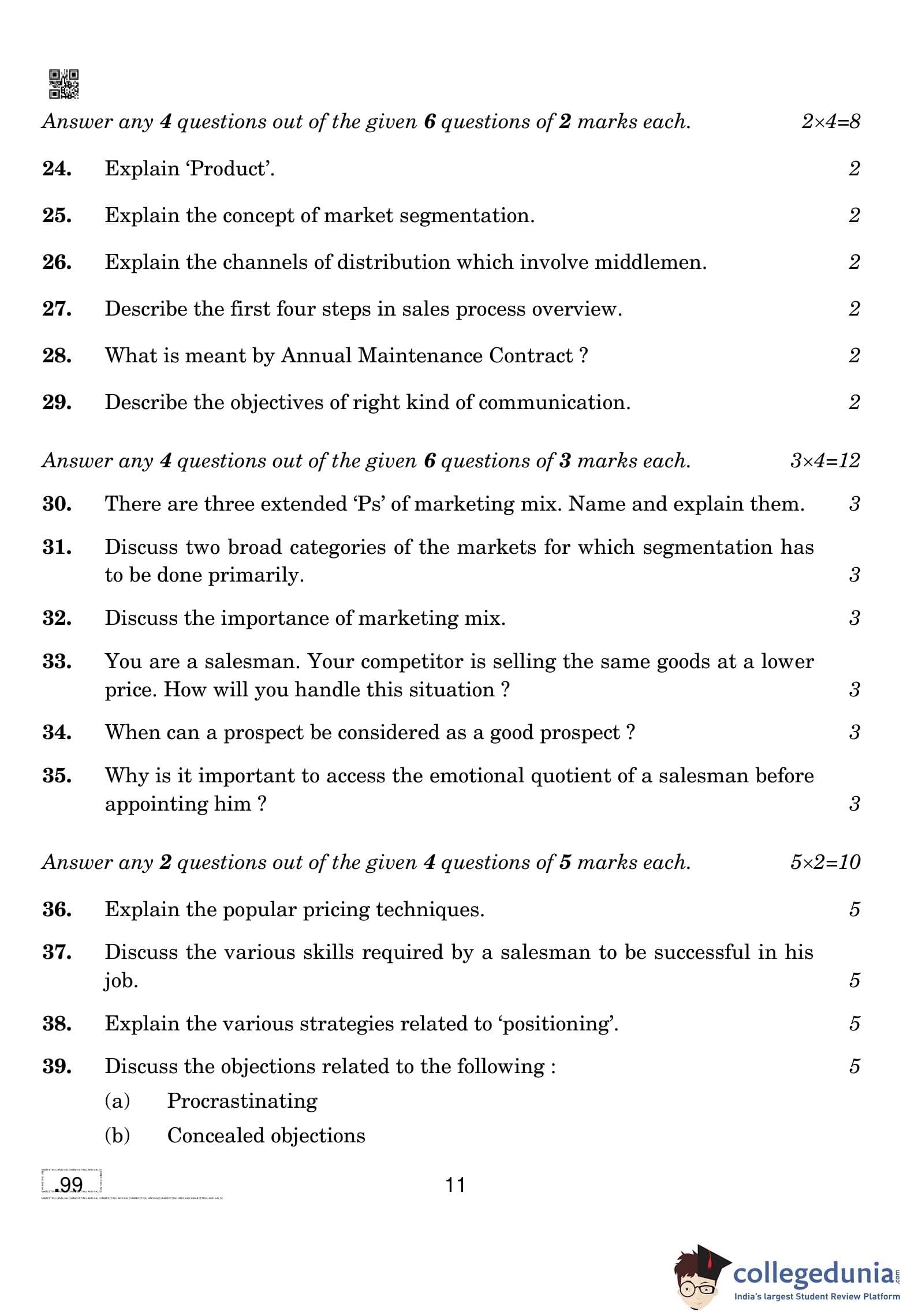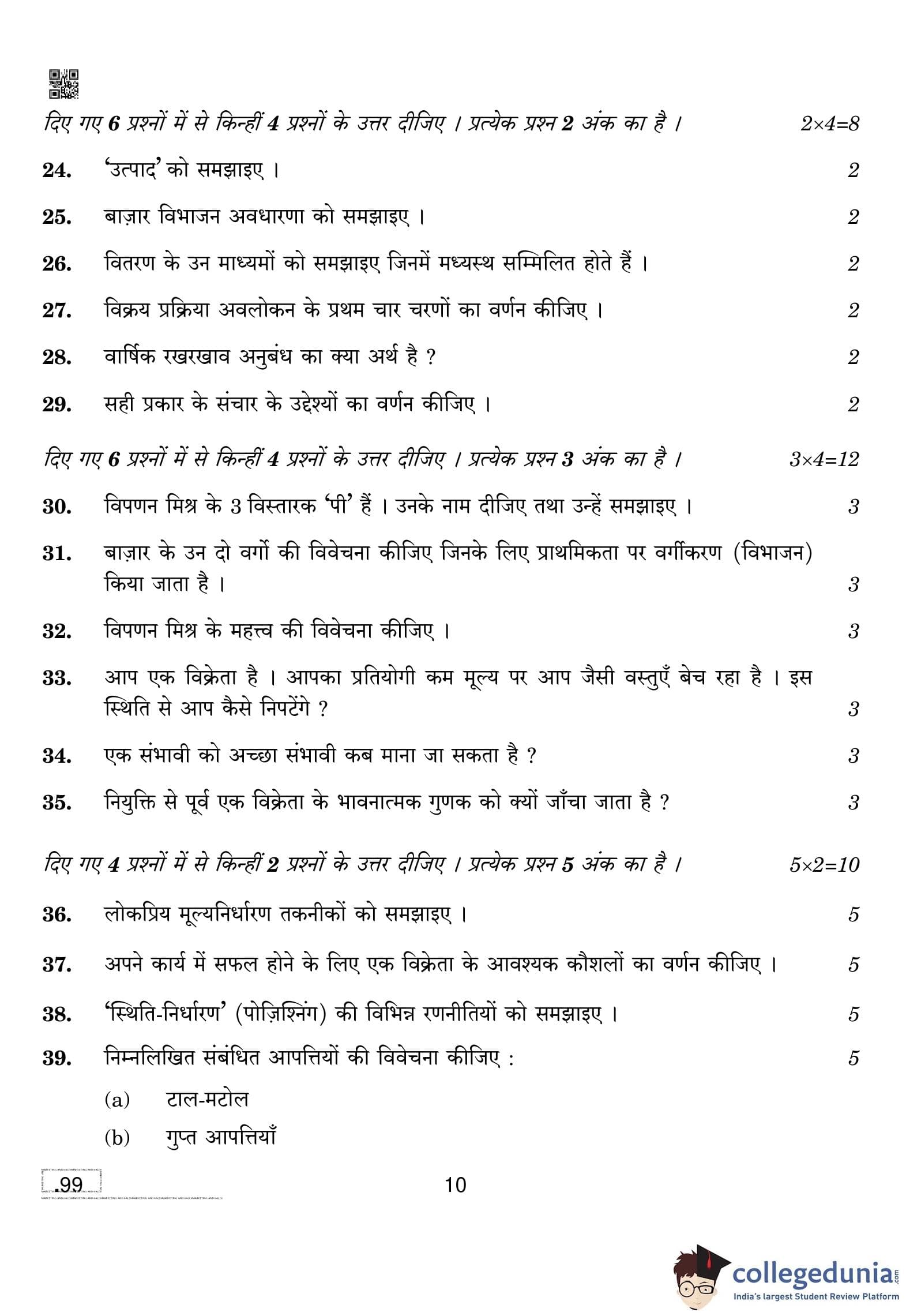 CBSE Class 10 Marketing And Sales Question Paper 2020 with Answer Key (February 20)