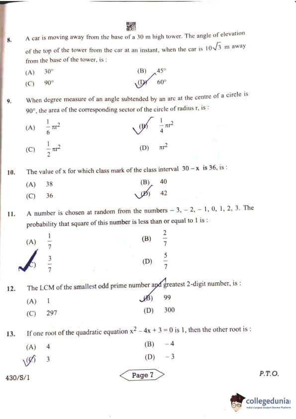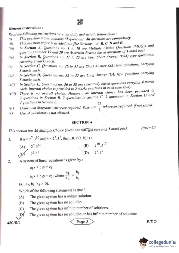 CBSE Class 10 Mathematics Basic Compartment Question Paper 2024 with Answer Key pdf (Set 1- 430/S/1) is available for download here. The exam conducted by Central Board of Secondary Education on July 19, 2024 in the Morning Session 10:30 AM to 1:30 PM. The question paper consists a total of 38 questions divided among 5 sections.