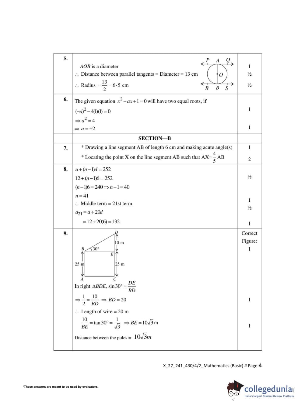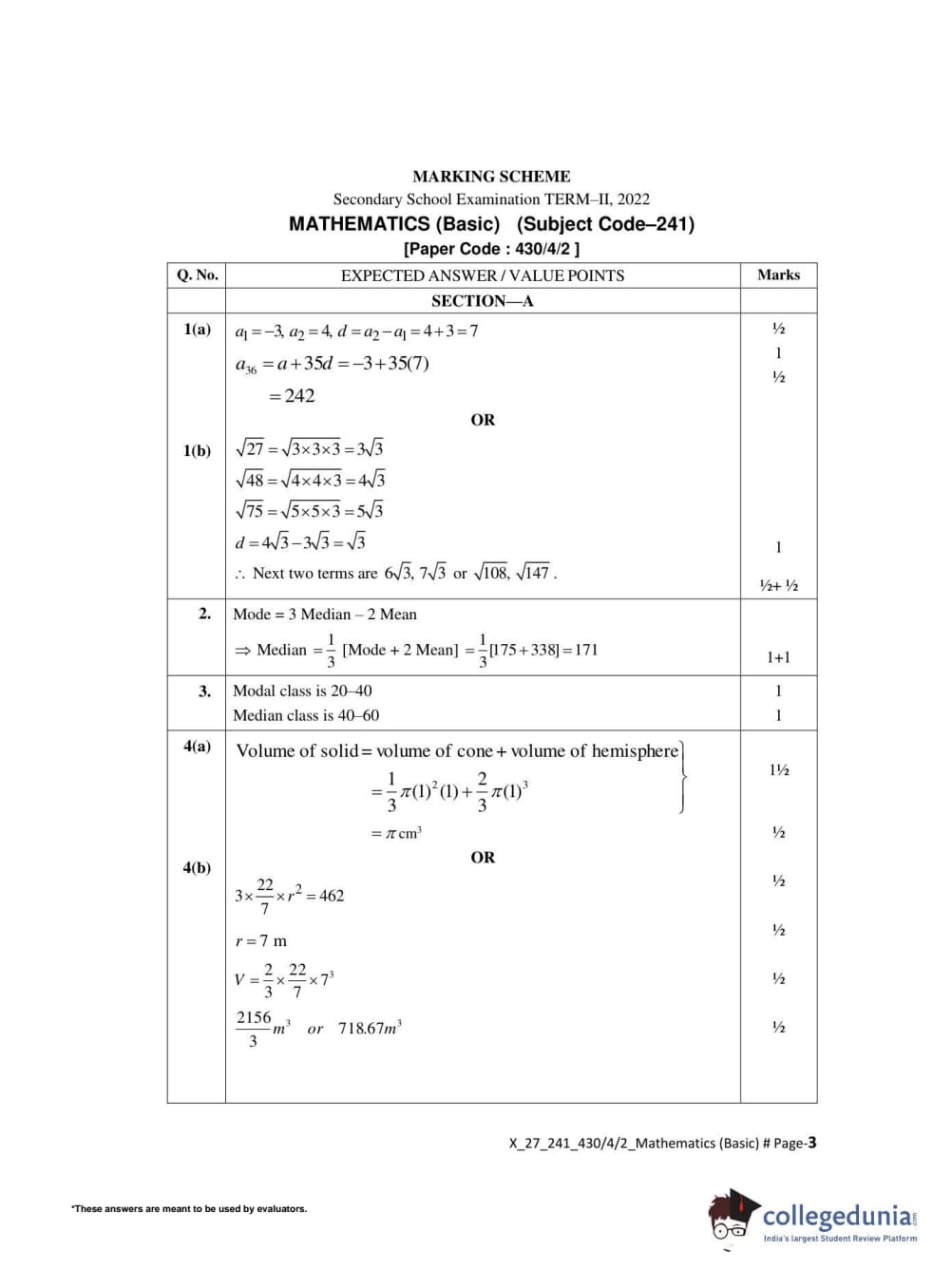 | CBSE Class 10 Mathematics Basic Question Paper 2022 PDF | CBSE Class 10 Mathematics Basic Answer Key 2022 PDF | Detailed Solutions |