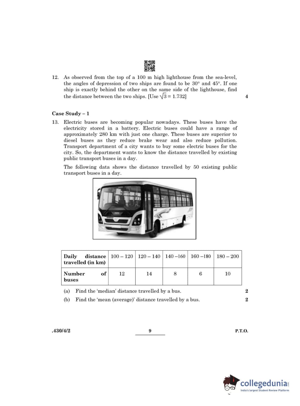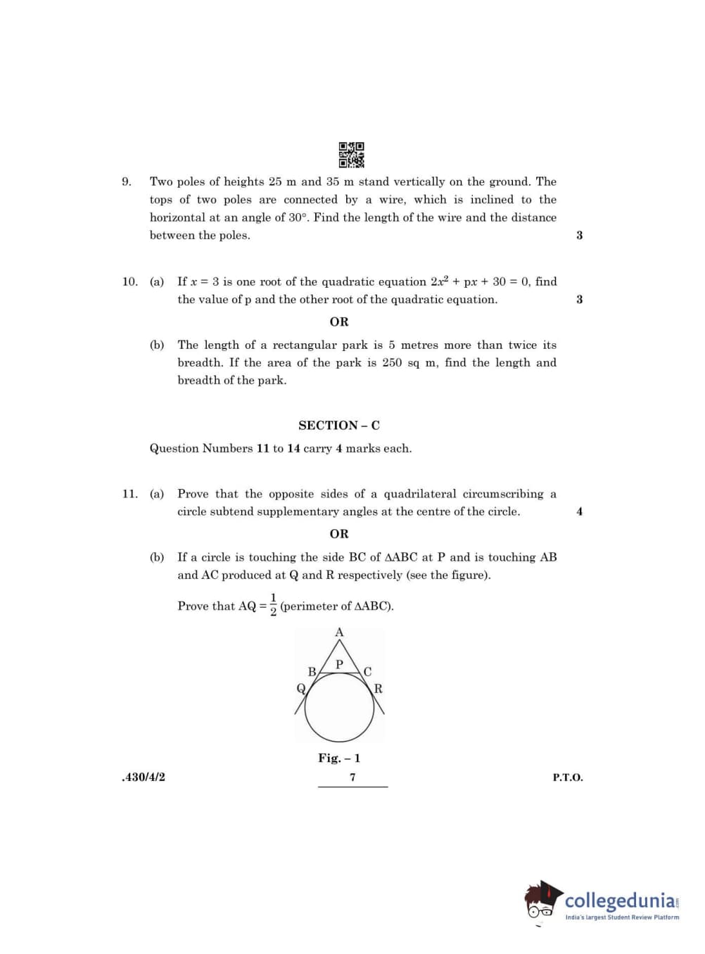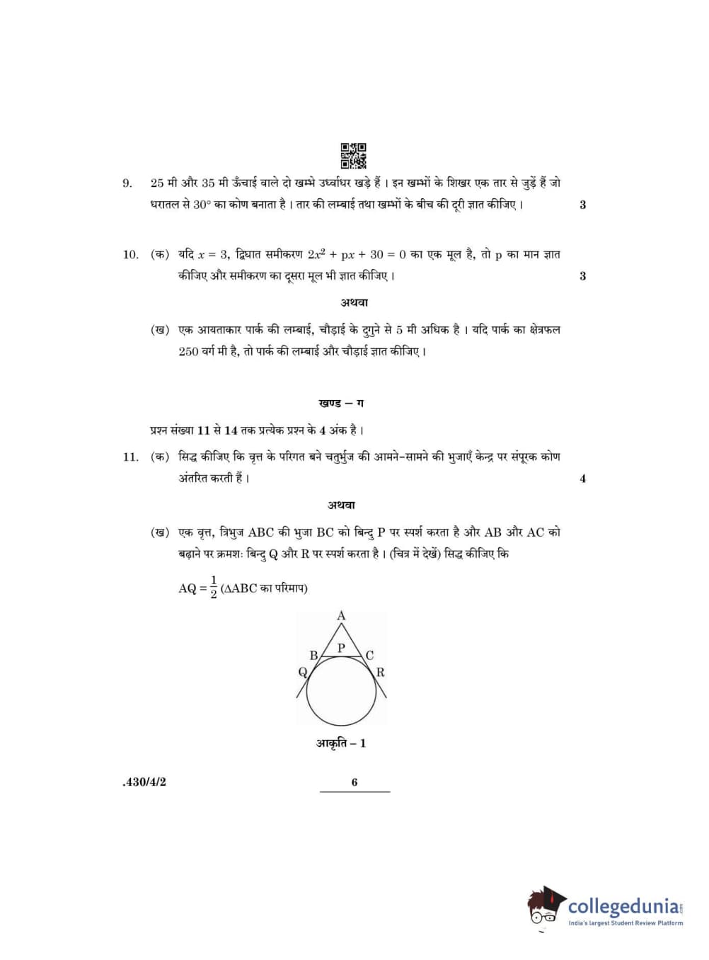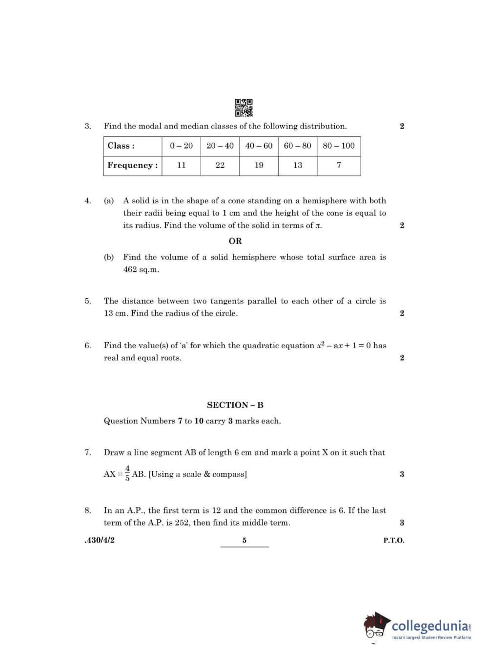 CBSE Class 10 Mathematics Basic Set 2 - 430/4/2 Question Paper 2022 with Answer Key (May 5)