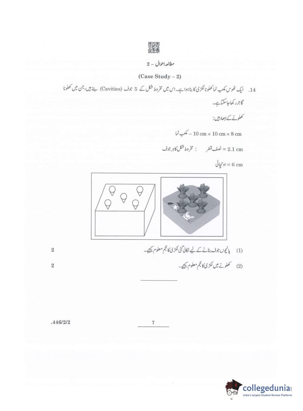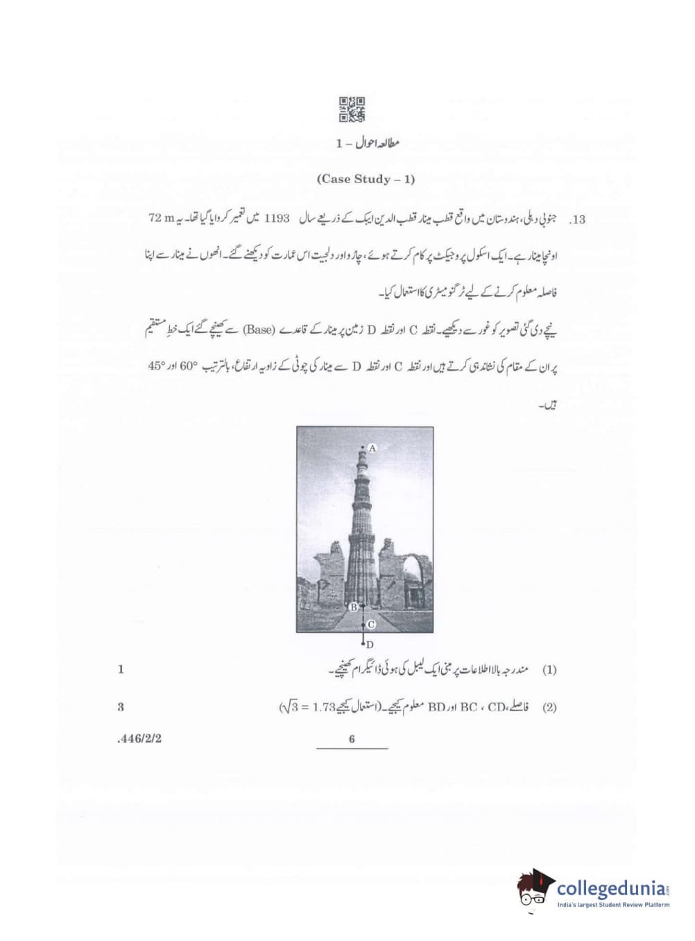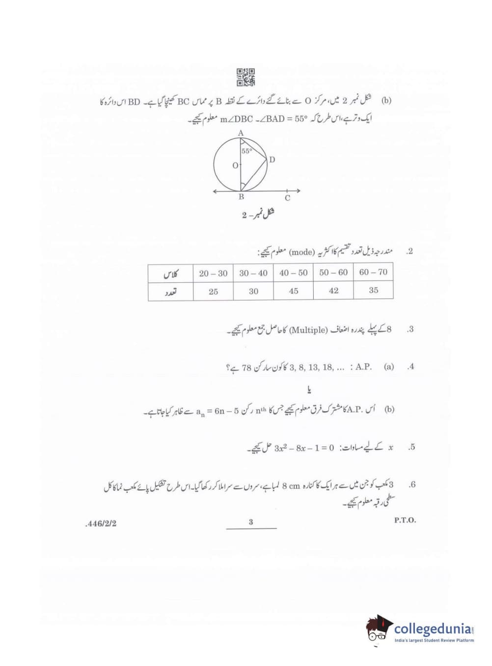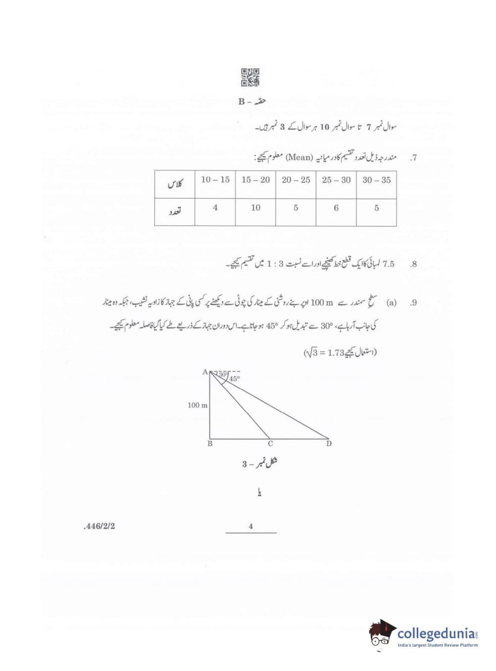 CBSE Class 10 Mathematics Basic Question Paper 2022 with Answer Key Set 2 - 446/2/2 is available for download. The exam was conducted by the Central Board of Secondary Education on May 5, 2022 in the Morning Session 10:30 AM to 12:30 PM. The medium of paper was Urdu. The question paper comprised a total of 14 questions divided among 3 sections.