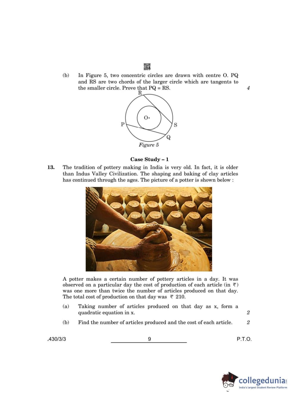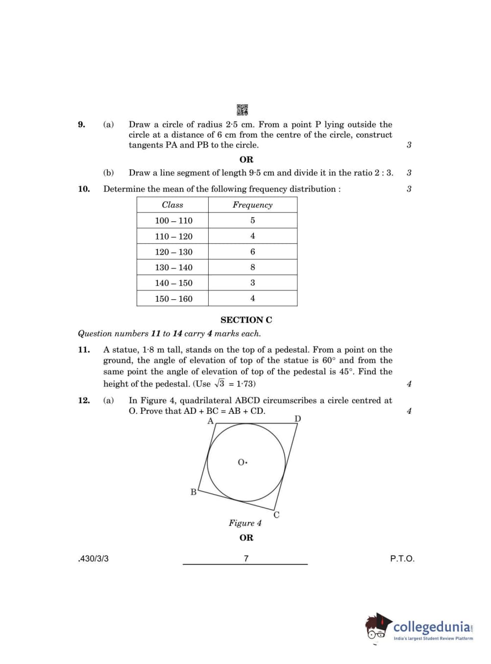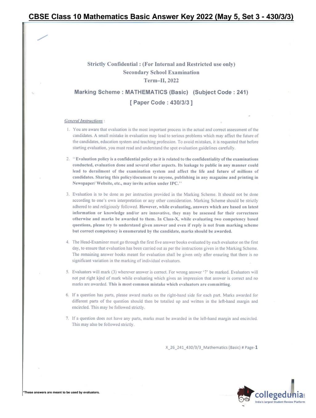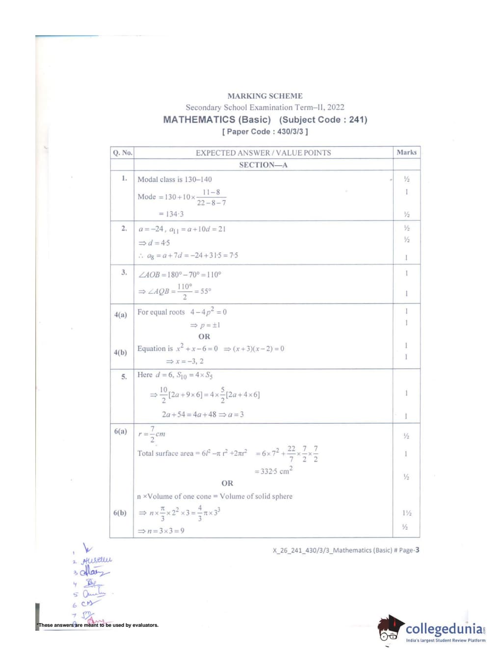 CBSE Class 10 Mathematics Basic Set 3 - 430/3/3 Question Paper 2022 with Answer Key (May 5)