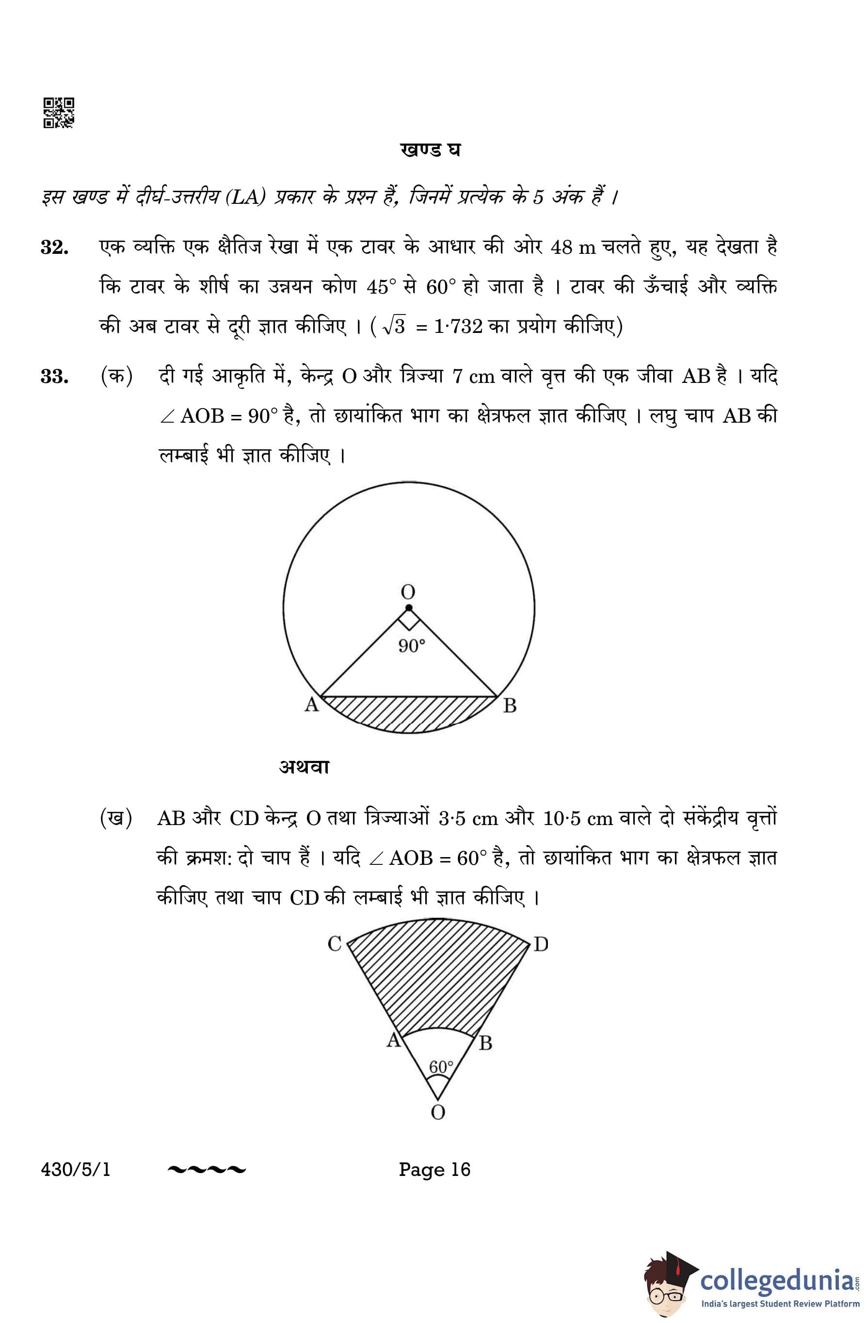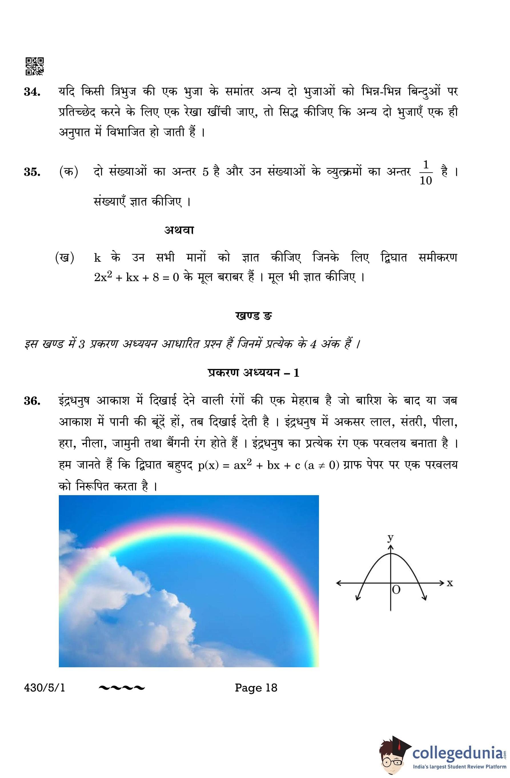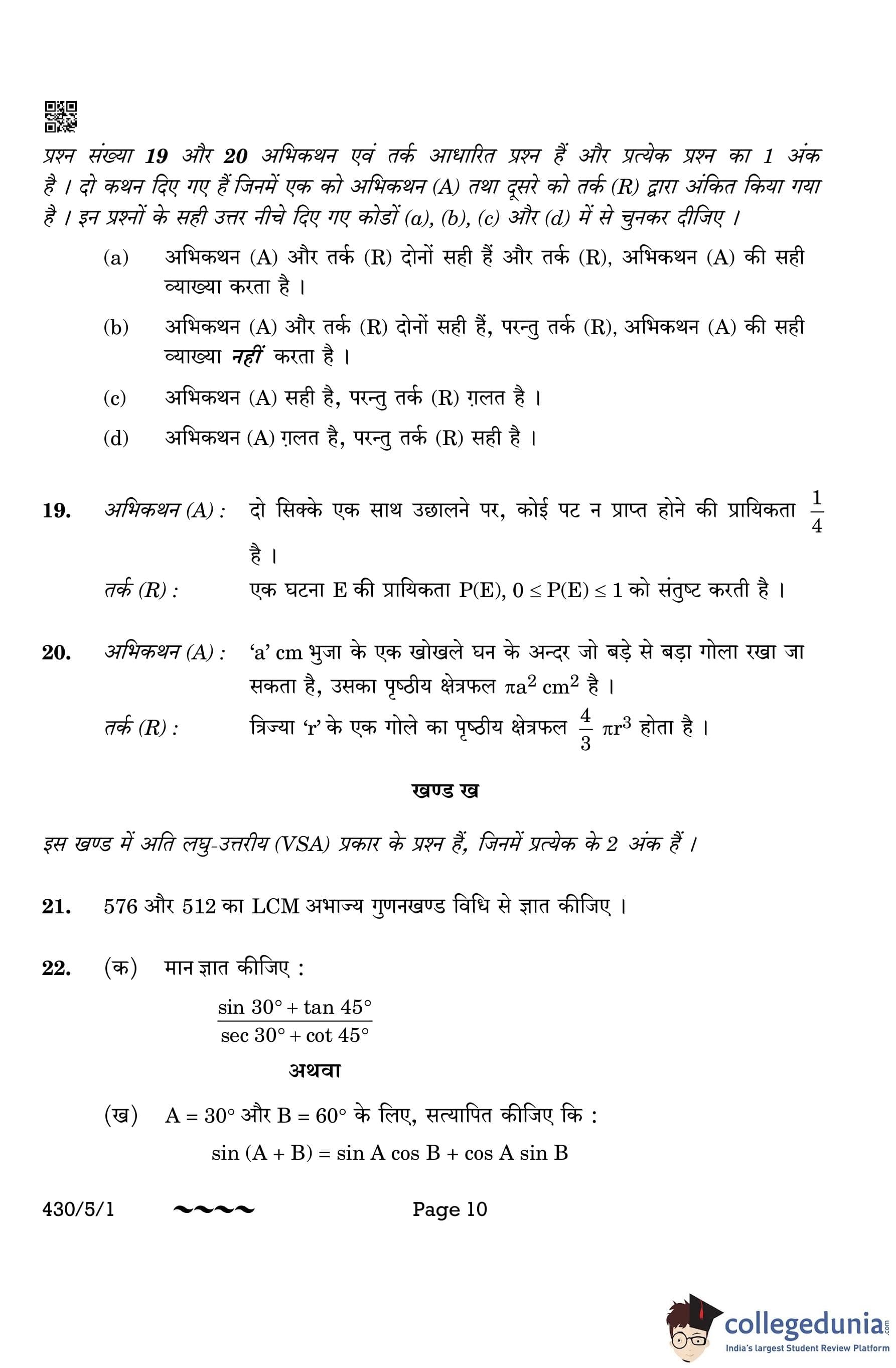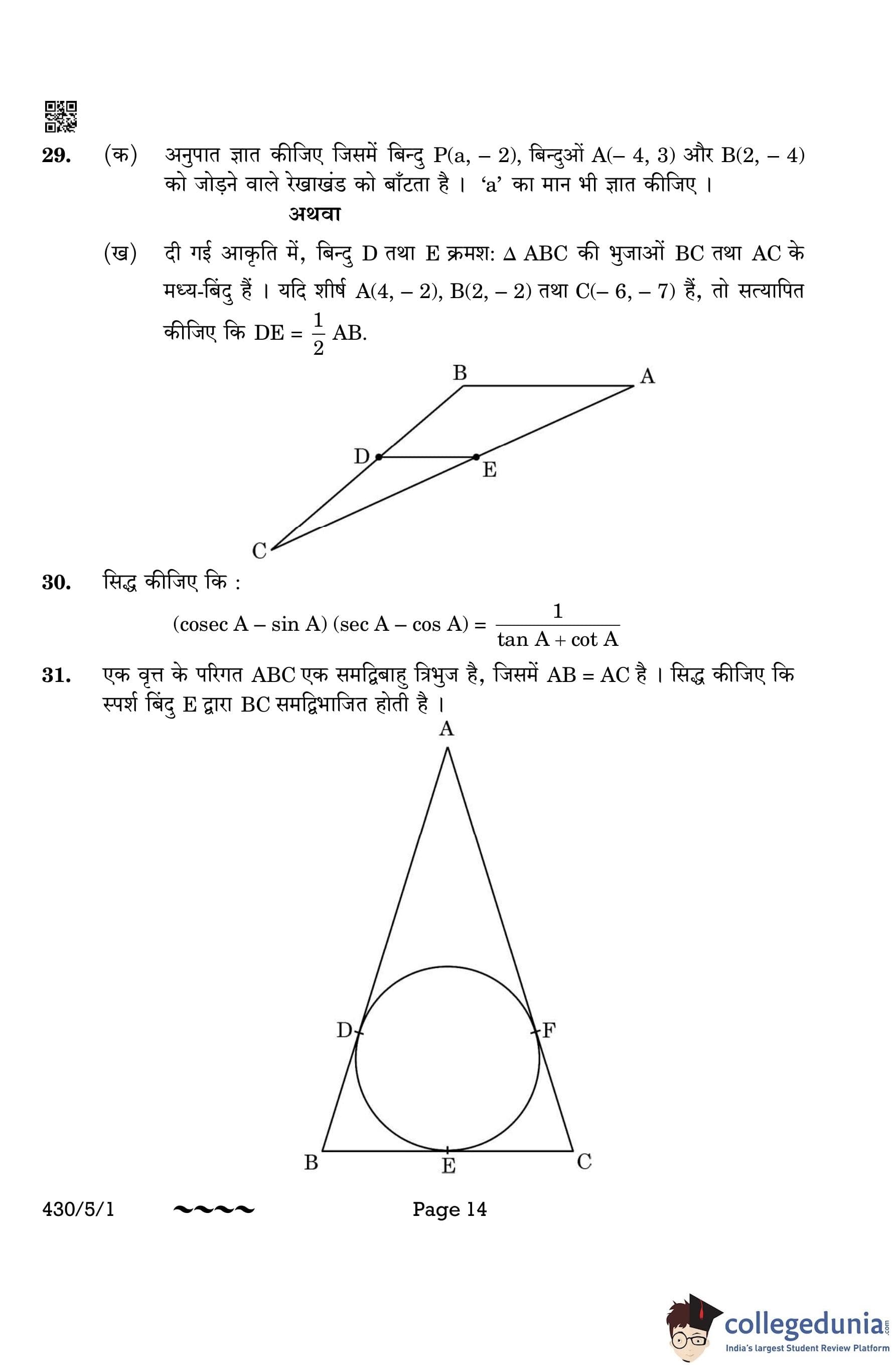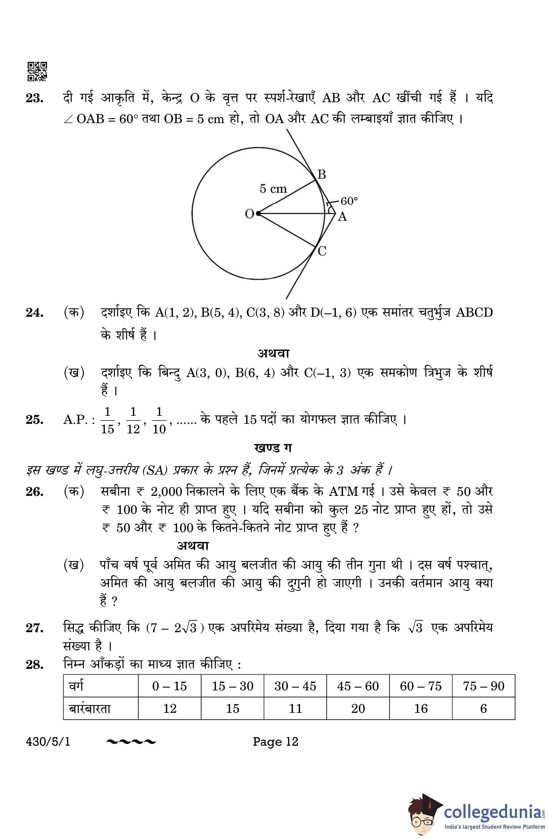 CBSE Class 10 Mathematics Basic (Set 1- 430/5/1) Question Paper 2023 with Answer Key