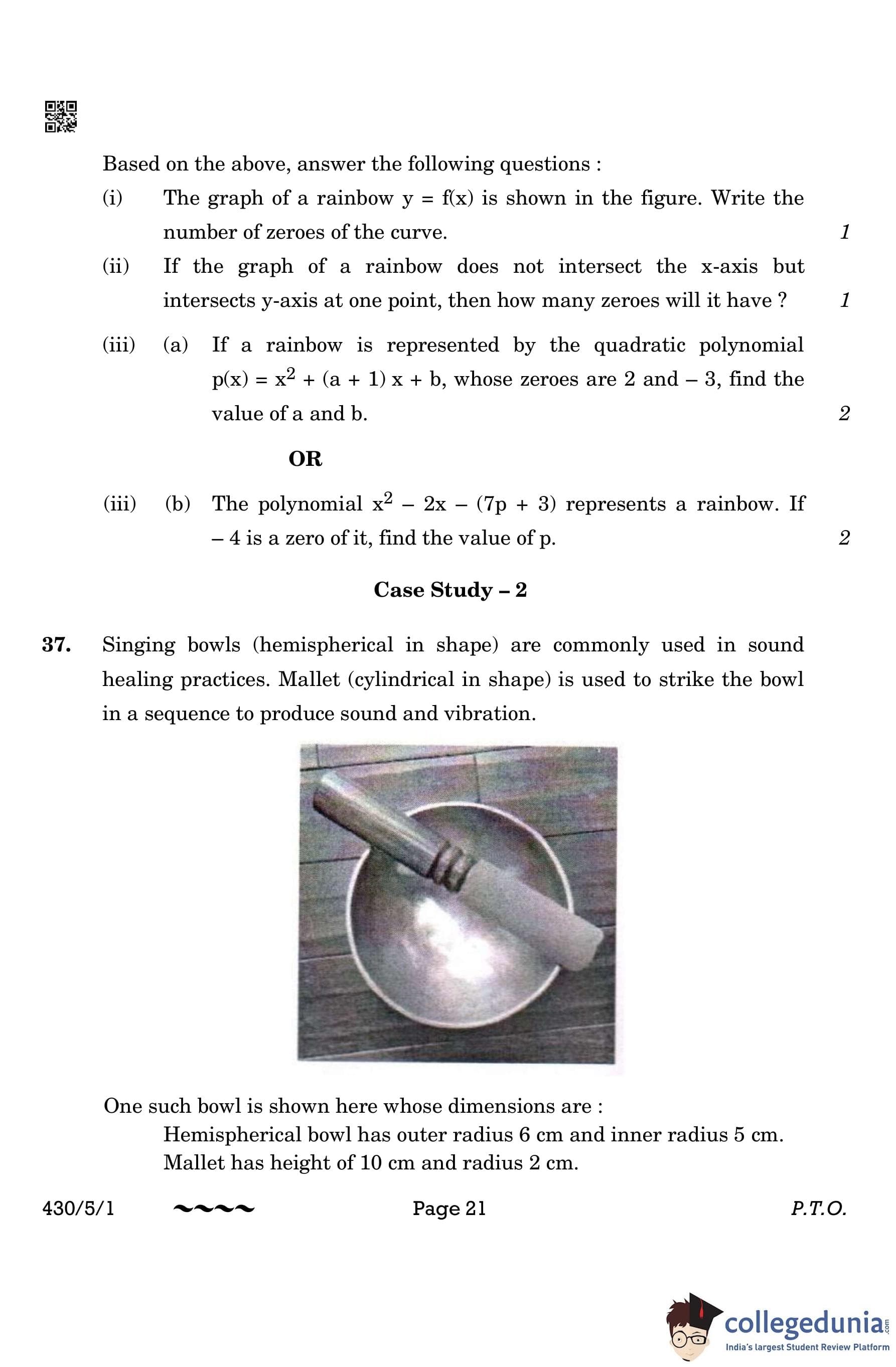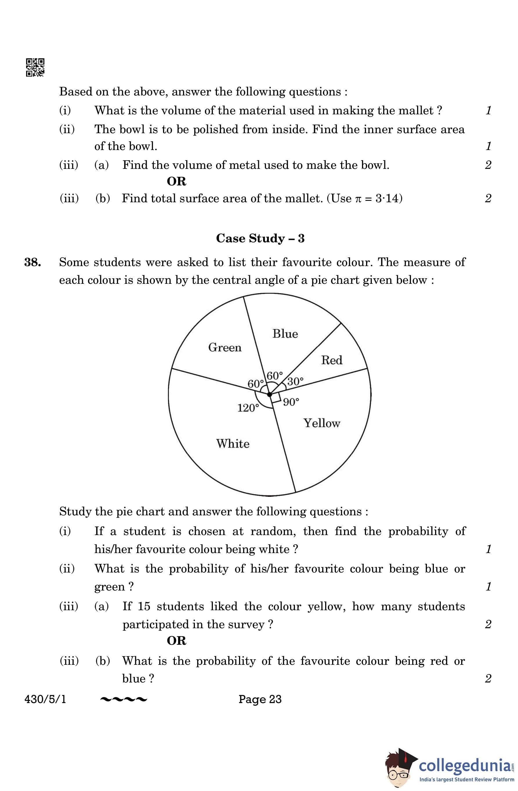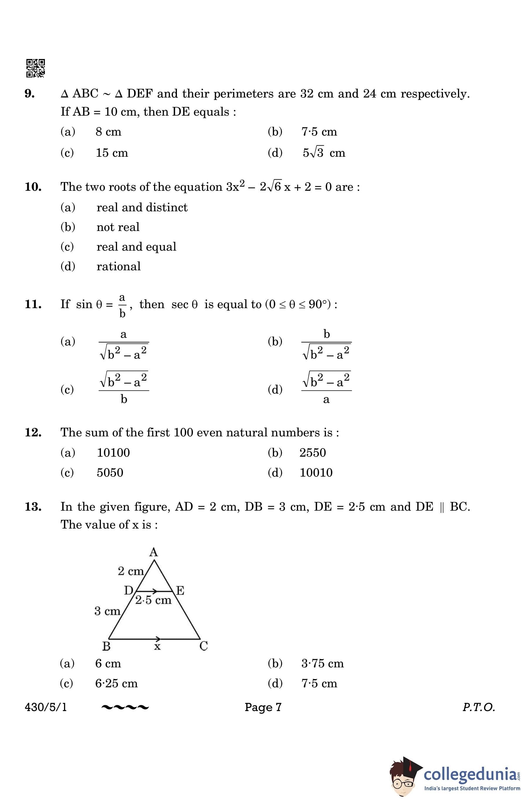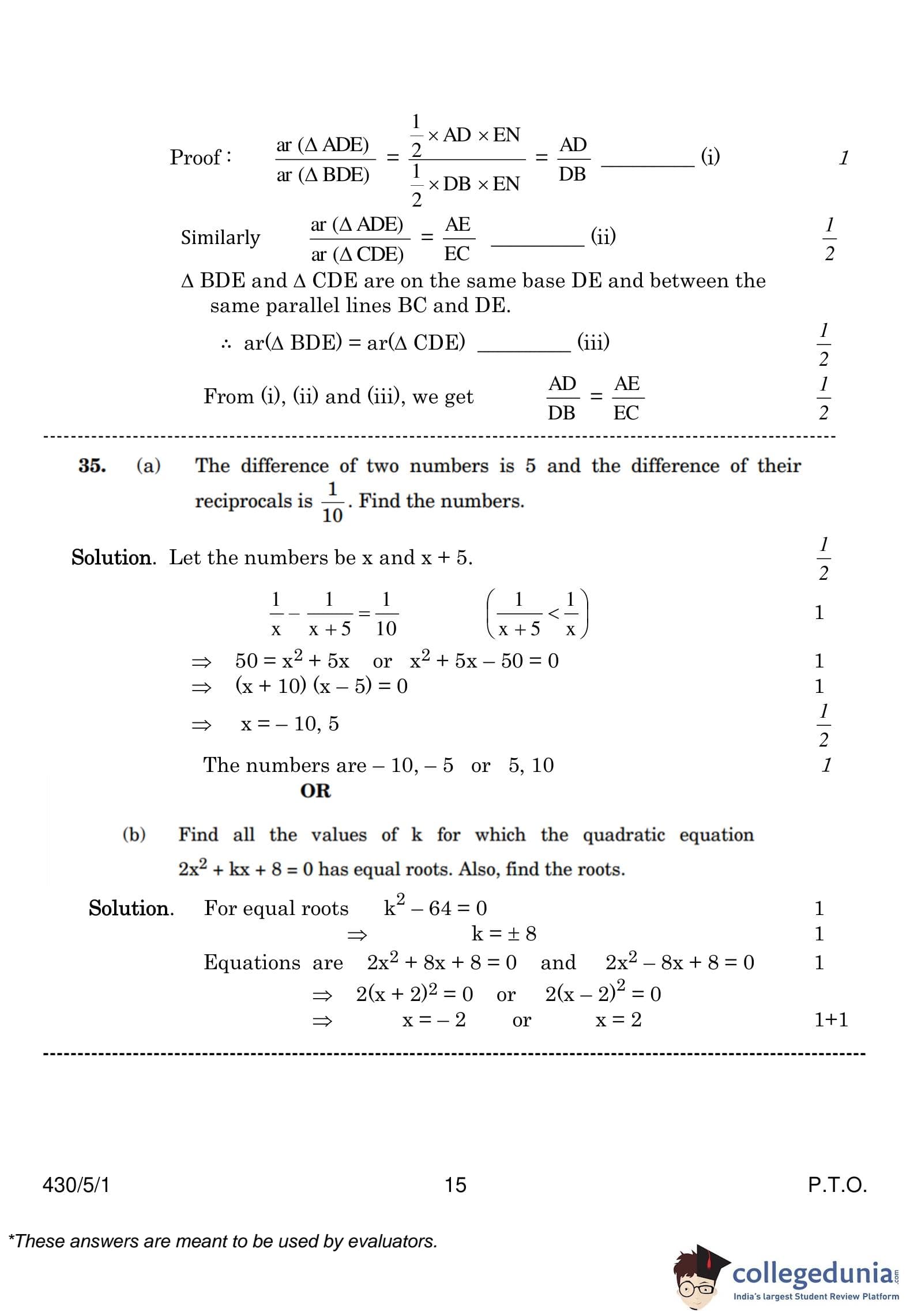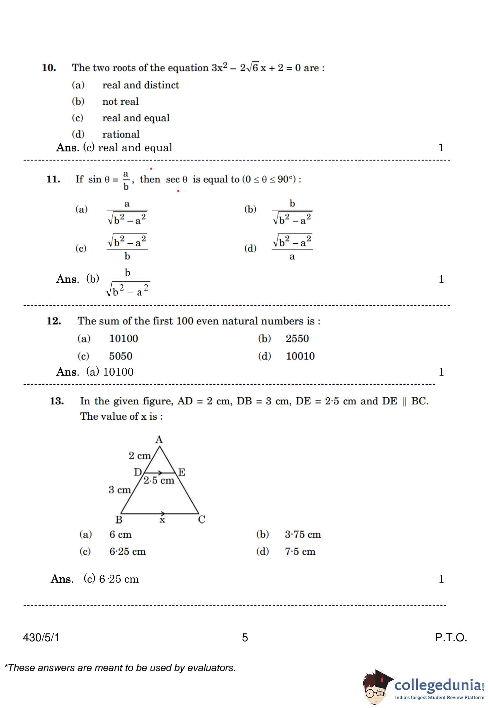 CBSE Class 10 Mathematics Basic (Set 1- 430/5/1) Question Paper 2023 with Answer Key