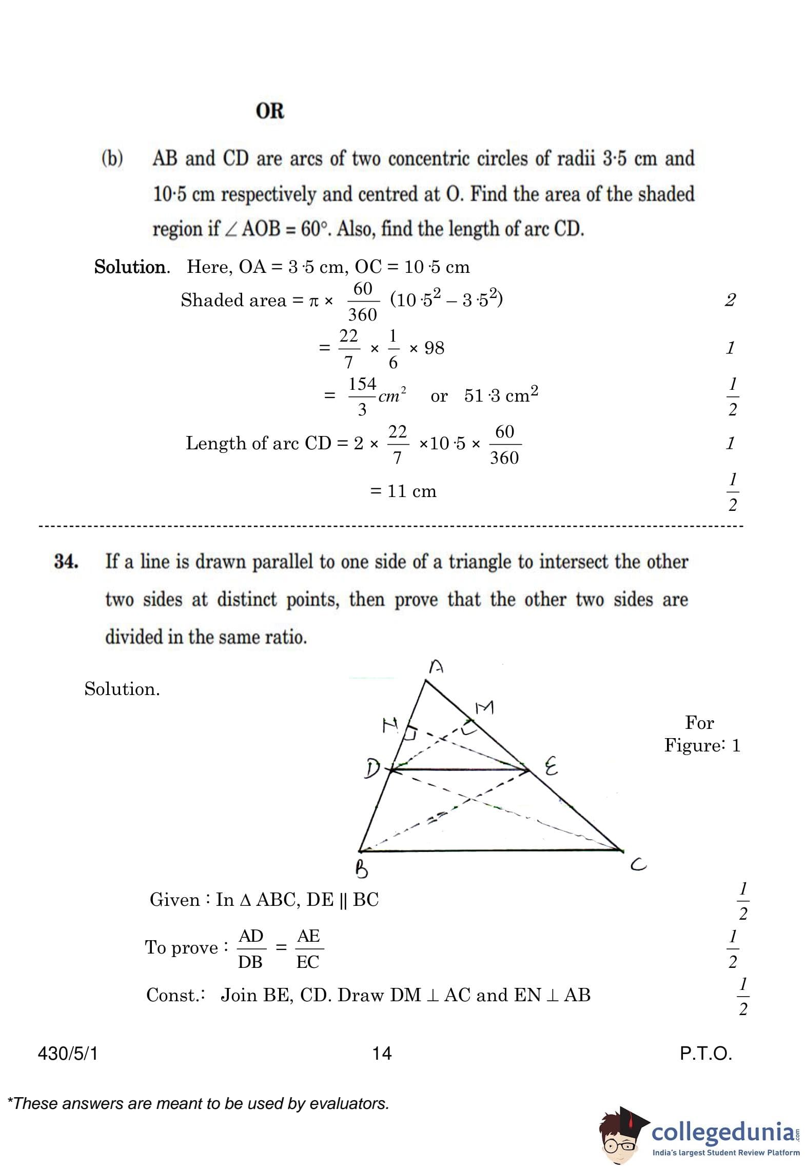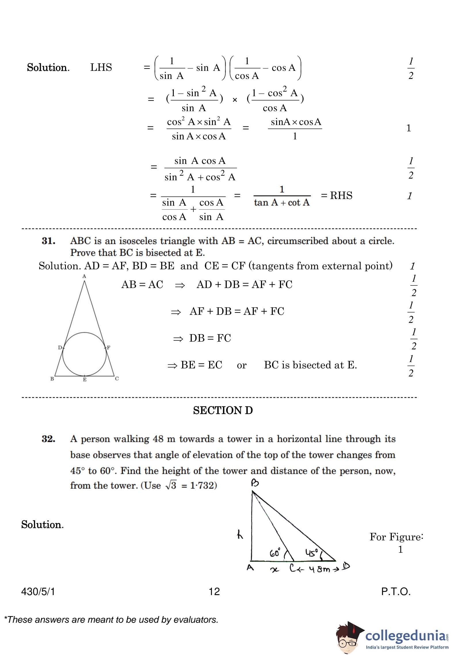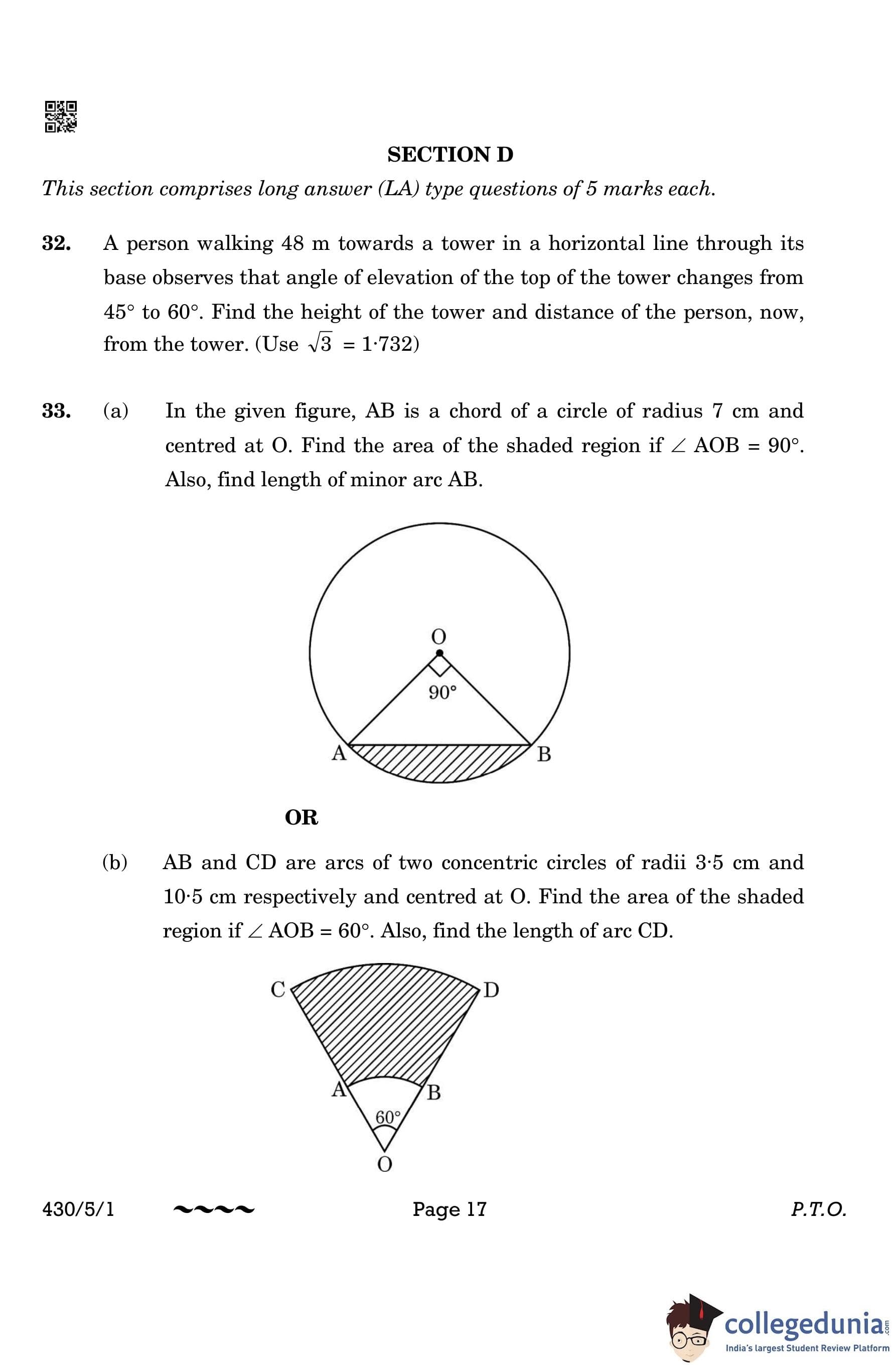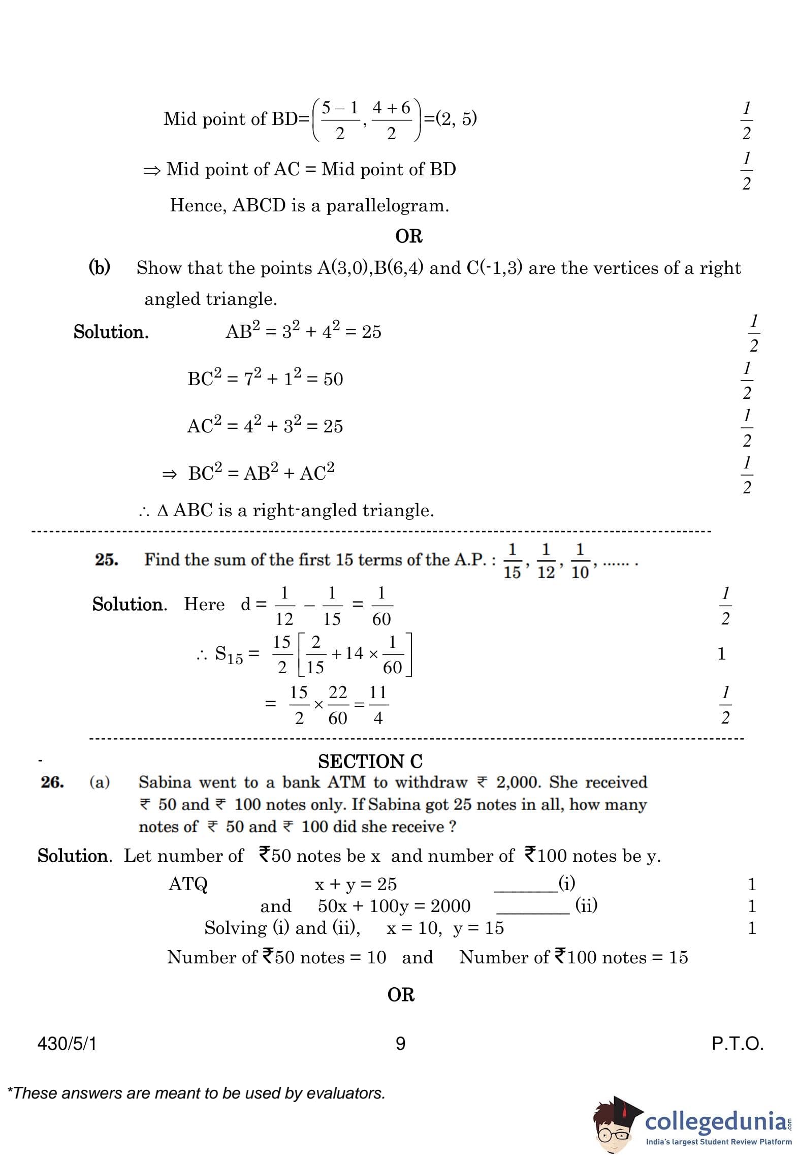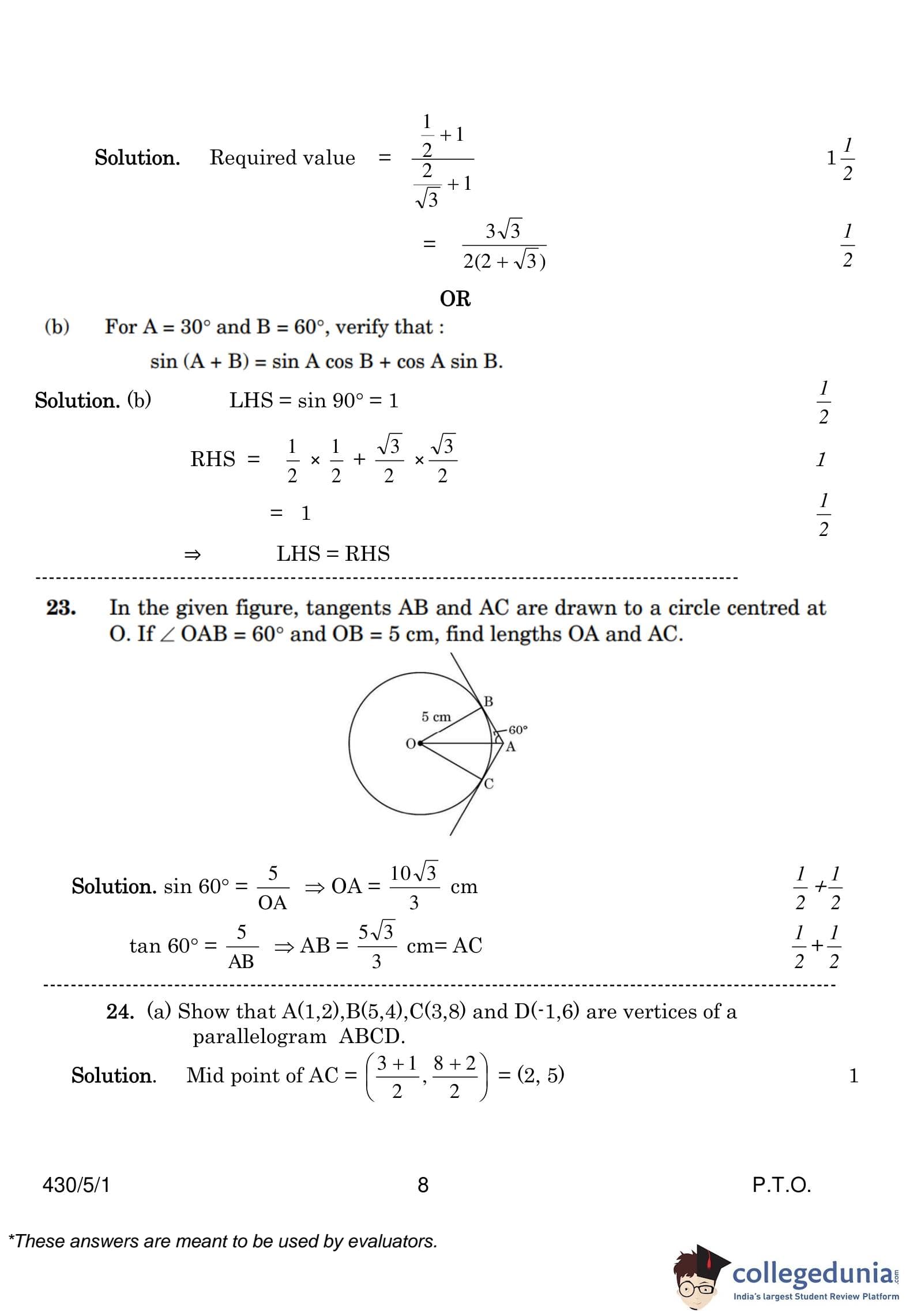CBSE Class 10 Mathematics Basic (Set 1- 430/5/1) Question Paper 2023 with Answer Key