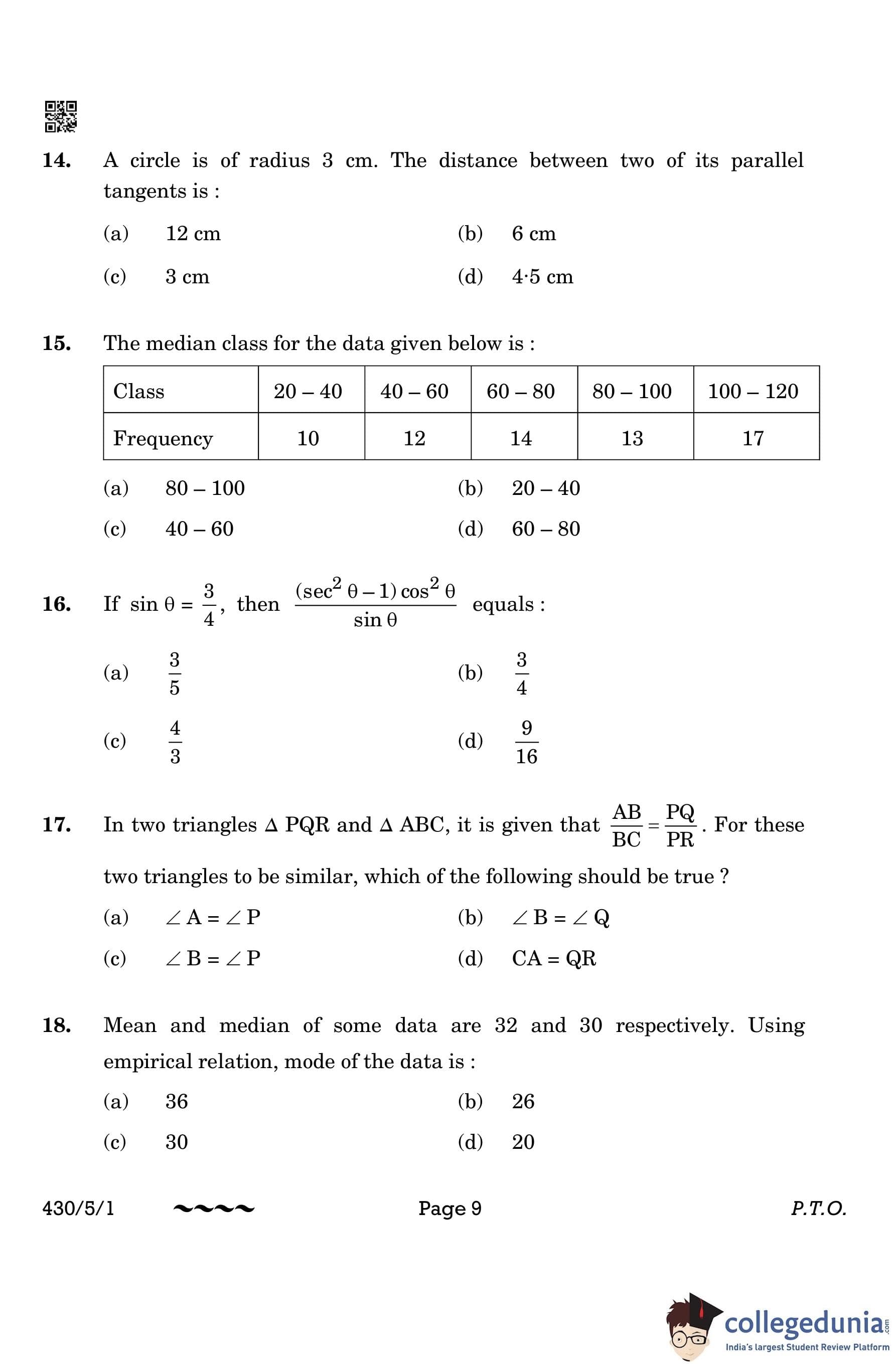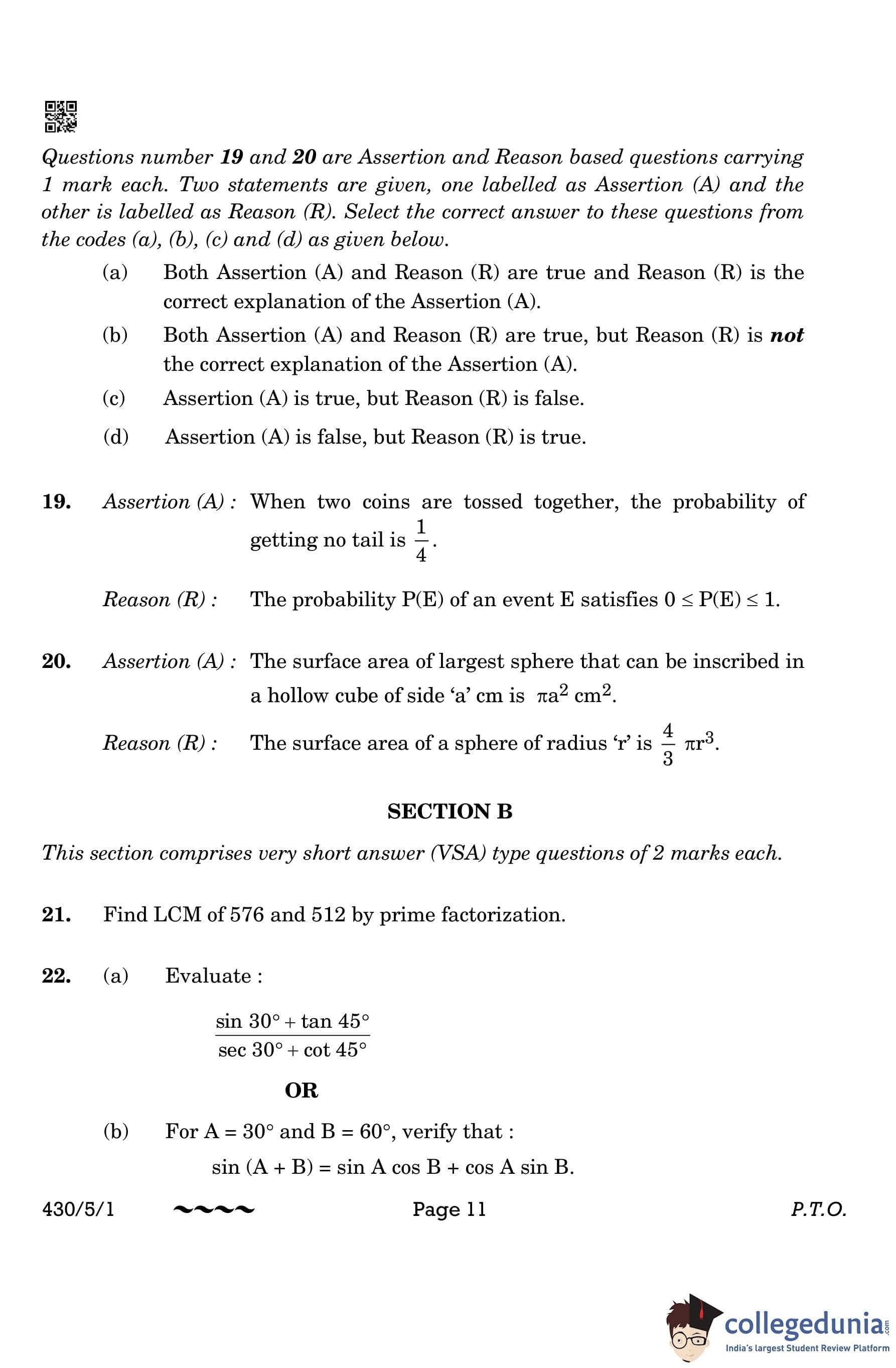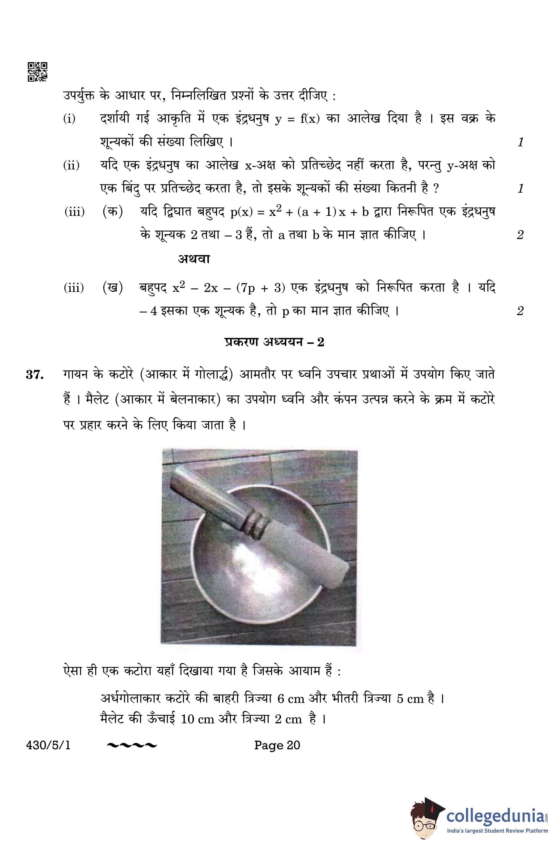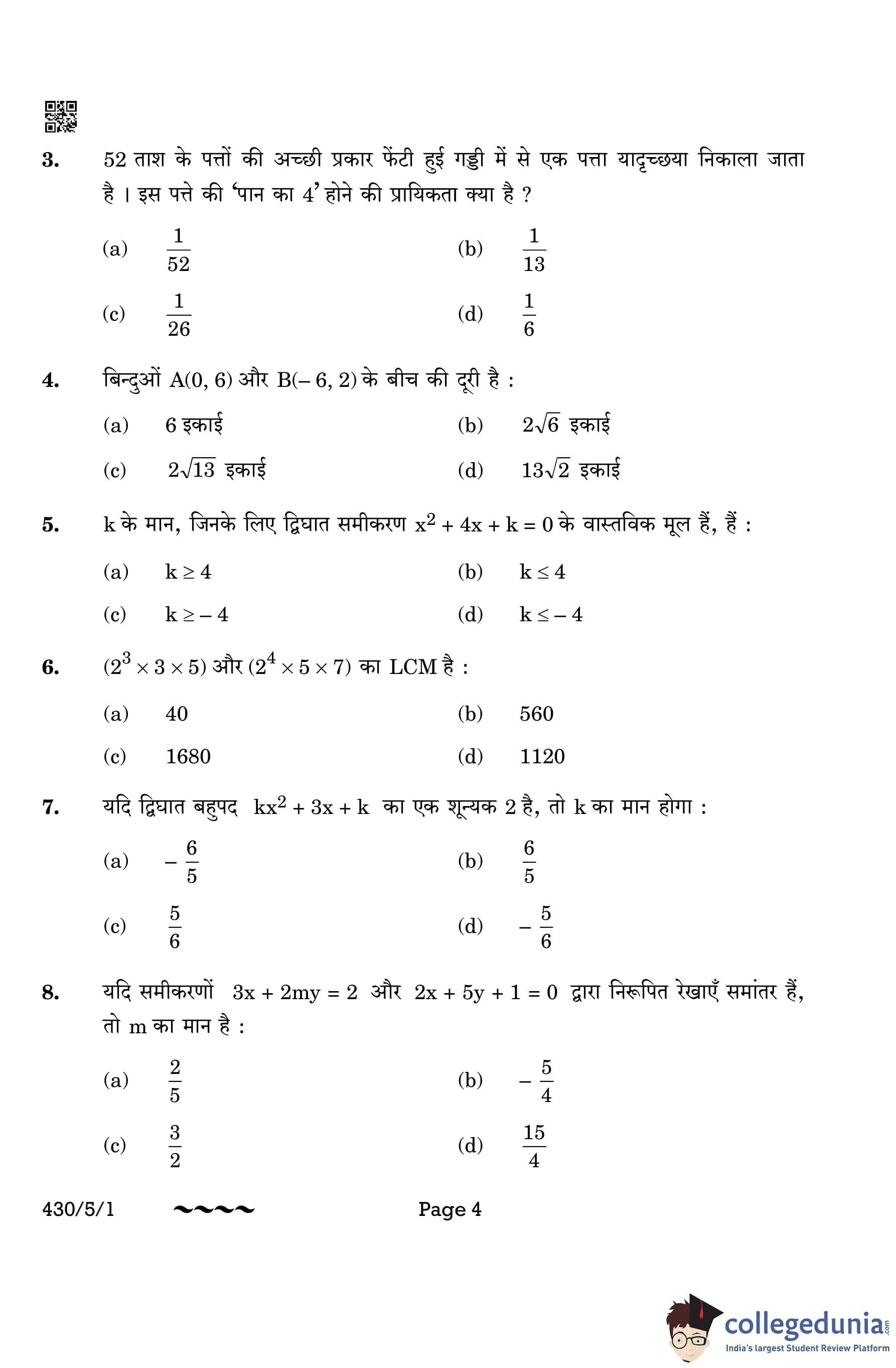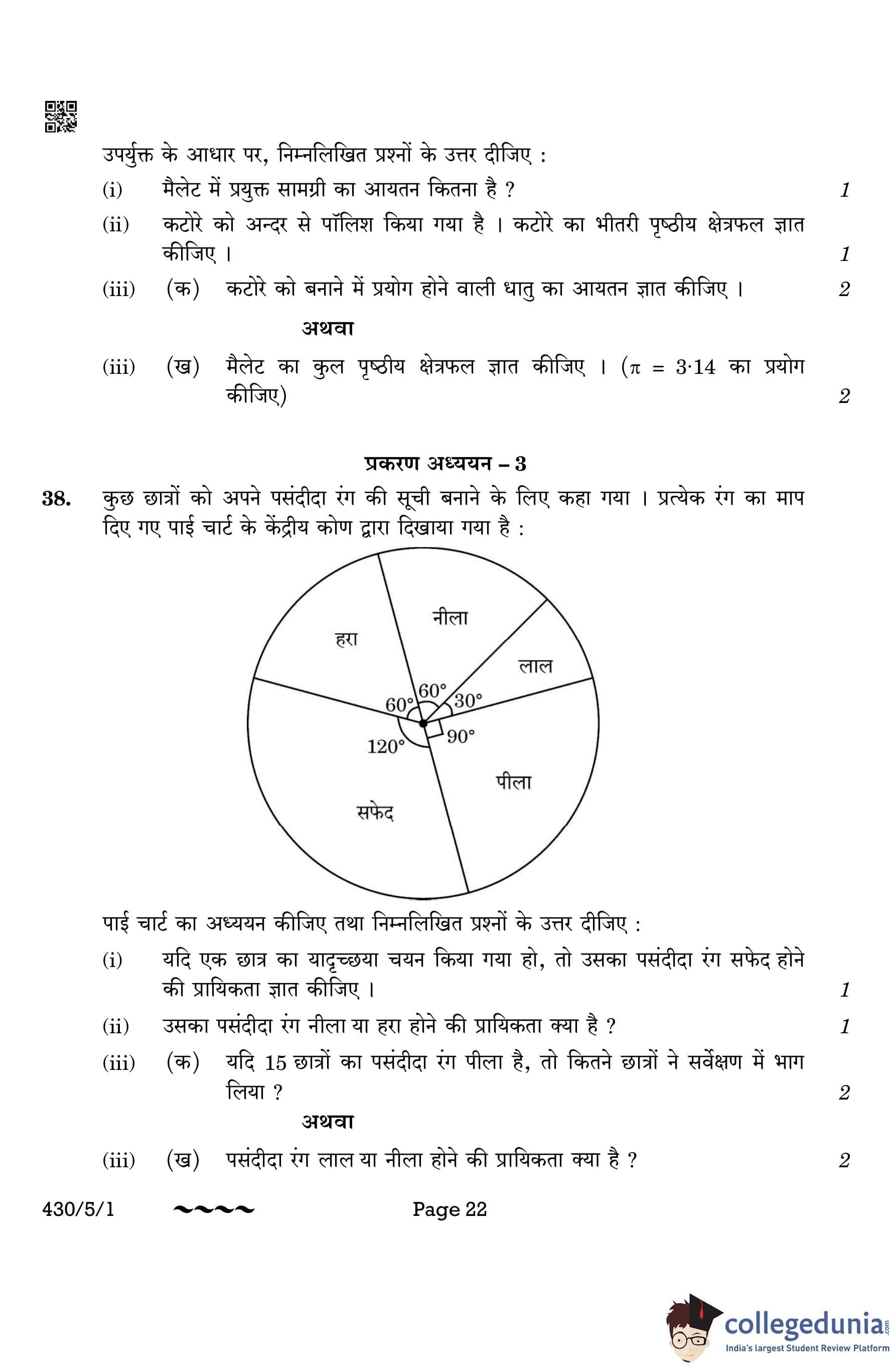 CBSE Class 10 Mathematics Basic Question Paper 2023 with Answer Key (Set 1- 430/5/1) is available for download here. The exam was conducted by the Central Board of Secondary Education on March 21, 2023 in the Morning Session 10:30 AM to 1:30 PM. The medium of paper was English & Hindi. According to initial student reaction, the CBSE Class 10 Mathematics Basic paper was rated as Moderate in difficulty level. The question paper comprised a total of 38 questions divided among 5 sections.
