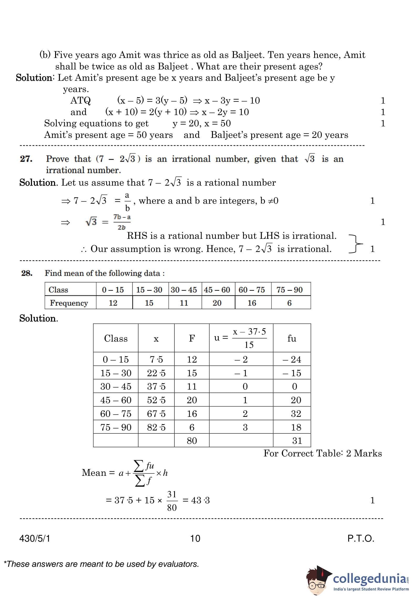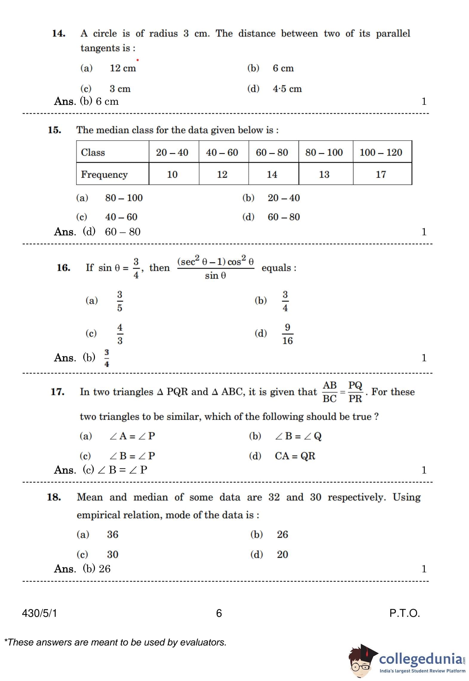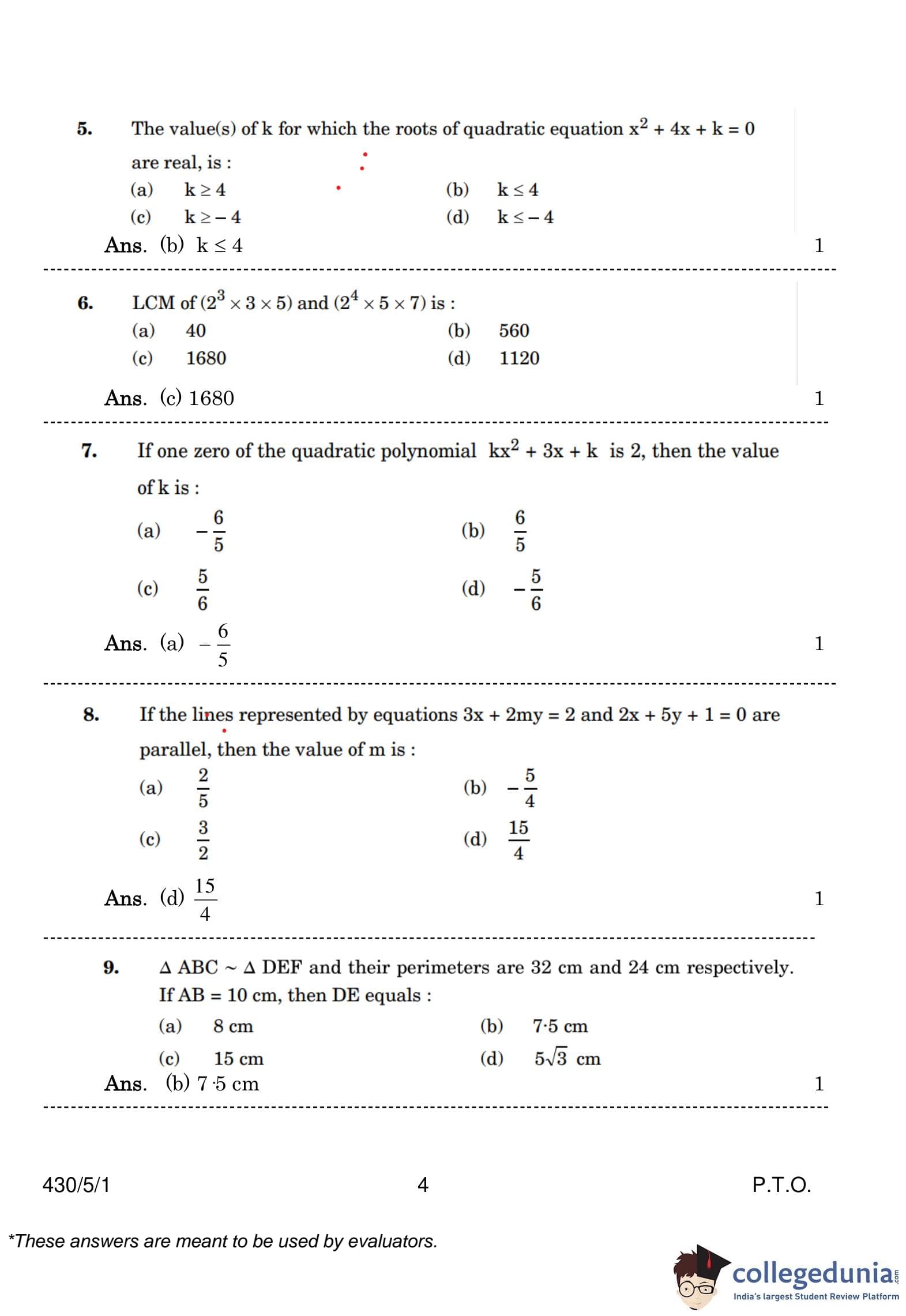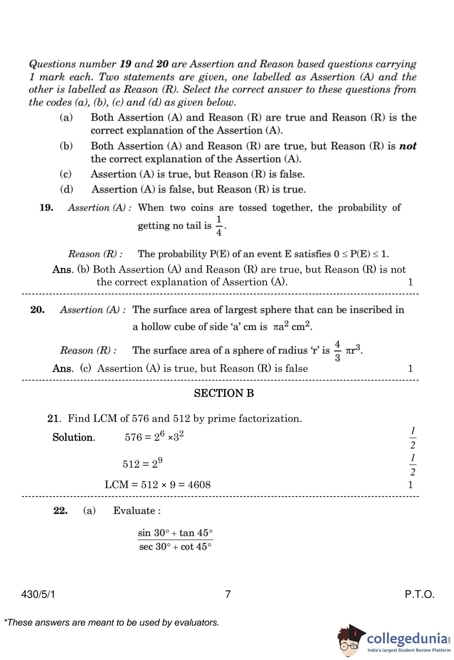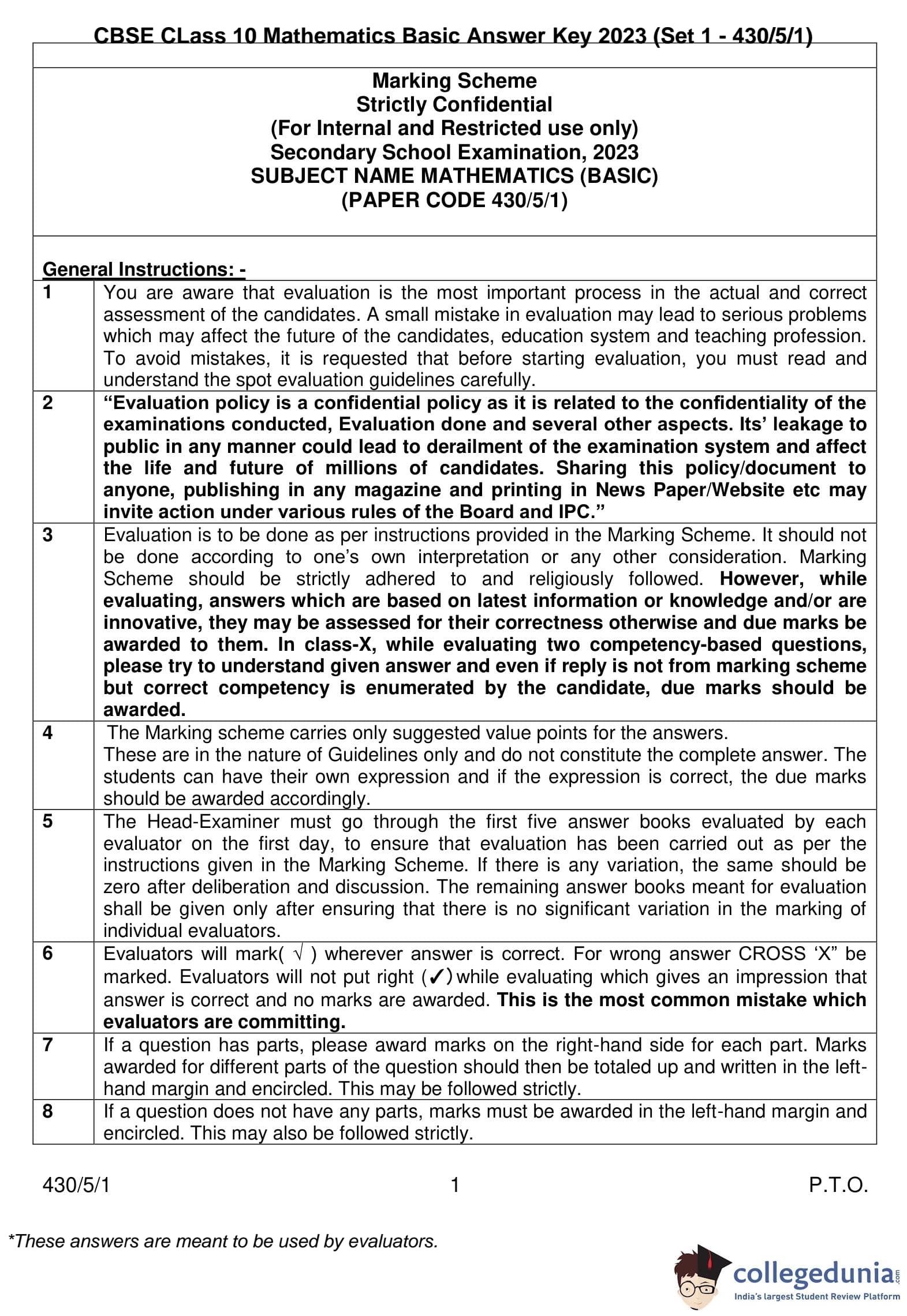 | CBSE Class 10 Mathematics Question Paper 2023 PDF | CBSE Class 10 Mathematics Answer Key 2023 PDF | Detailed Solutions |