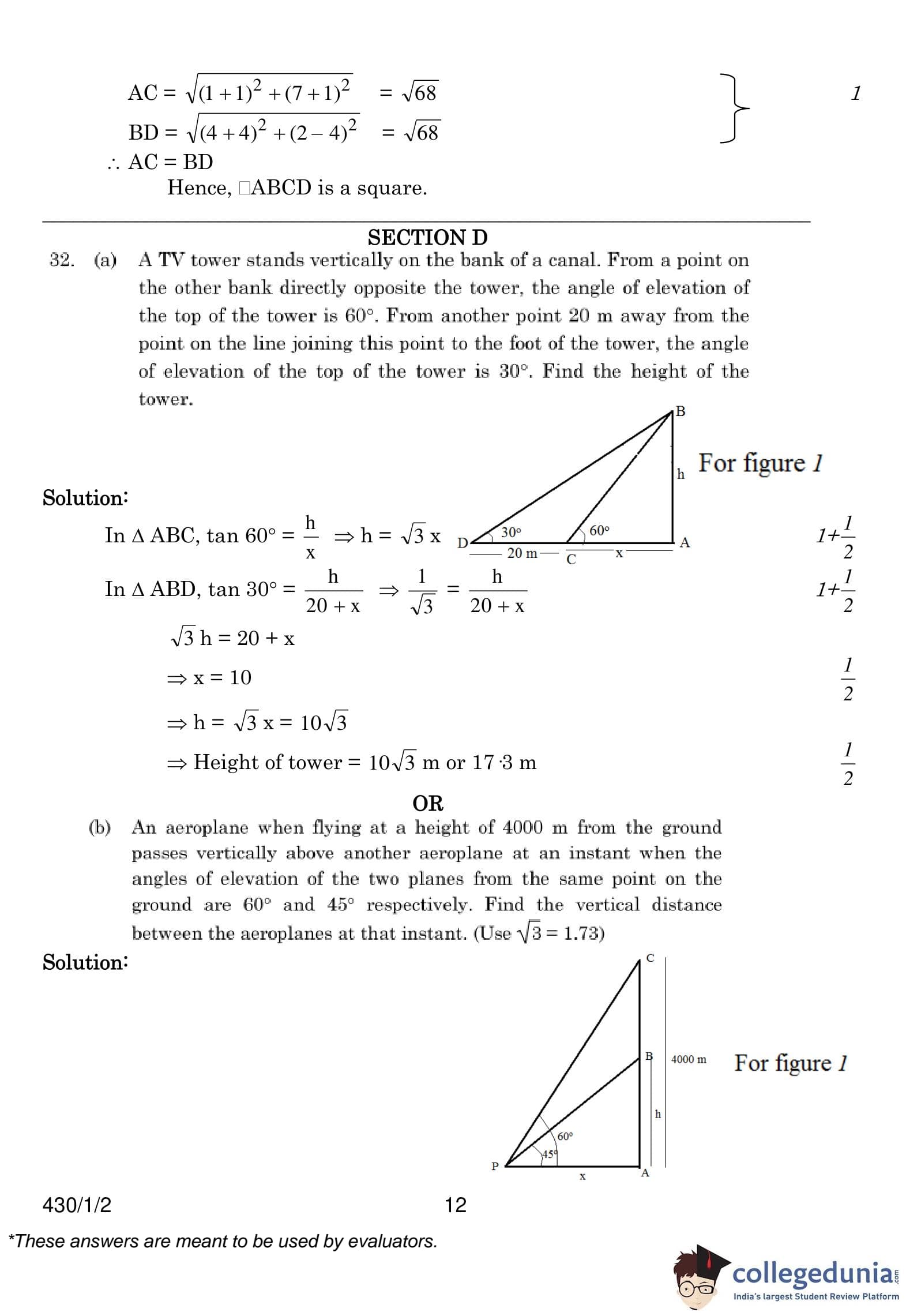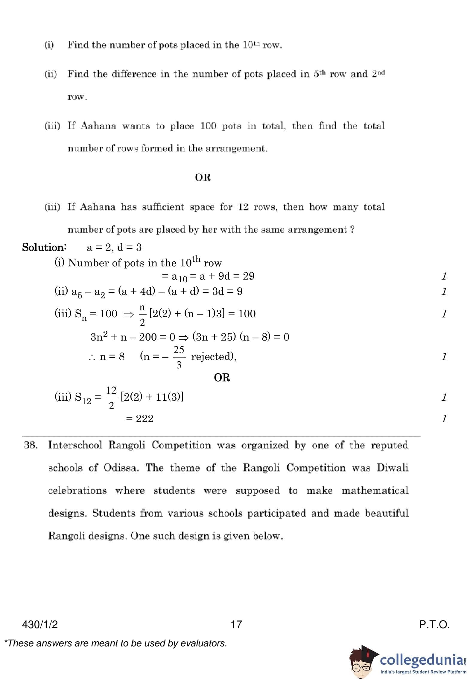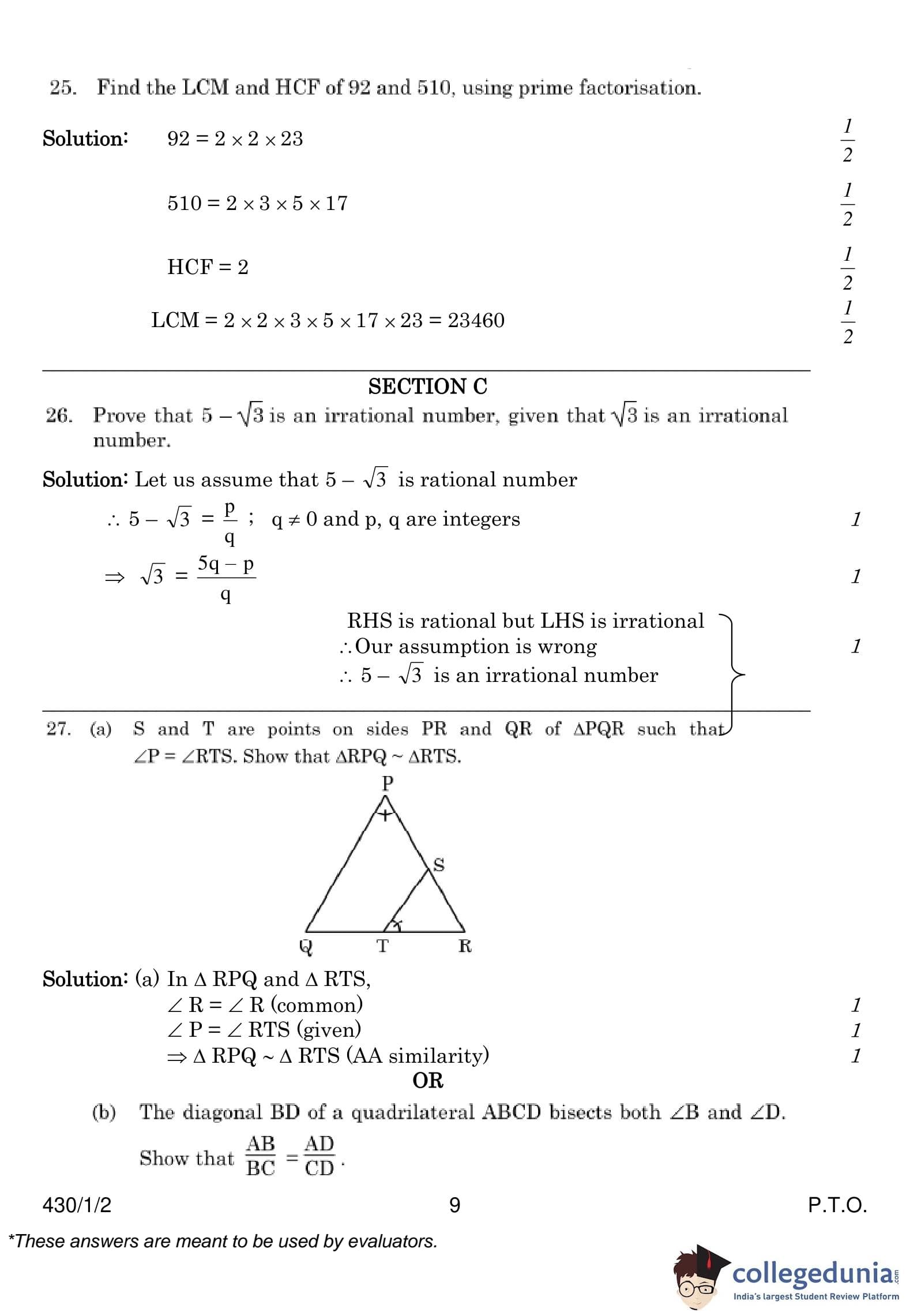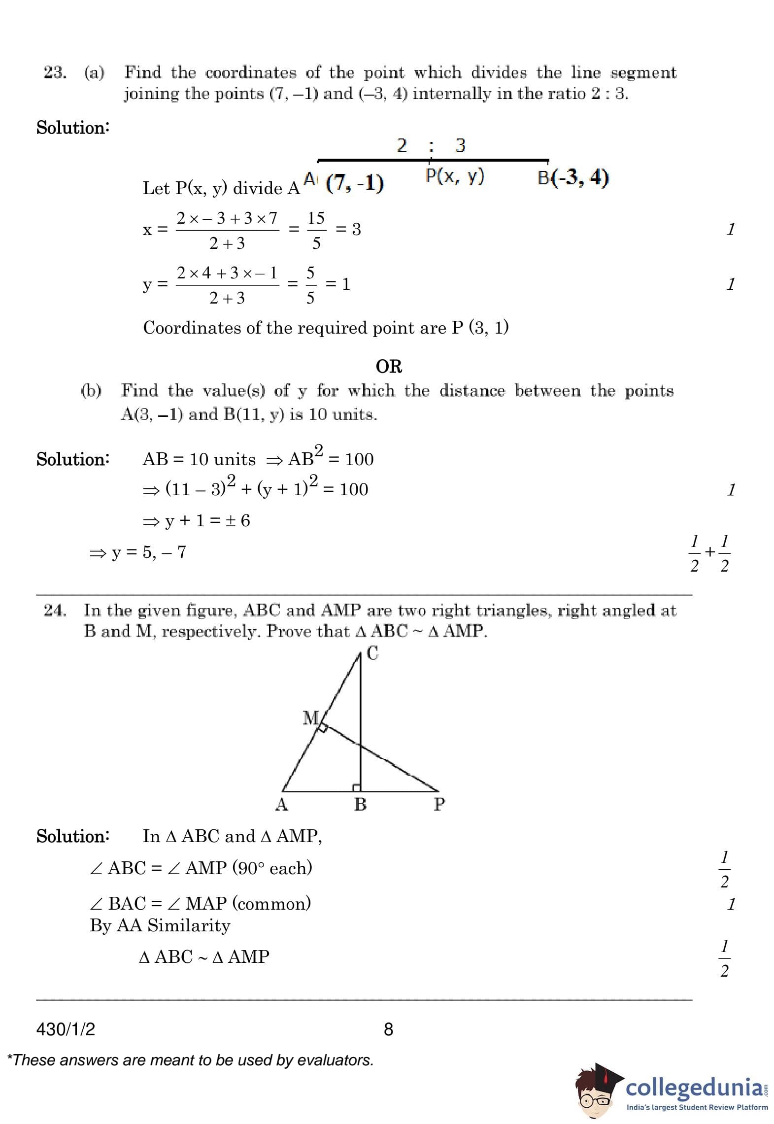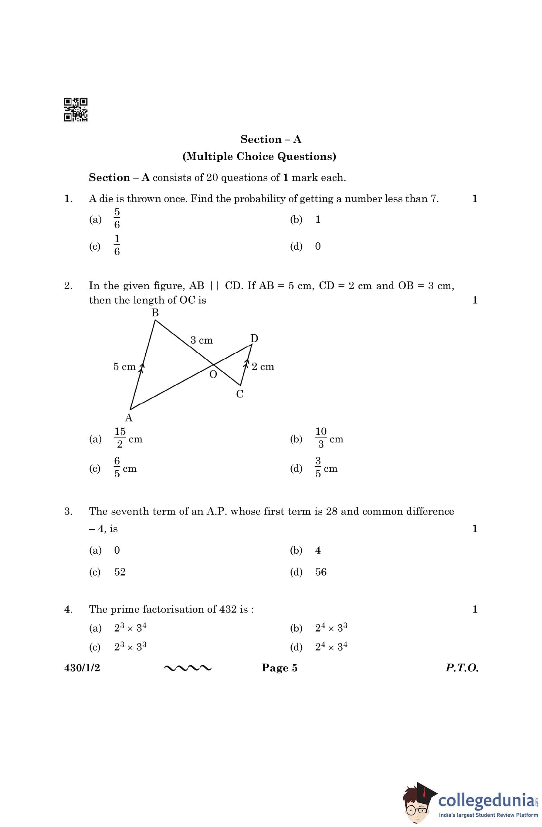 CBSE Class 10 Mathematics Basic (Set 2- 430/1/2) Question Paper 2023 with Answer Key