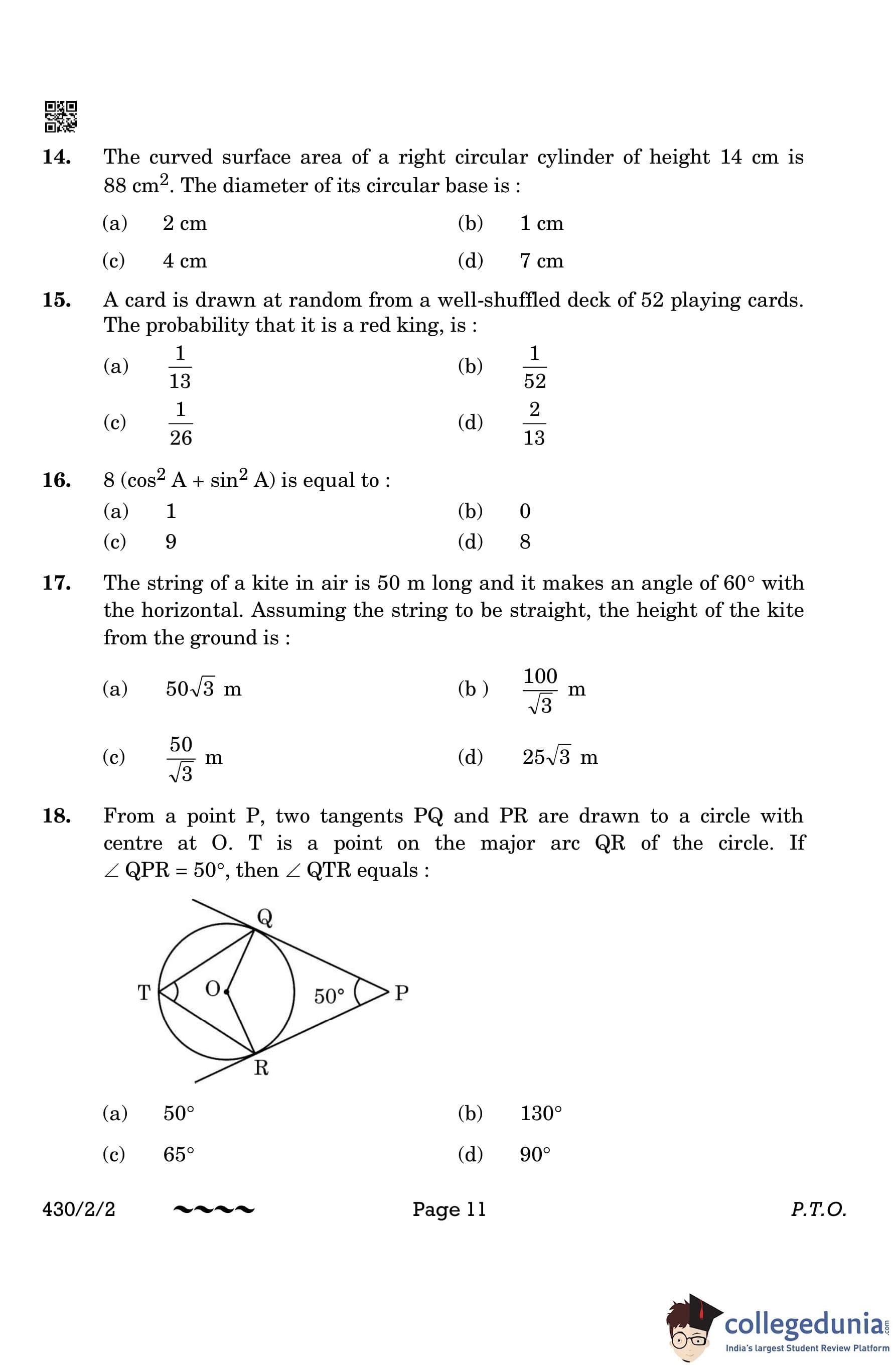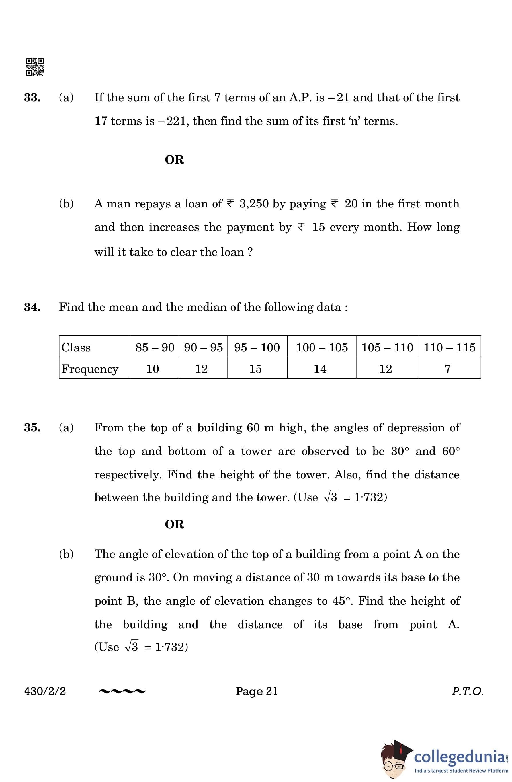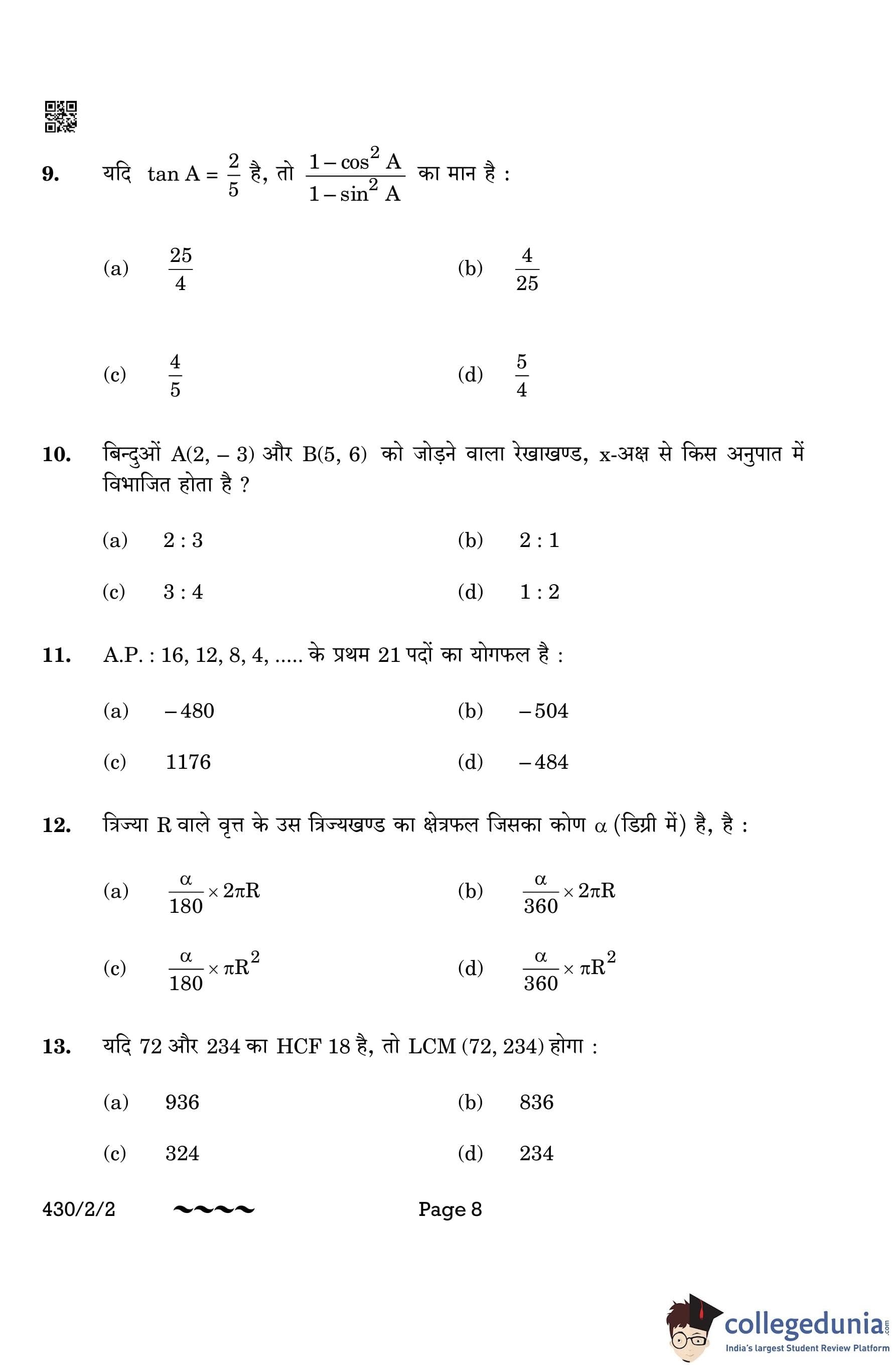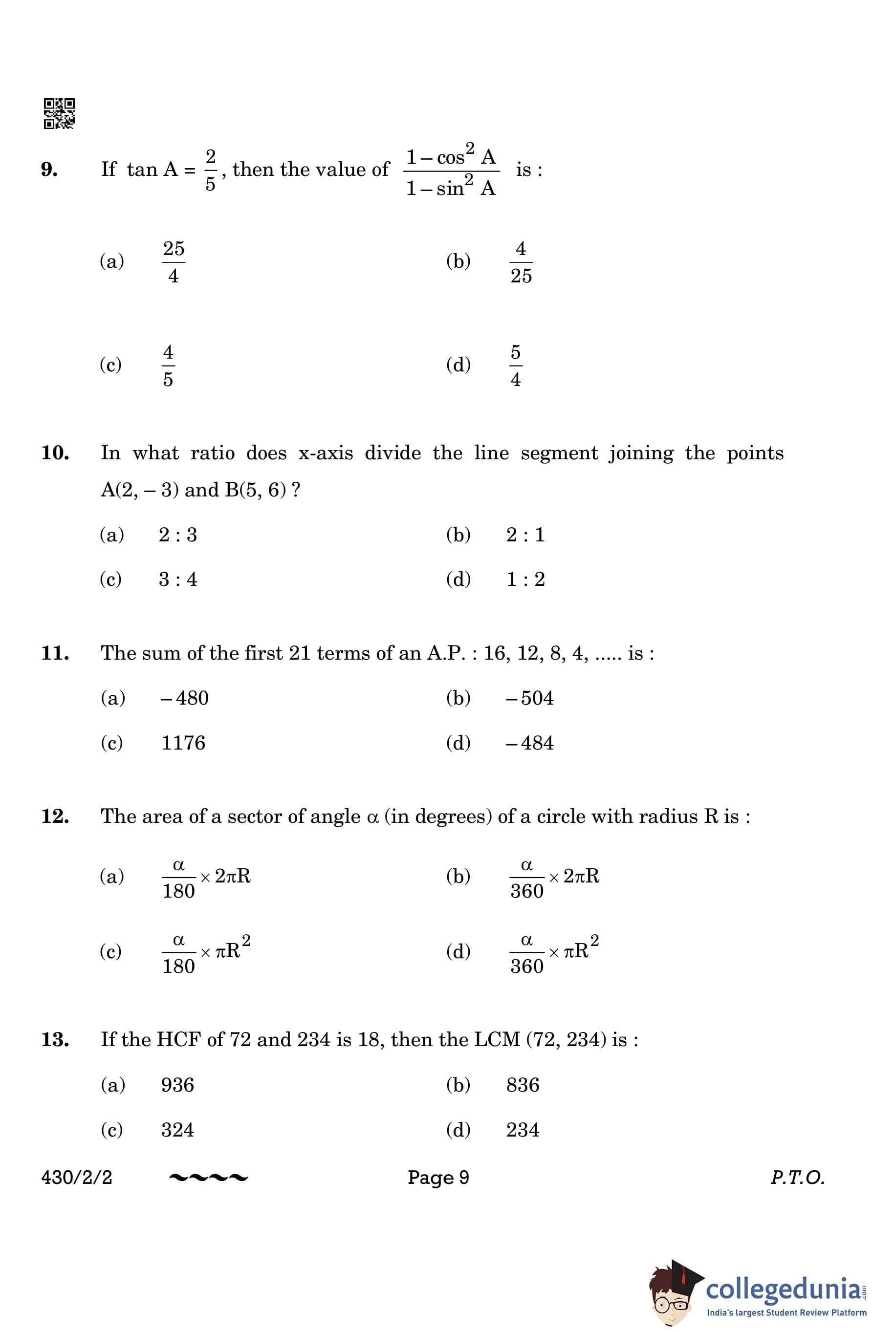 CBSE Class 10 Mathematics Basic Question Paper 2023 with Answer Key (Set 2- 430/2/2) is available for download here. The exam was conducted by the Central Board of Secondary Education on March 21, 2023 in the Morning Session 10:30 AM to 1:30 PM. The medium of paper was English & Hindi. According to initial student reaction, the CBSE Class 10 Mathematics Basic paper was rated as Moderate in difficulty level. The question paper comprised a total of 38 questions divided among 5 sections.