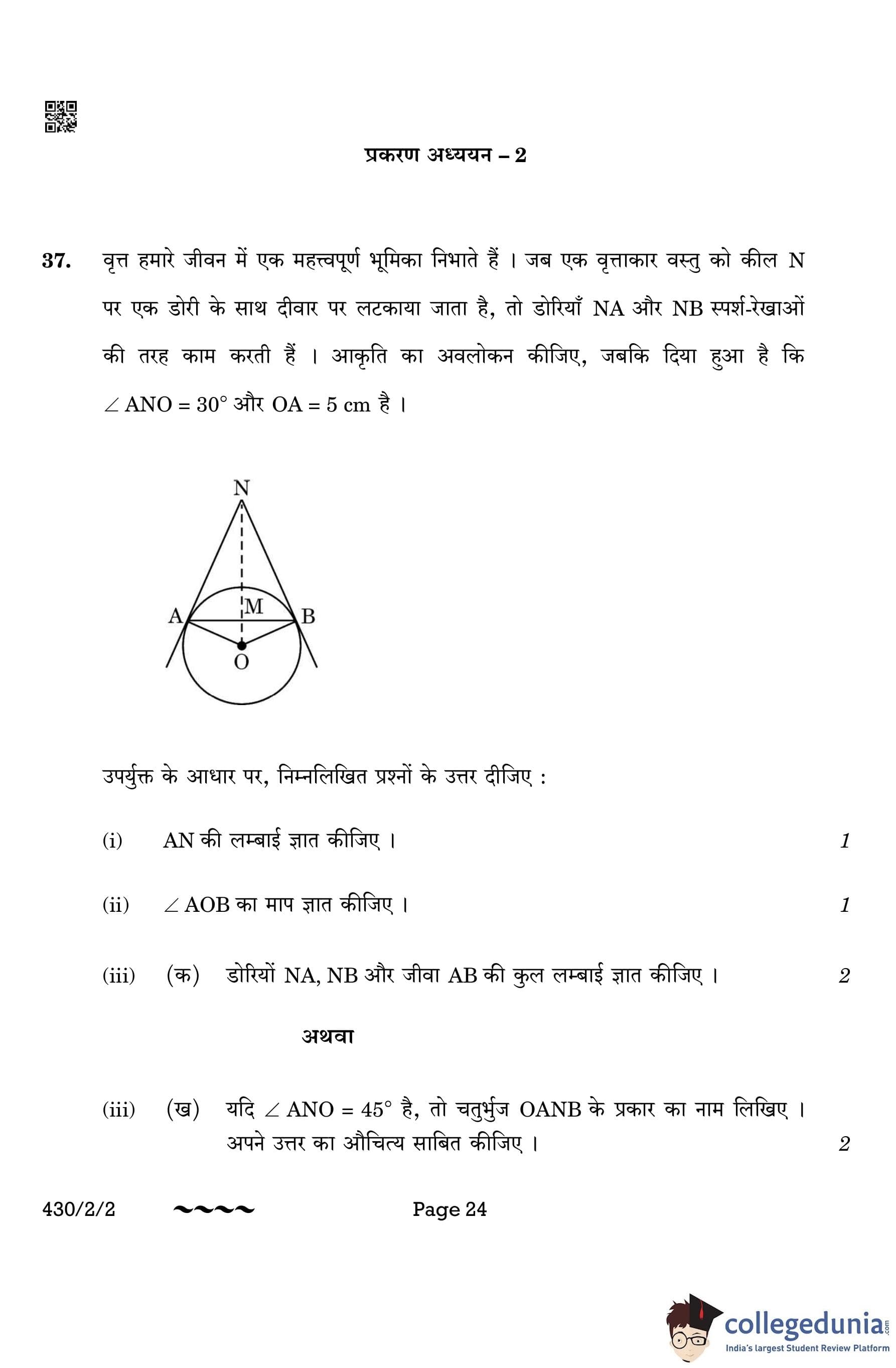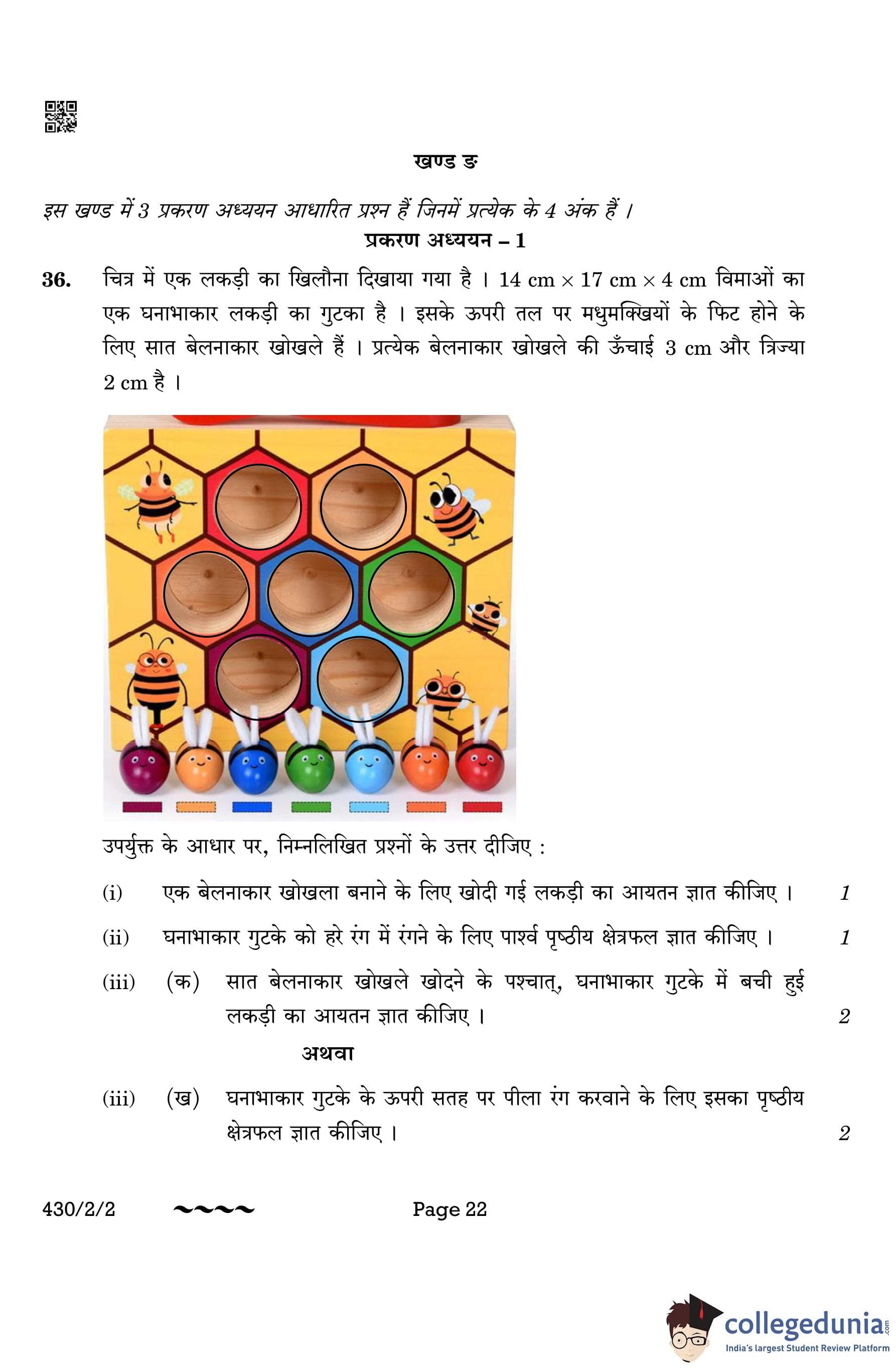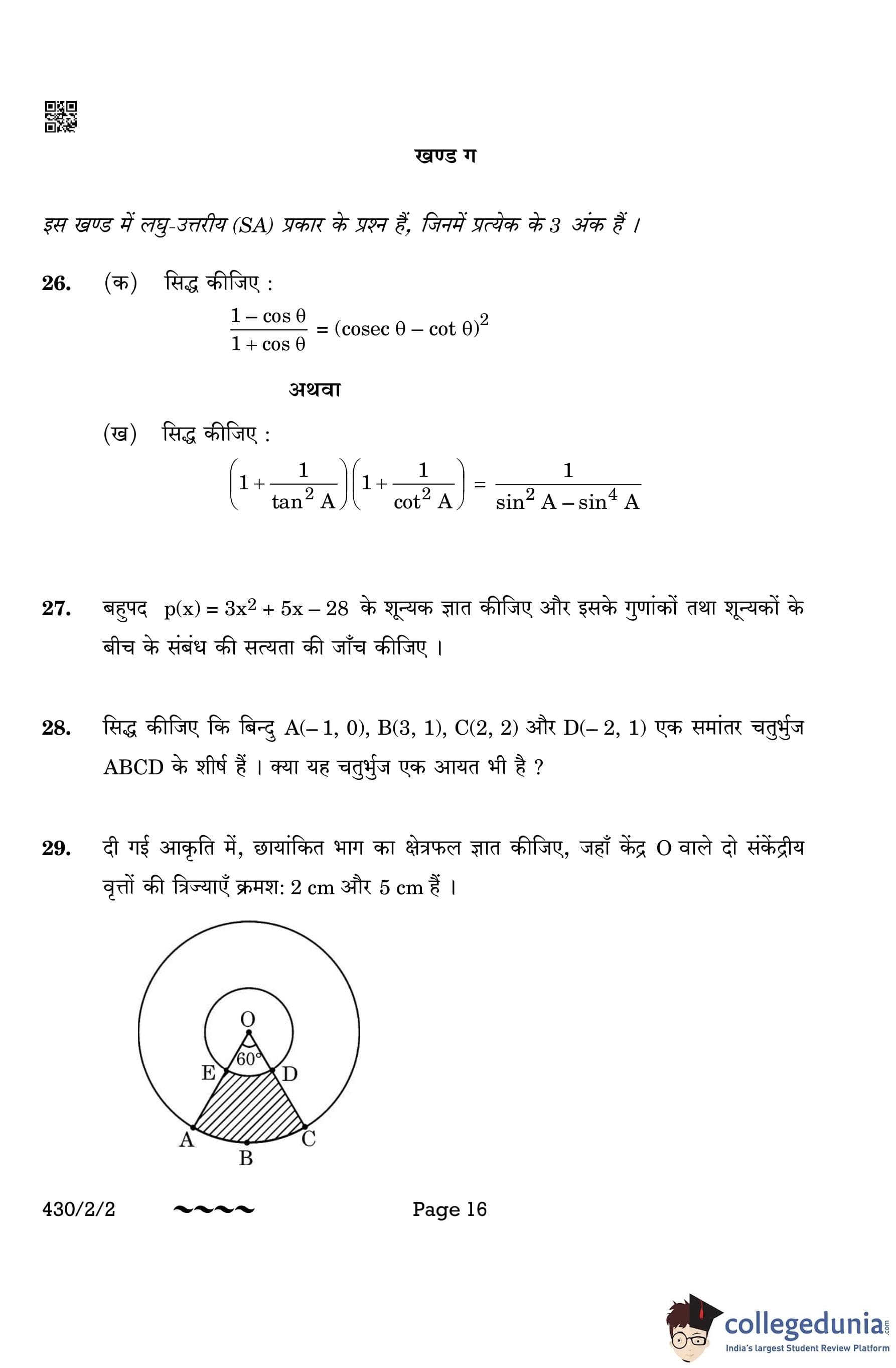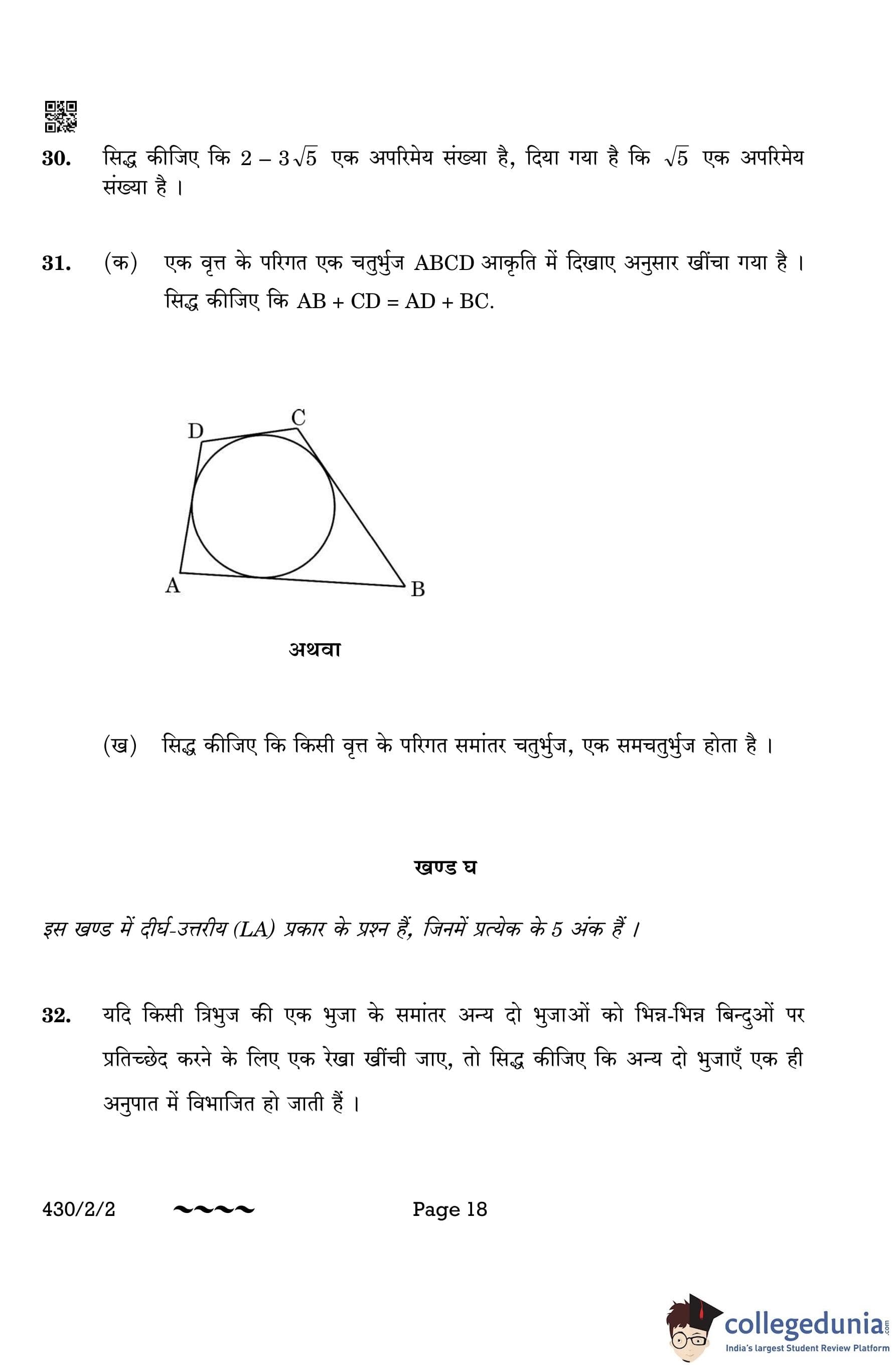 CBSE Class 10 Mathematics Basic (Set 2- 430/2/2) Question Paper 2023 with Answer Key