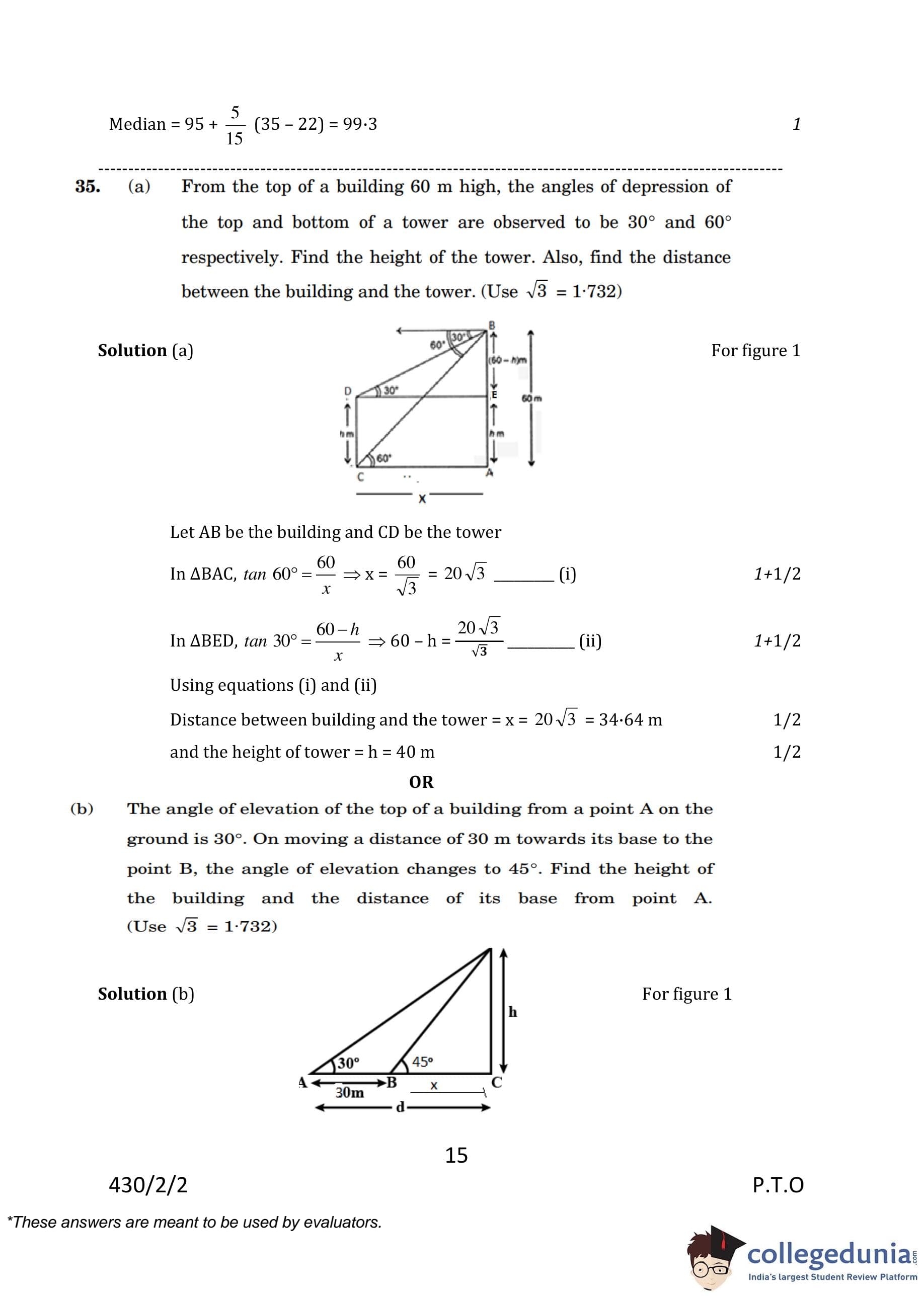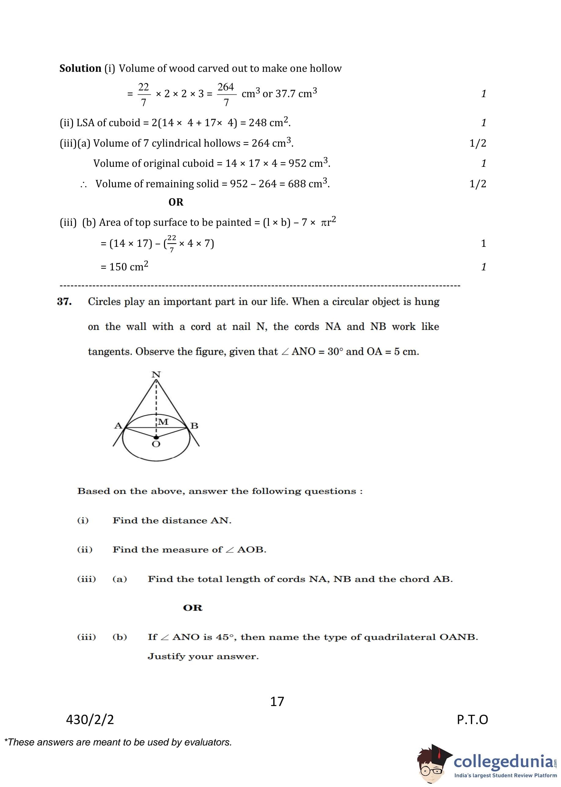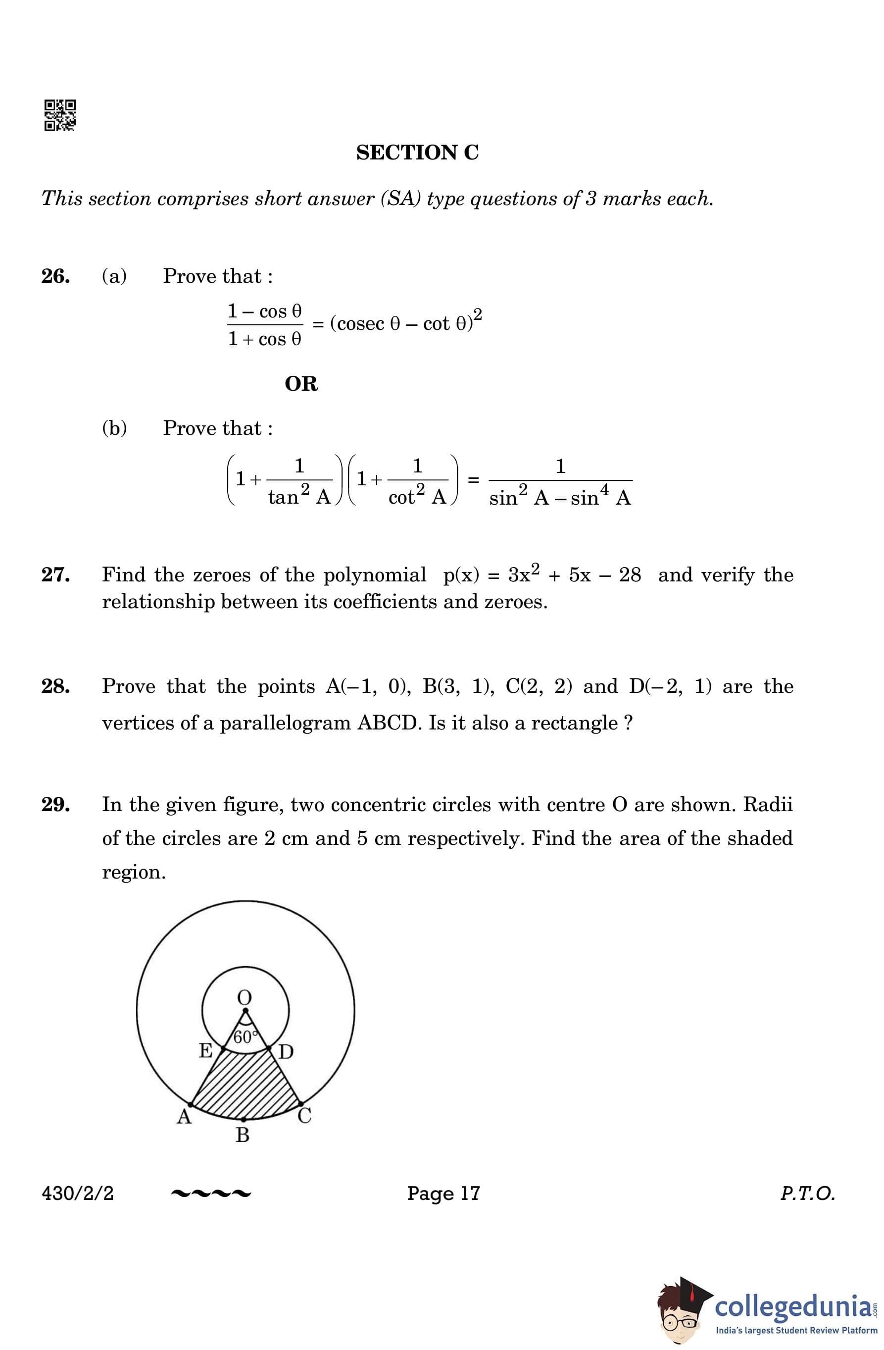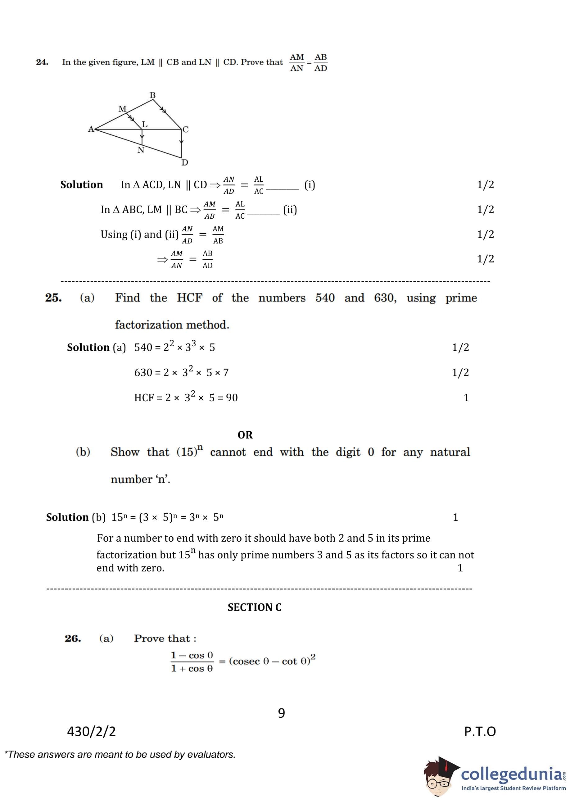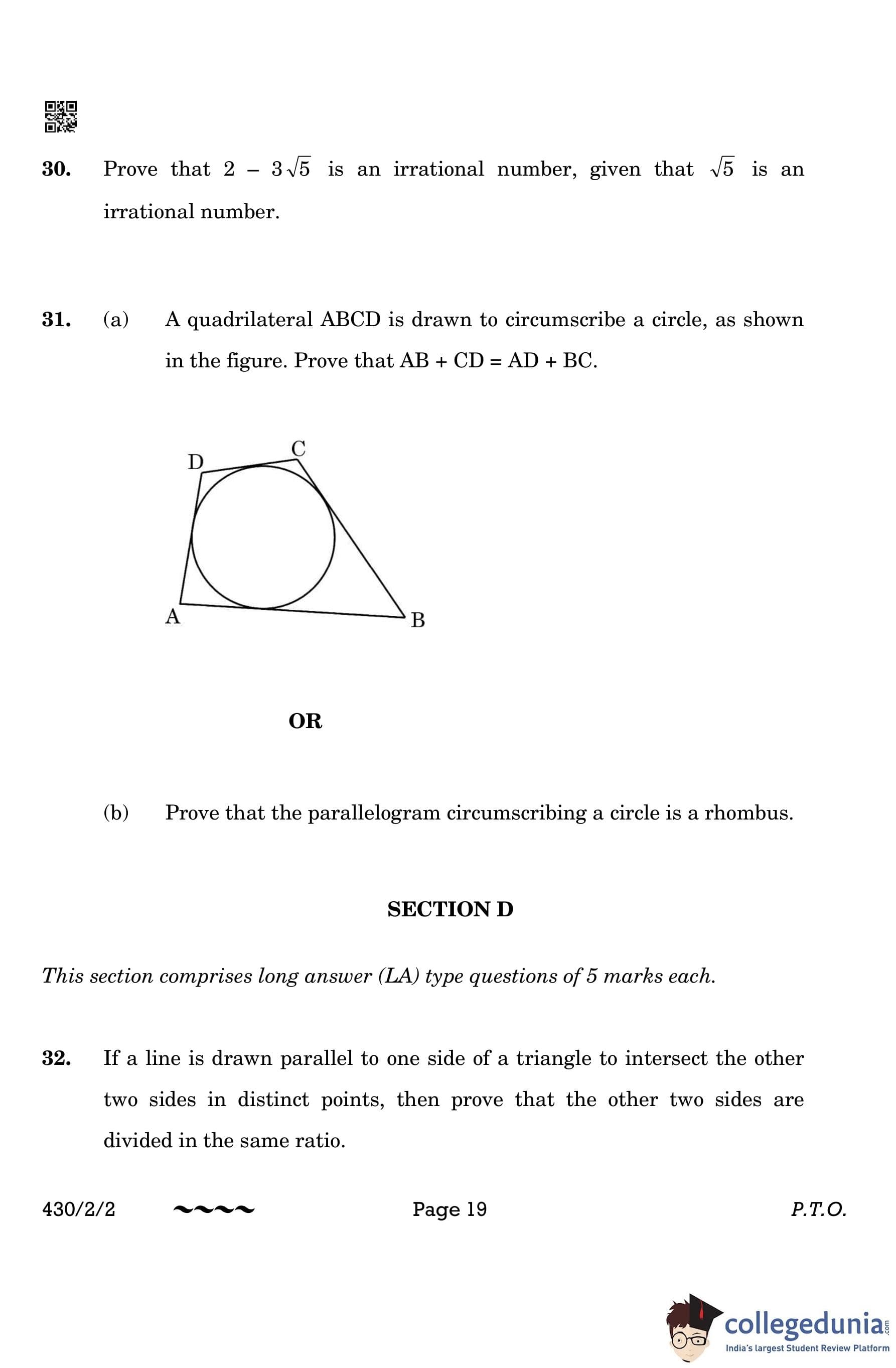 CBSE Class 10 Mathematics Basic (Set 2- 430/2/2) Question Paper 2023 with Answer Key