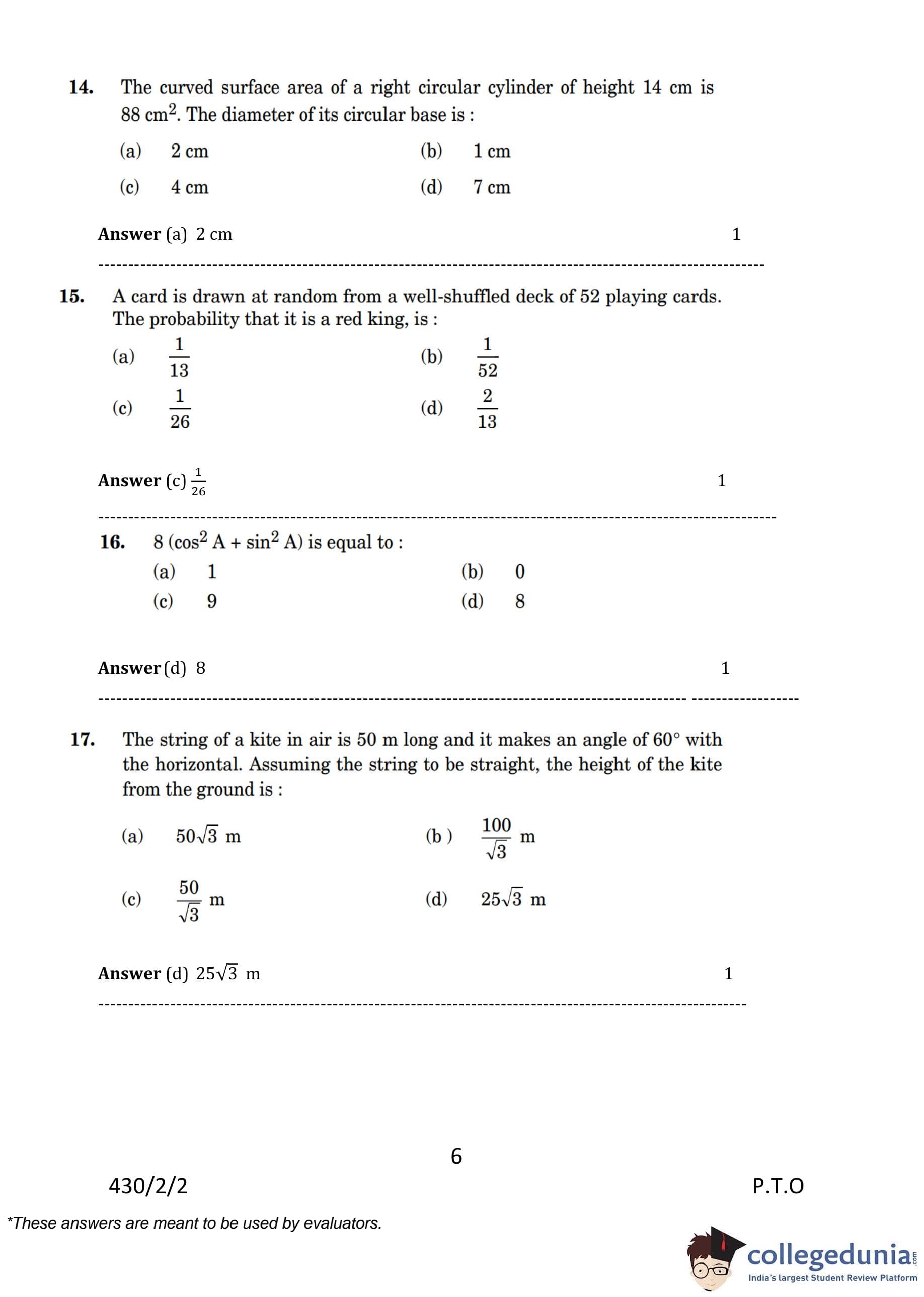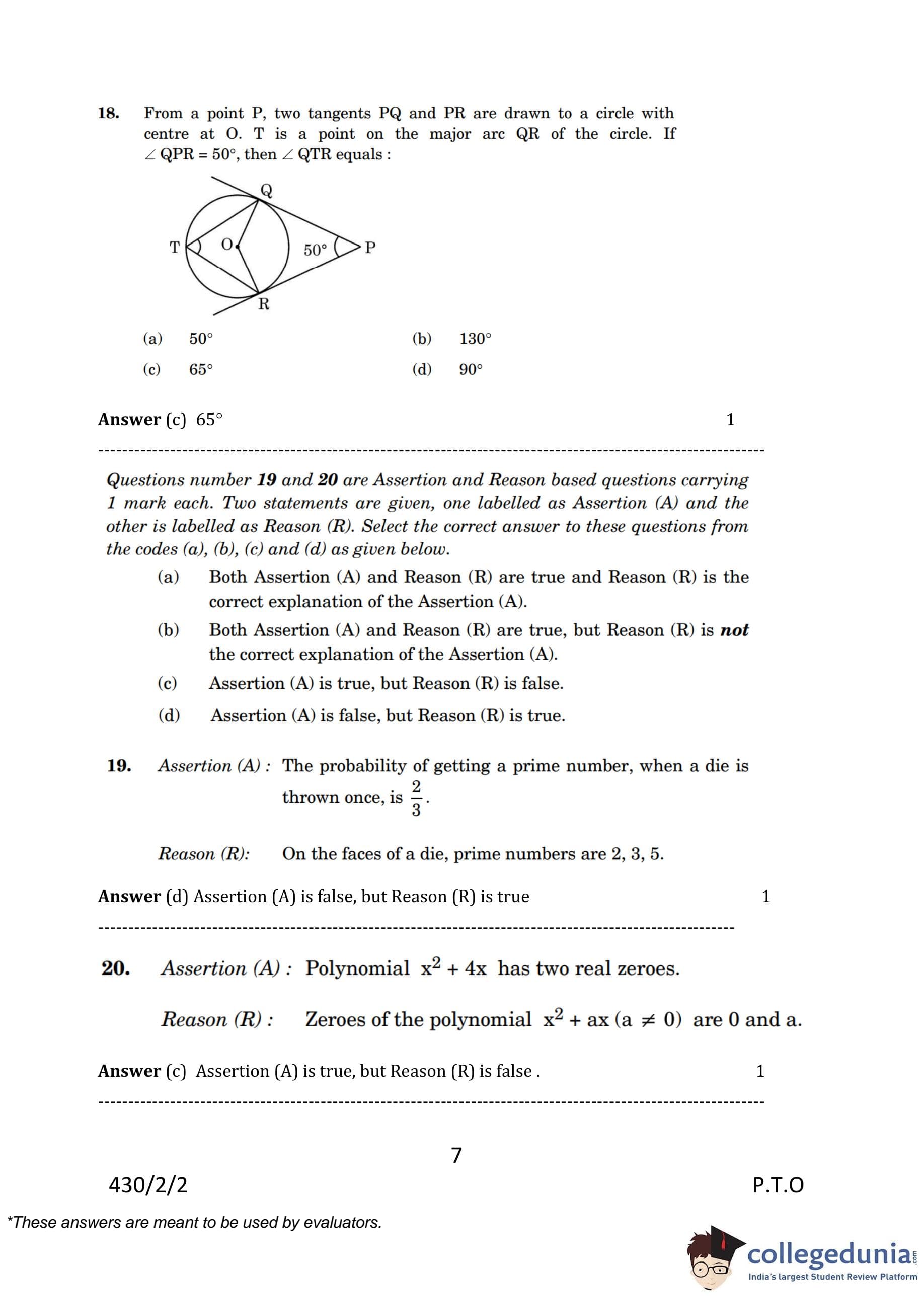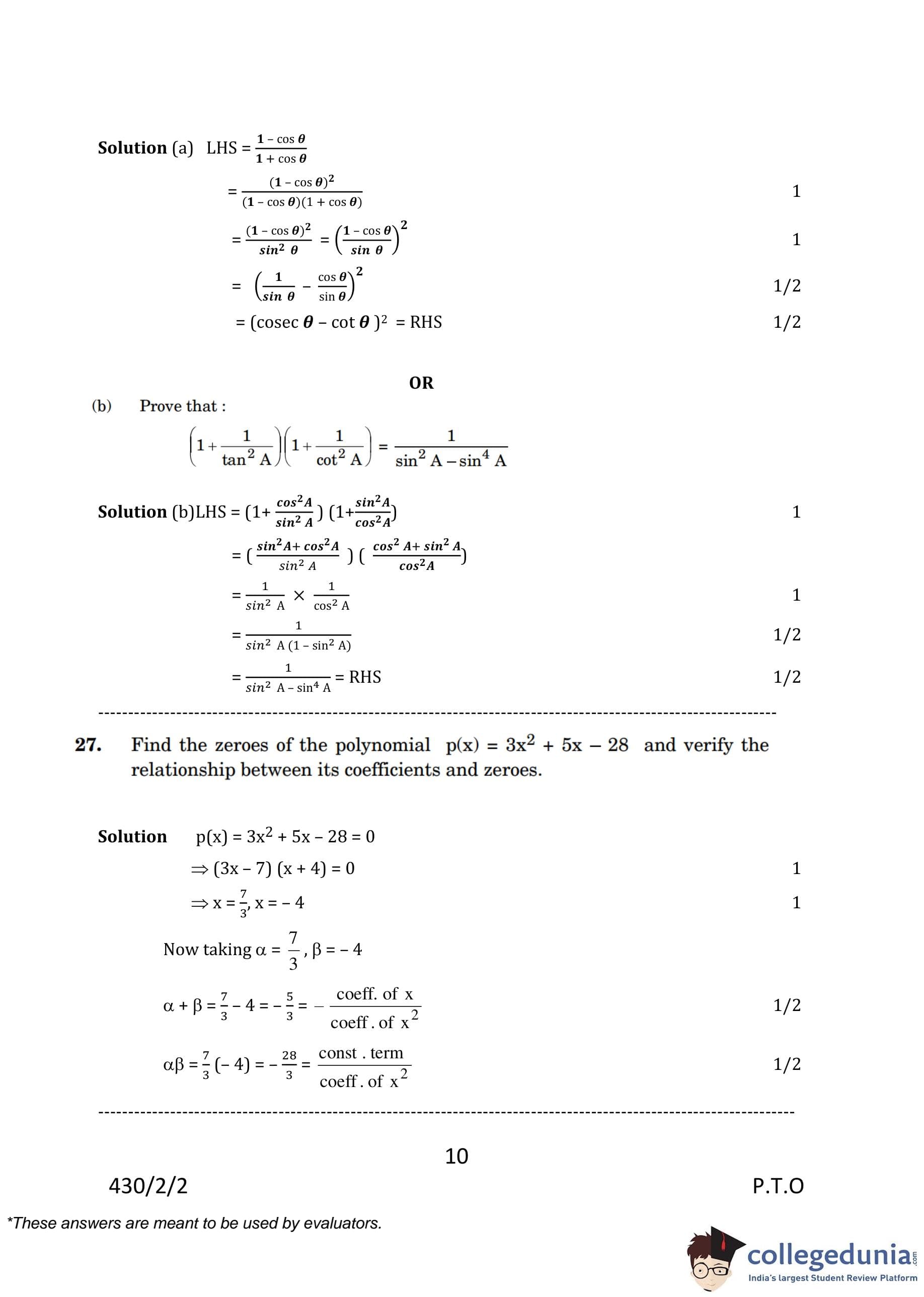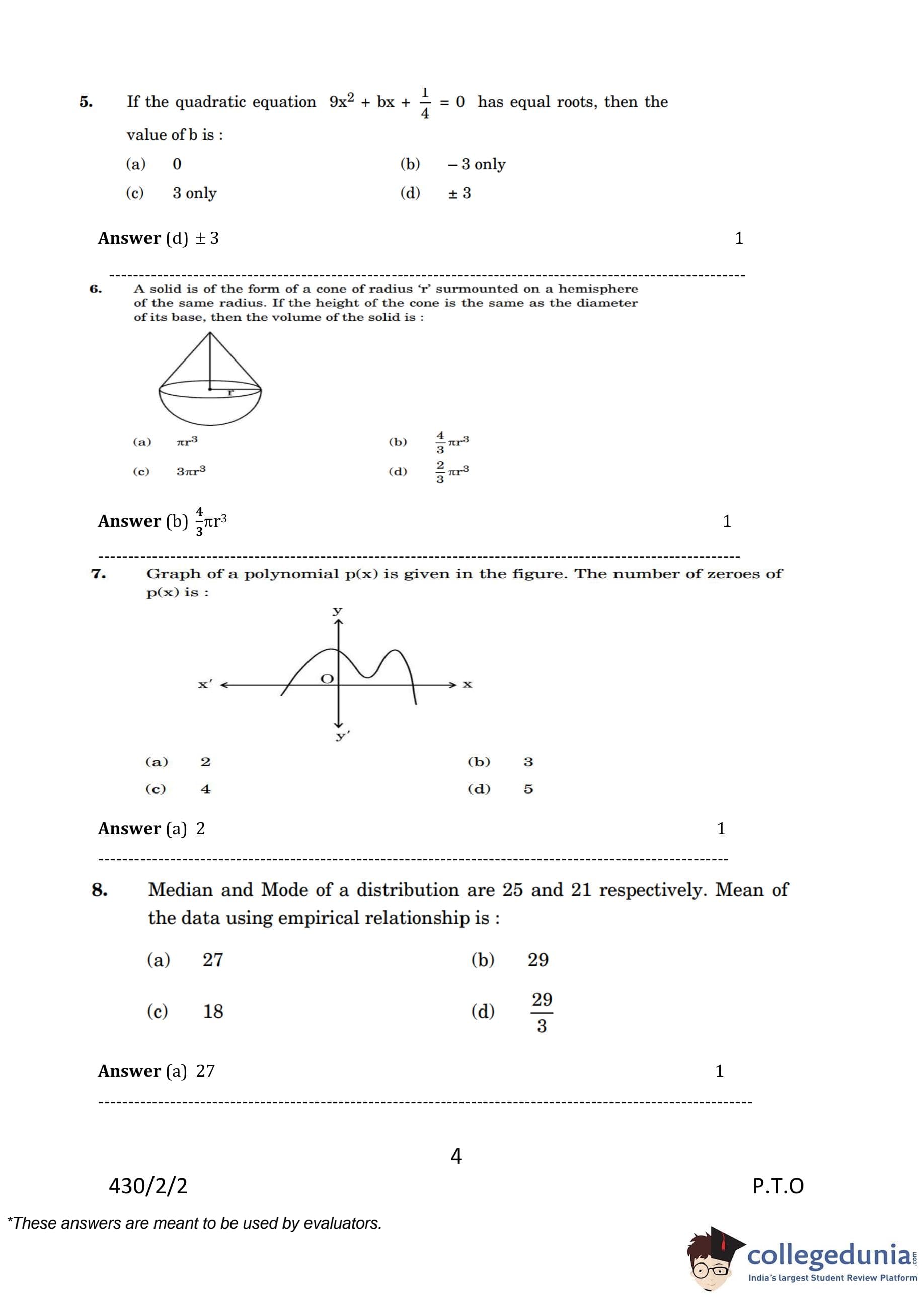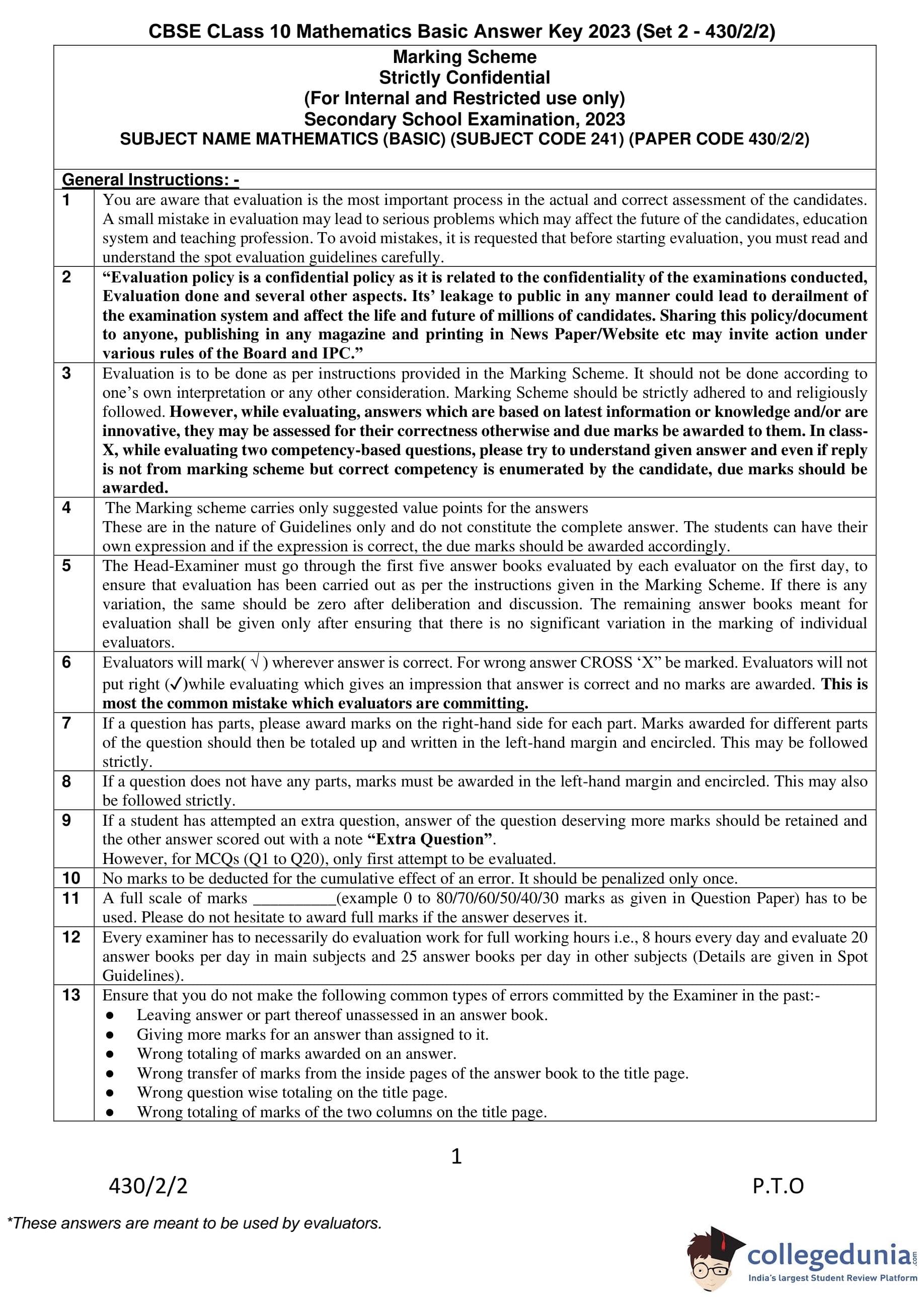 | CBSE Class 10 Mathematics Question Paper 2023 PDF | CBSE Class 10 Mathematics Answer Key 2023 PDF | Detailed Solutions |