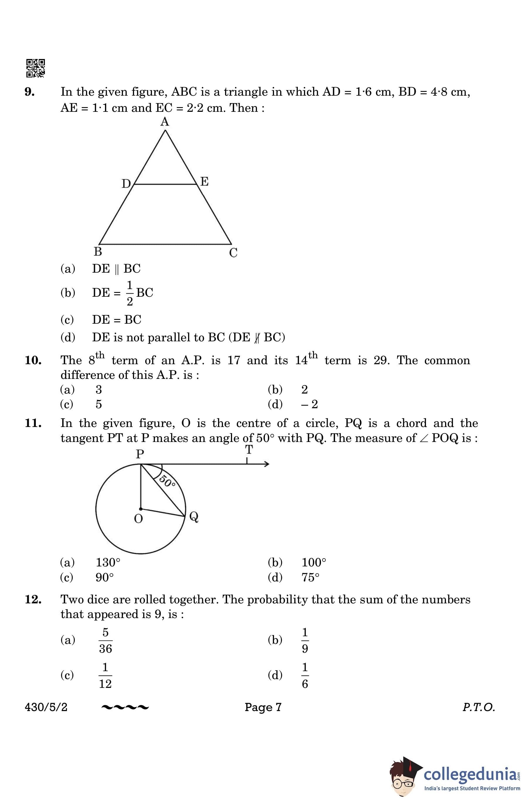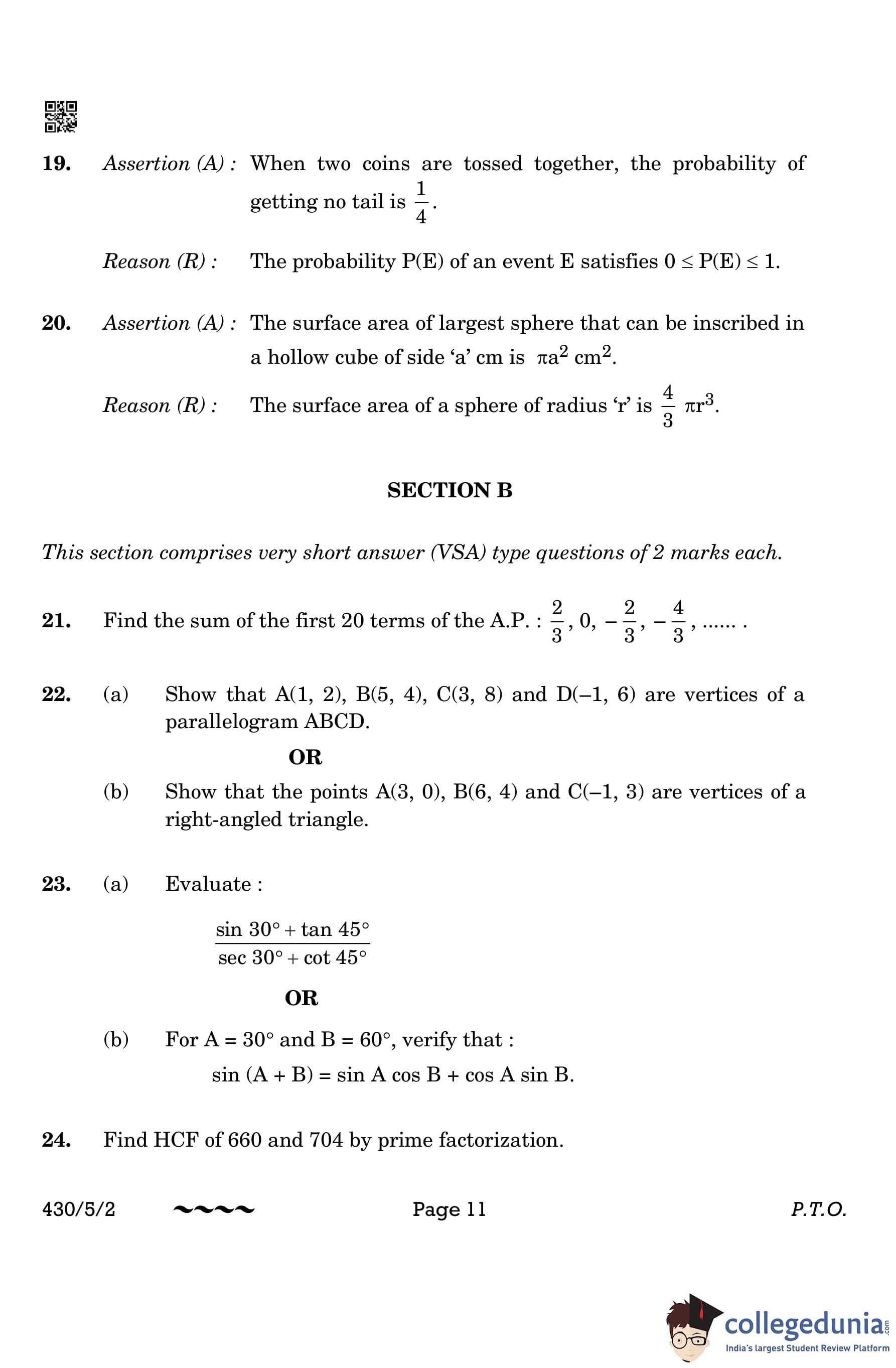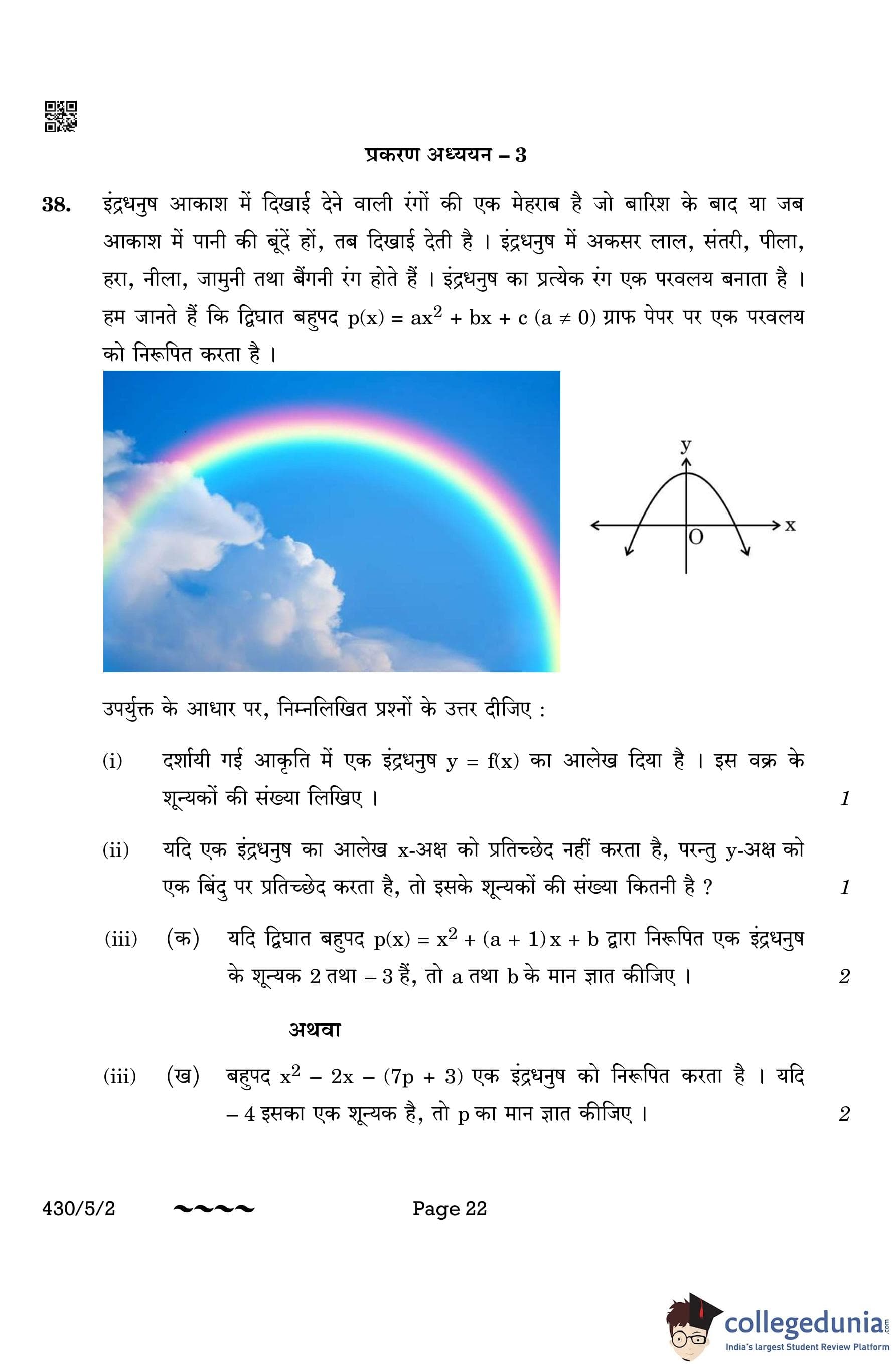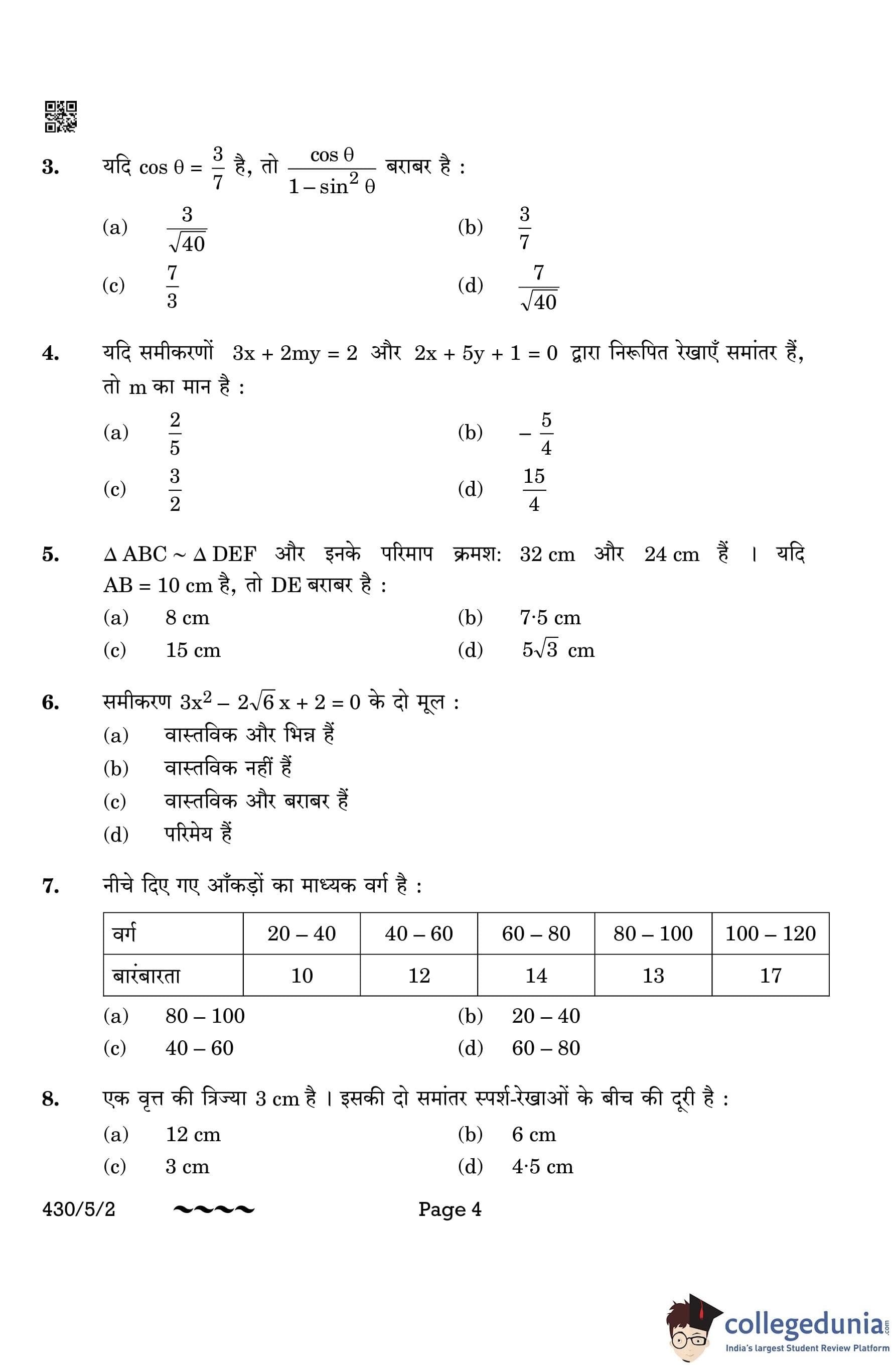 CBSE Class 10 Mathematics Basic Question Paper 2023 with Answer Key (Set 2- 430/5/2) is available for download here. The exam was conducted by the Central Board of Secondary Education on March 21, 2023 in the Morning Session 10:30 AM to 1:30 PM. The medium of paper was English & Hindi. According to initial student reaction, the CBSE Class 10 Mathematics Basic paper was rated as Moderate in difficulty level. The question paper comprised a total of 38 questions divided among 5 sections.
