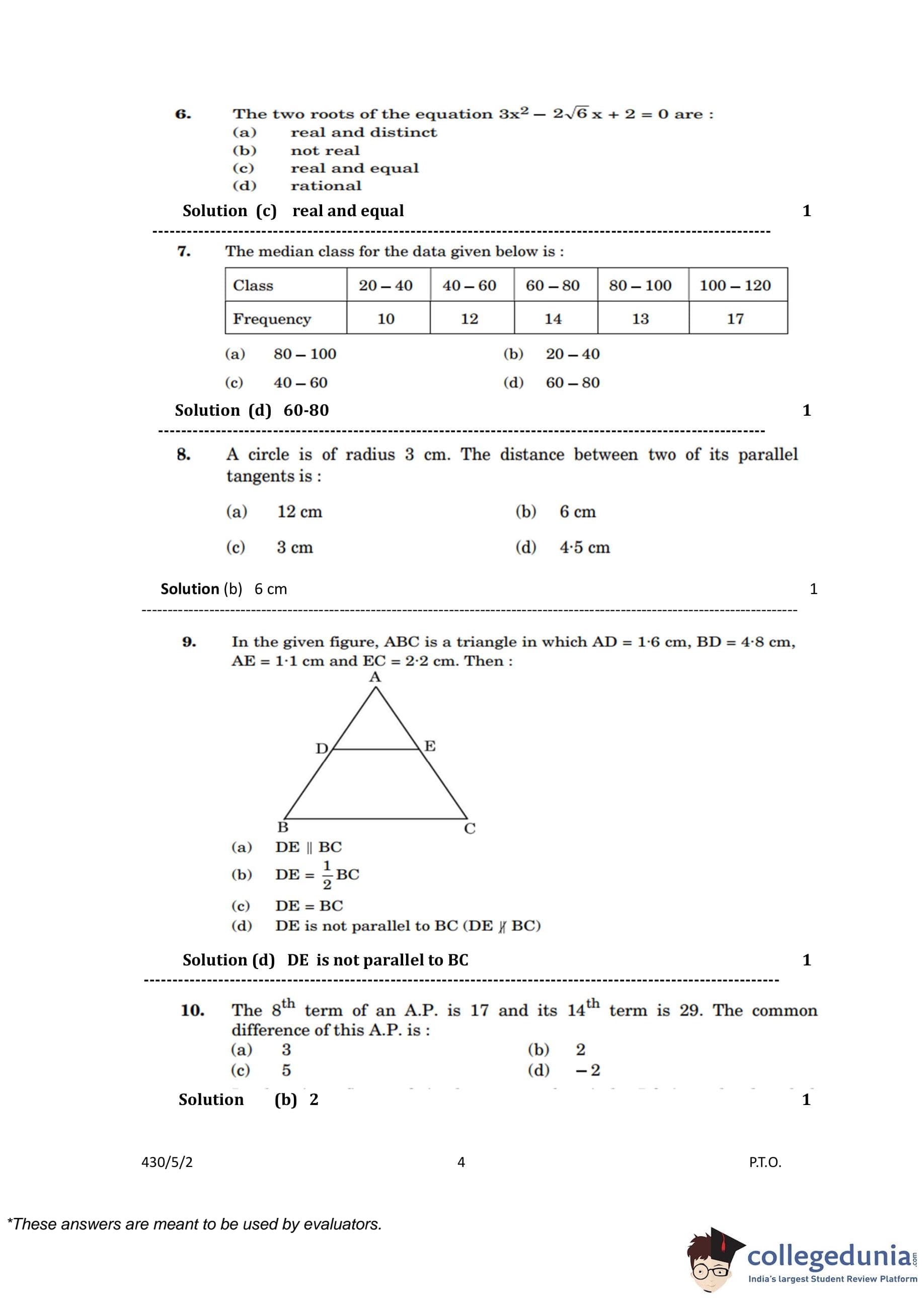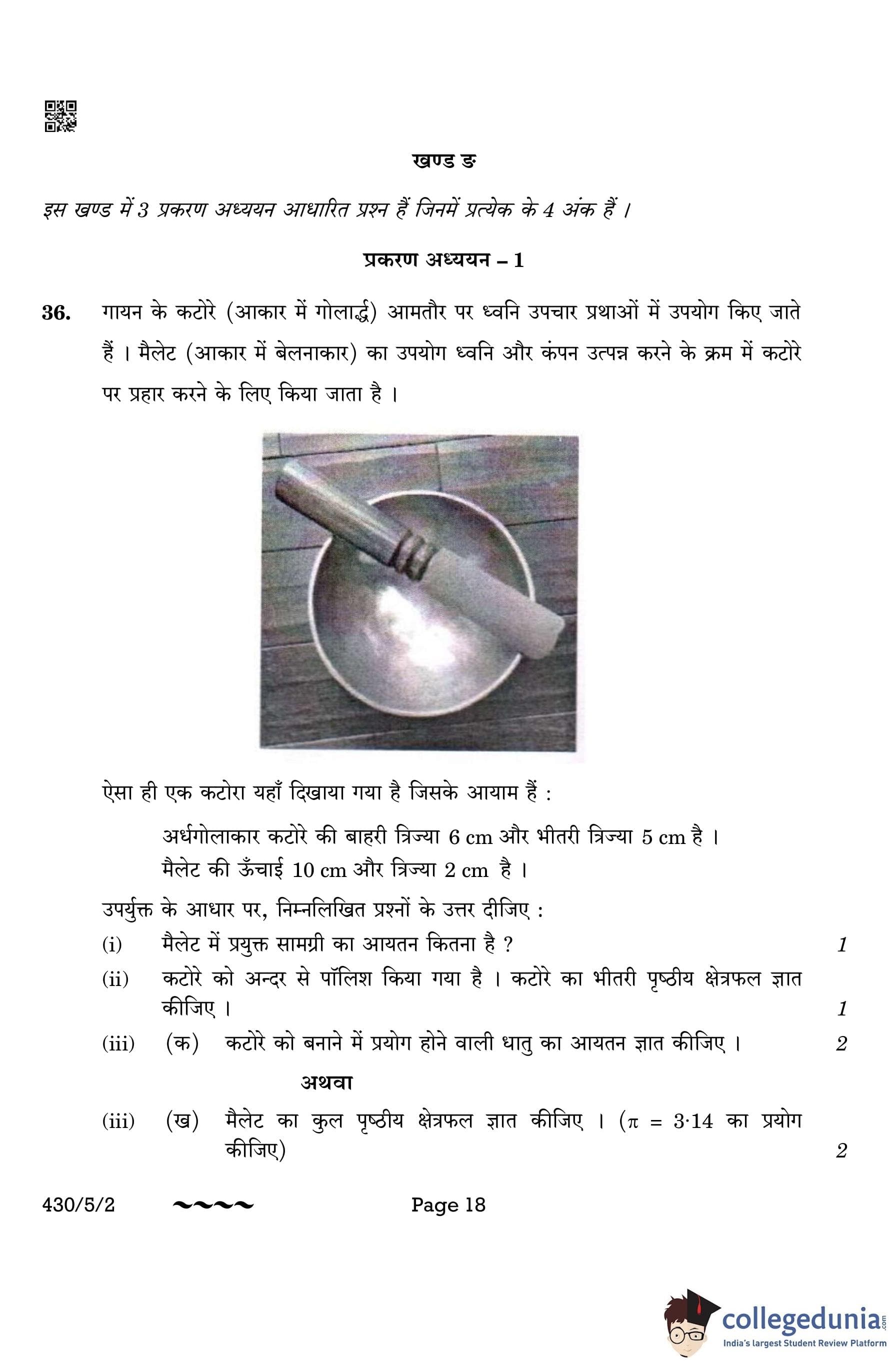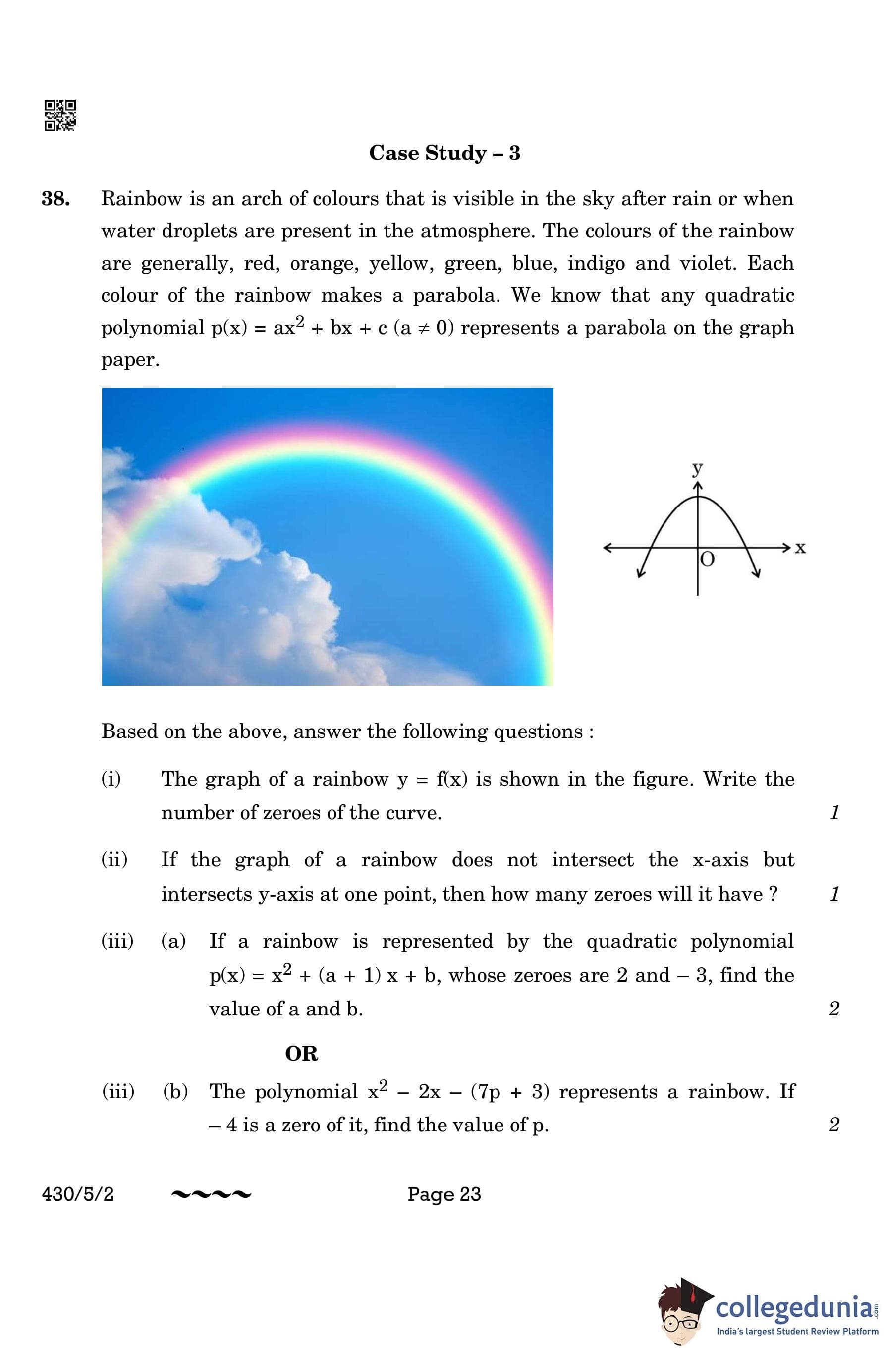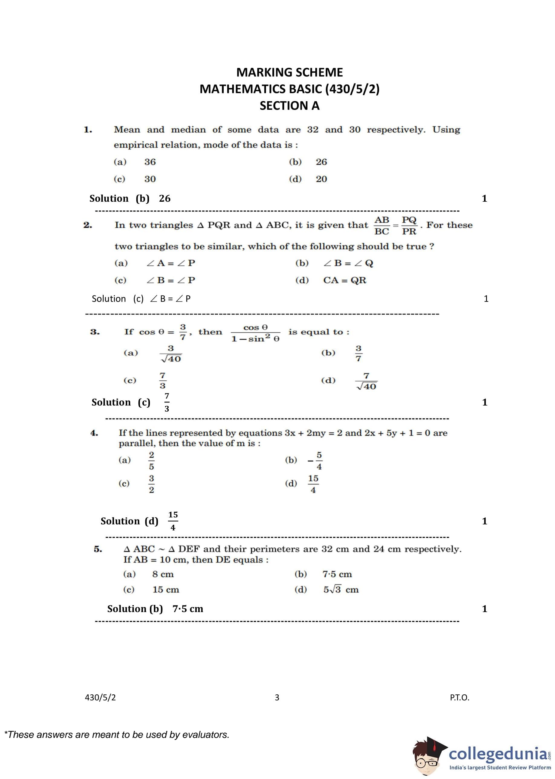 CBSE Class 10 Mathematics Basic (Set 2- 430/5/2) Question Paper 2023 with Answer Key