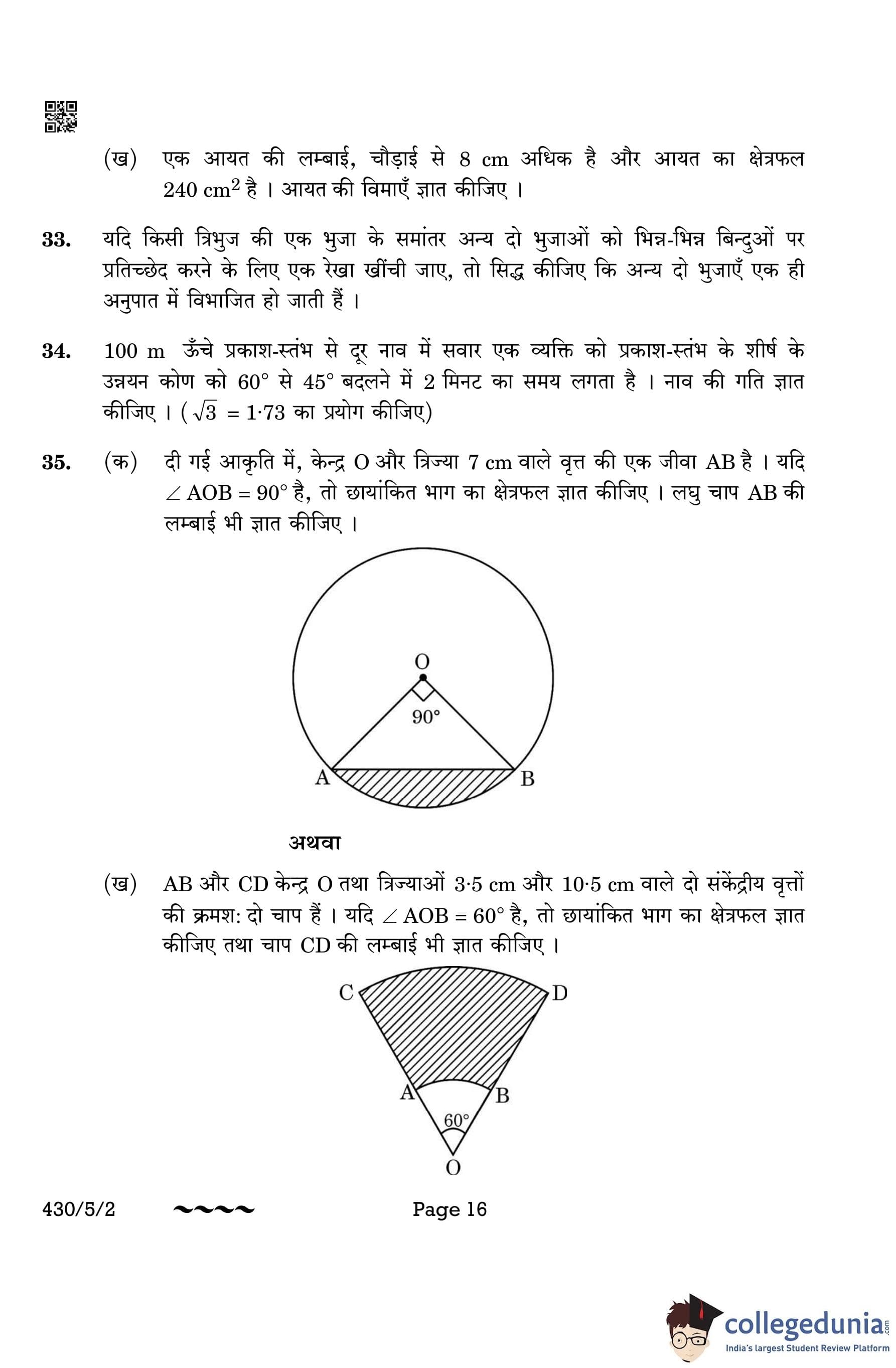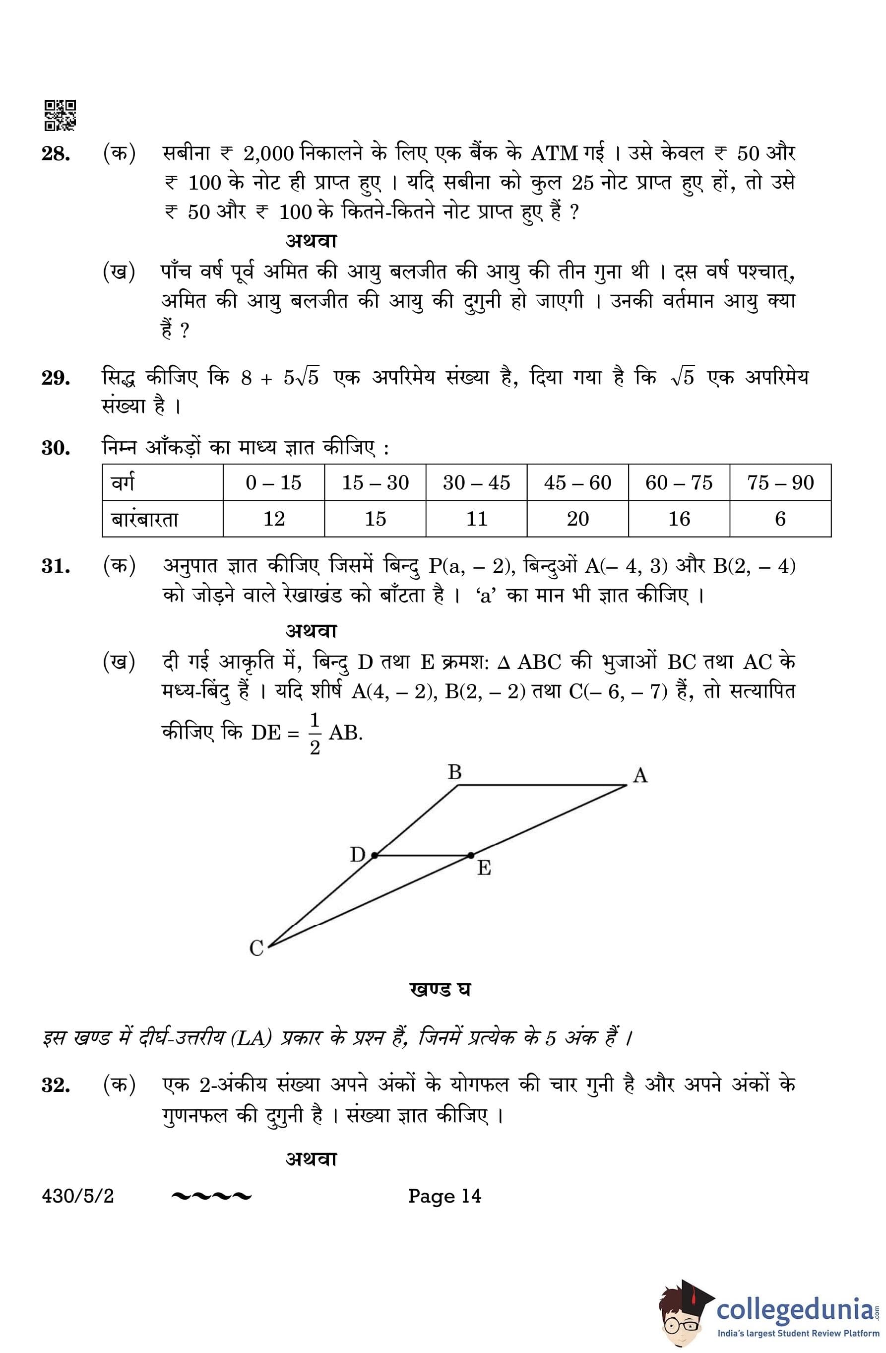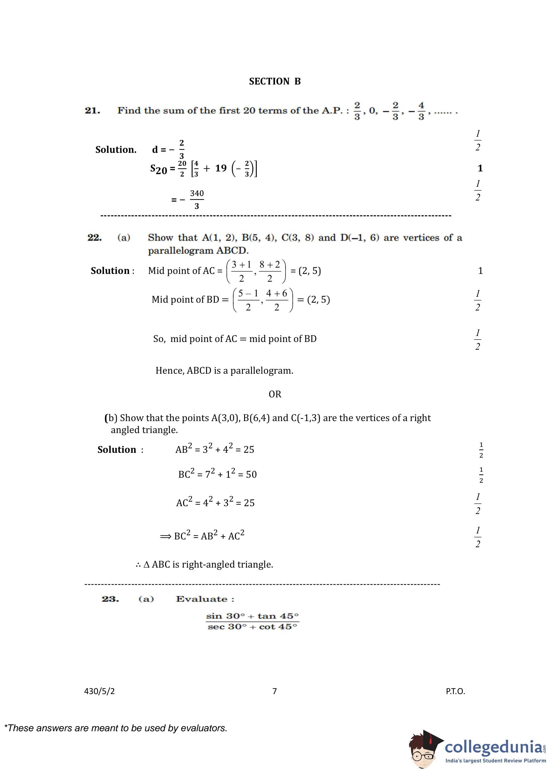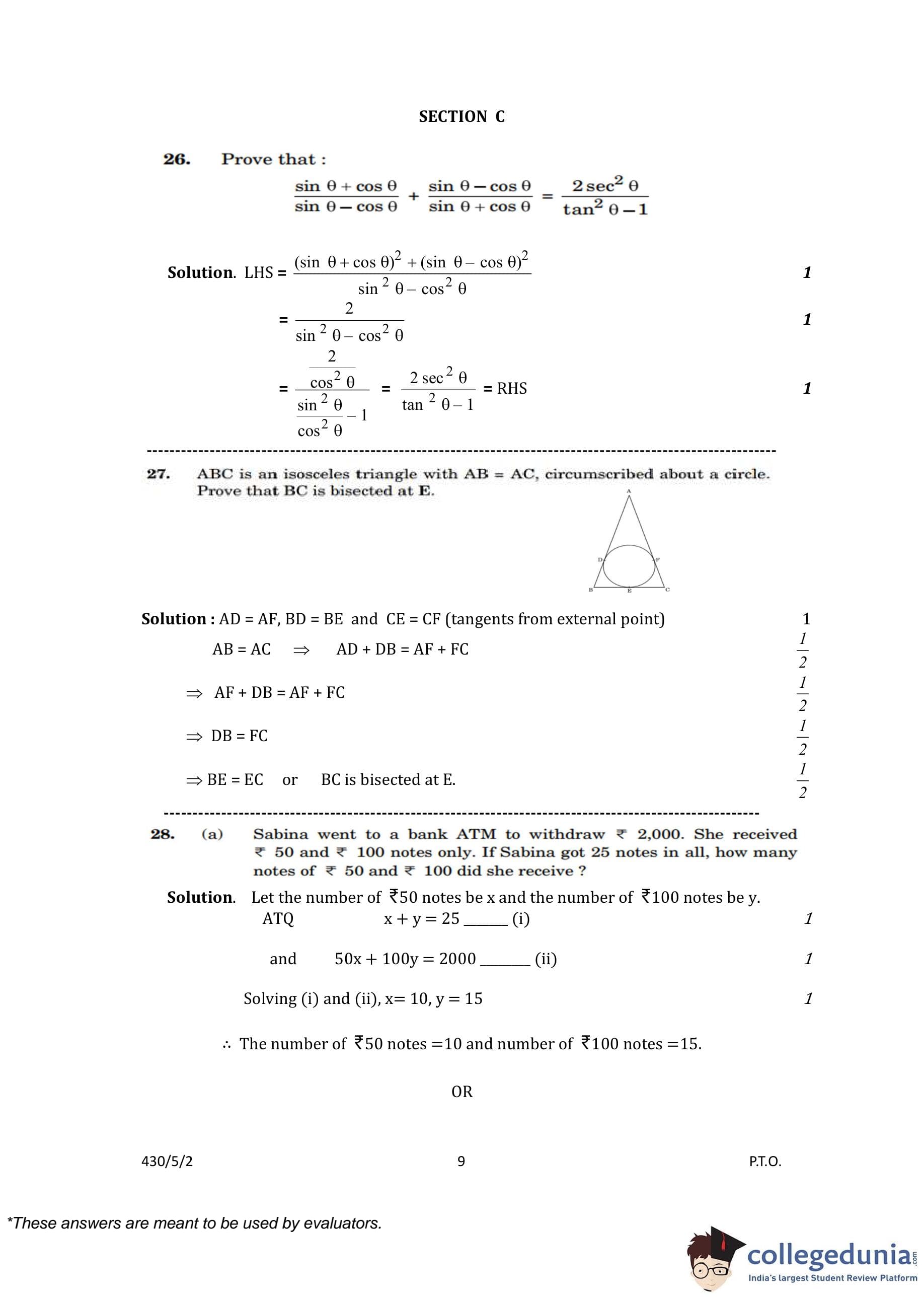 CBSE Class 10 Mathematics Basic (Set 2- 430/5/2) Question Paper 2023 with Answer Key