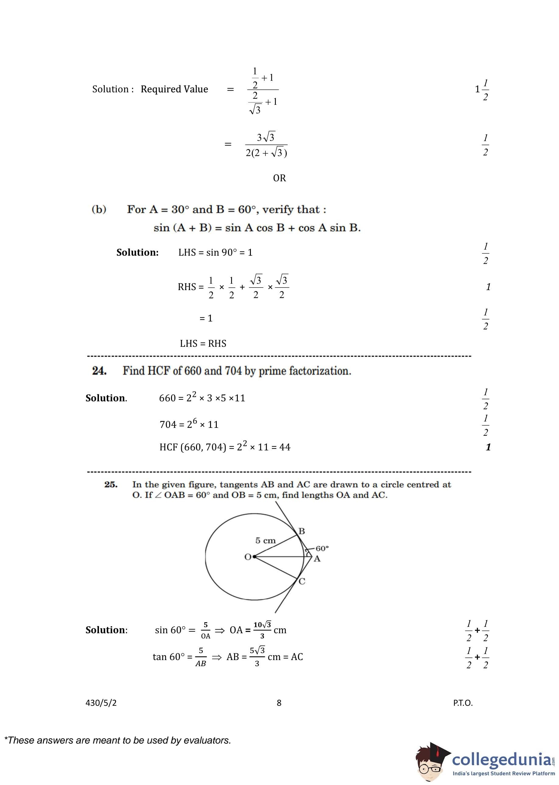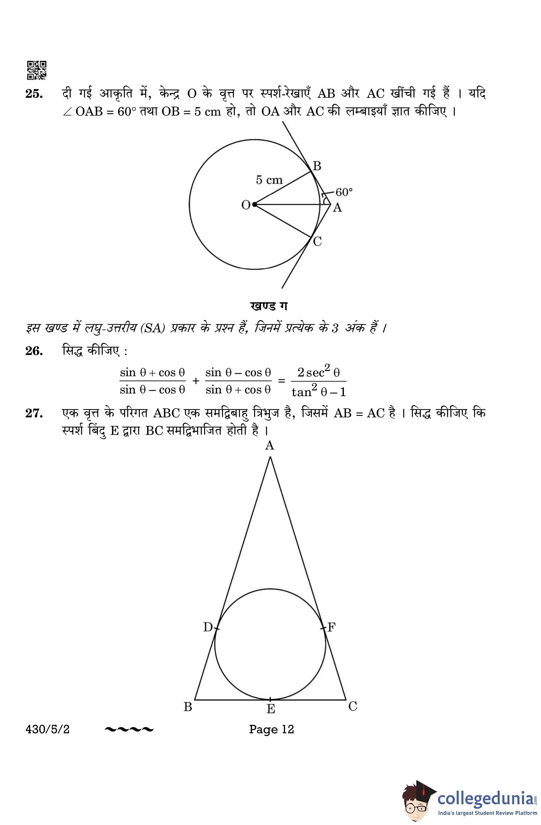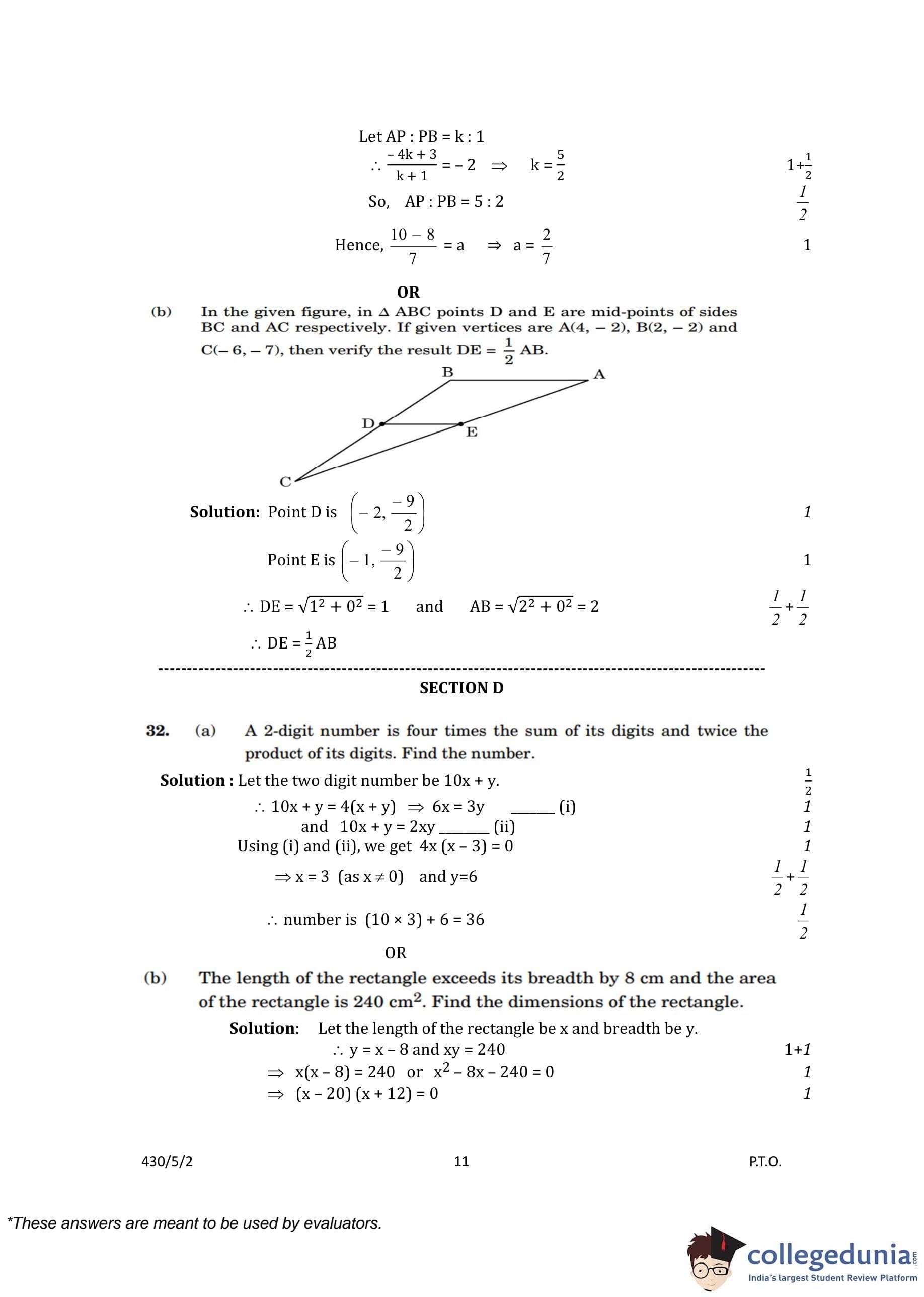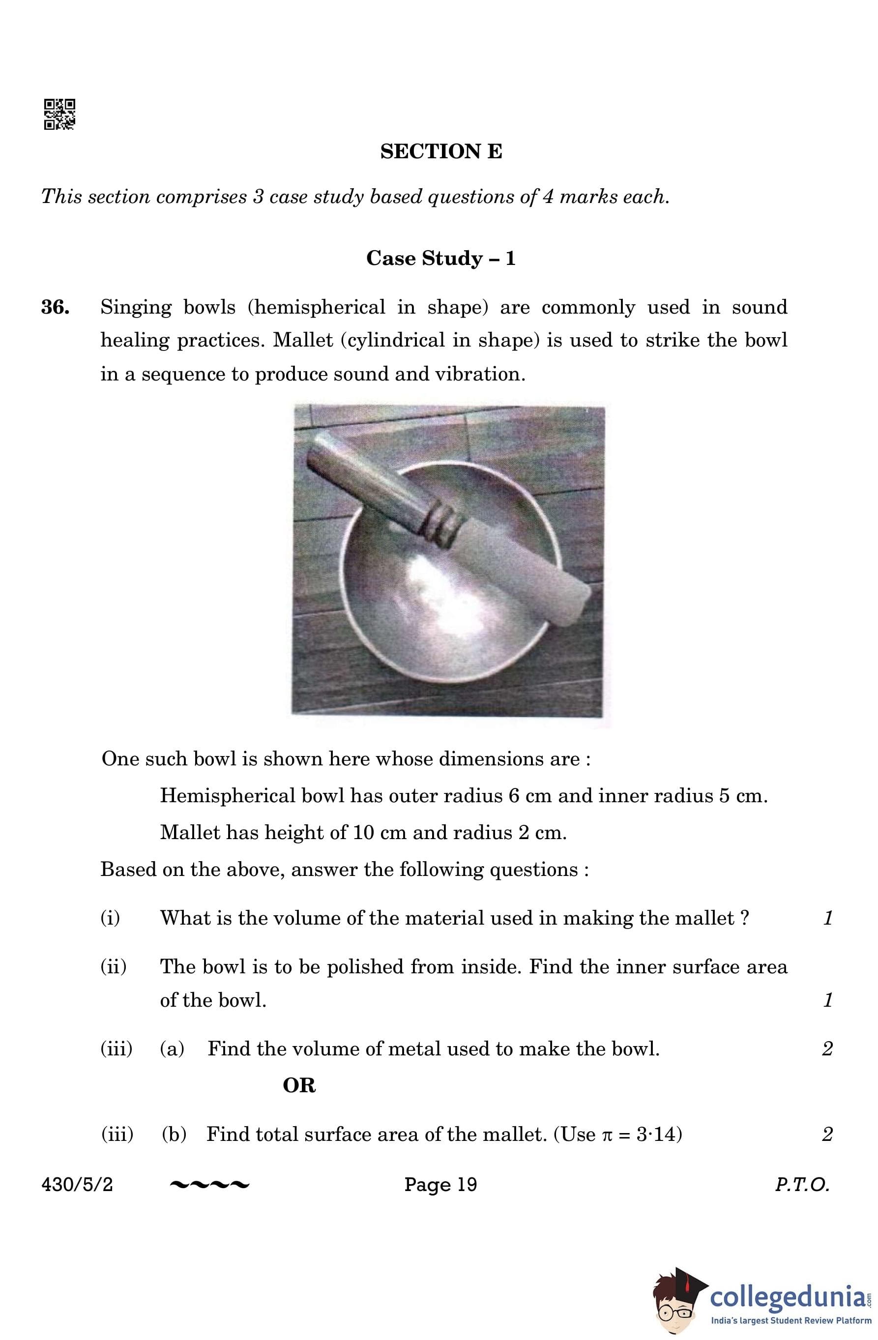 CBSE Class 10 Mathematics Basic (Set 2- 430/5/2) Question Paper 2023 with Answer Key