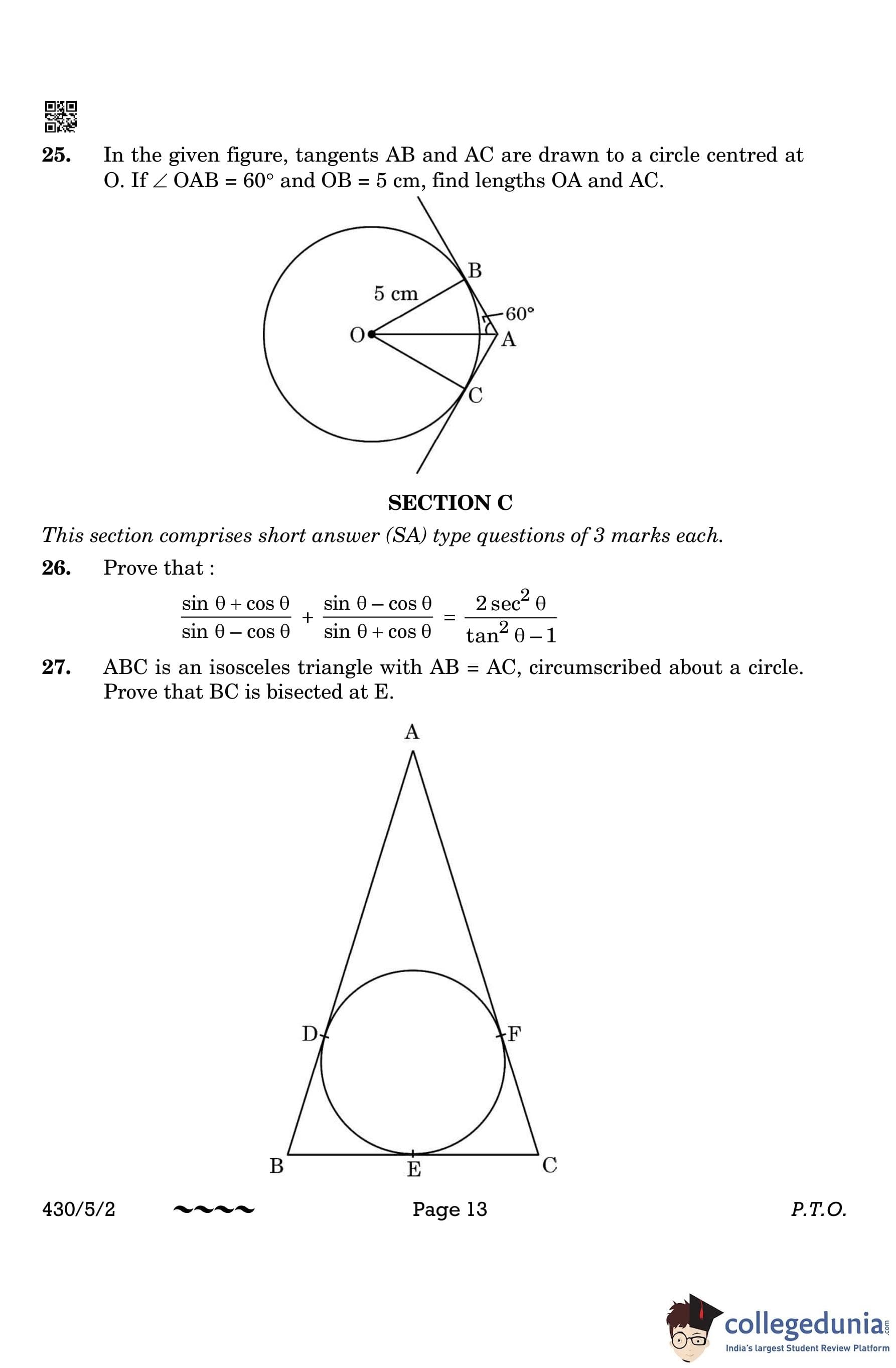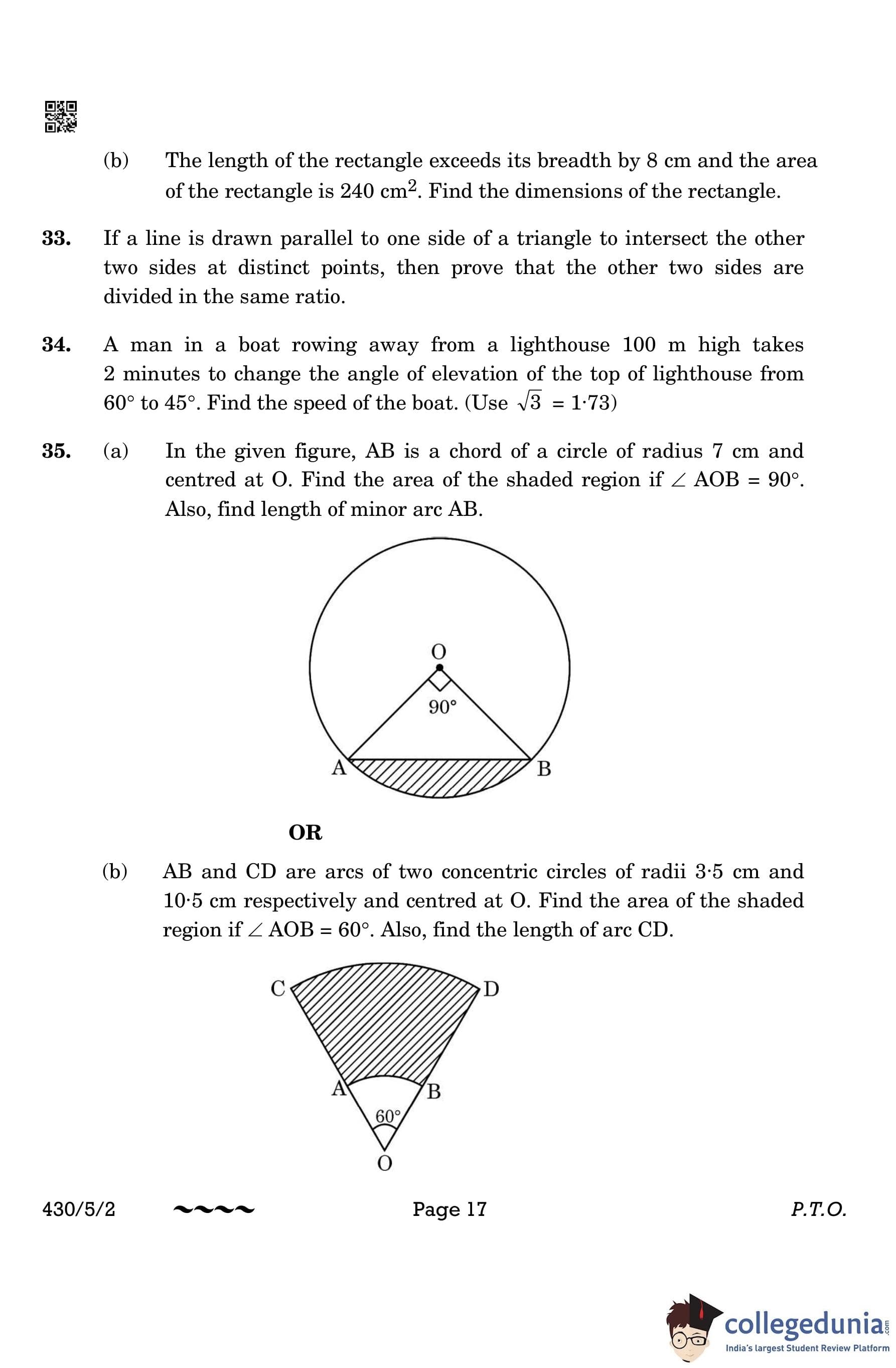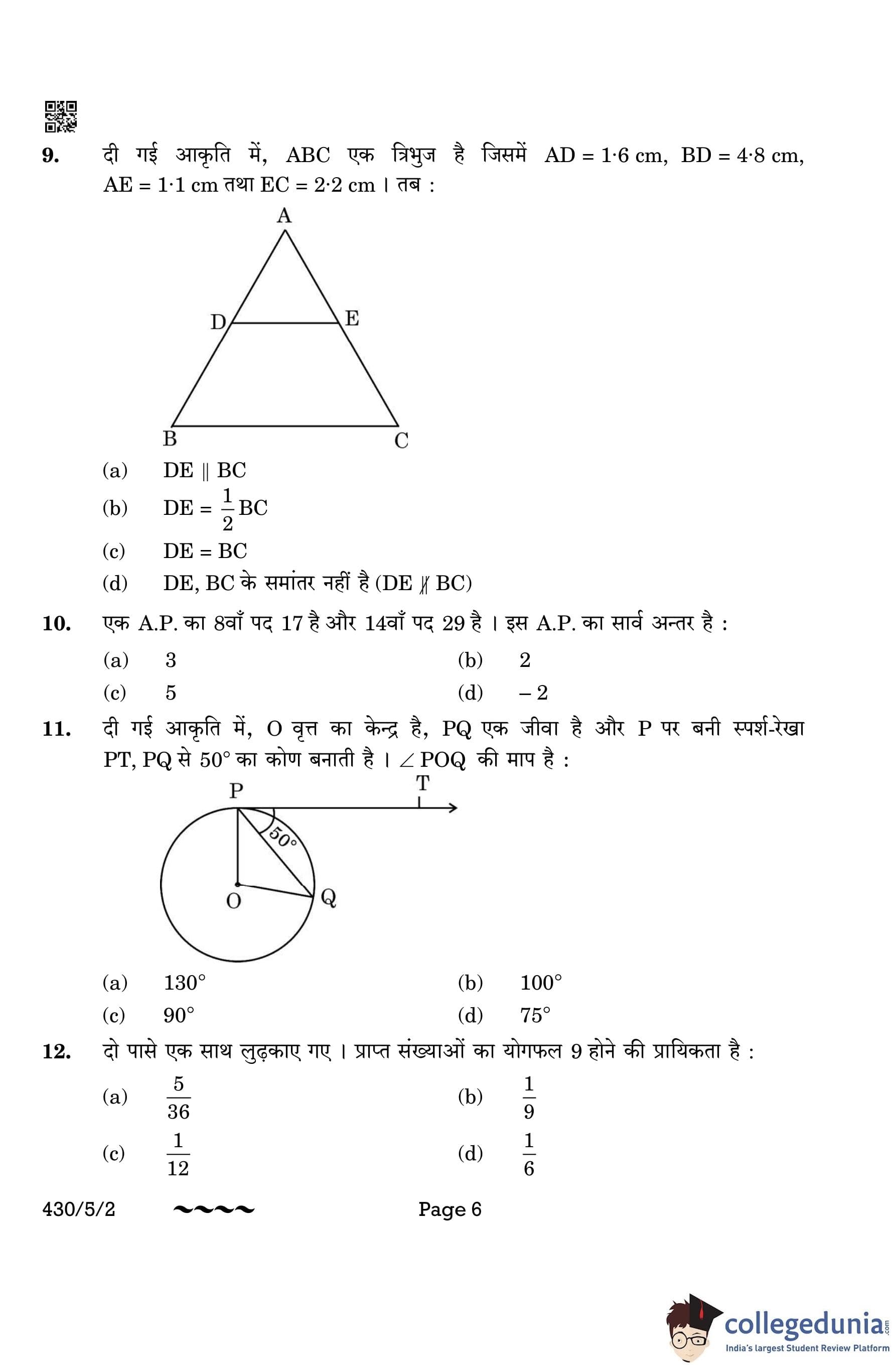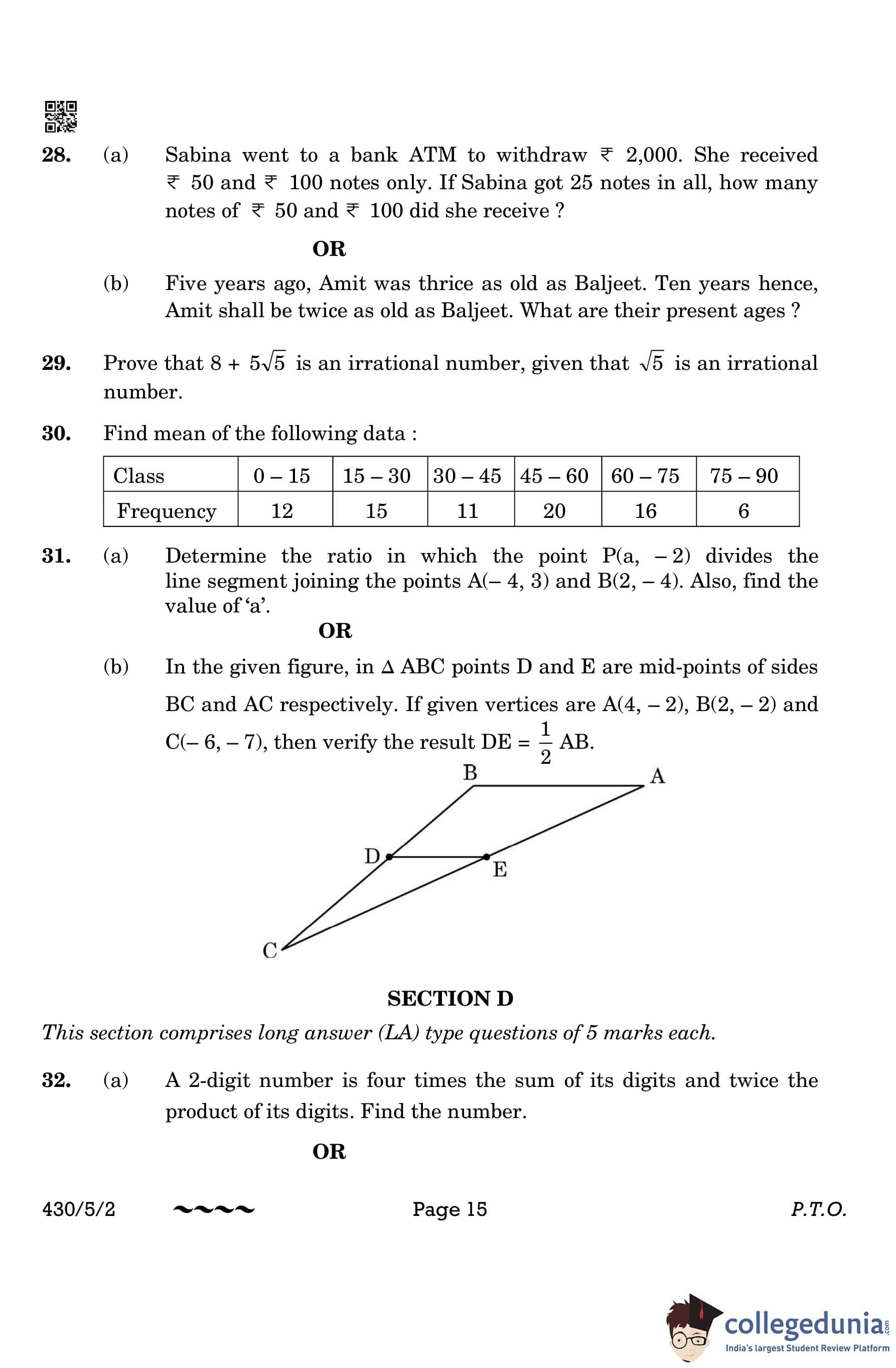 CBSE Class 10 Mathematics Basic (Set 2- 430/5/2) Question Paper 2023 with Answer Key