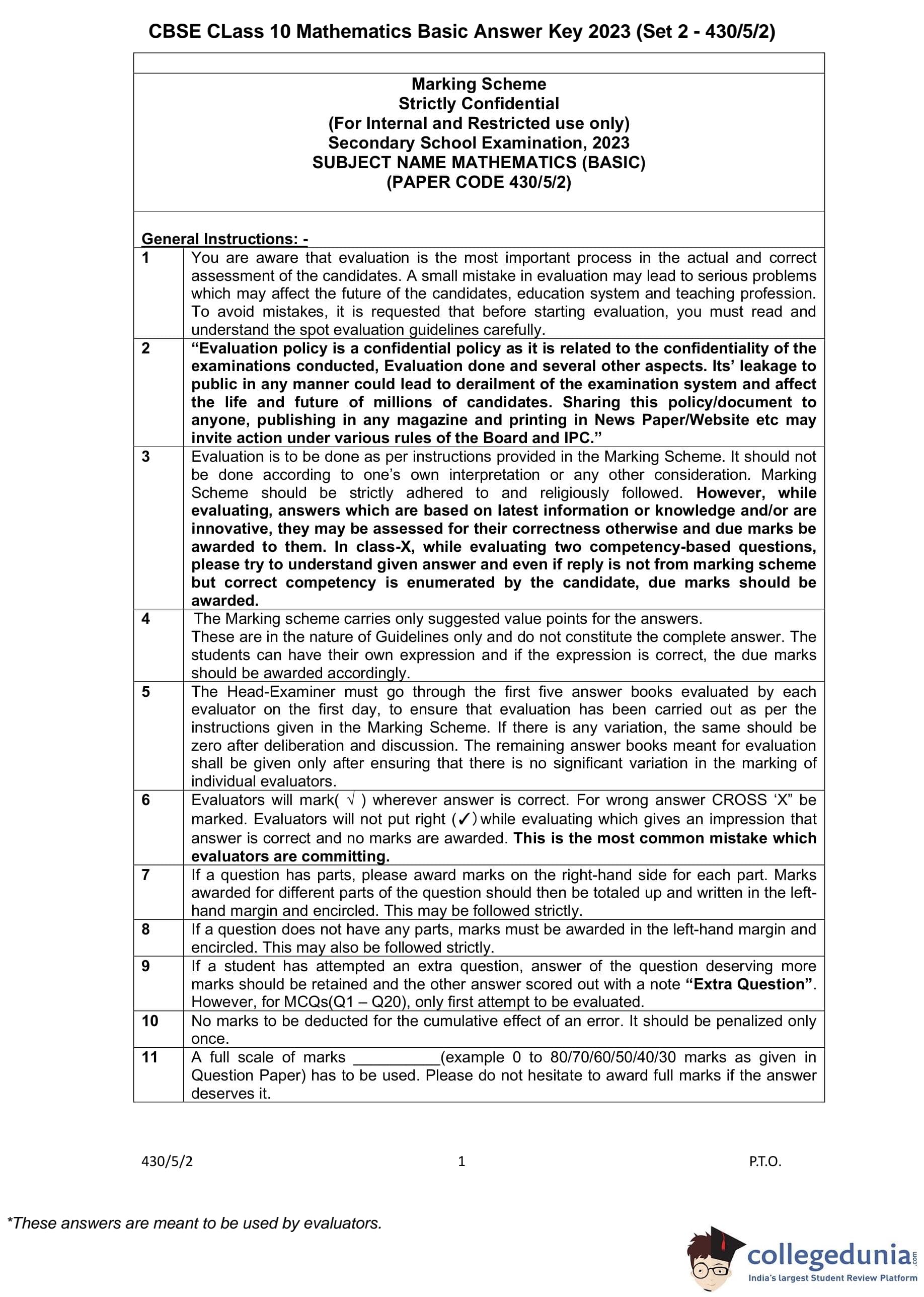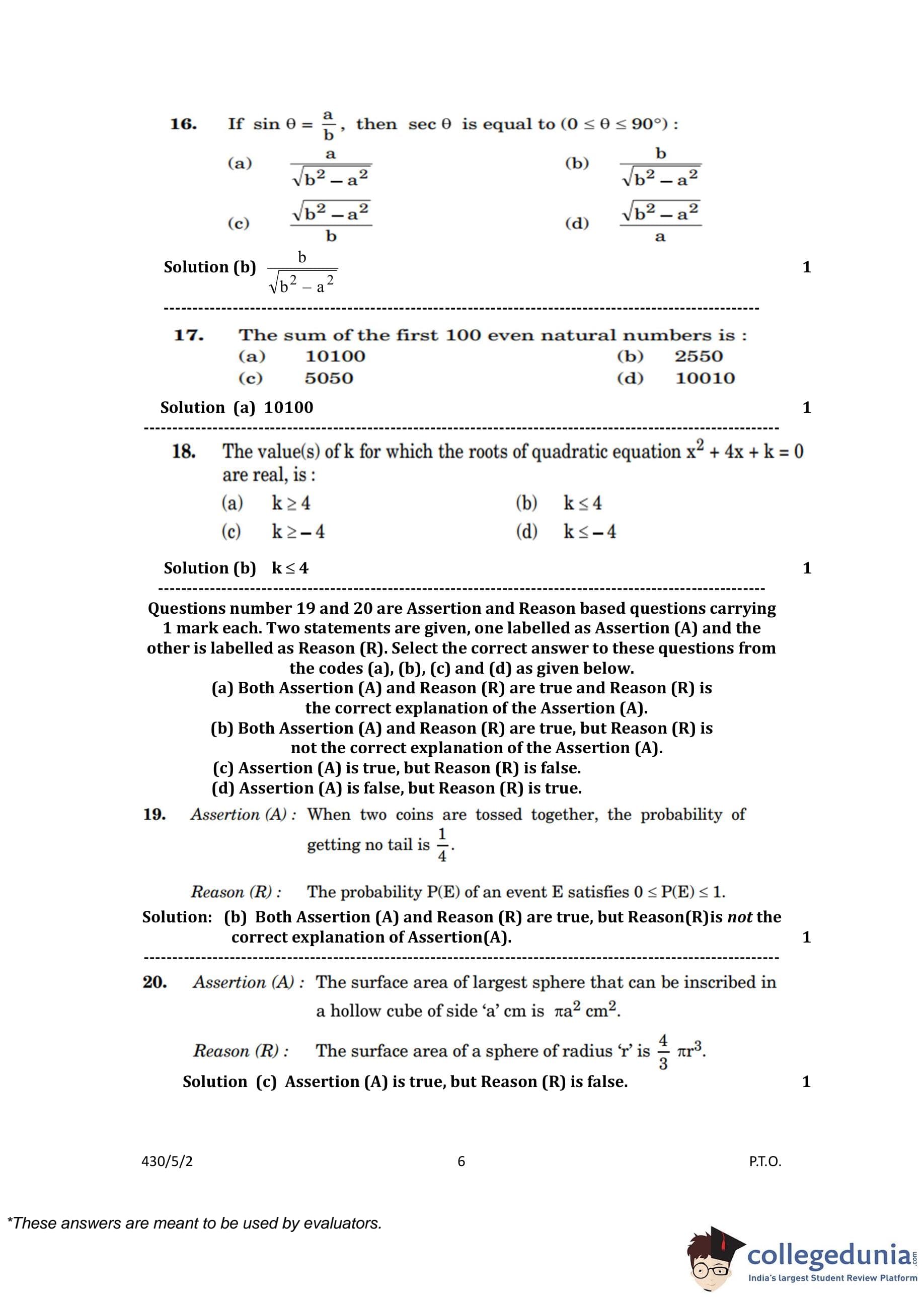 | CBSE Class 10 Mathematics Question Paper 2023 PDF | CBSE Class 10 Mathematics Answer Key 2023 PDF | Detailed Solutions |