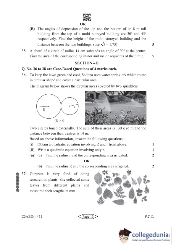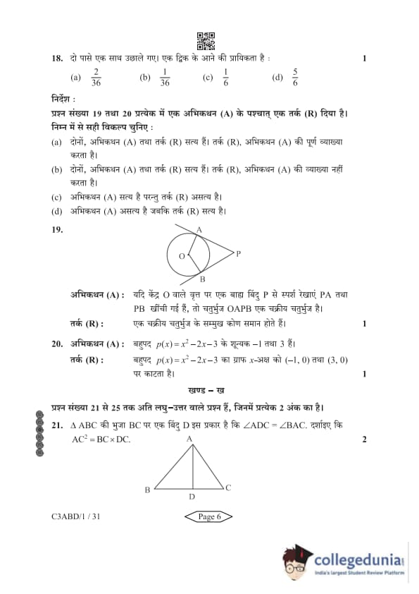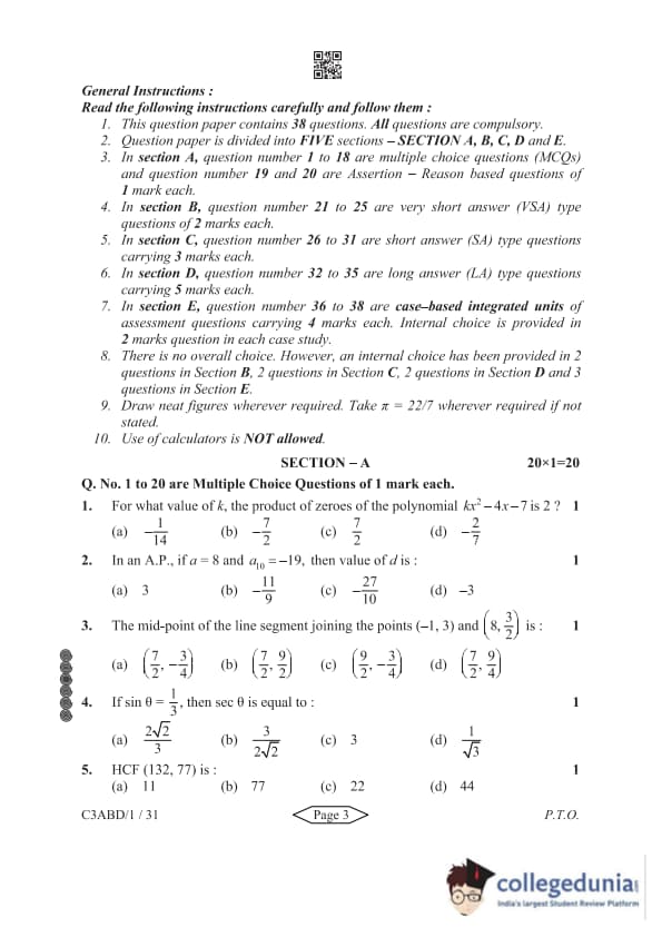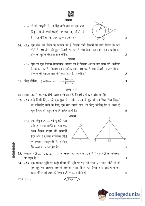 | CBSE Class 10 Mathematics Question Paper with Answer Key (Set 1 – 430/1/1) | Check Solution |
