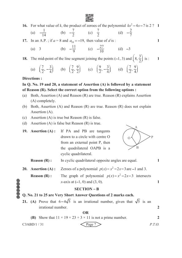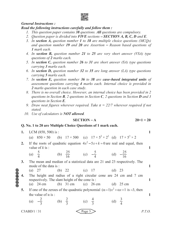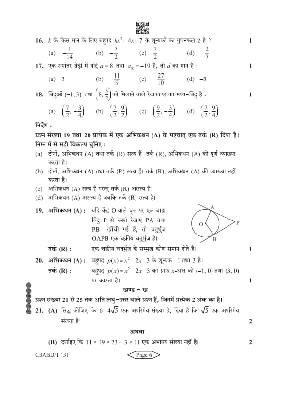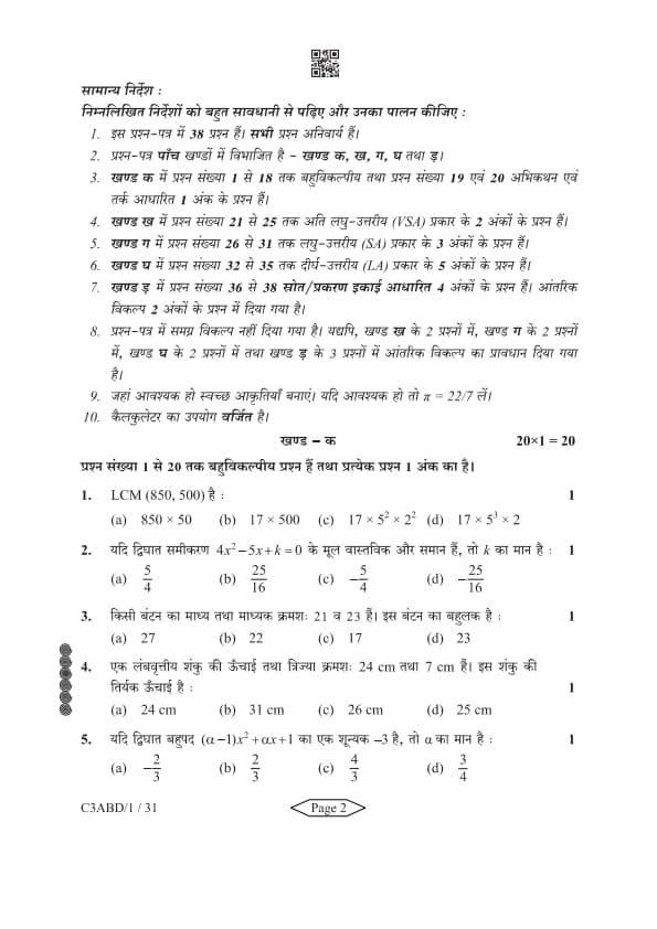 | CBSE Class 10 Mathematics Question Paper with Answer Key (Set 2 – 430/1/2) | Check Solution |