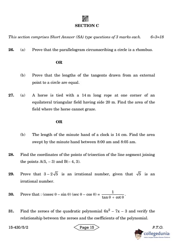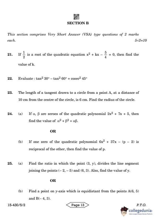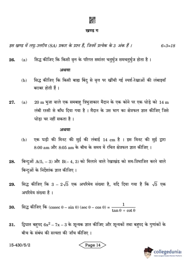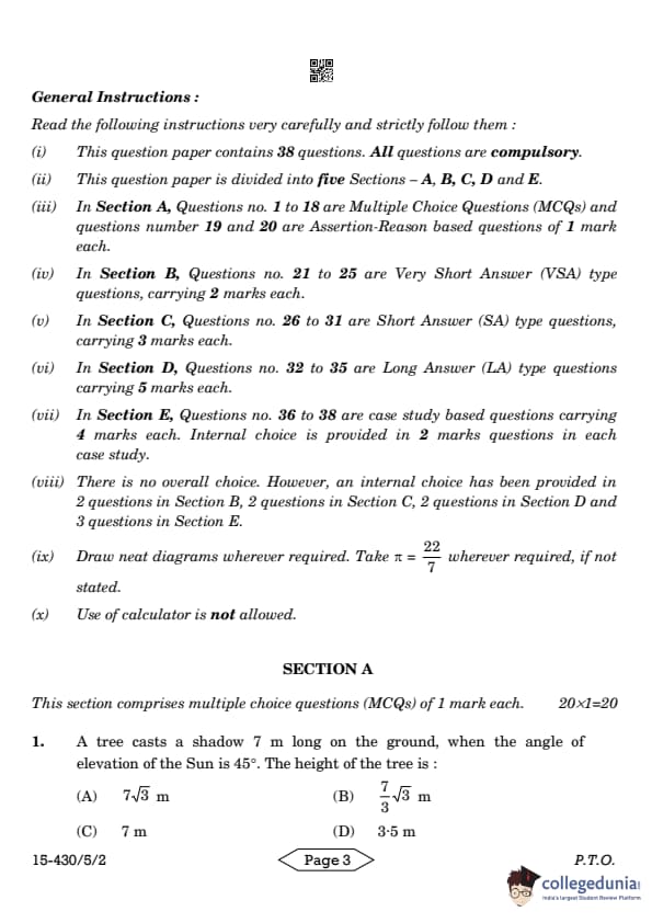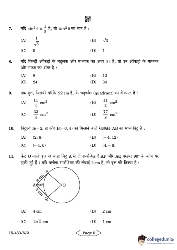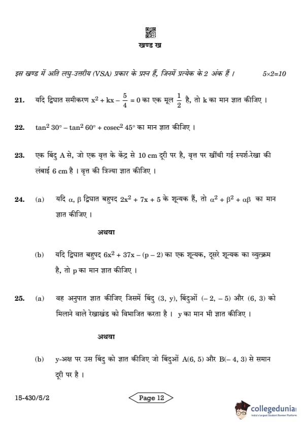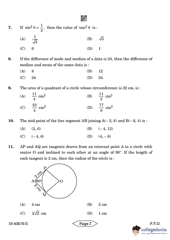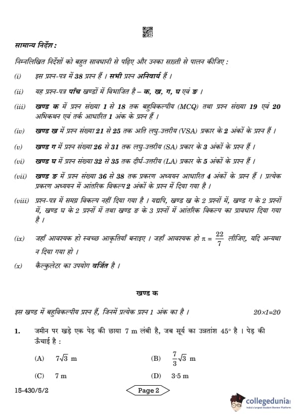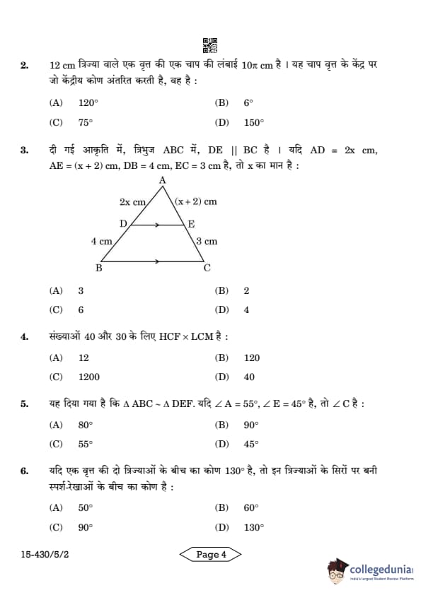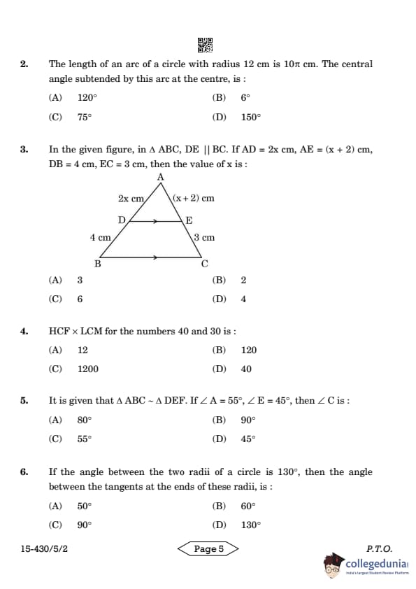 CBSE Class 10 Mathematics Basic Question Paper 2024 PDF (Set 2- 430/5/2) is available for download here. CBSE conducted the Mathematics Basic exam on March 11, 2024 from 10:30 AM to 1:30 PM. The total marks for the theory paper are 80. The question paper contains 20% MCQ-based questions, 40% competency-based questions, and 40% short and long answer type questions.