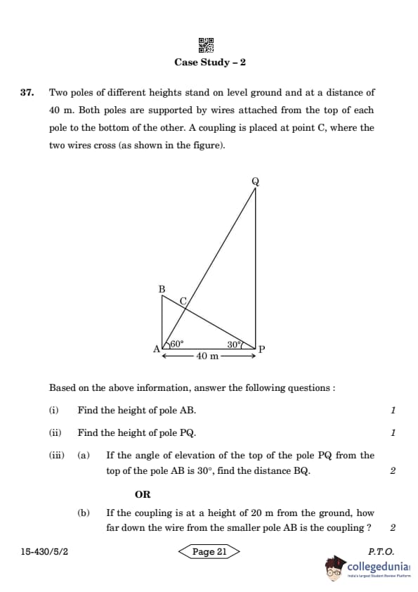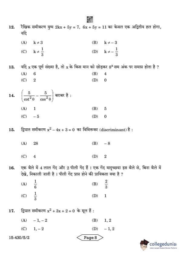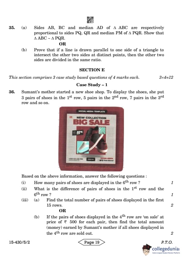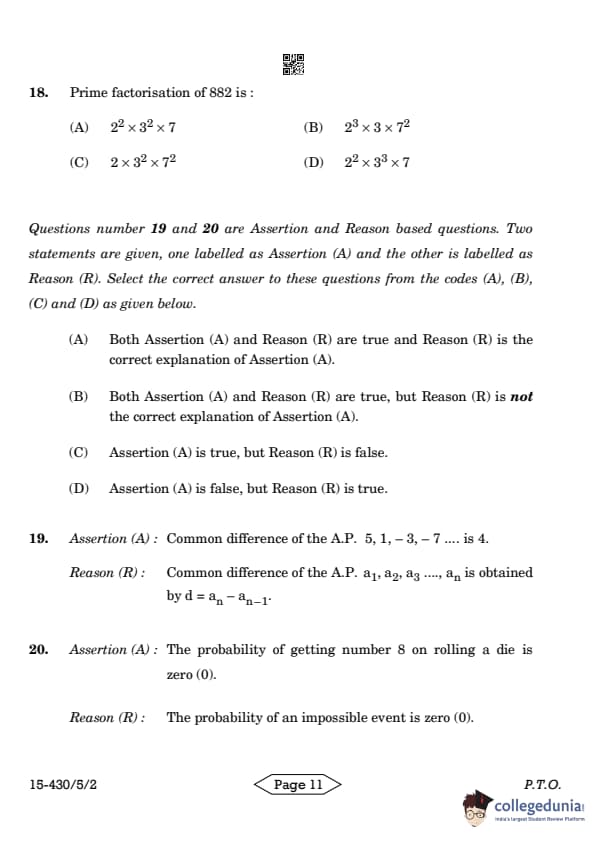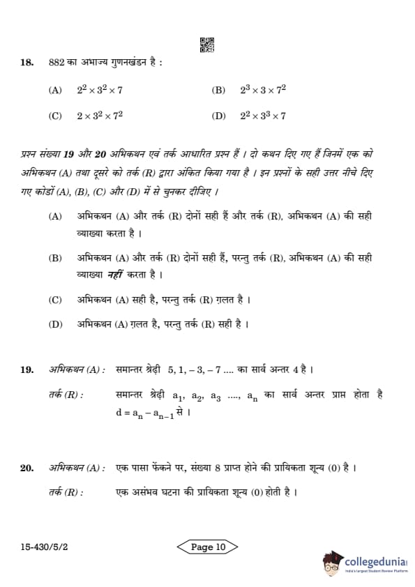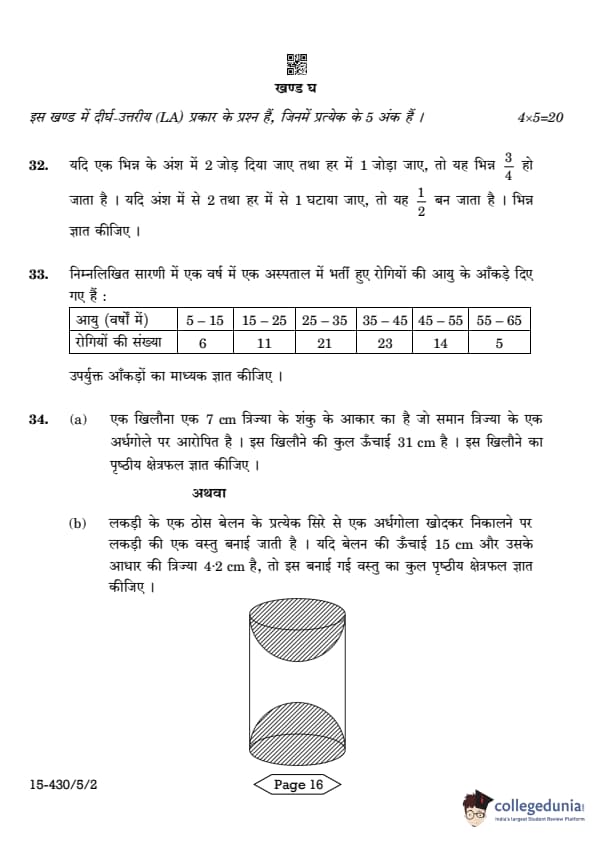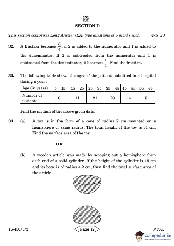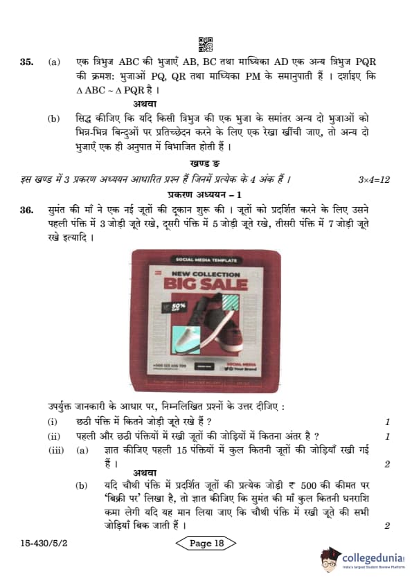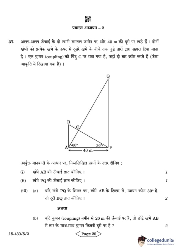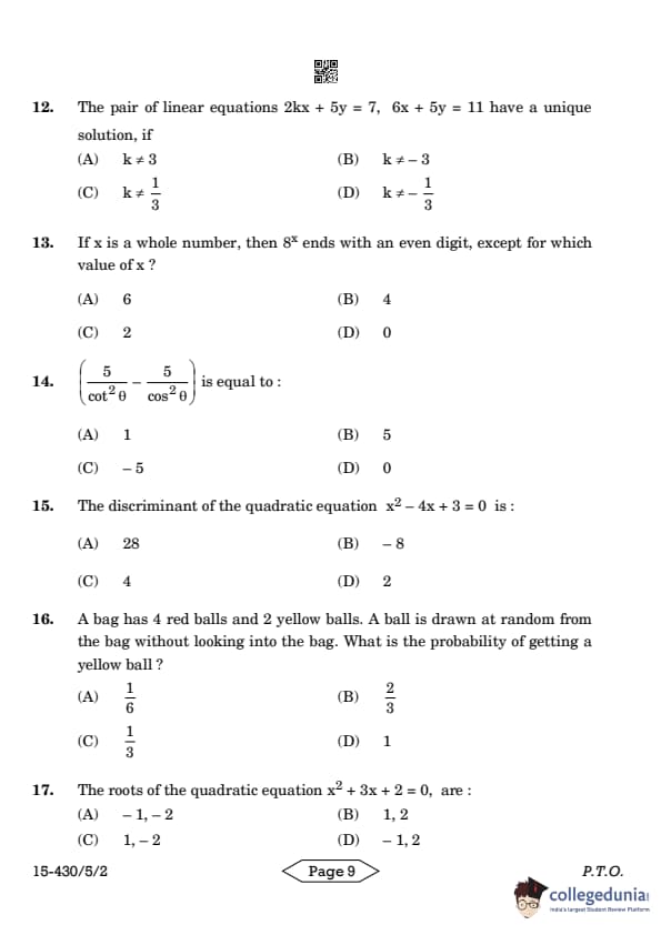 CBSE Class 10 Mathematics Basic Question Paper 2024 PDF (Set 2- 430/5/2) is available for download here. CBSE conducted the Mathematics Basic exam on March 11, 2024 from 10:30 AM to 1:30 PM. The total marks for the theory paper are 80. The question paper contains 20% MCQ-based questions, 40% competency-based questions, and 40% short and long answer type questions.