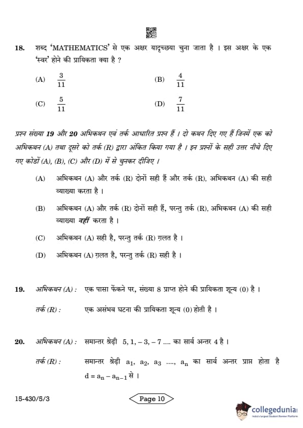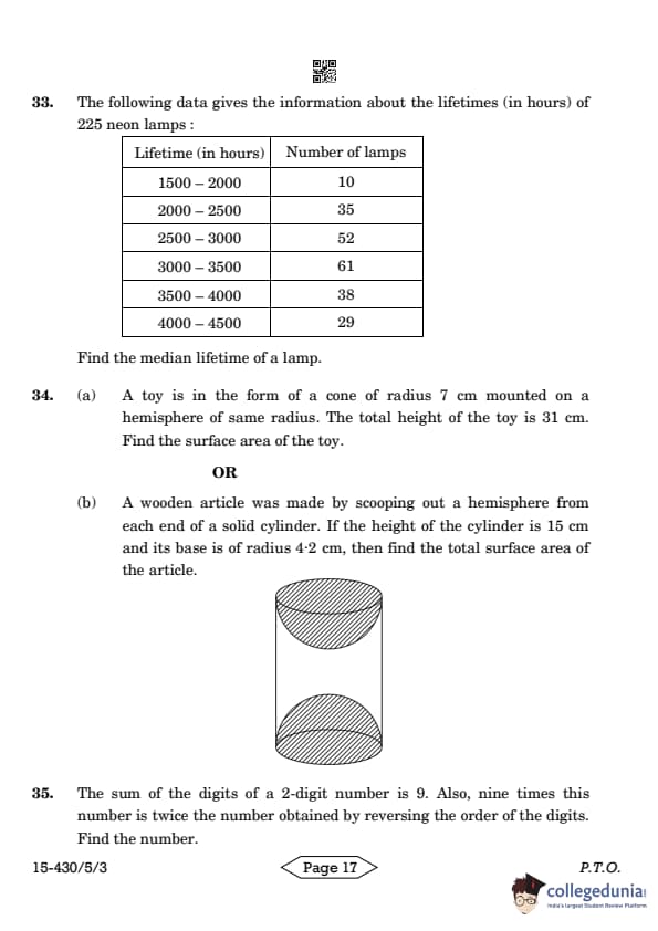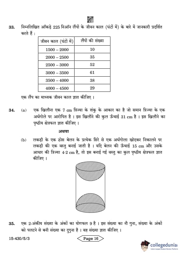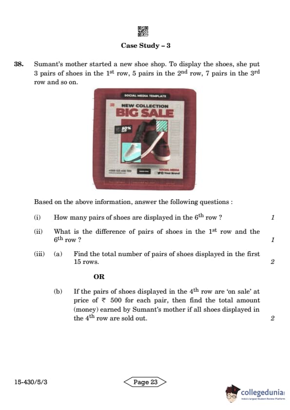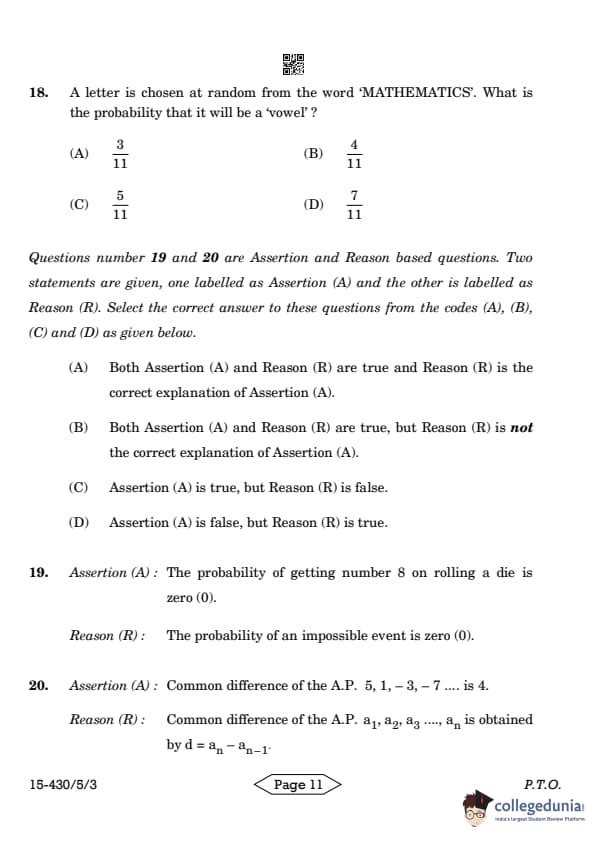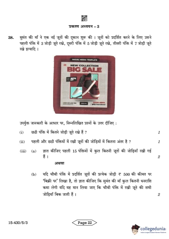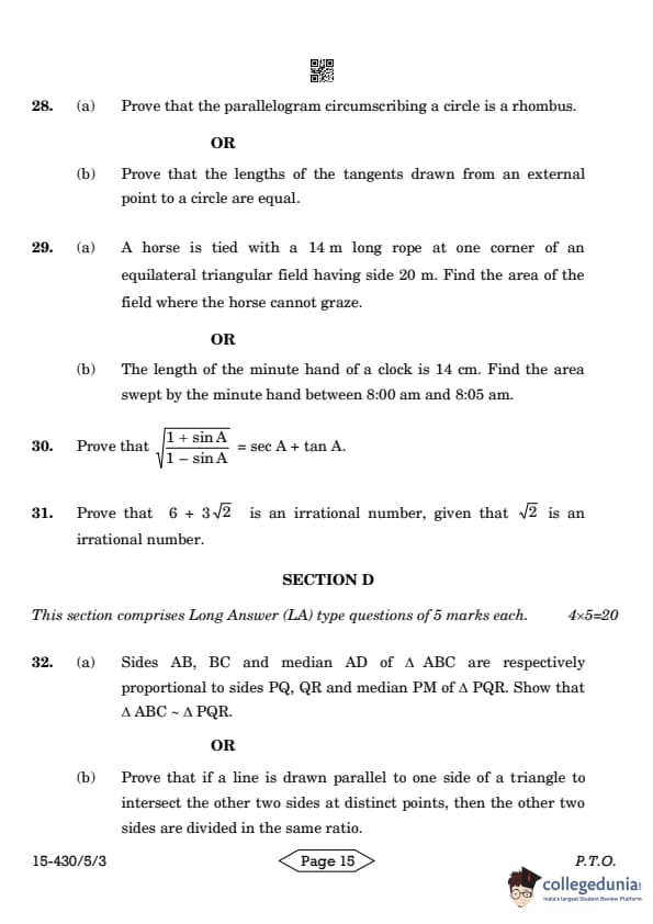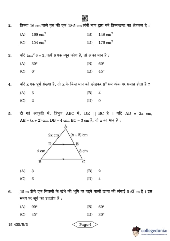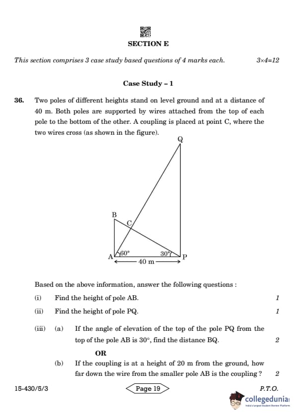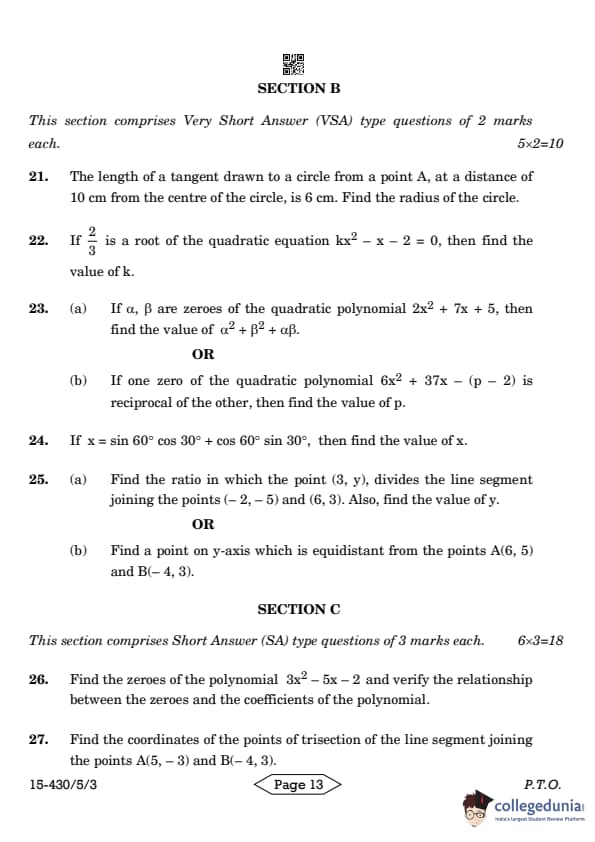 CBSE Class 10 Mathematics Basic Question Paper 2024 PDF (Set 3- 430/5/3) is available for download here. CBSE conducted the Mathematics Basic exam on March 11, 2024 from 10:30 AM to 1:30 PM. The total marks for the theory paper are 80. The question paper contains 20% MCQ-based questions, 40% competency-based questions, and 40% short and long answer type questions.