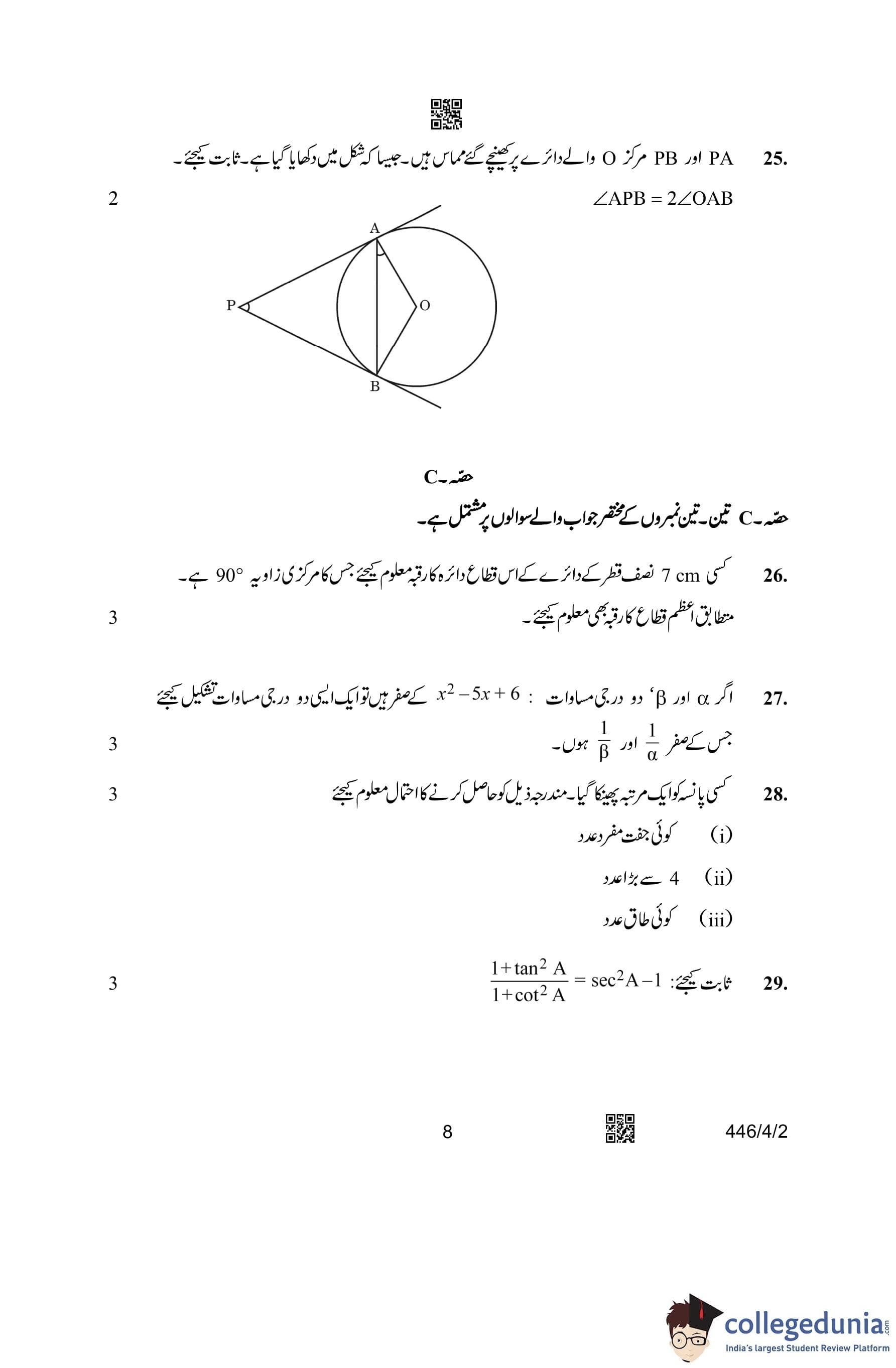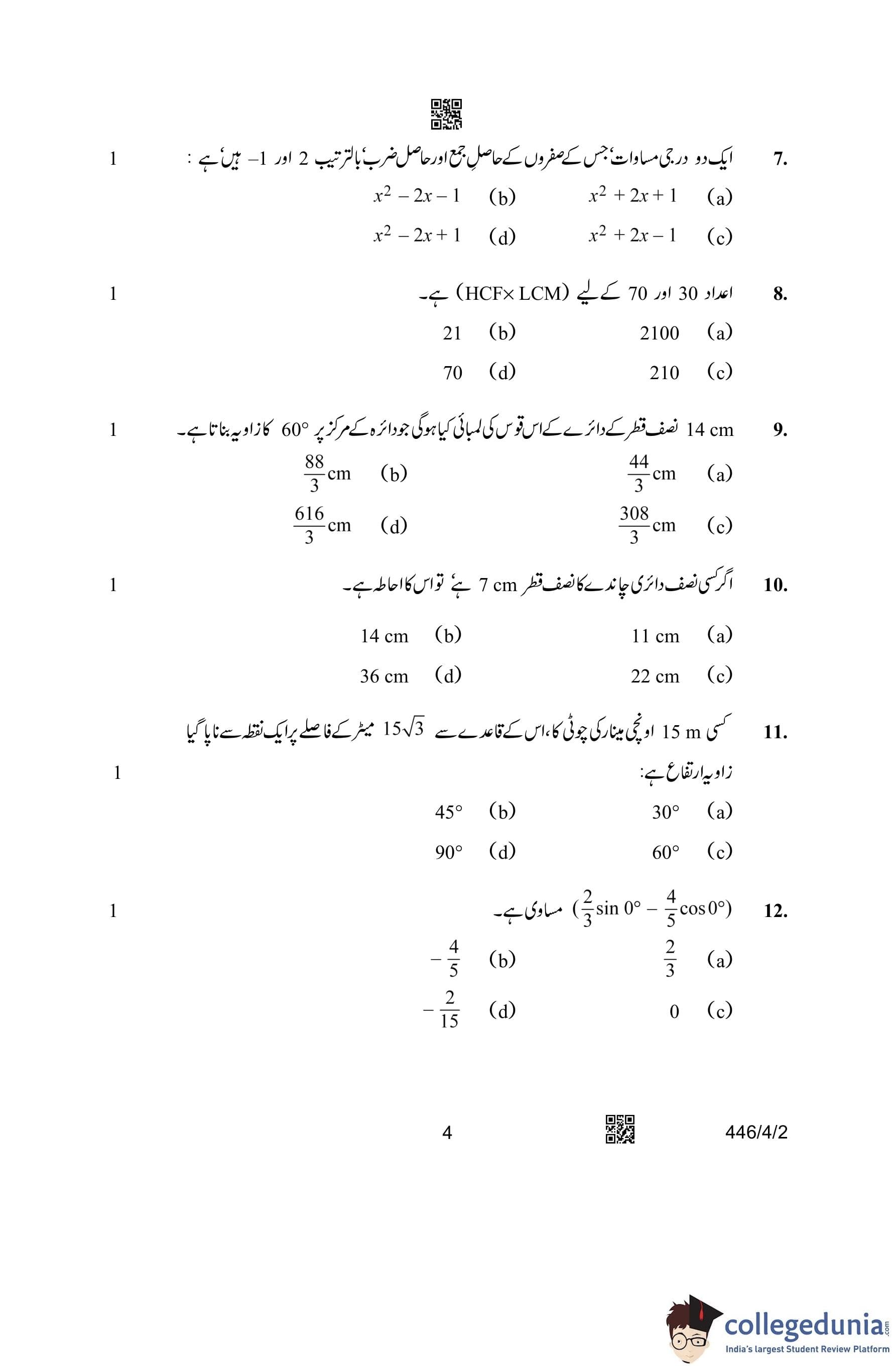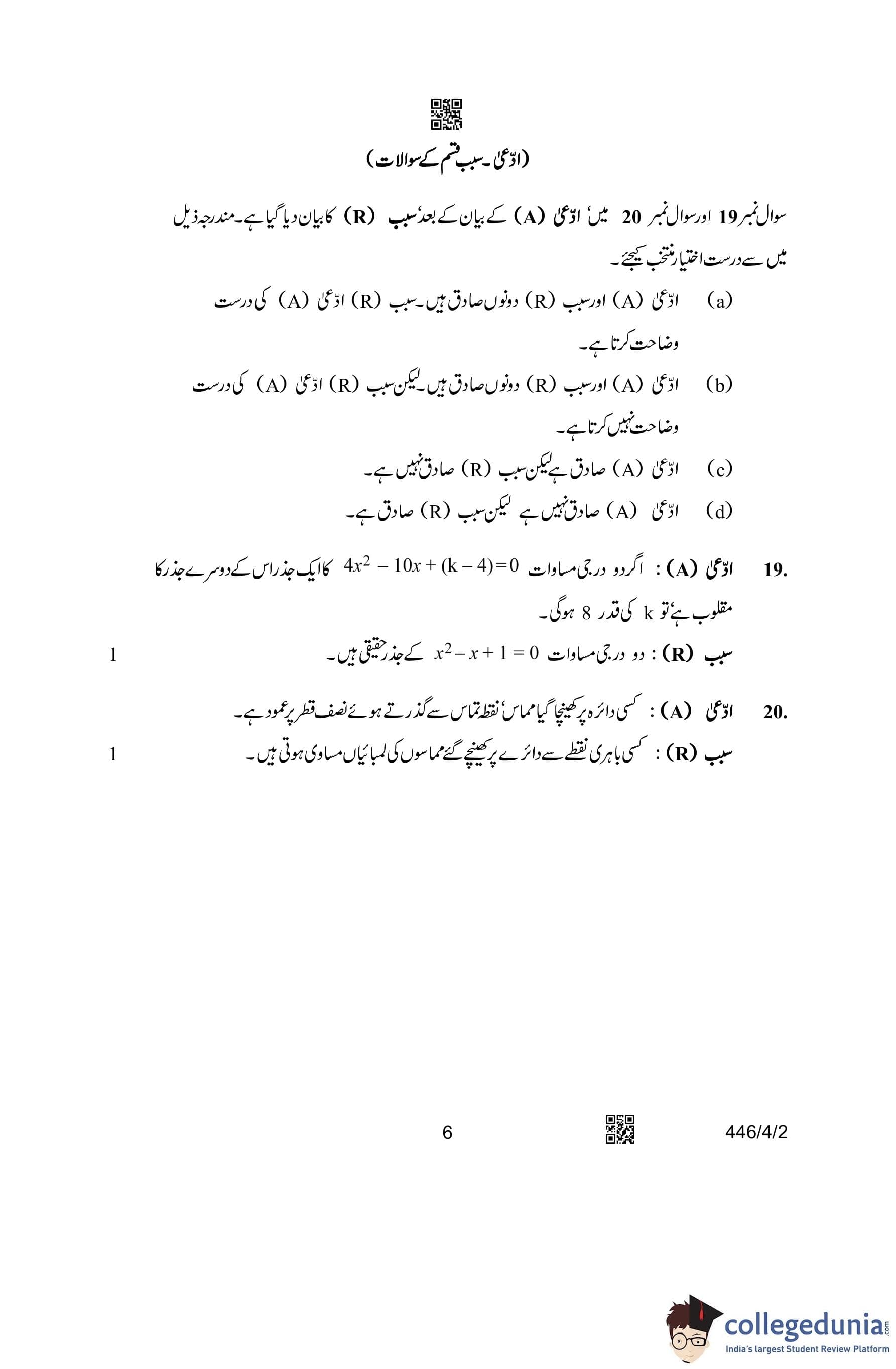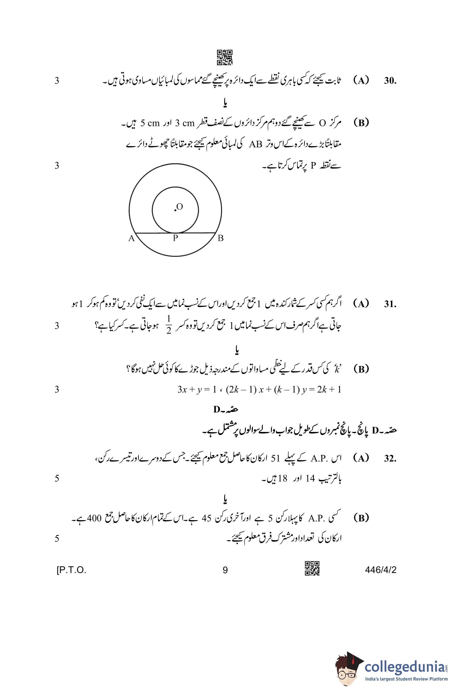 CBSE Class 10 Mathematics Basic (Urdu Version) (Set 2) Question Paper 2023 with Answer Key