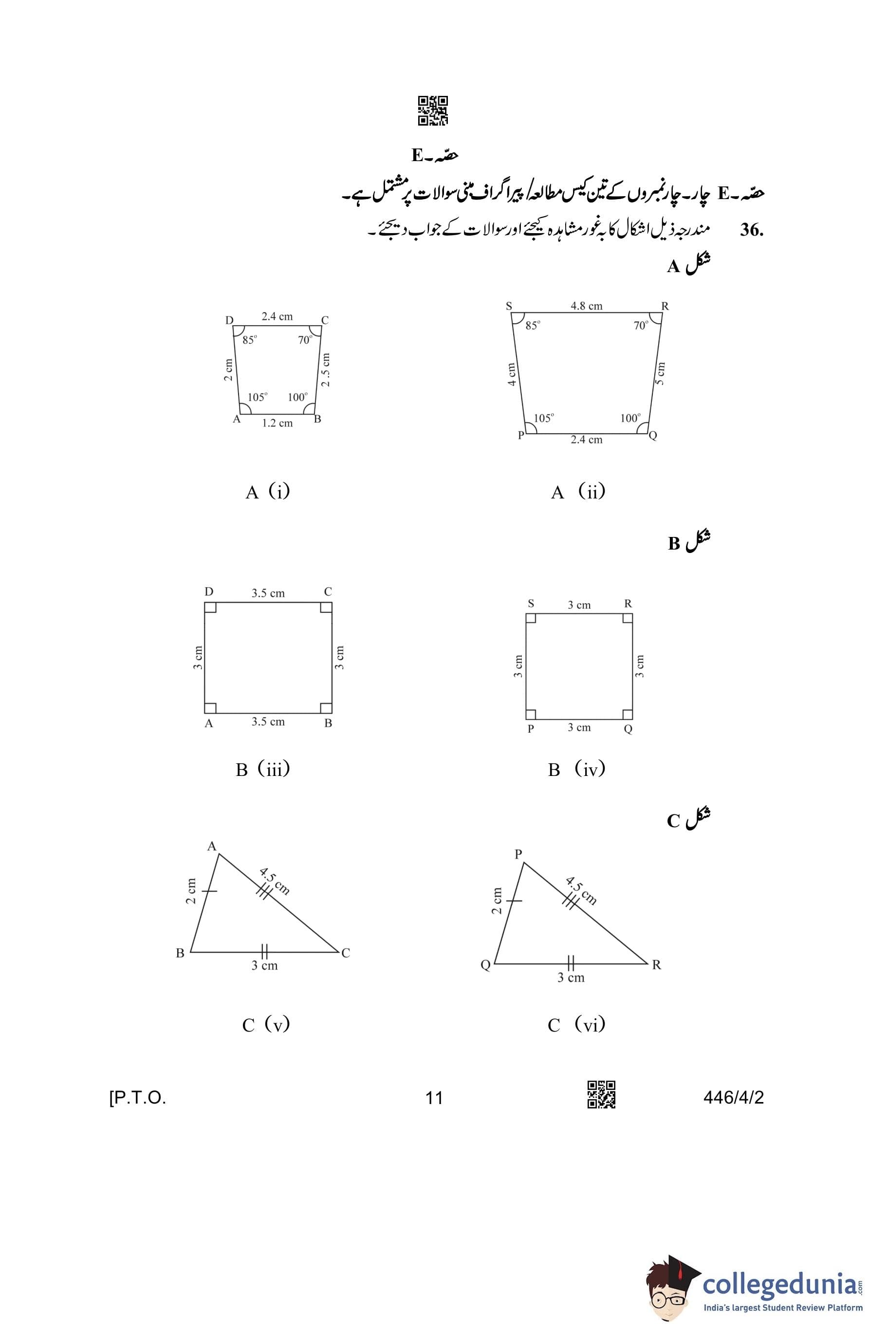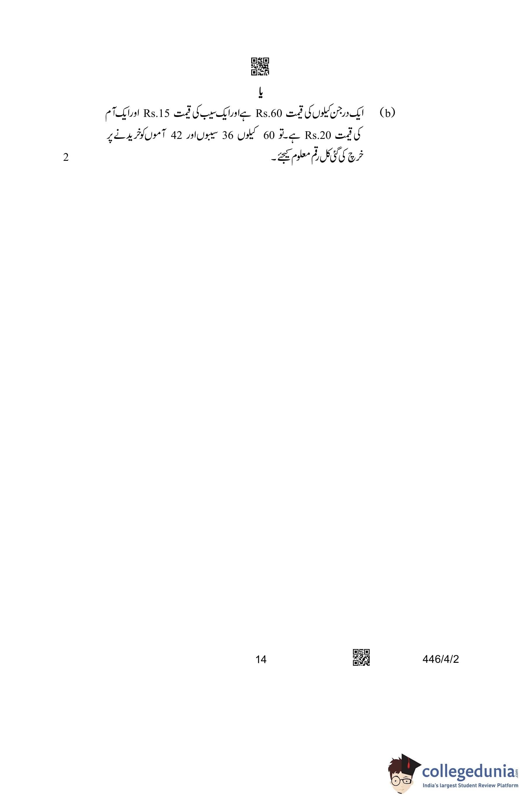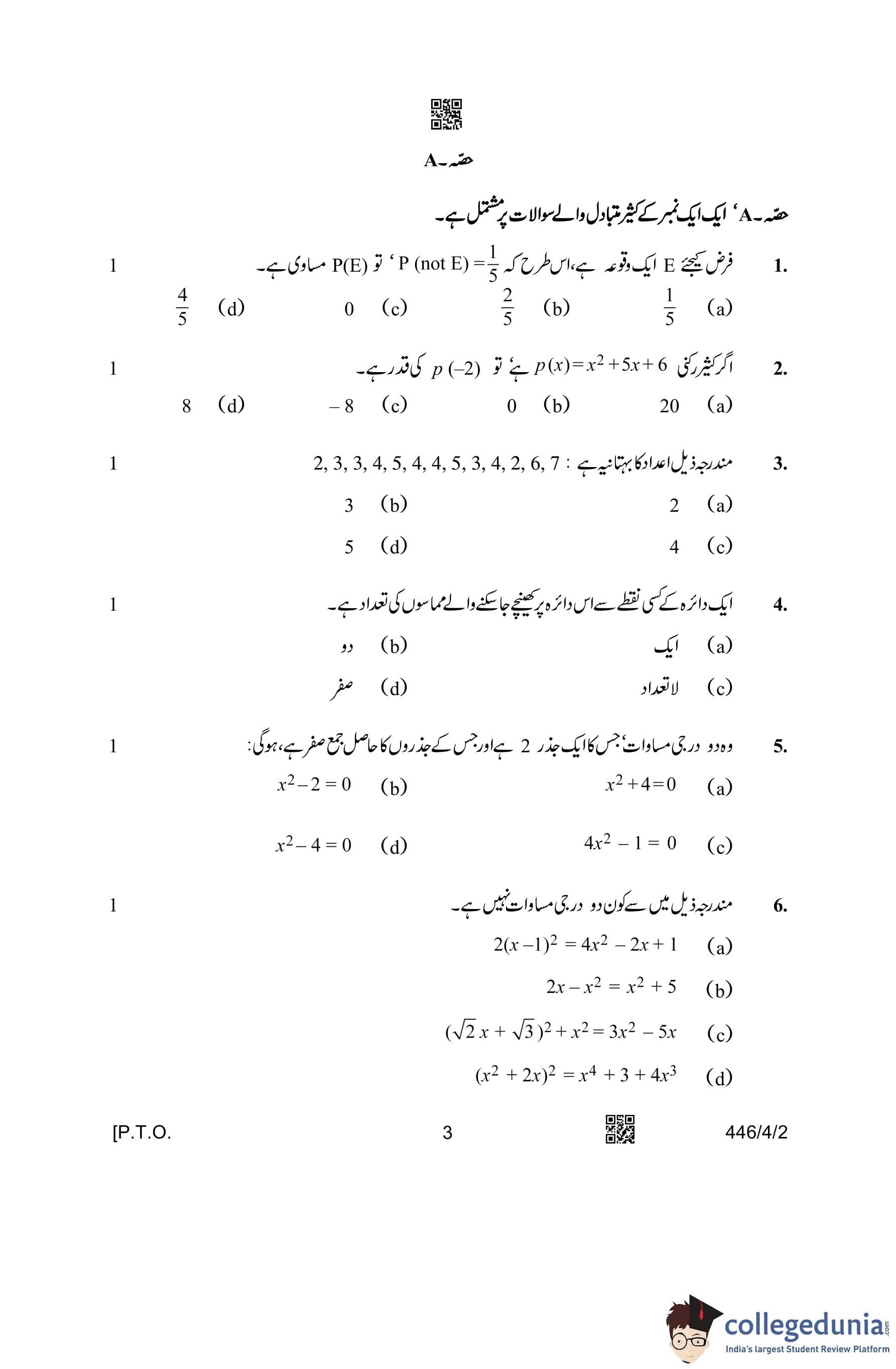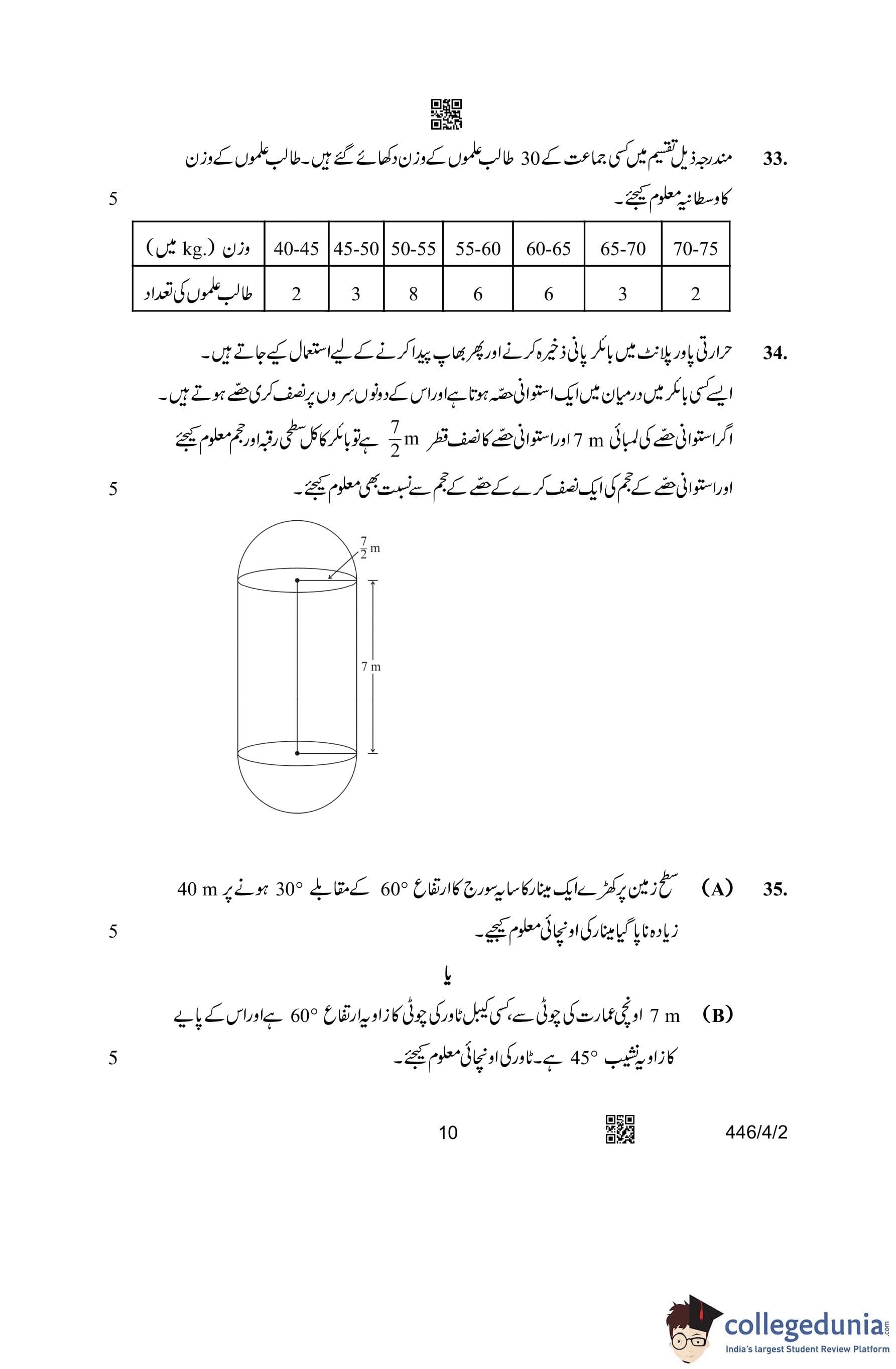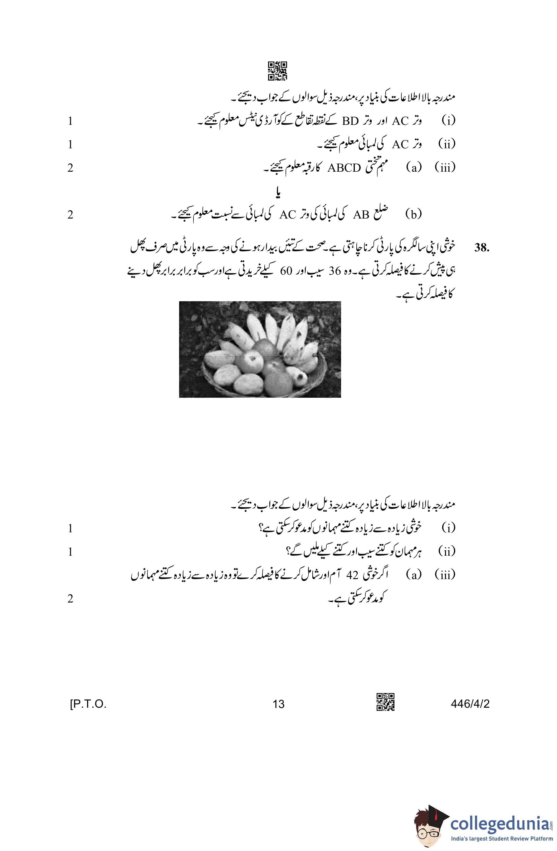 CBSE Class 10 Mathematics Basic (Urdu Version) (Set 2) Question Paper 2023 with Answer Key