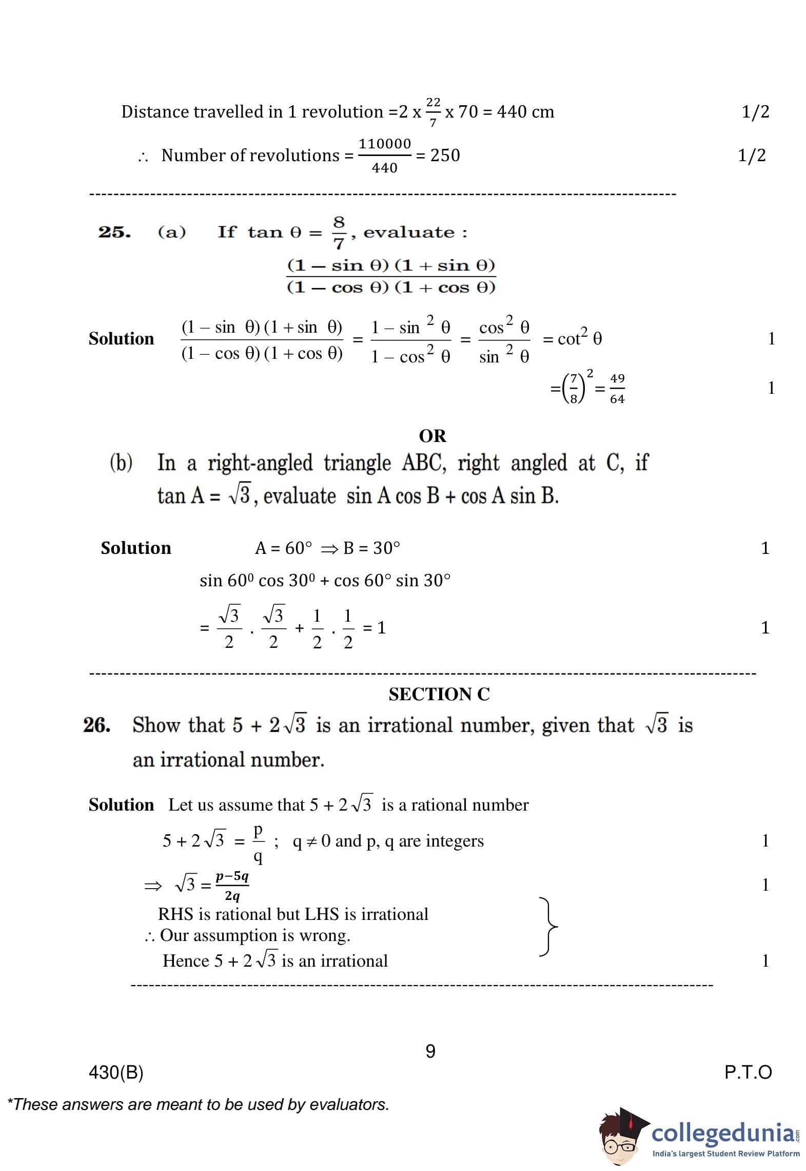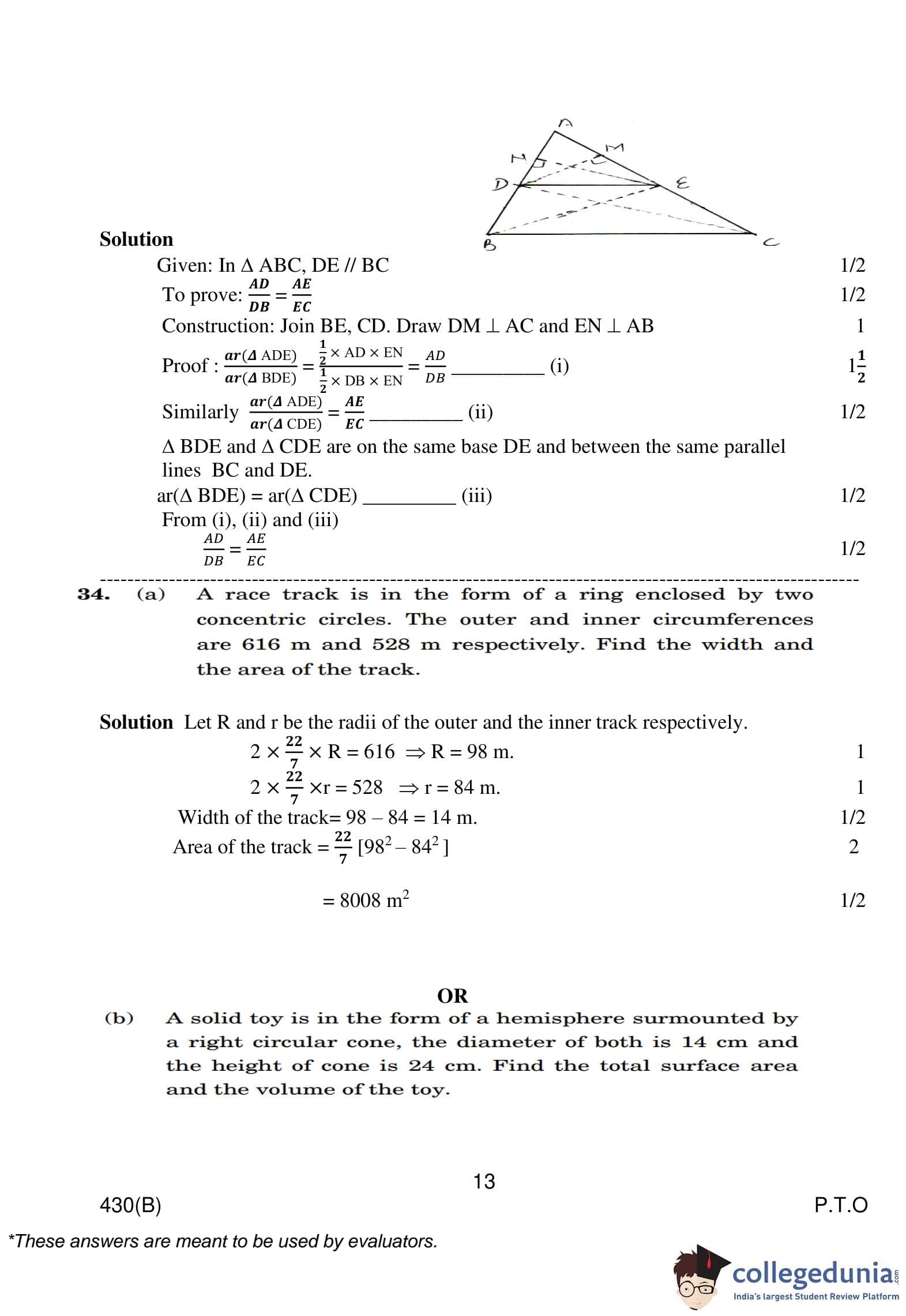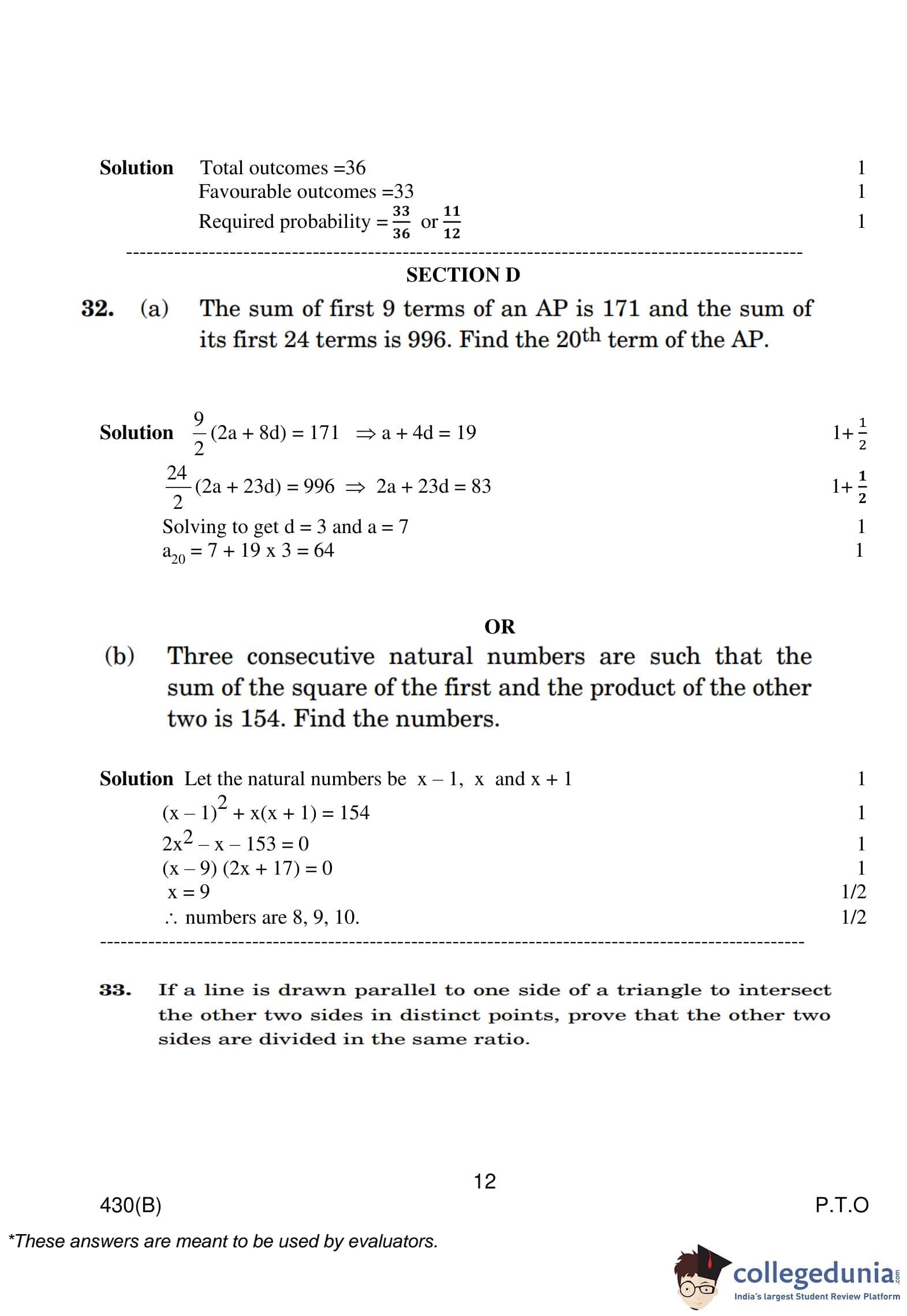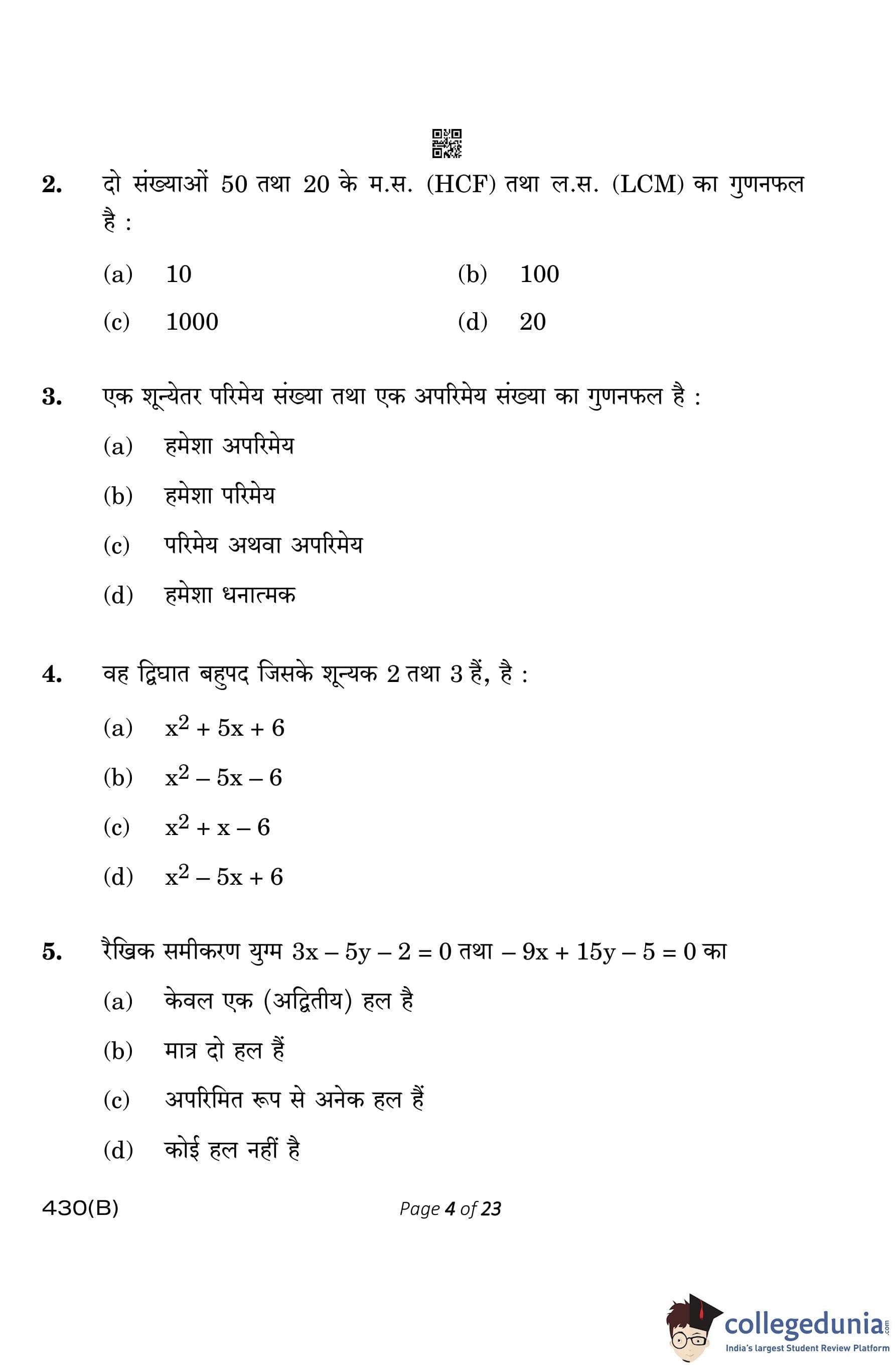 CBSE Class 10 Mathematics Basic (Visually Impaired Candidates) Question Paper 2023 with Answer Key