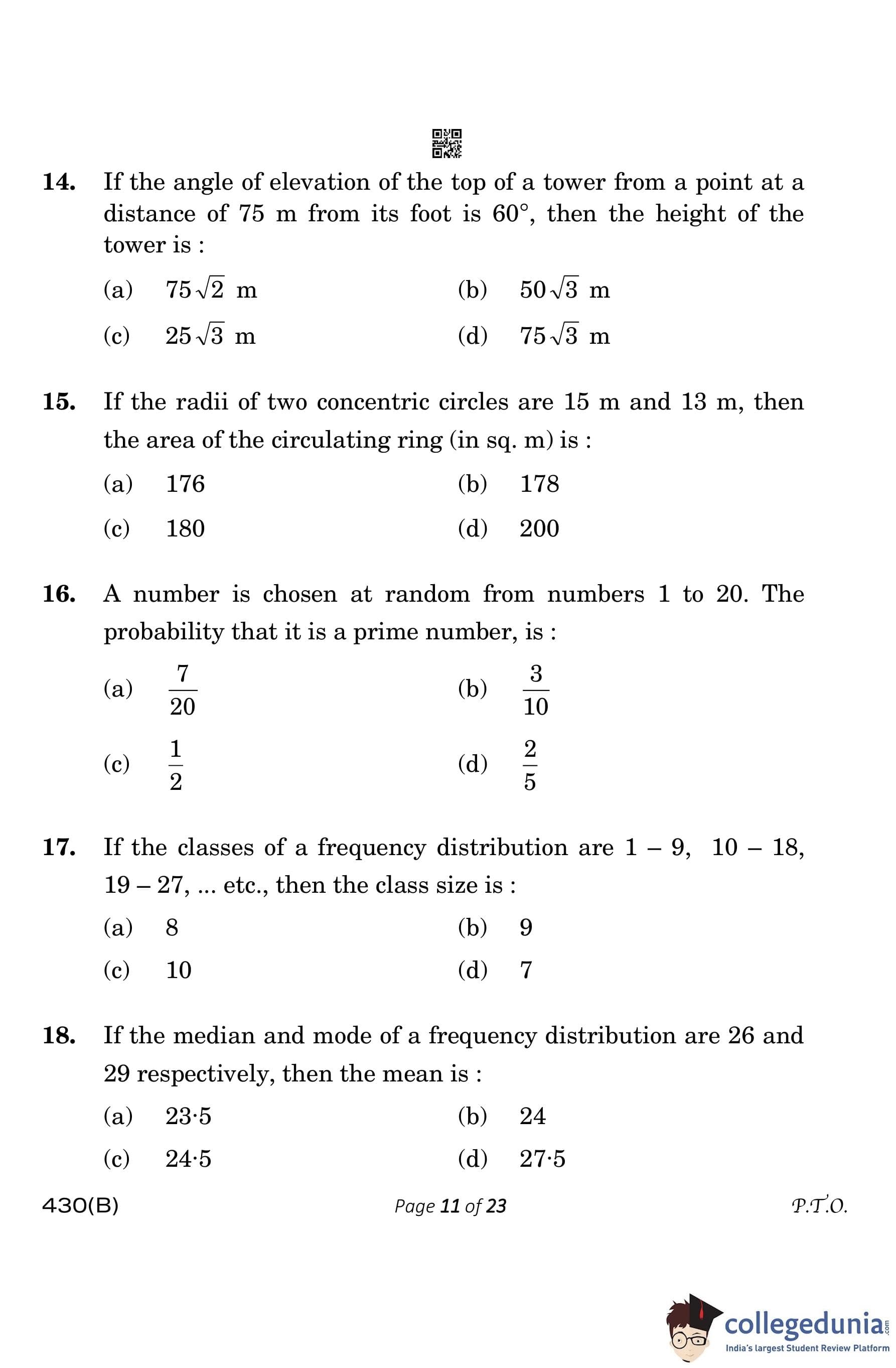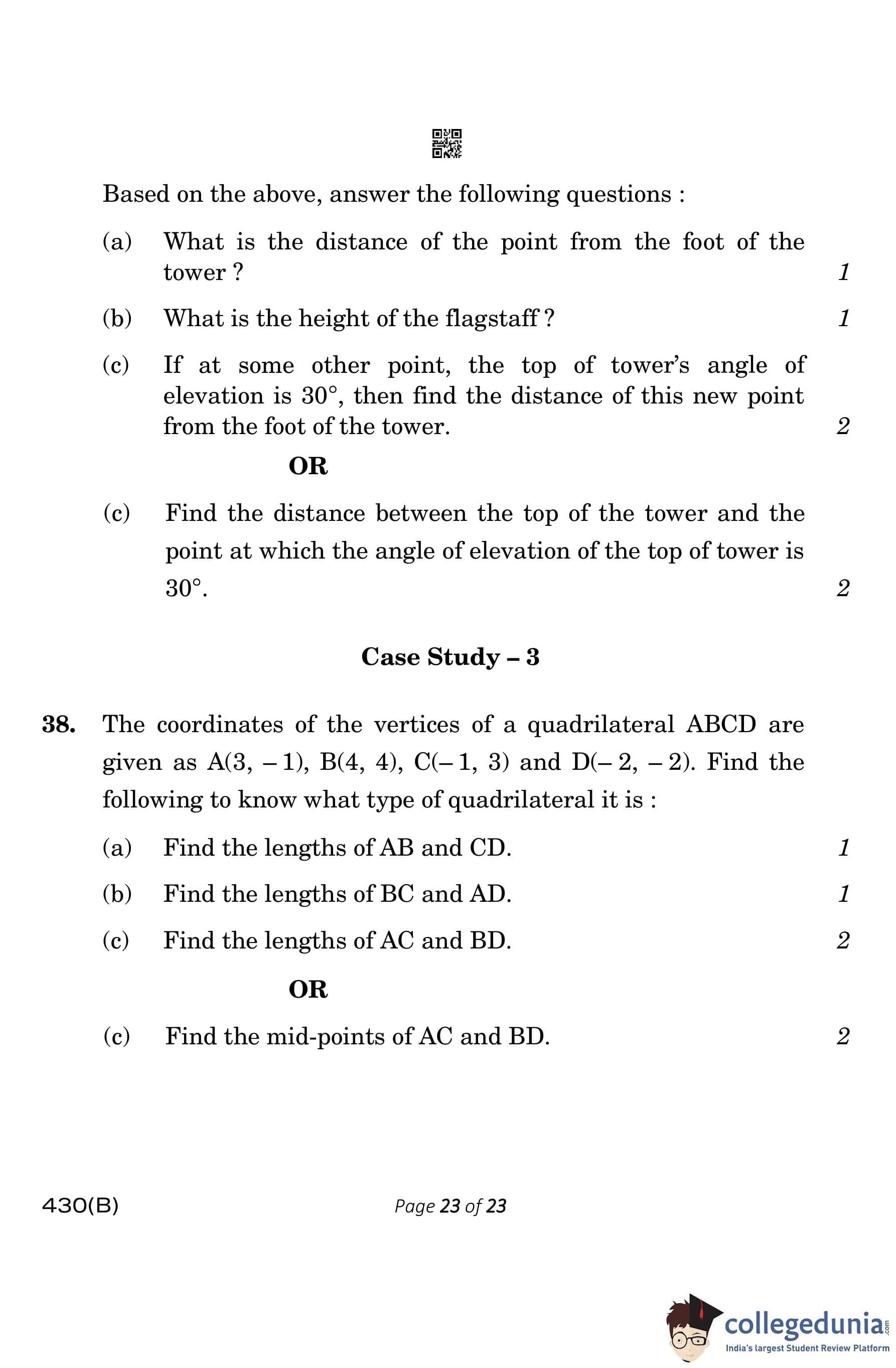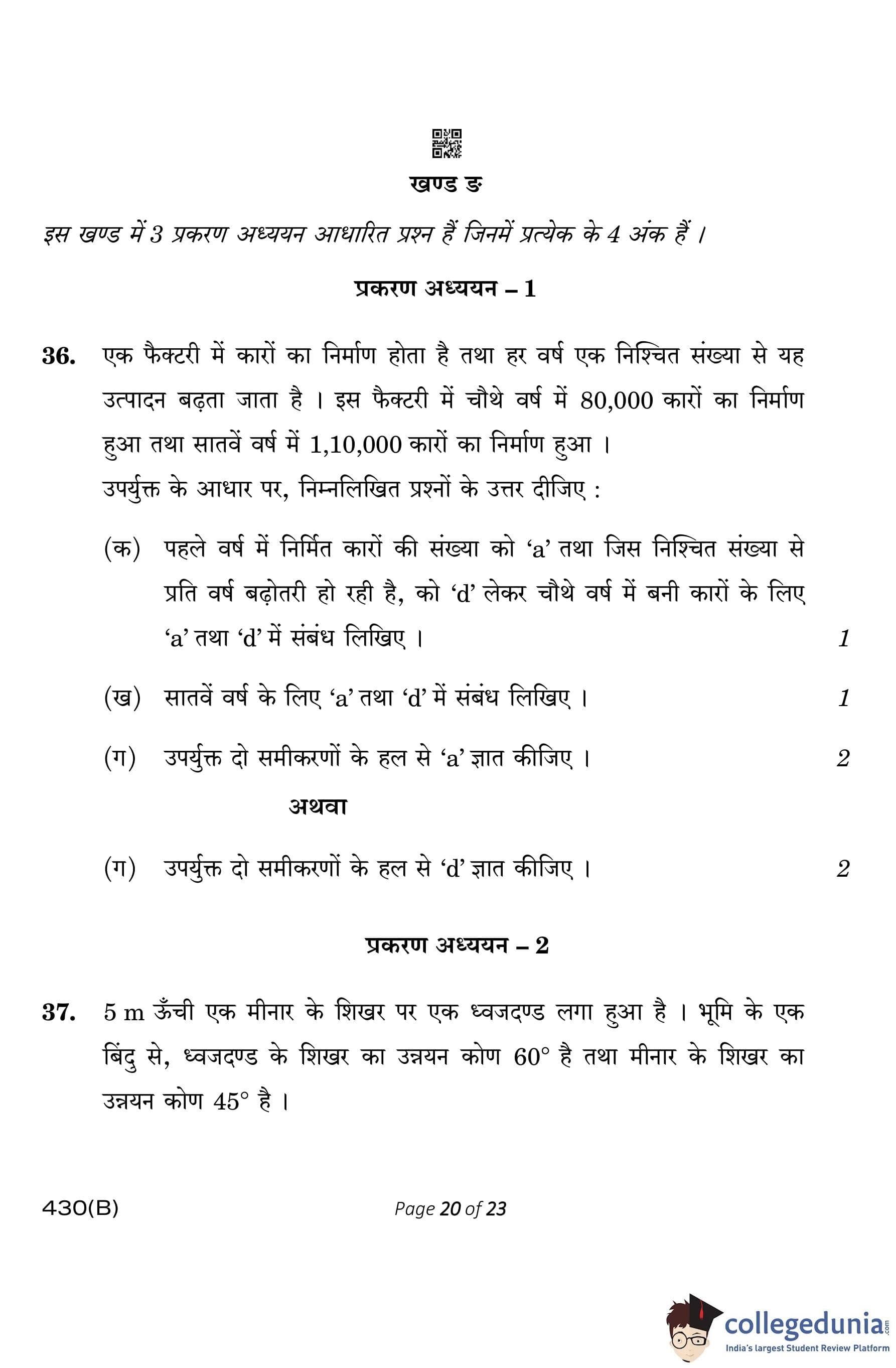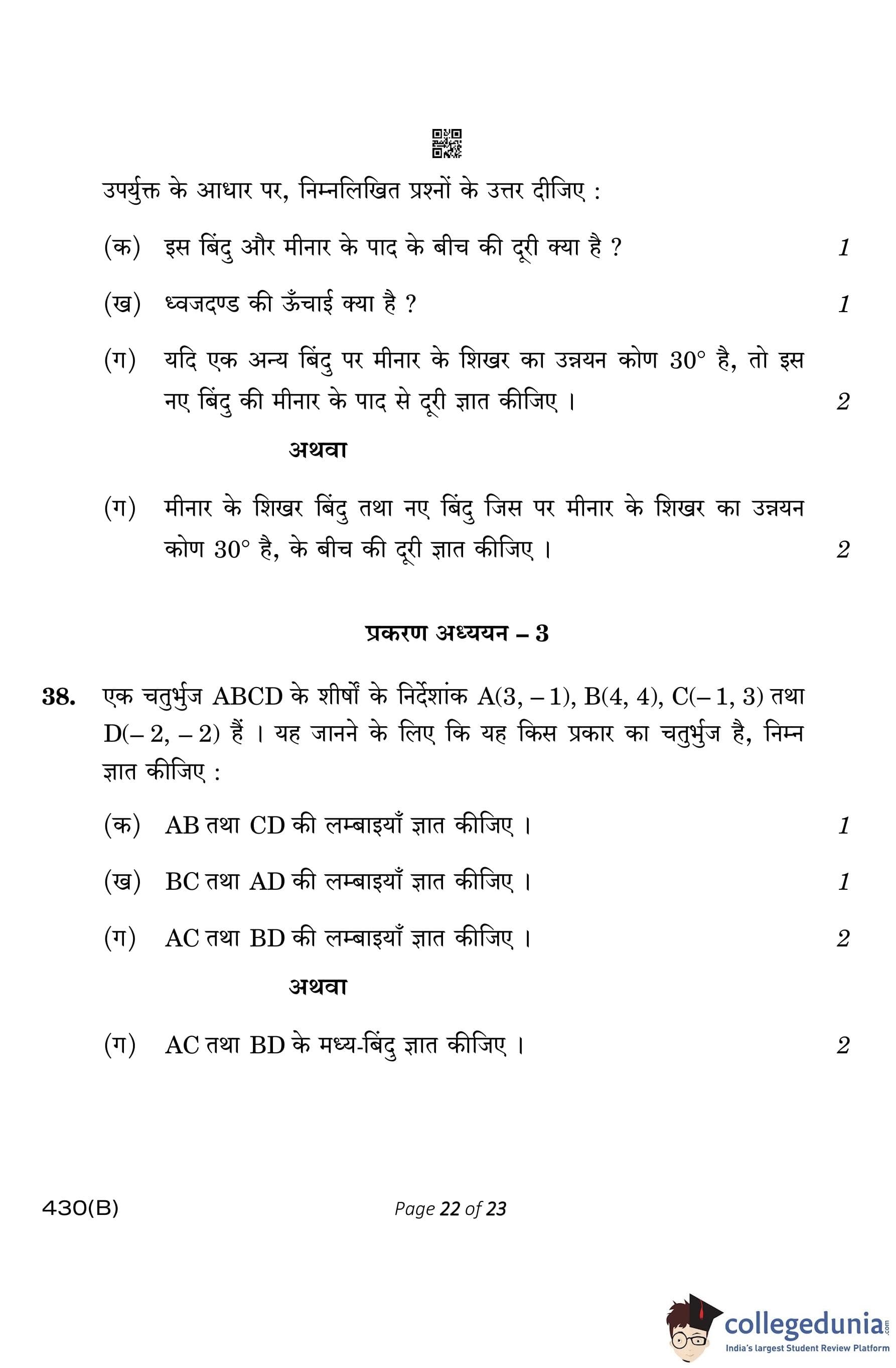 CBSE Class 10 Mathematics Basic Question Paper 2023 with Answer Key (Visually Impaired Candidates) is available for download here. The exam was conducted by the Central Board of Secondary Education on March 21, 2023 in the Morning Session 10:30 AM to 1:30 PM. The medium of paper was English & Hindi. According to initial student reaction, the CBSE Class 10 Mathematics Basic paper was rated as Moderate in difficulty level. The question paper comprised a total of 38 questions divided among 5 sections.