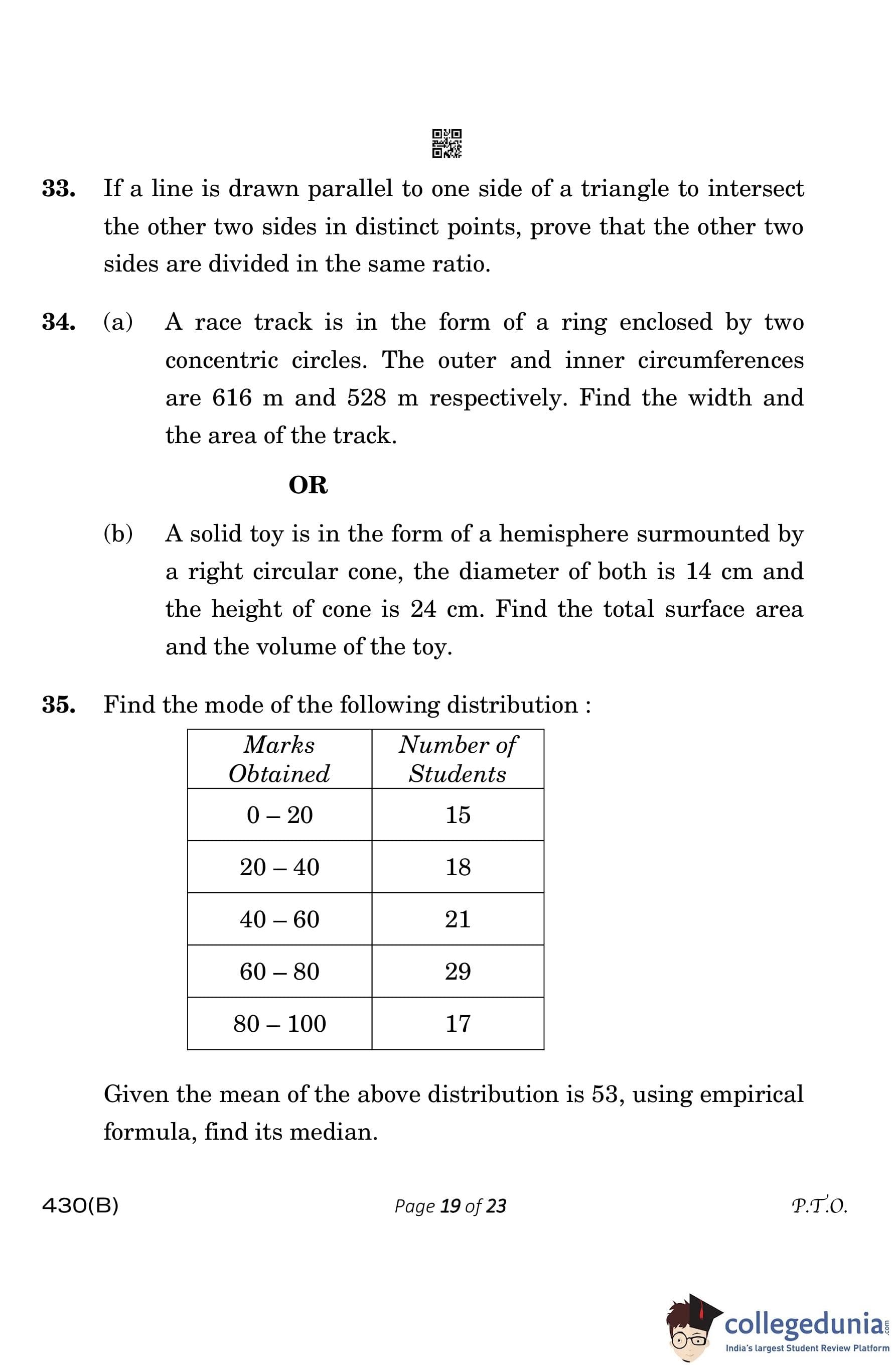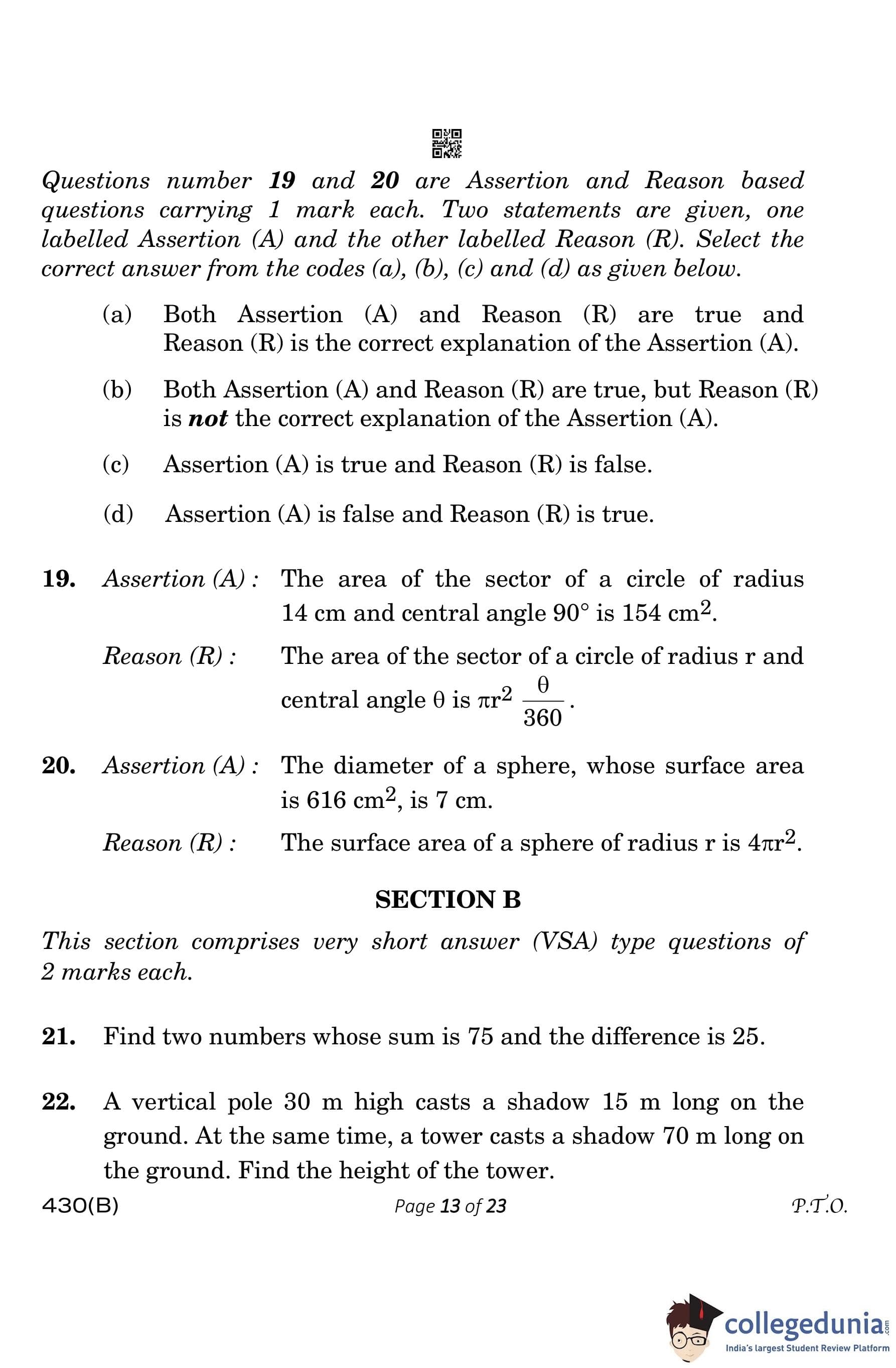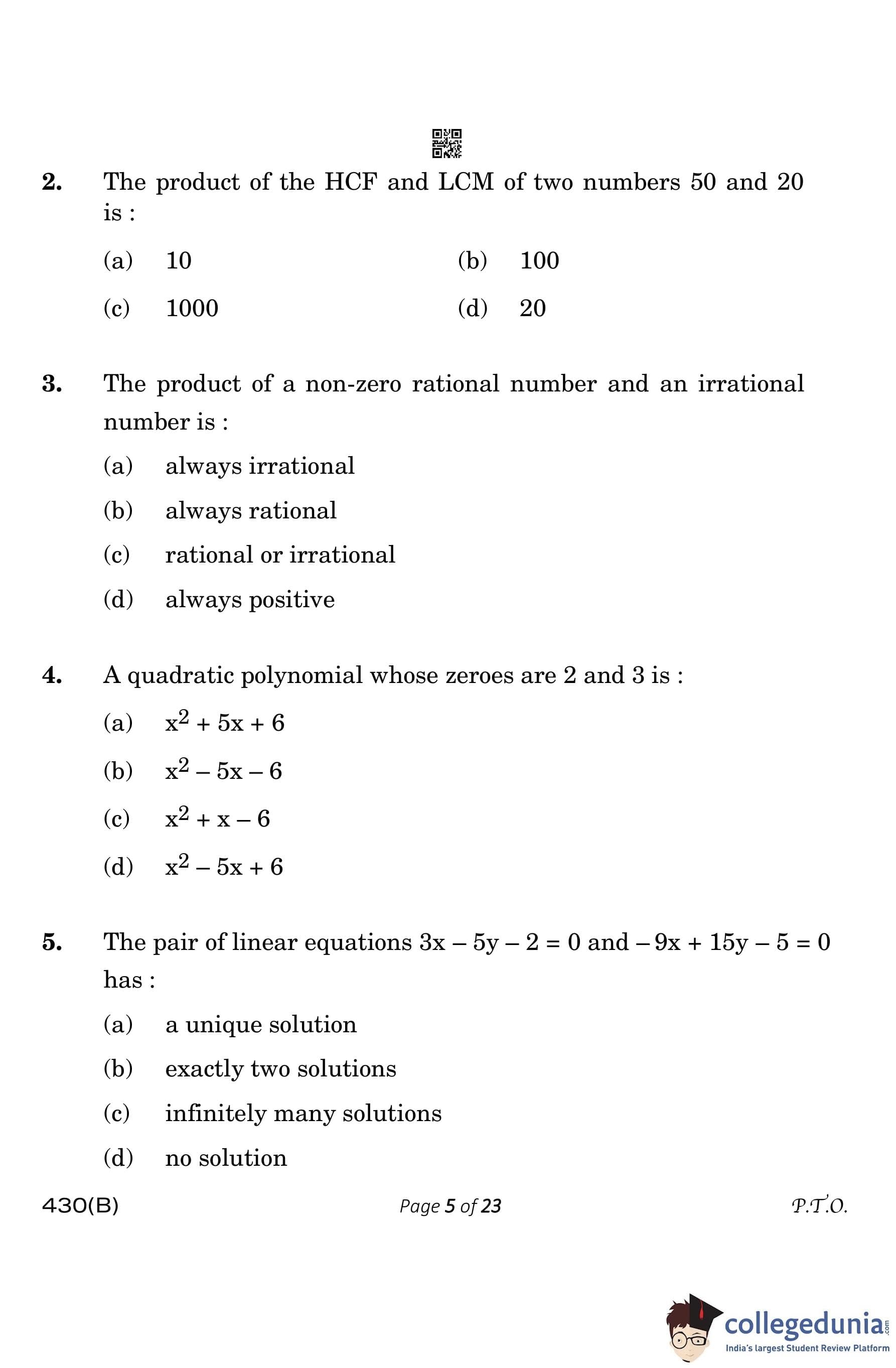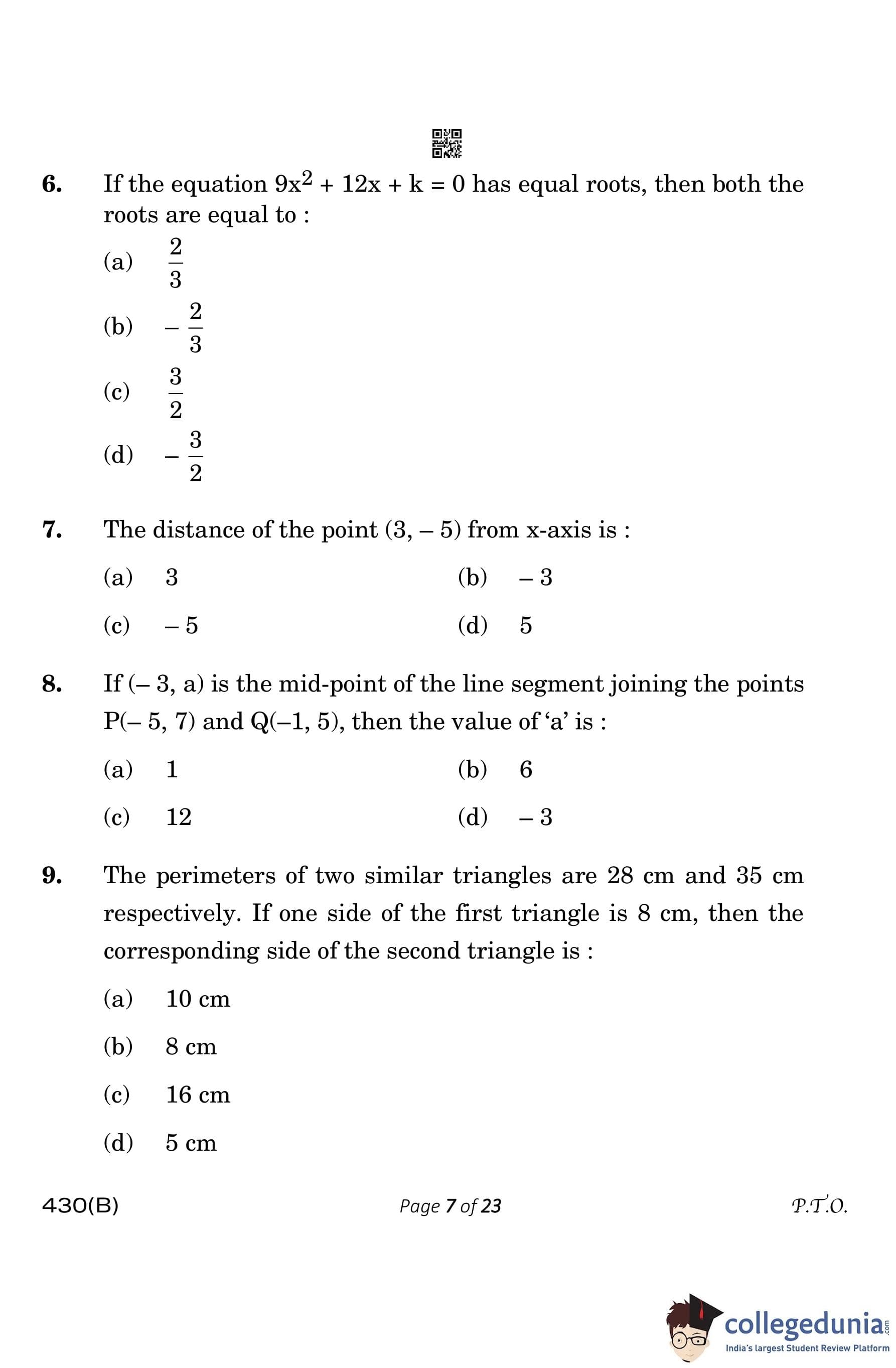 | CBSE Class 10 Mathematics Question Paper 2023 PDF | CBSE Class 10 Mathematics Answer Key 2023 PDF | Detailed Solutions |