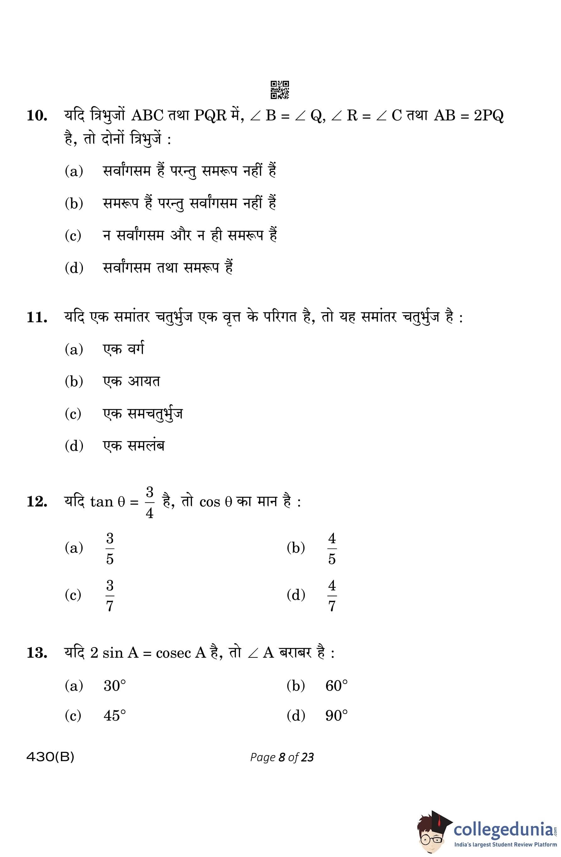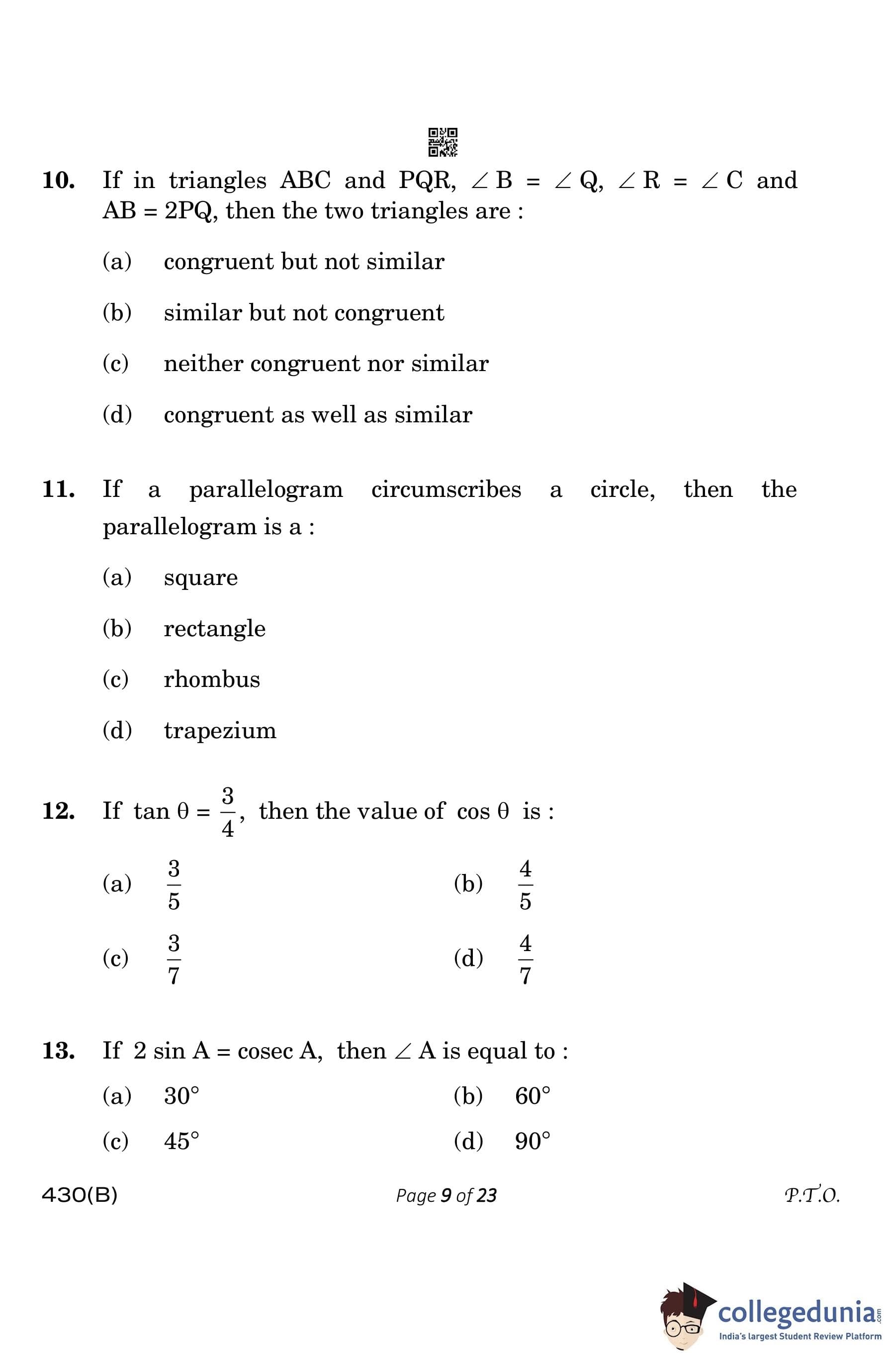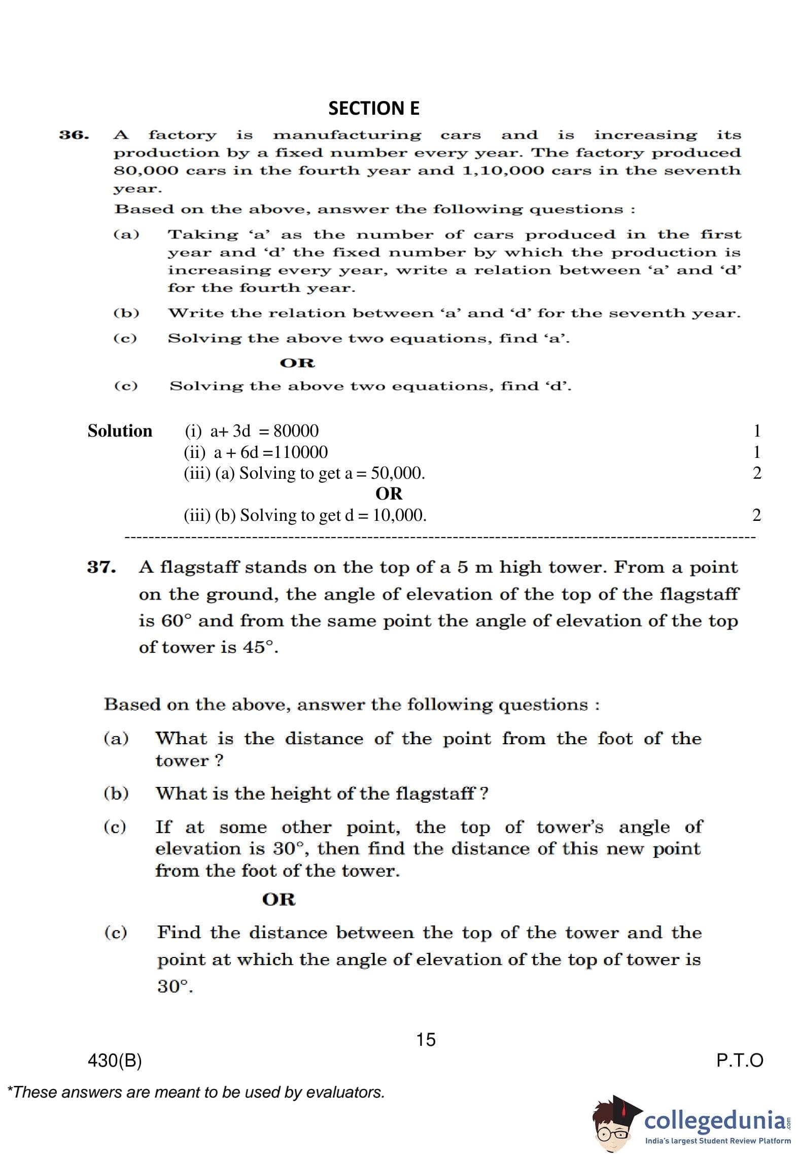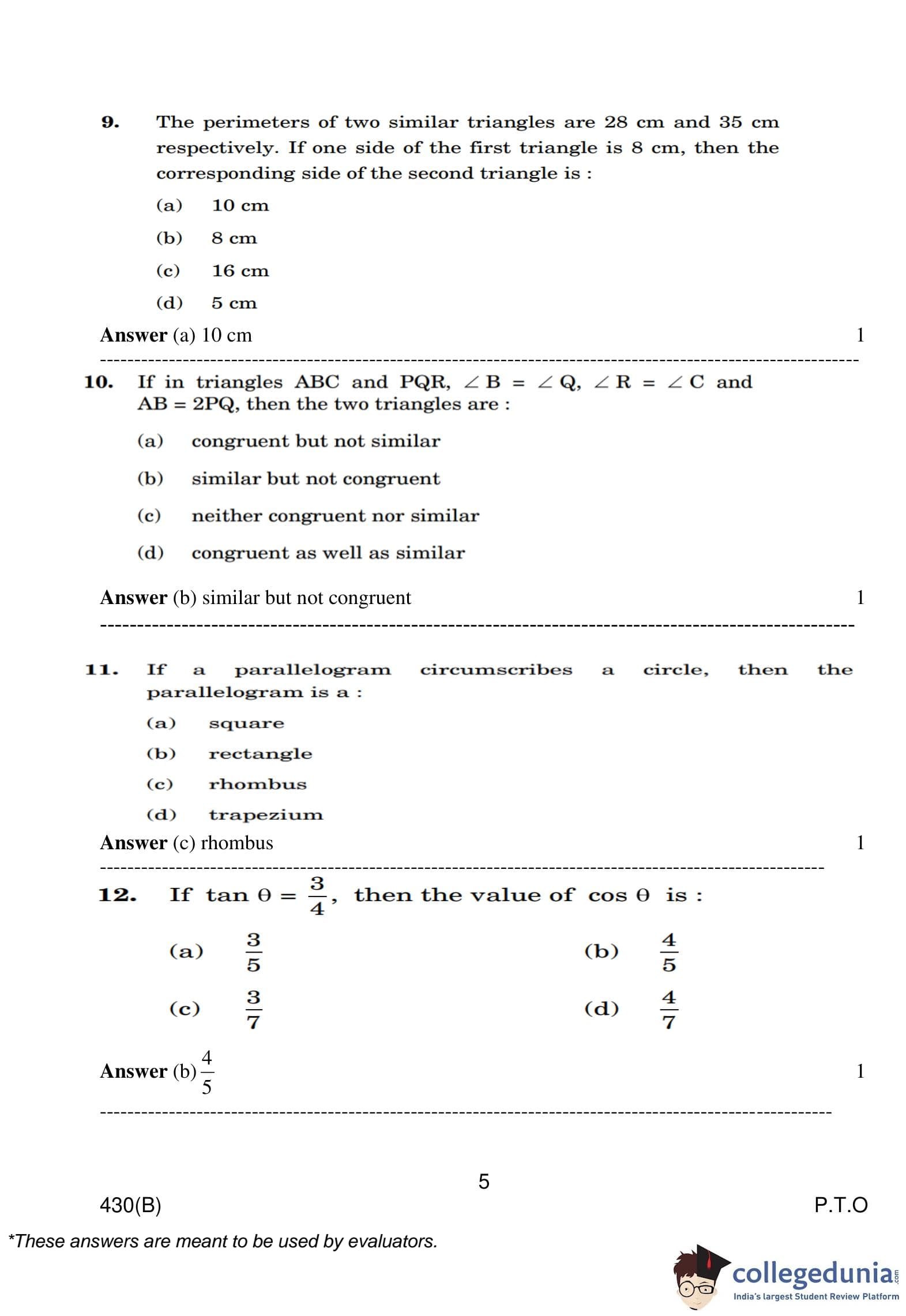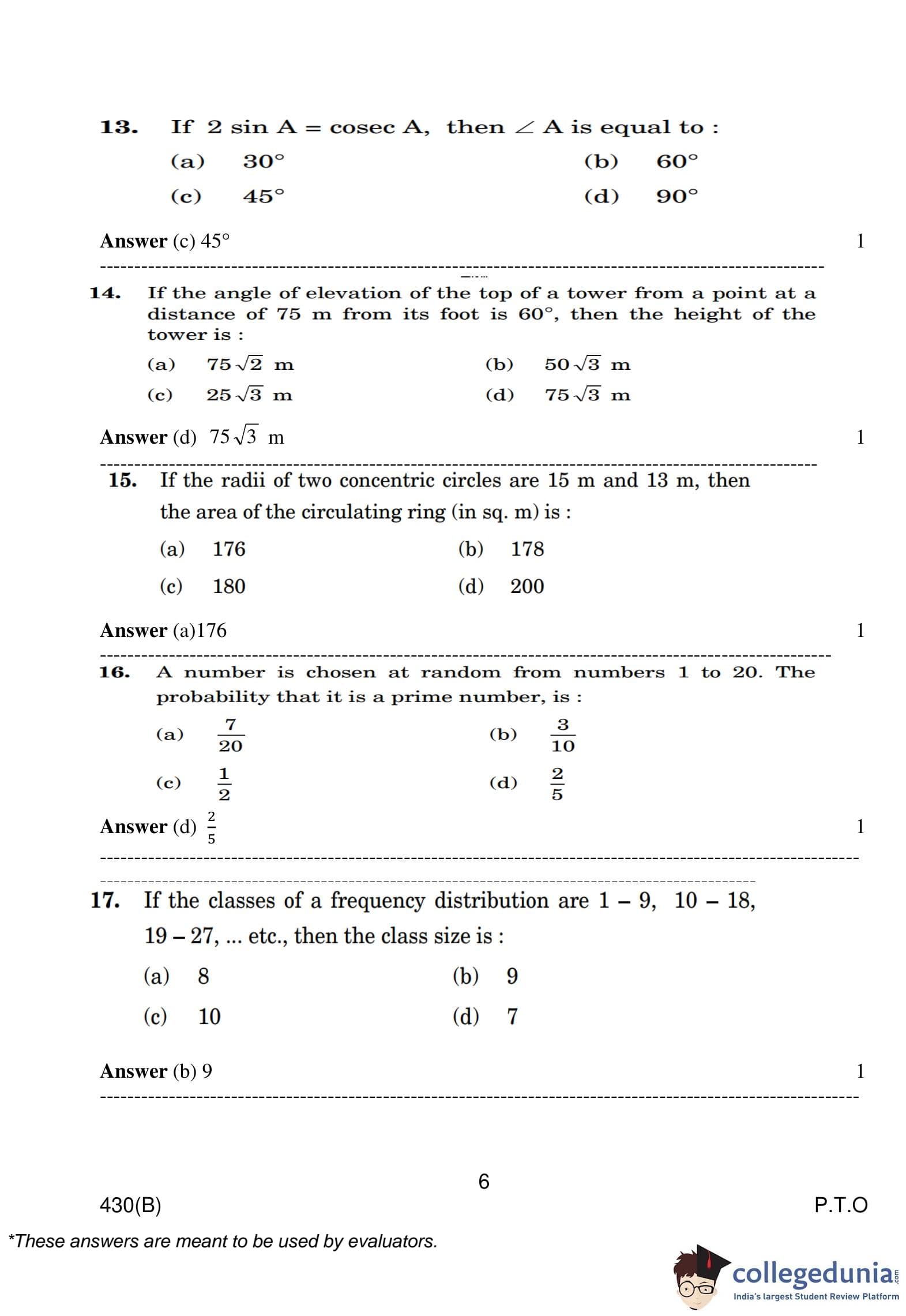 | CBSE Class 10 Mathematics Question Paper 2023 PDF | CBSE Class 10 Mathematics Answer Key 2023 PDF | Detailed Solutions |