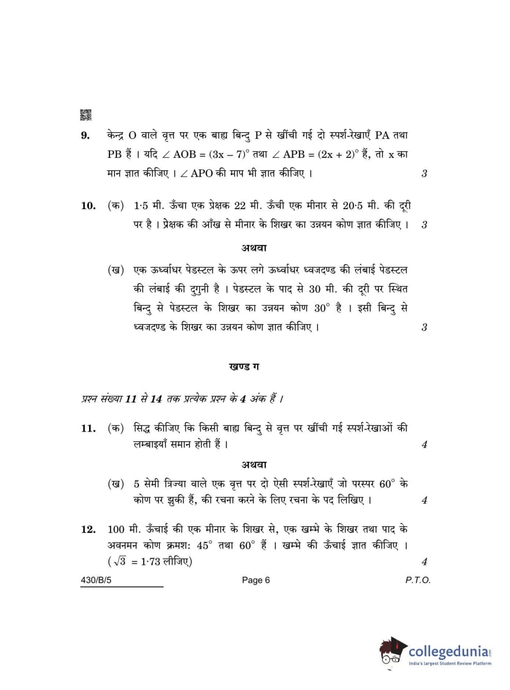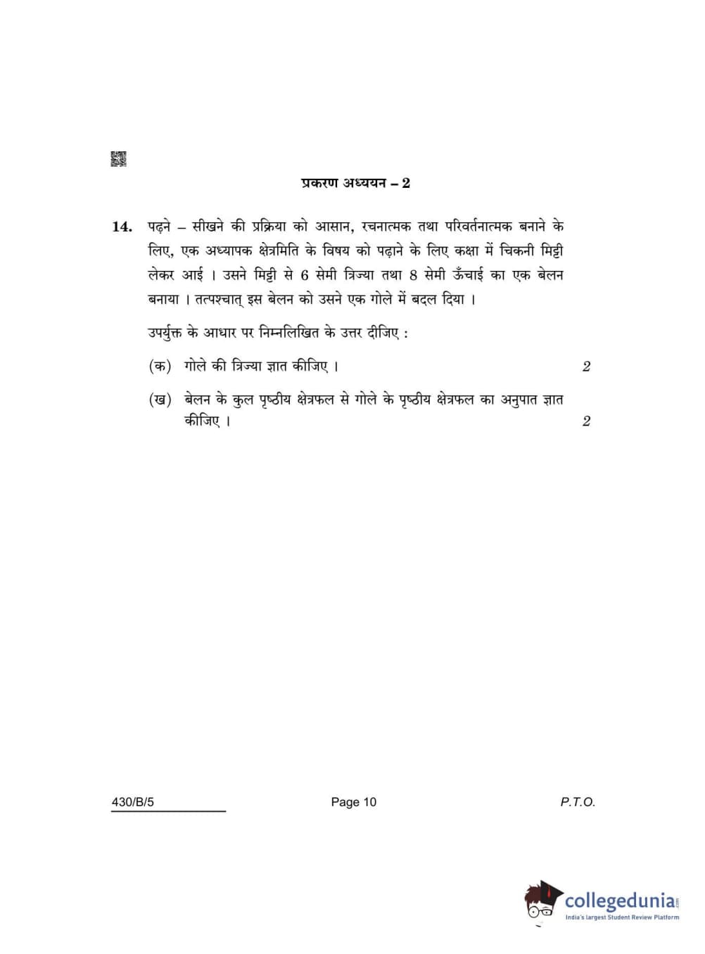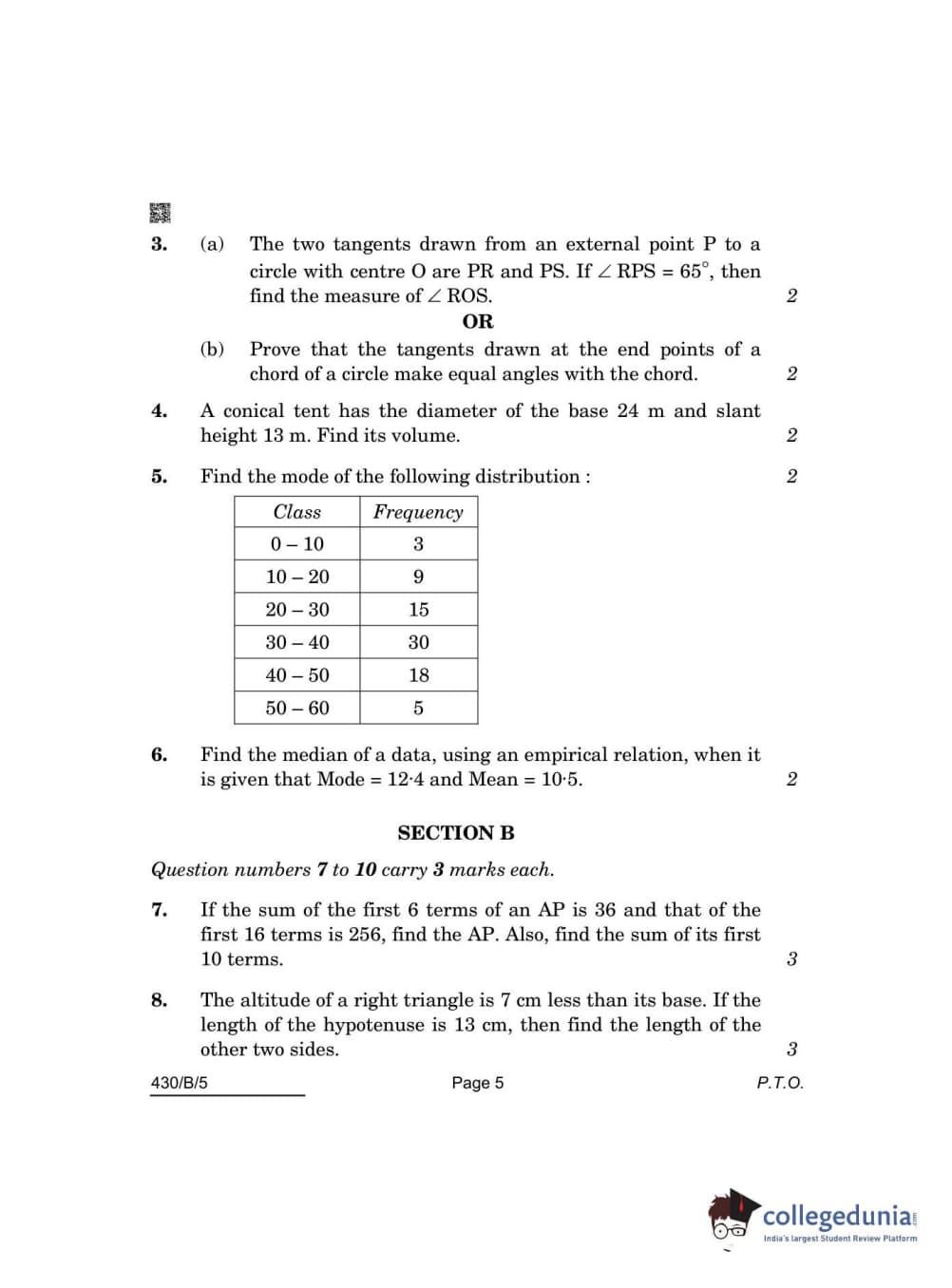 CBSE Class 10 Mathematics Basic (Visually Impaired) Question Paper 2022 with Answer Key Set 5 - 430/B/5 is available for download. The exam was conducted by the Central Board of Secondary Education on May 5, 2022 in the Morning Session 10:30 AM to 12:30 PM. The medium of paper was English & Hindi. The question paper comprised a total of 14 questions divided among 3 sections.