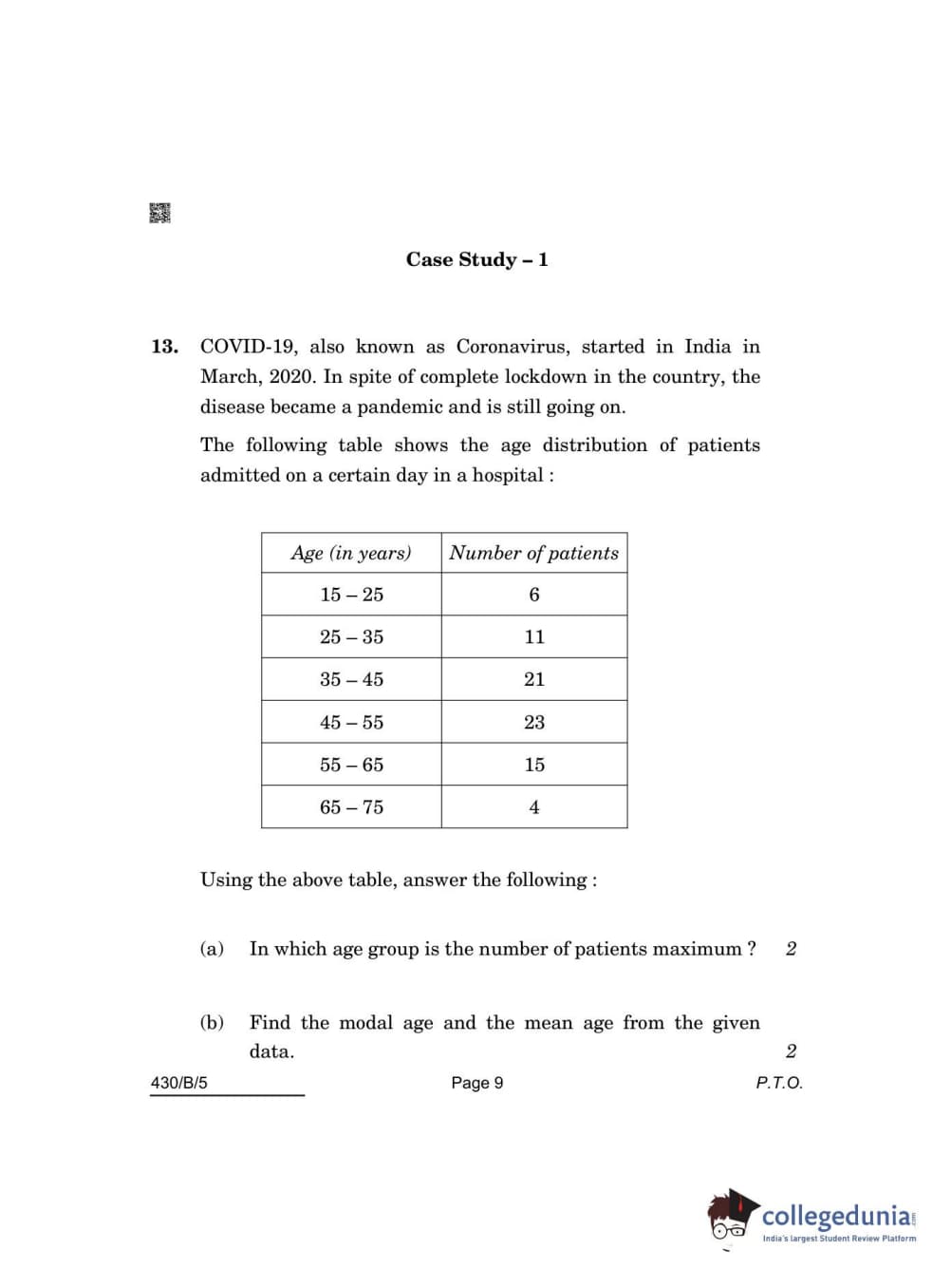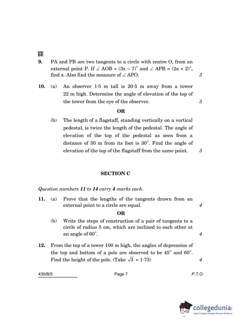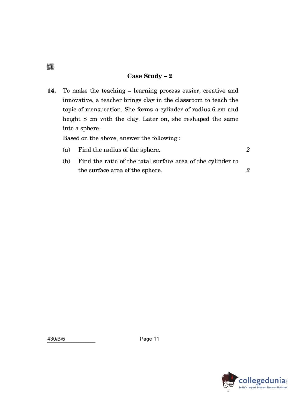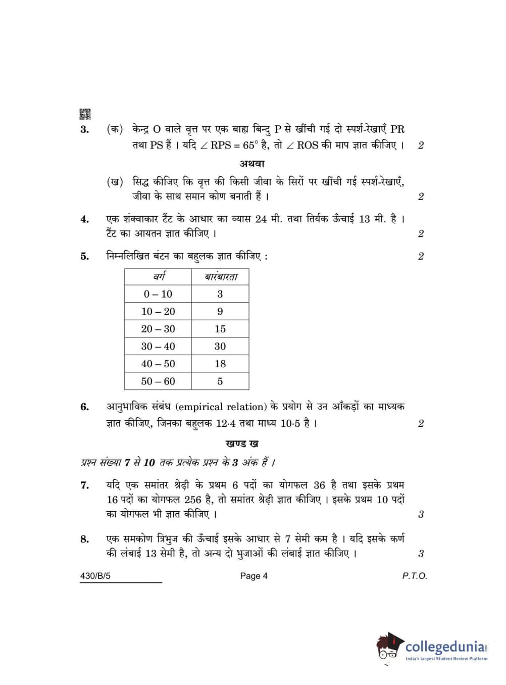 CBSE Class 10 Mathematics Basic (Visually Impaired) Question Paper 2022 with Answer Key Set 5 - 430/B/5 is available for download. The exam was conducted by the Central Board of Secondary Education on May 5, 2022 in the Morning Session 10:30 AM to 12:30 PM. The medium of paper was English & Hindi. The question paper comprised a total of 14 questions divided among 3 sections.