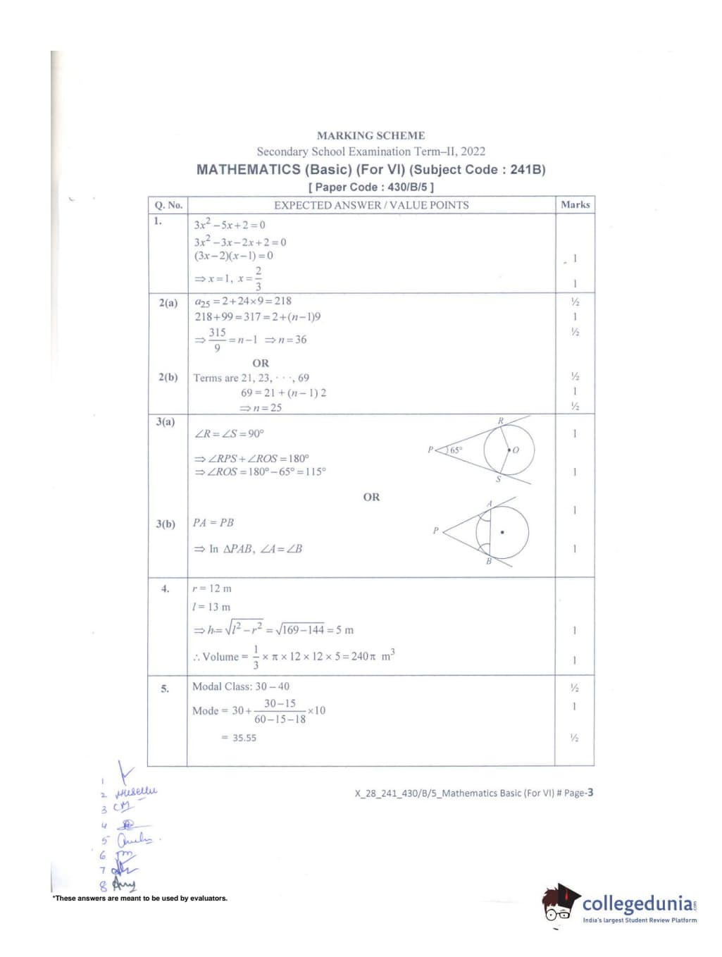 | CBSE Class 10 Mathematics Basic Question Paper 2022 PDF | CBSE Class 10 Mathematics Basic Answer Key 2022 PDF | Detailed Solutions |