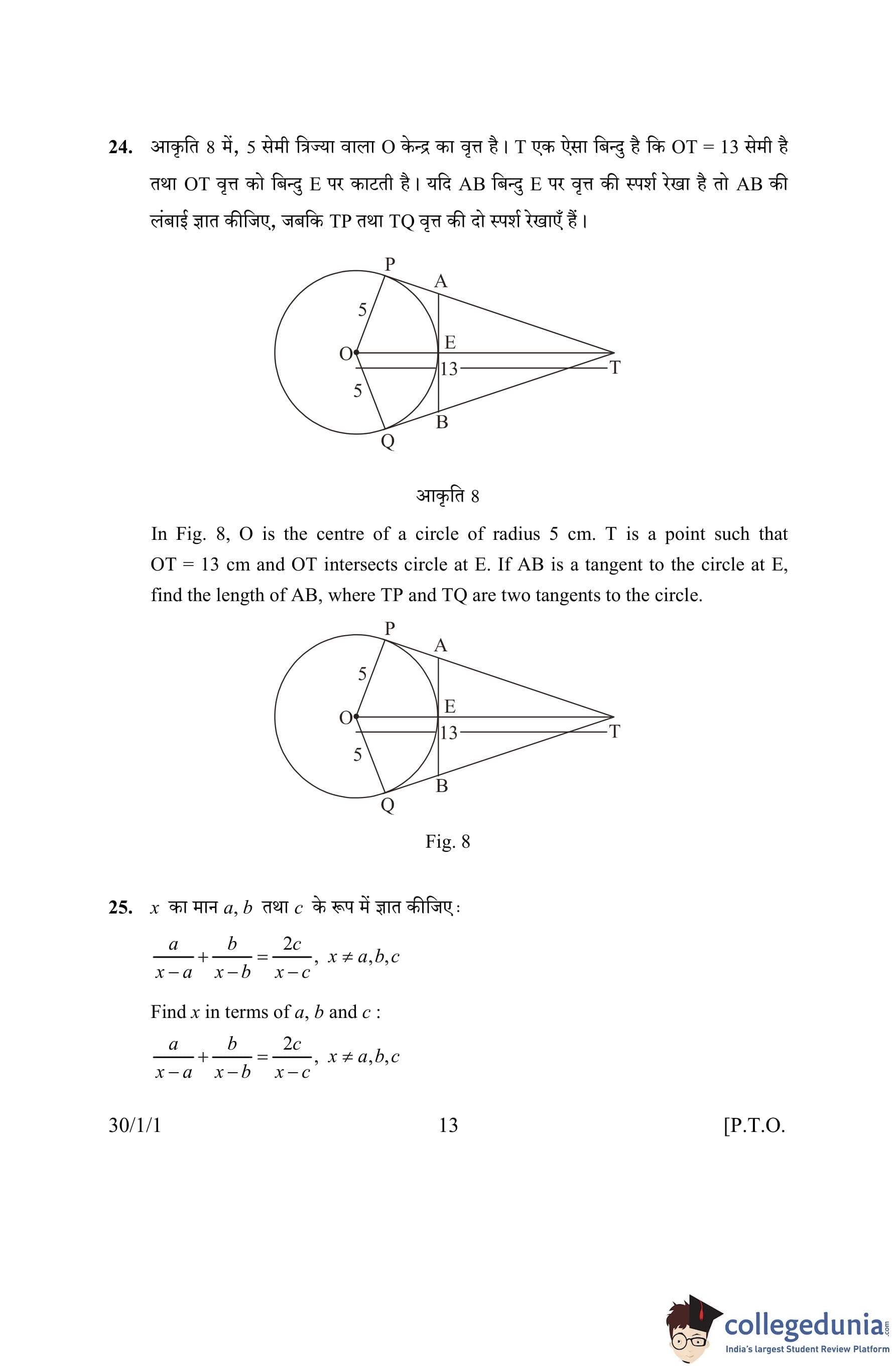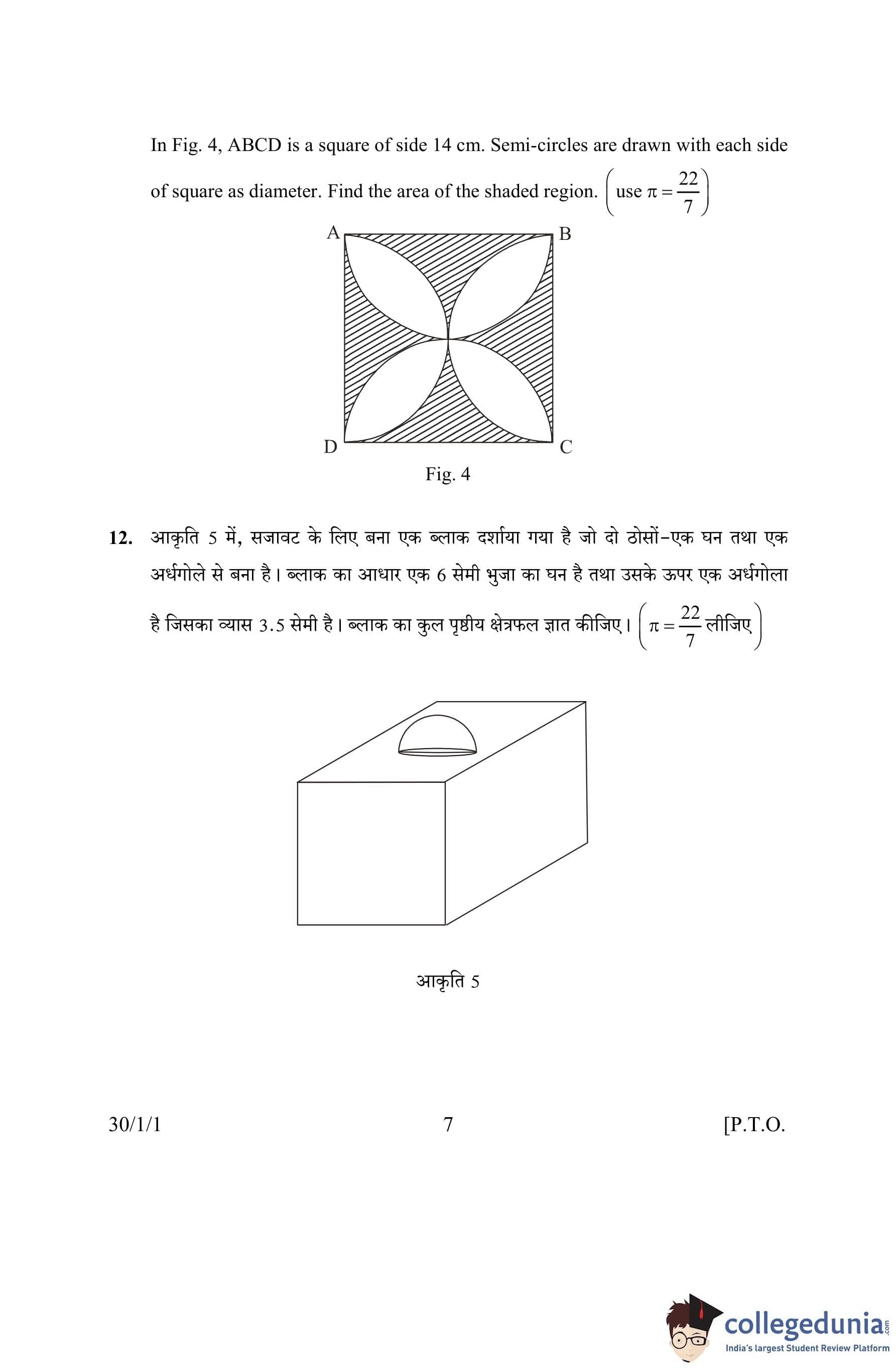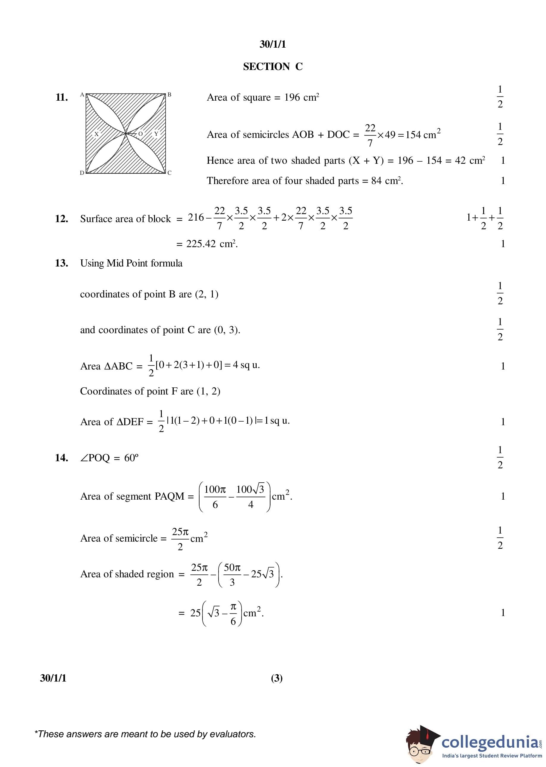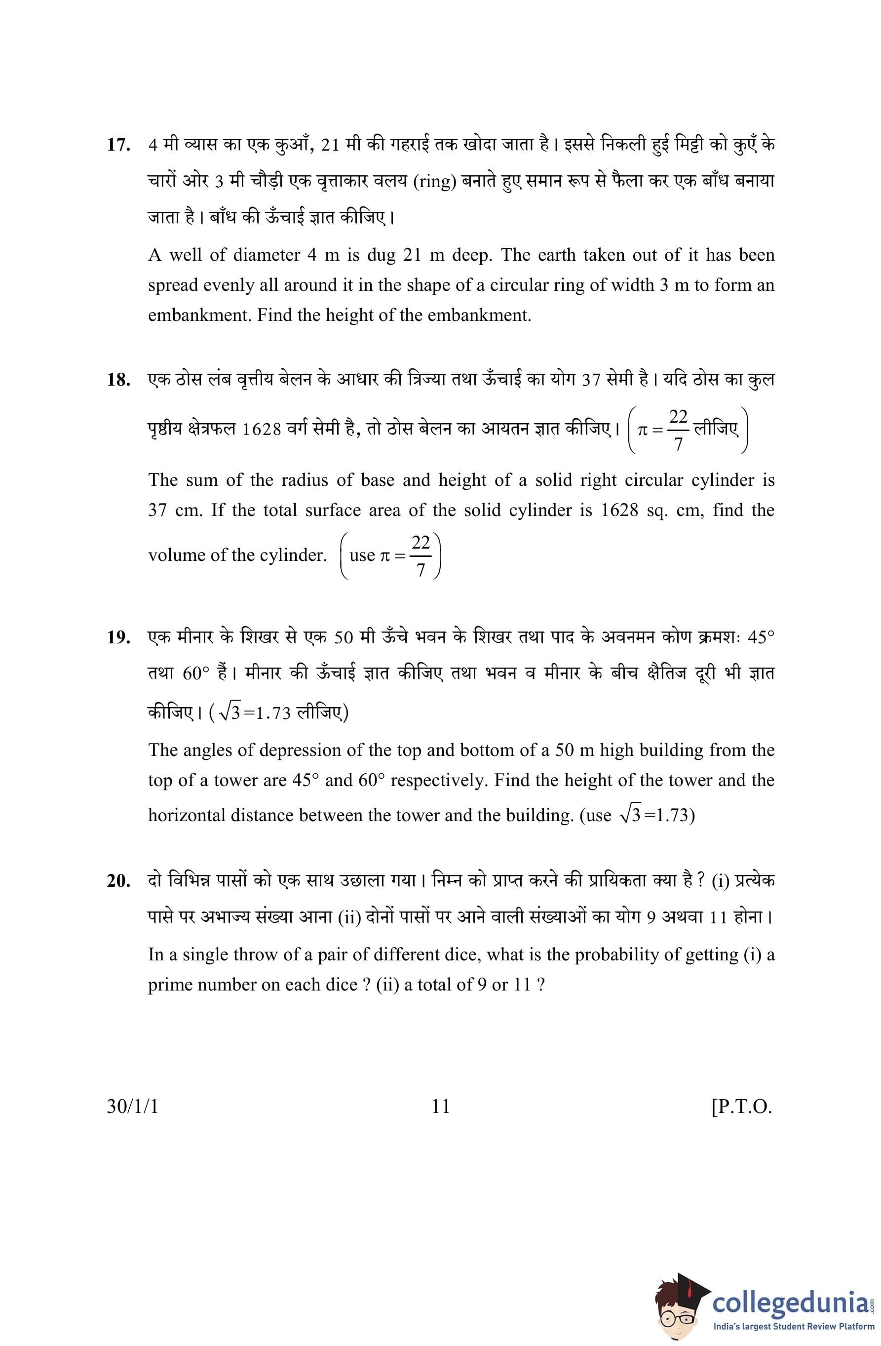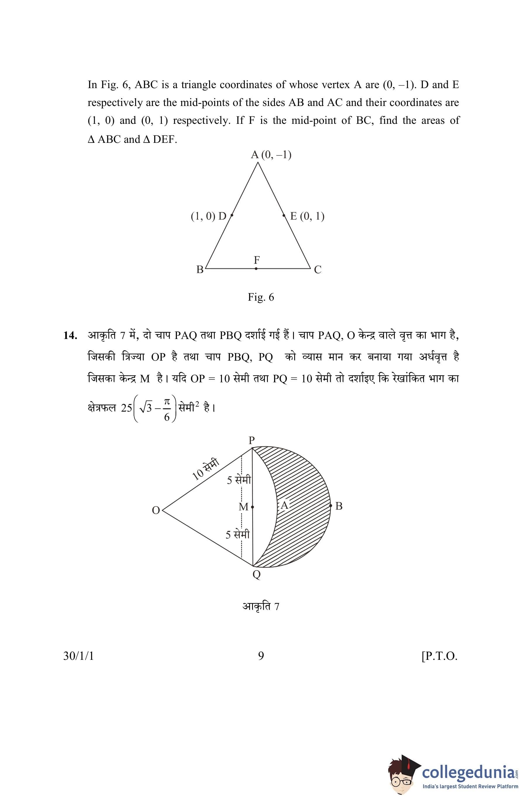 CBSE Class 10 Mathematics Question Paper 2016 with Answer Key Set 1- 30/1/1 is available for download. The exam was conducted by the Central Board of Secondary Education on March 19, 2016 in the Morning Session 10:30 AM to 1:30 PM. The medium of paper was English and Hindi. The question paper comprised a total of 31 questions divided among 4 sections.