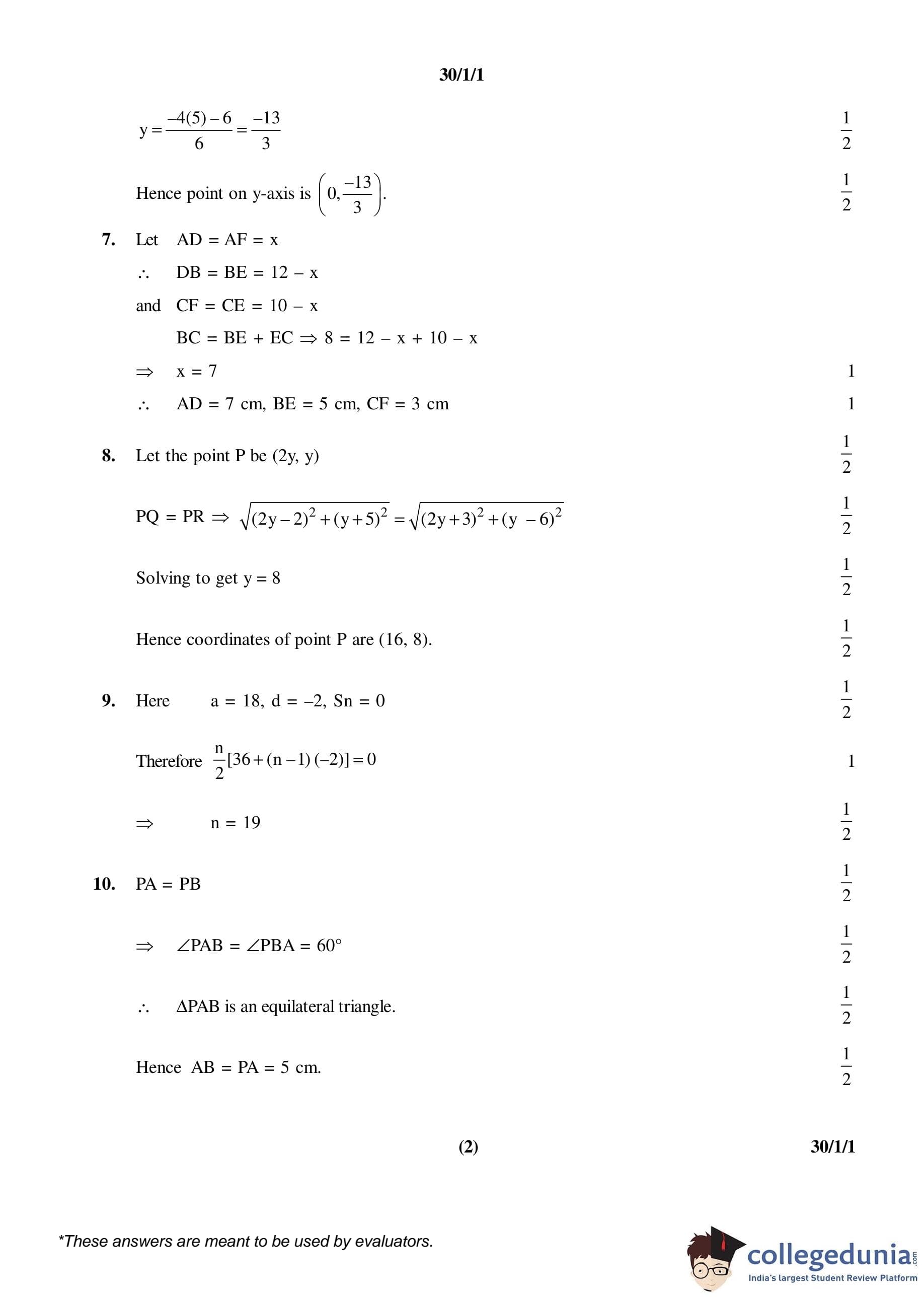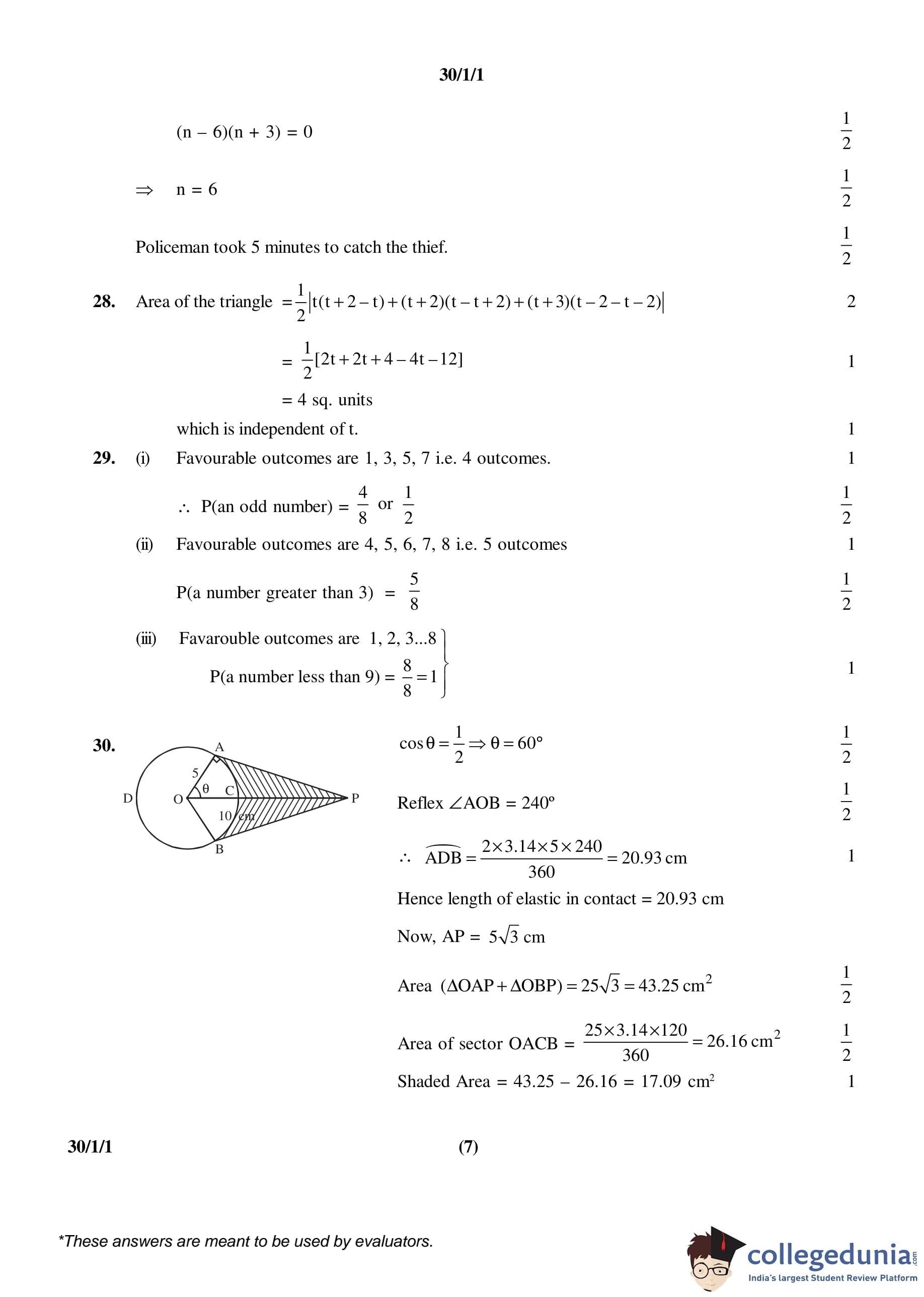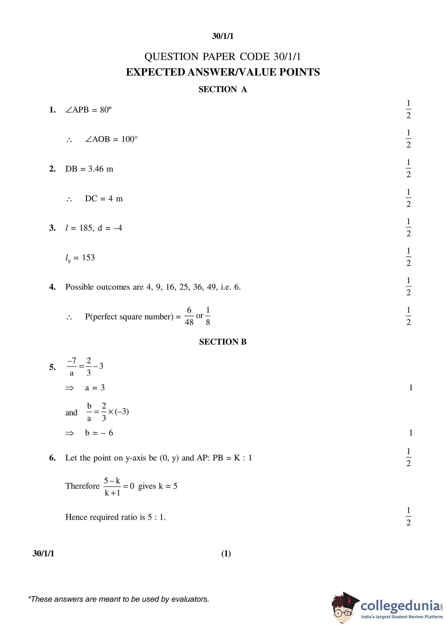CBSE Class 10 Mathematics Set 1- 30/1/1 Question Paper 2016 with Answer Key (March 19)