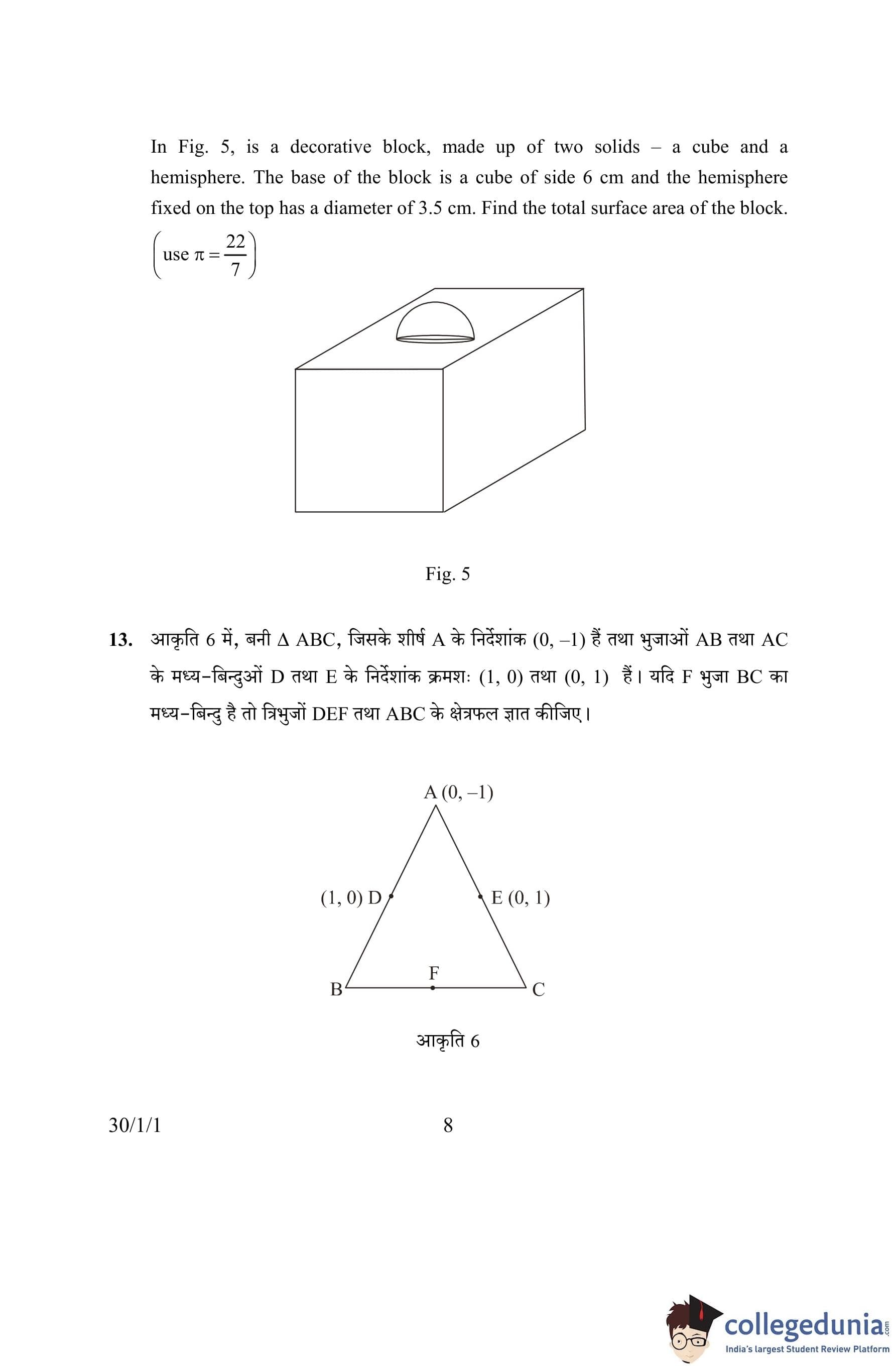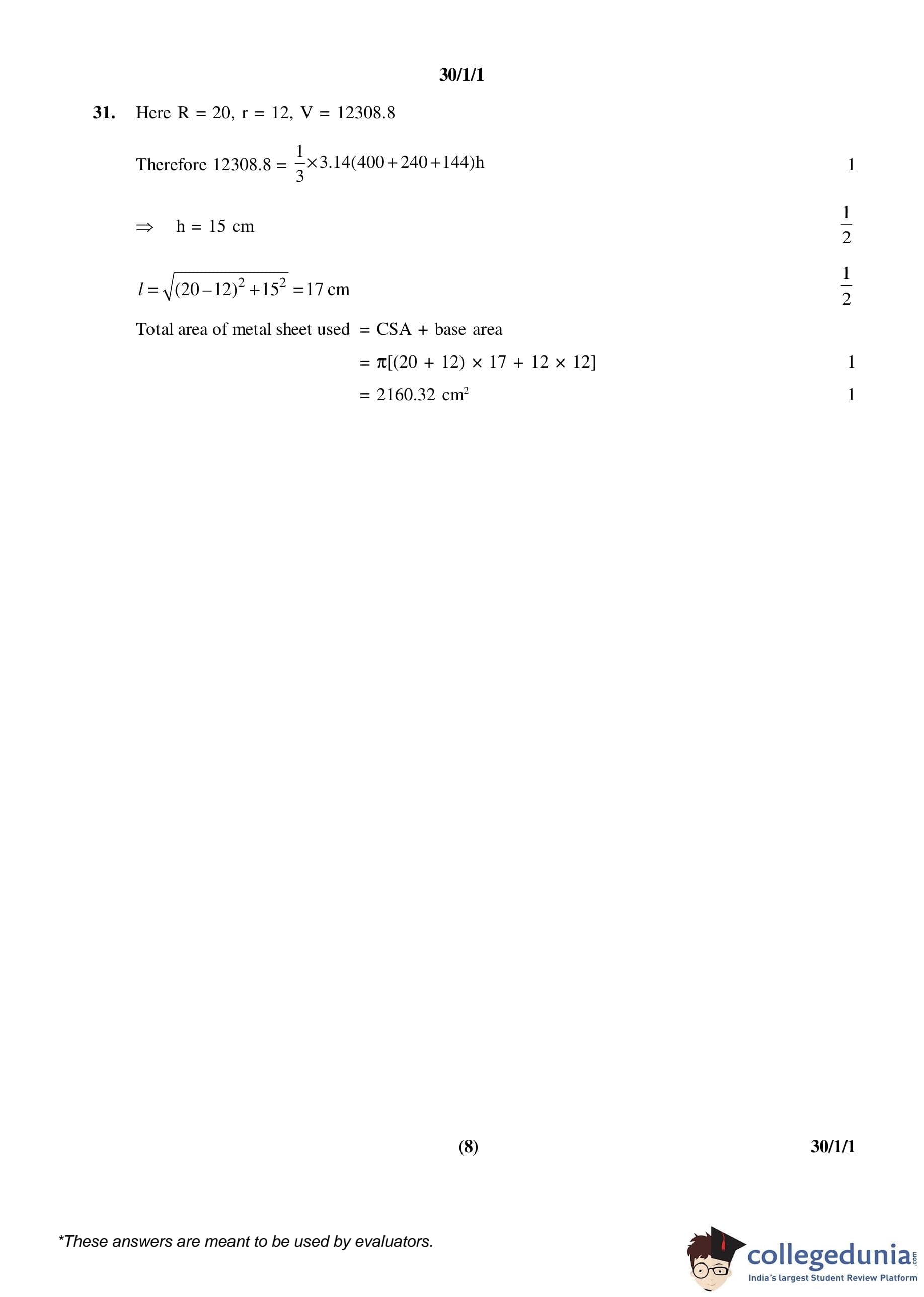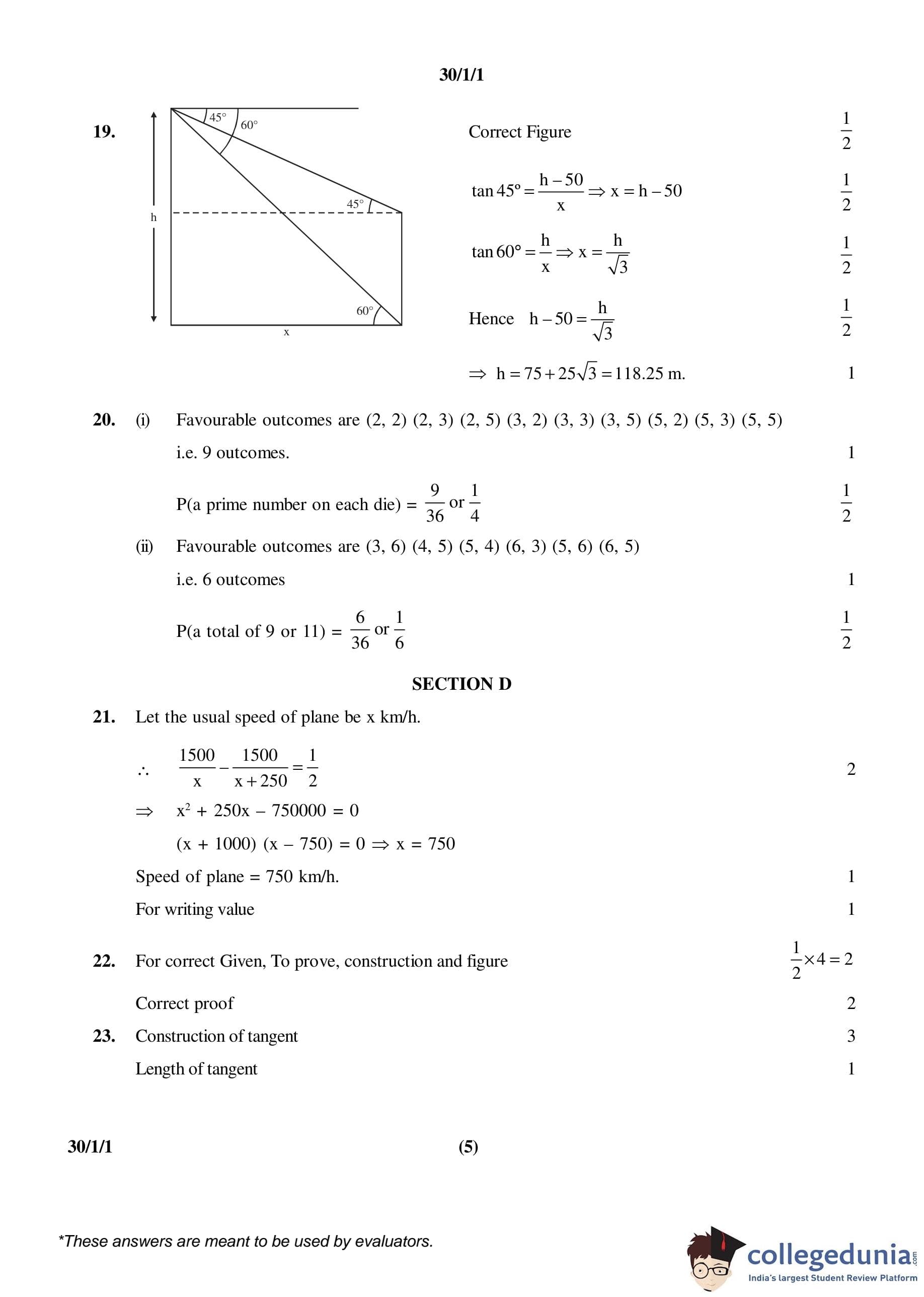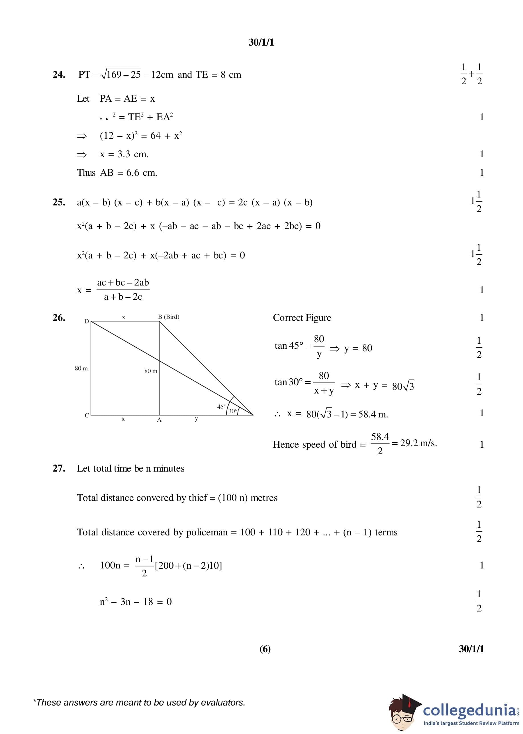 CBSE Class 10 Mathematics Set 1- 30/1/1 Question Paper 2016 with Answer Key (March 19)