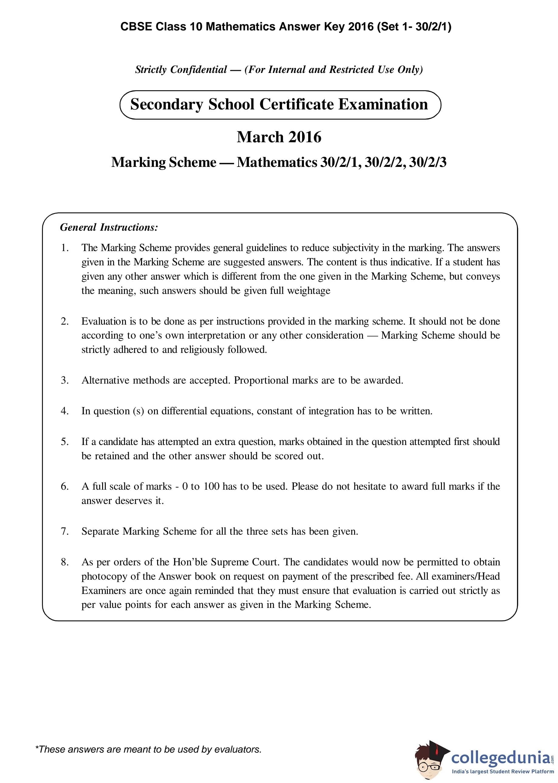 | CBSE Class 10 Mathematics Question Paper 2016 PDF | CBSE Class 10 Mathematics Answer Key 2016 PDF | Detailed Solutions |
