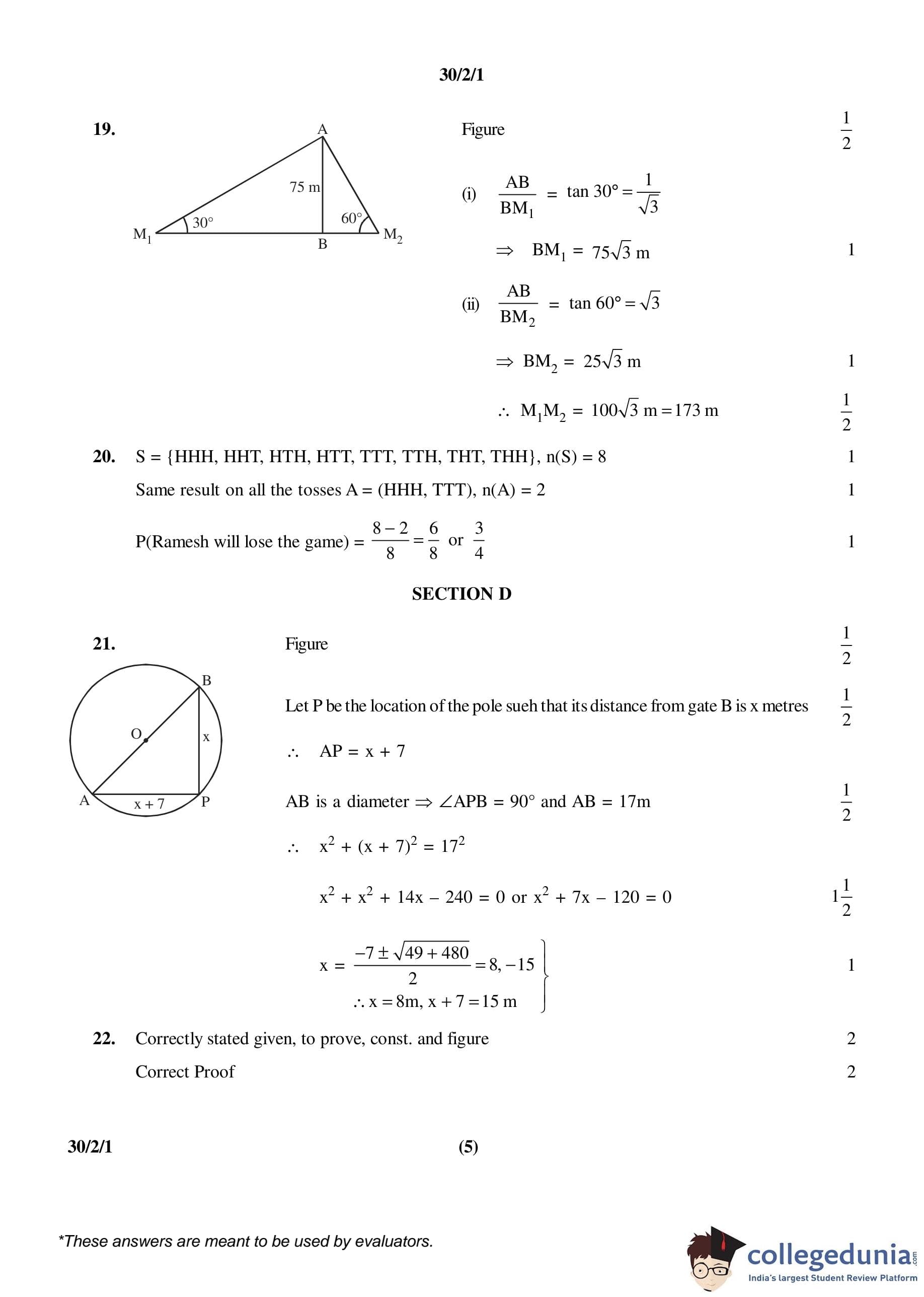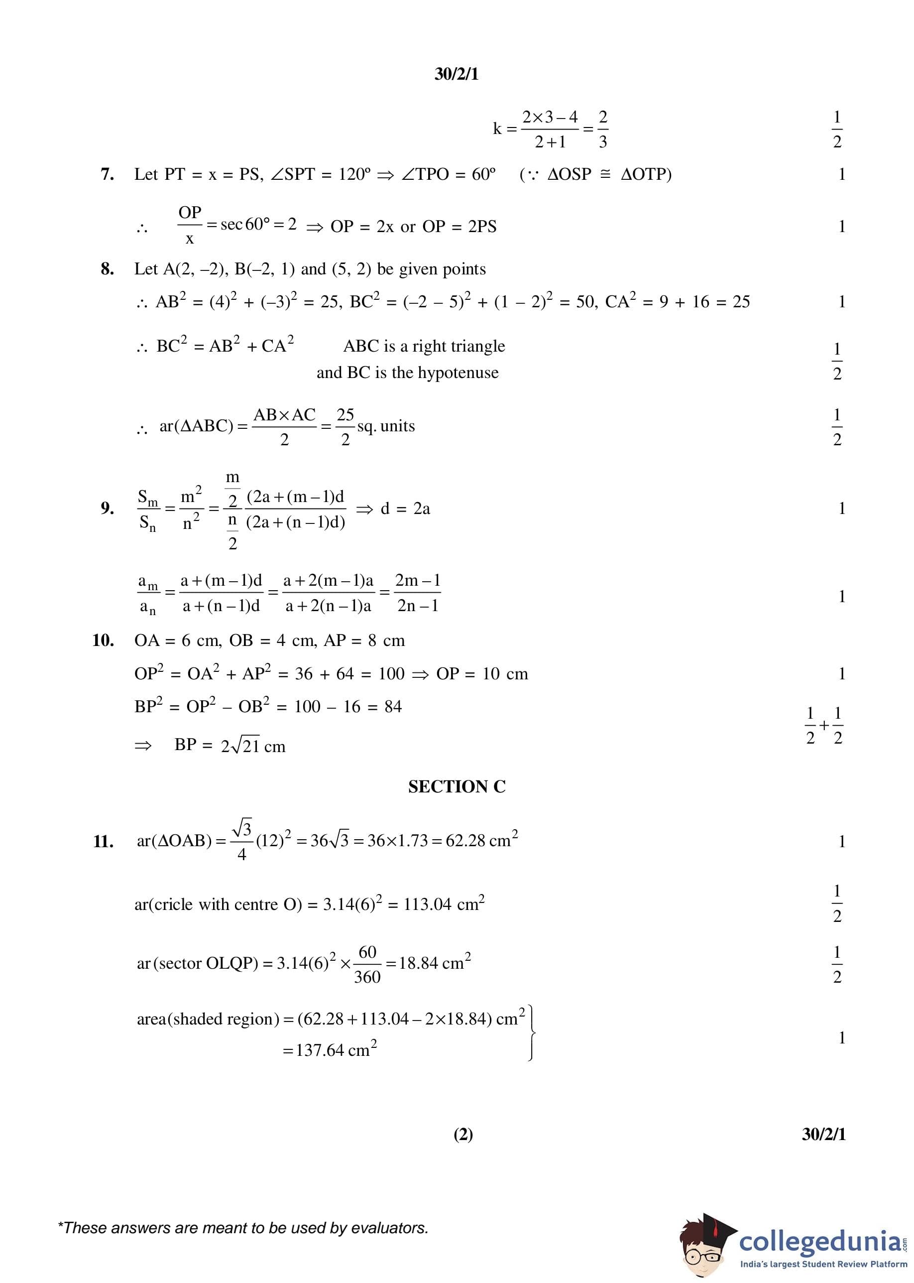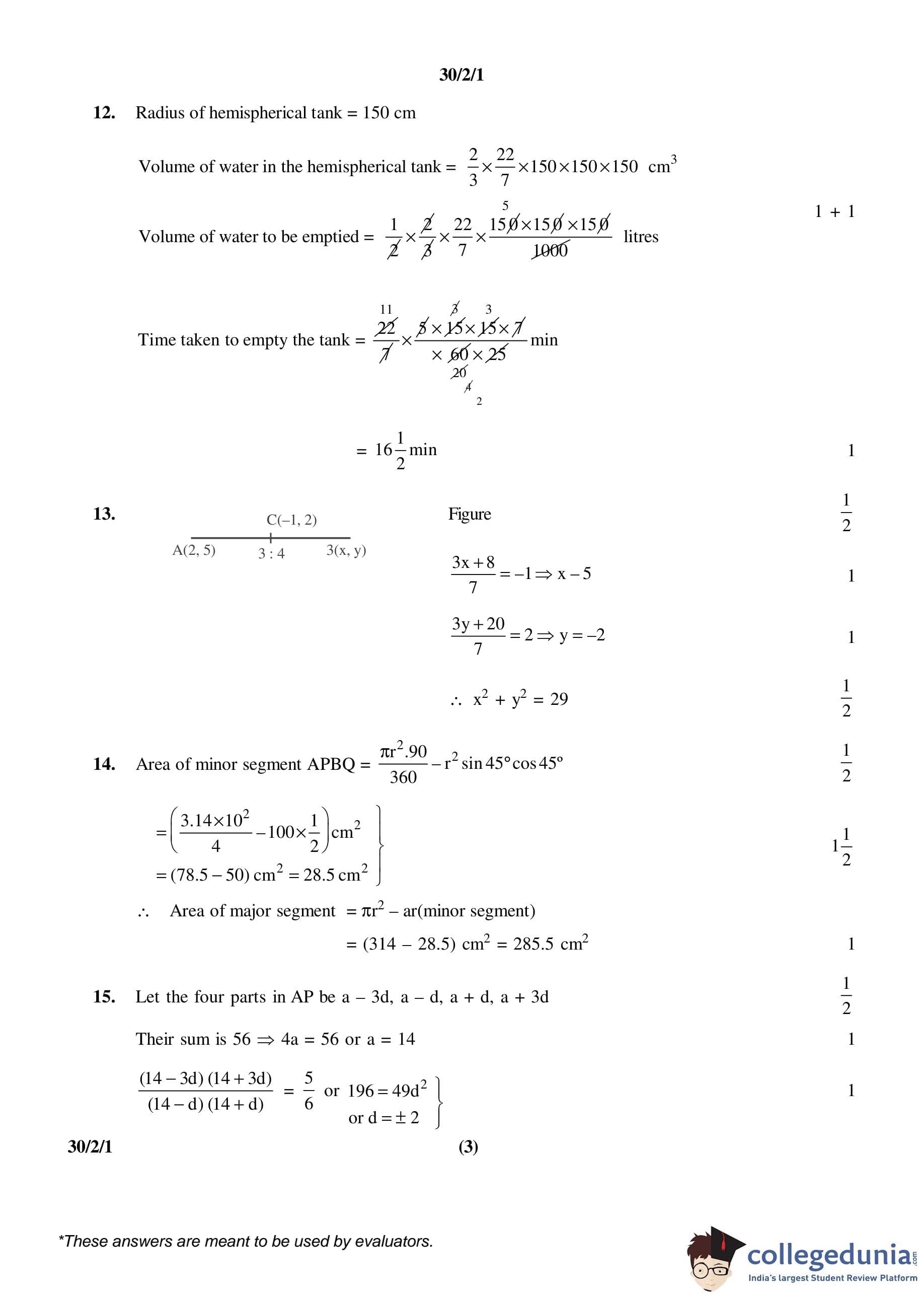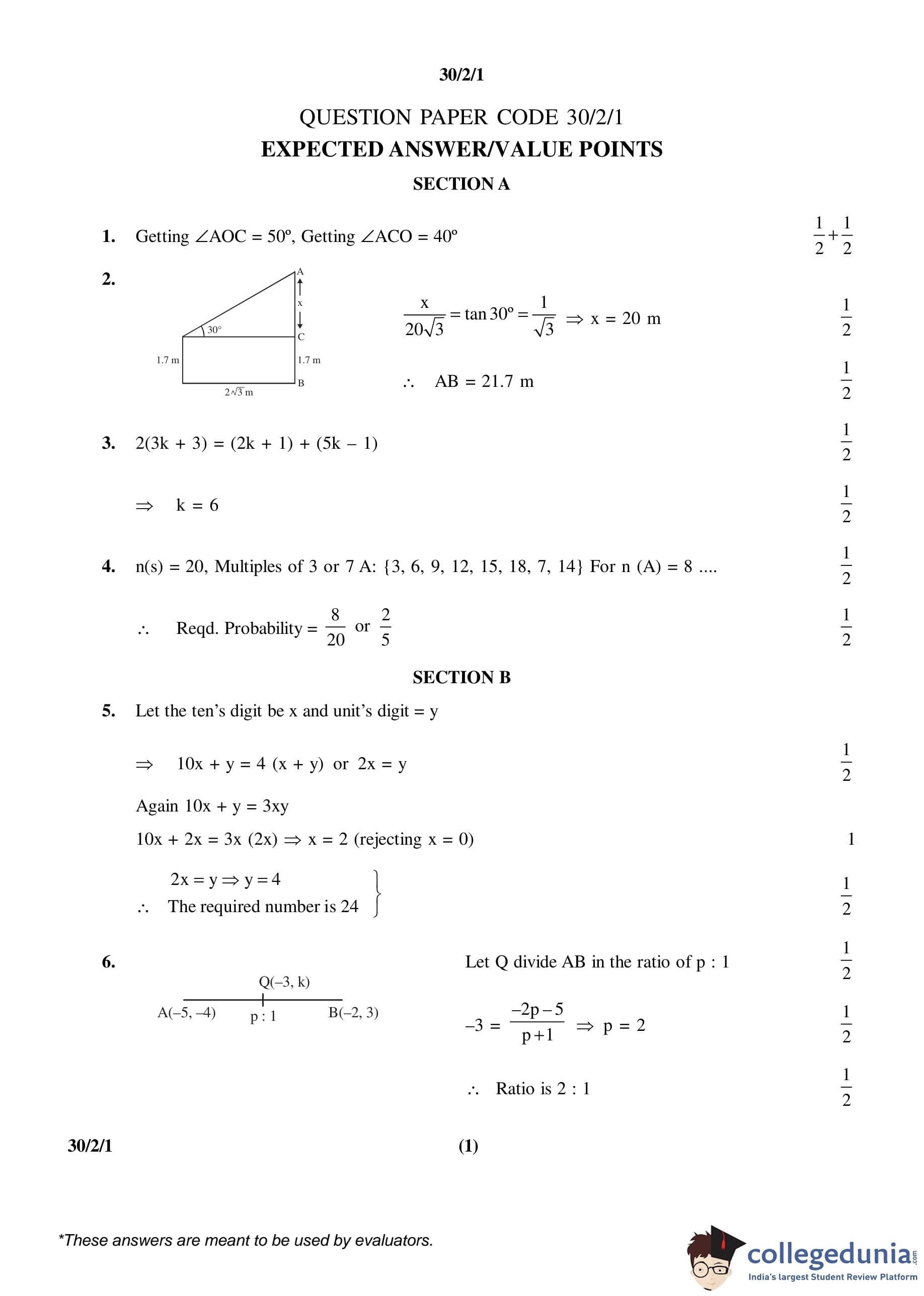 CBSE Class 10 Mathematics Set 1- 30/2/1 Question Paper 2016 with Answer Key (March 19)