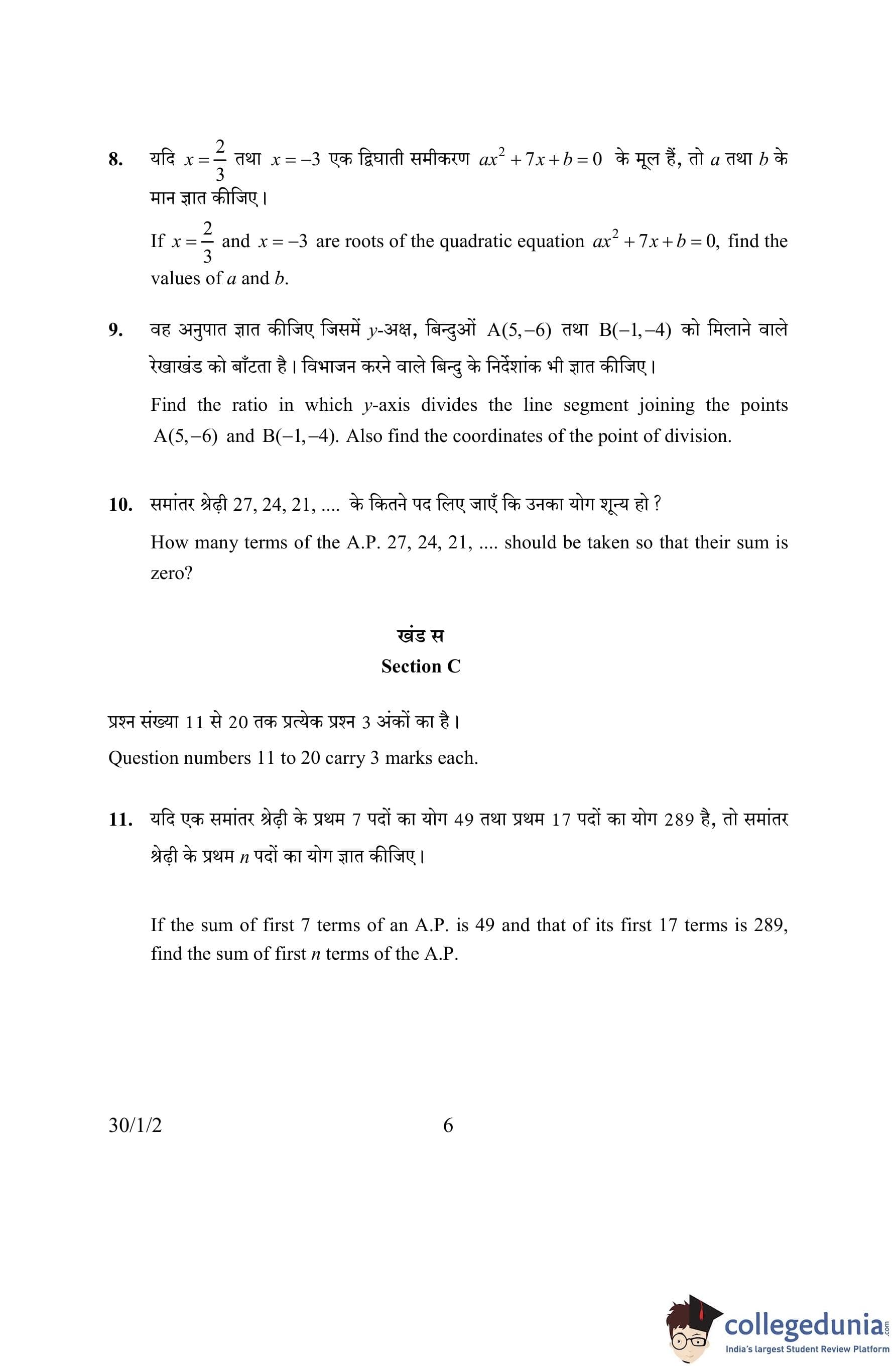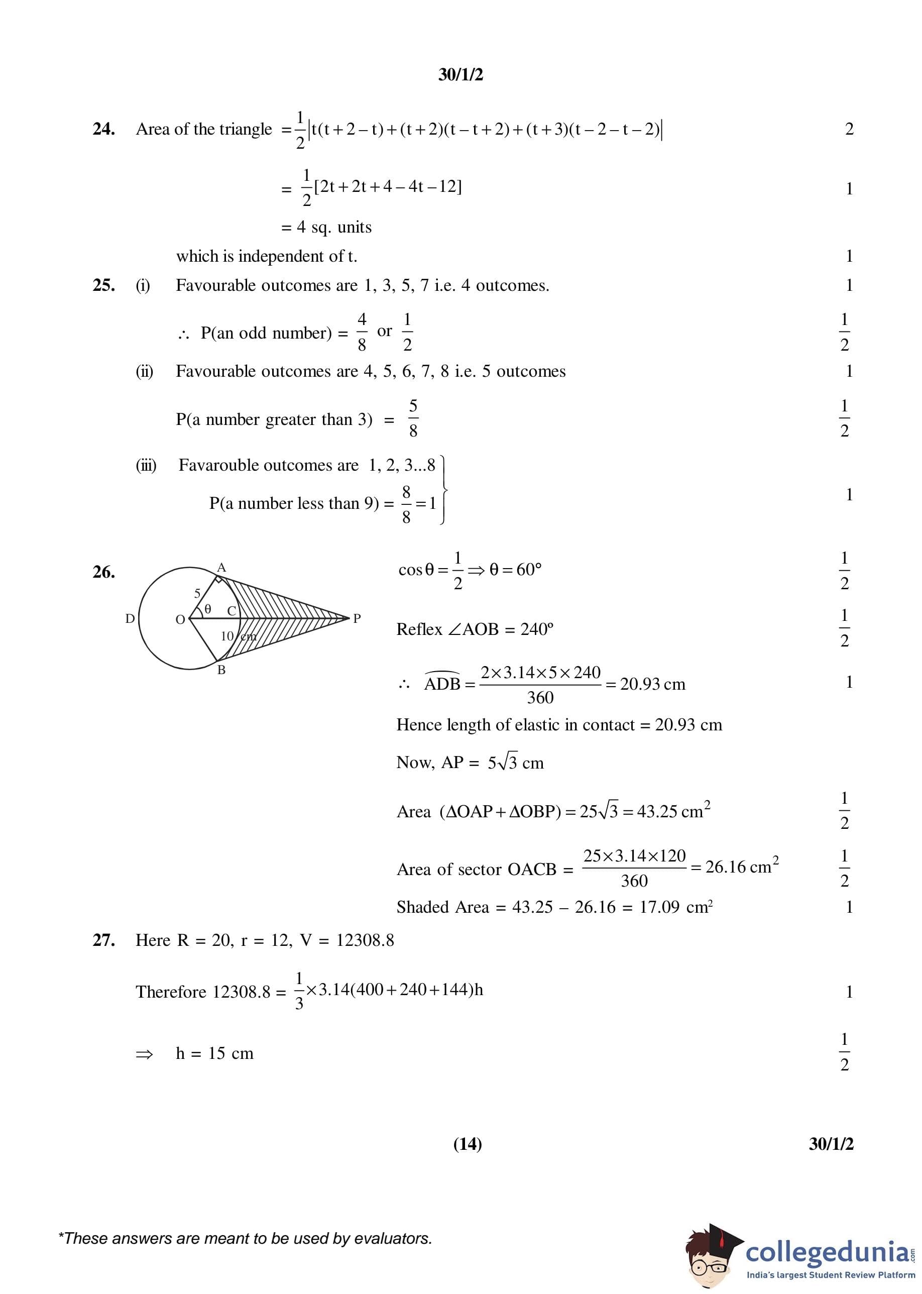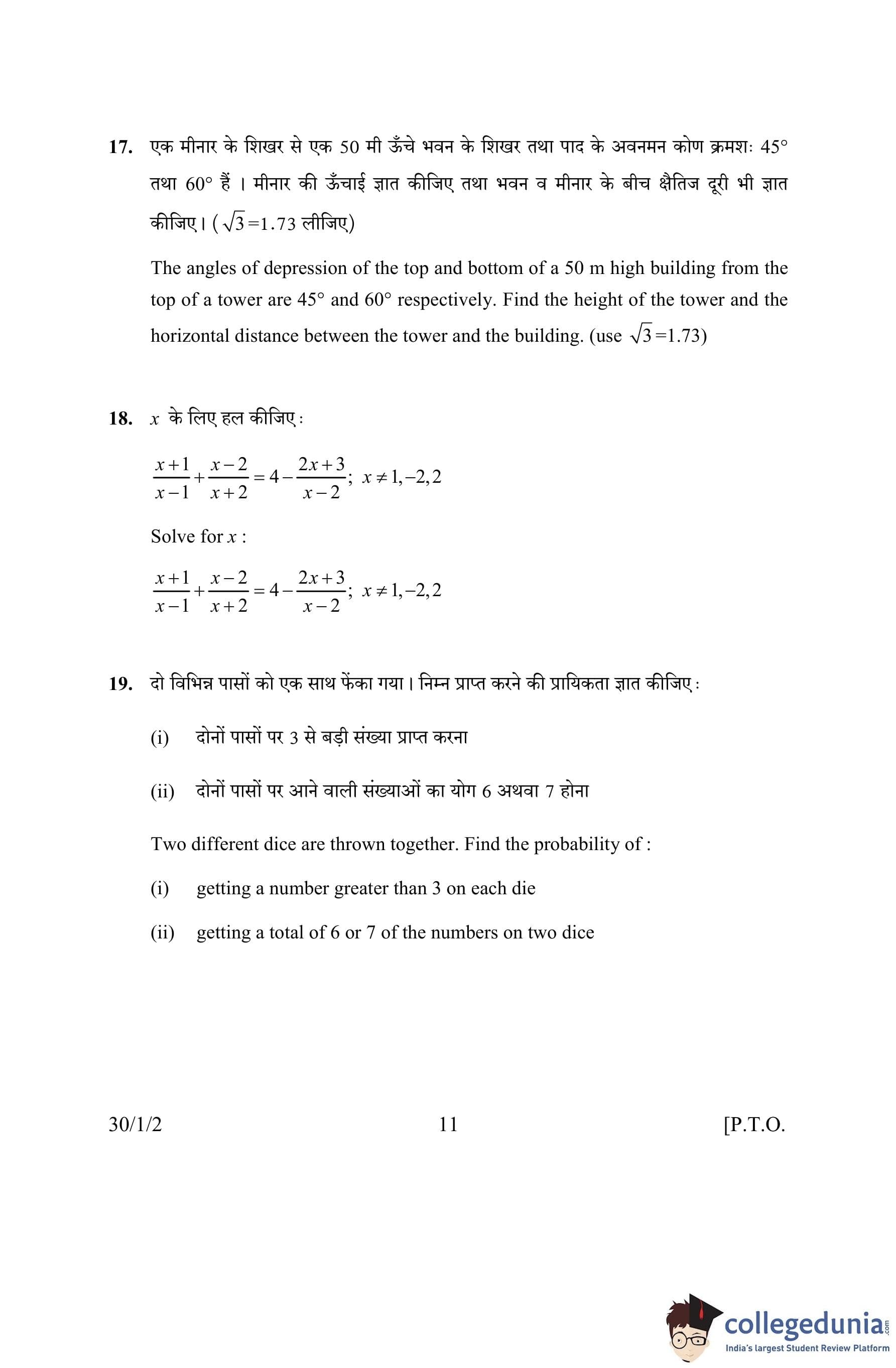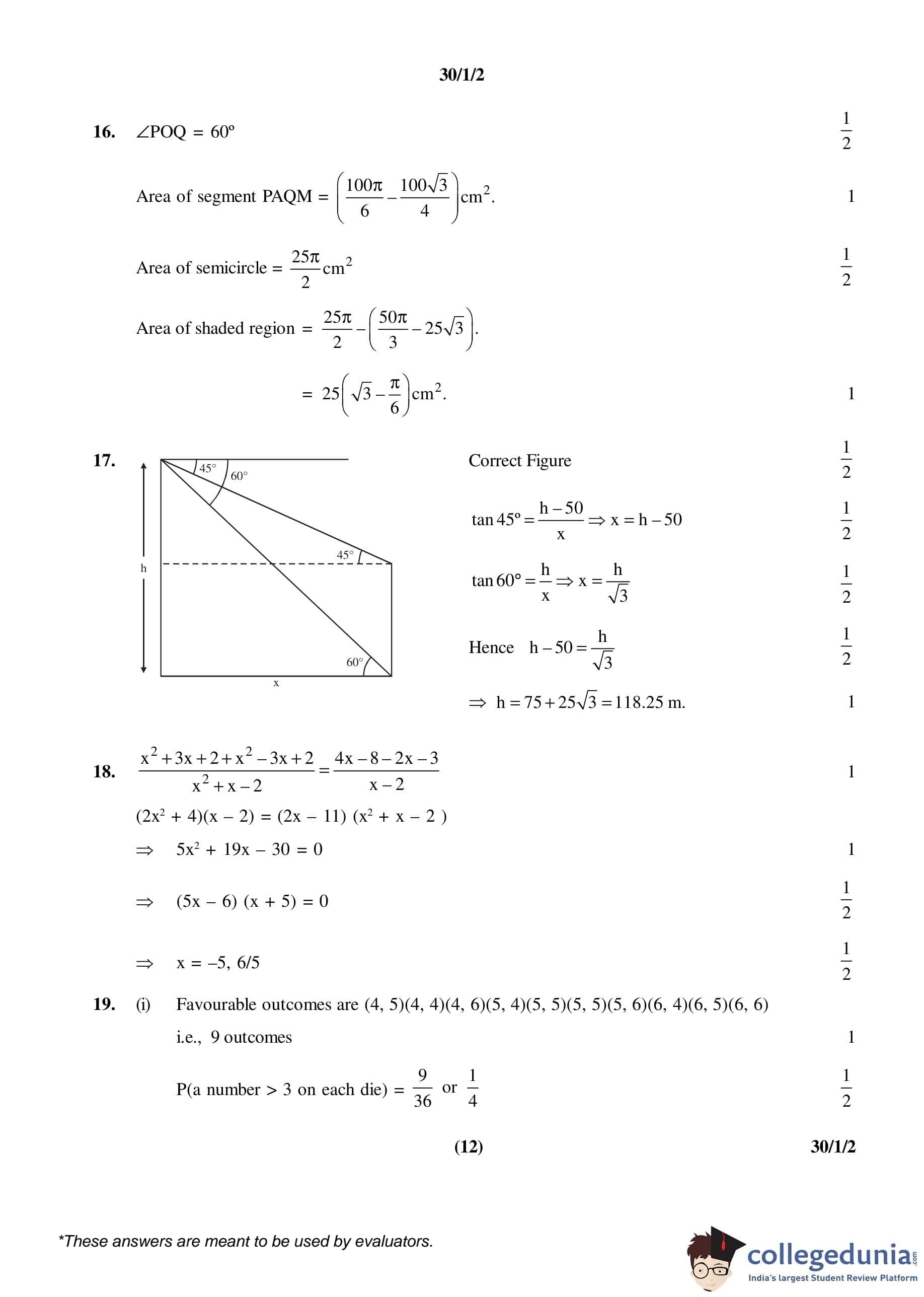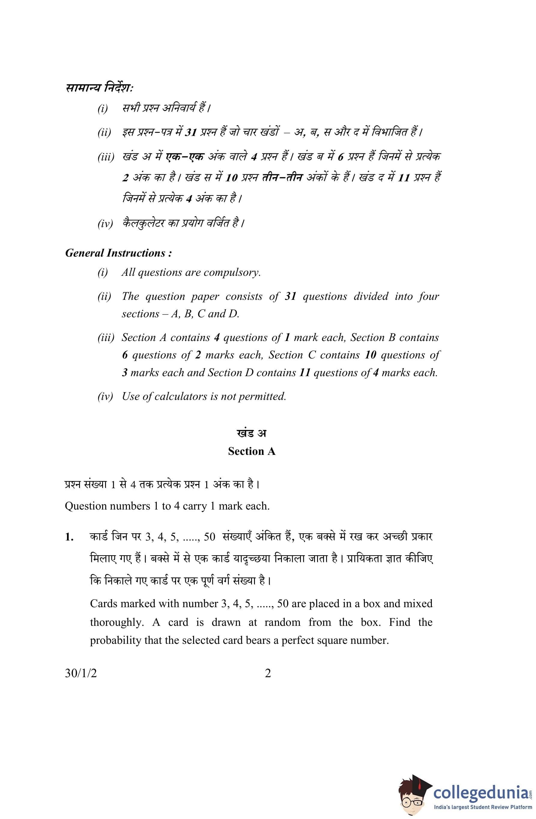 CBSE Class 10 Mathematics Question Paper 2016 with Answer Key Set 2- 30/1/2 is available for download. The exam was conducted by the Central Board of Secondary Education on March 19, 2016 in the Morning Session 10:30 AM to 1:30 PM. The medium of paper was English and Hindi. The question paper comprised a total of 31 questions divided among 4 sections.