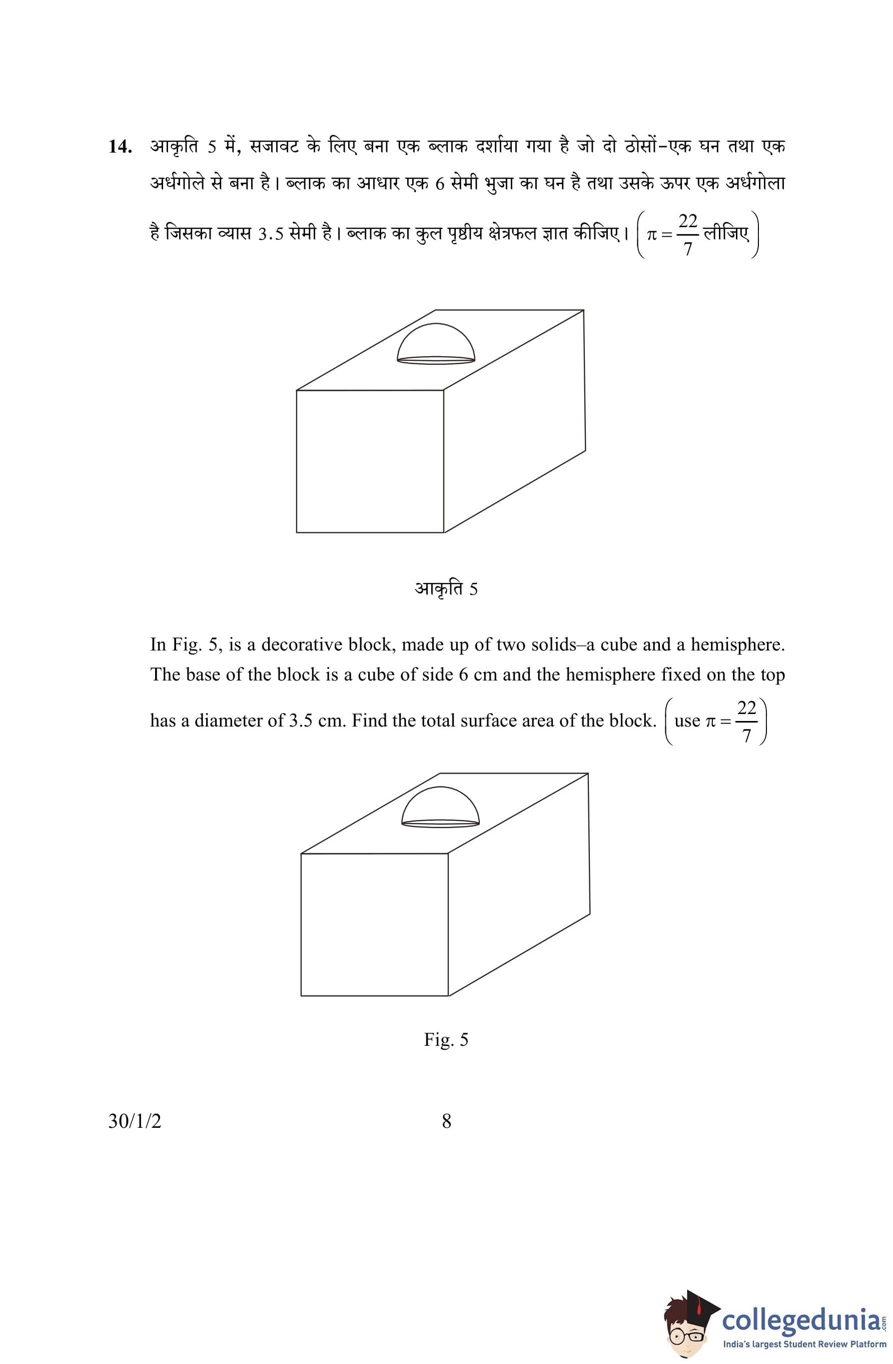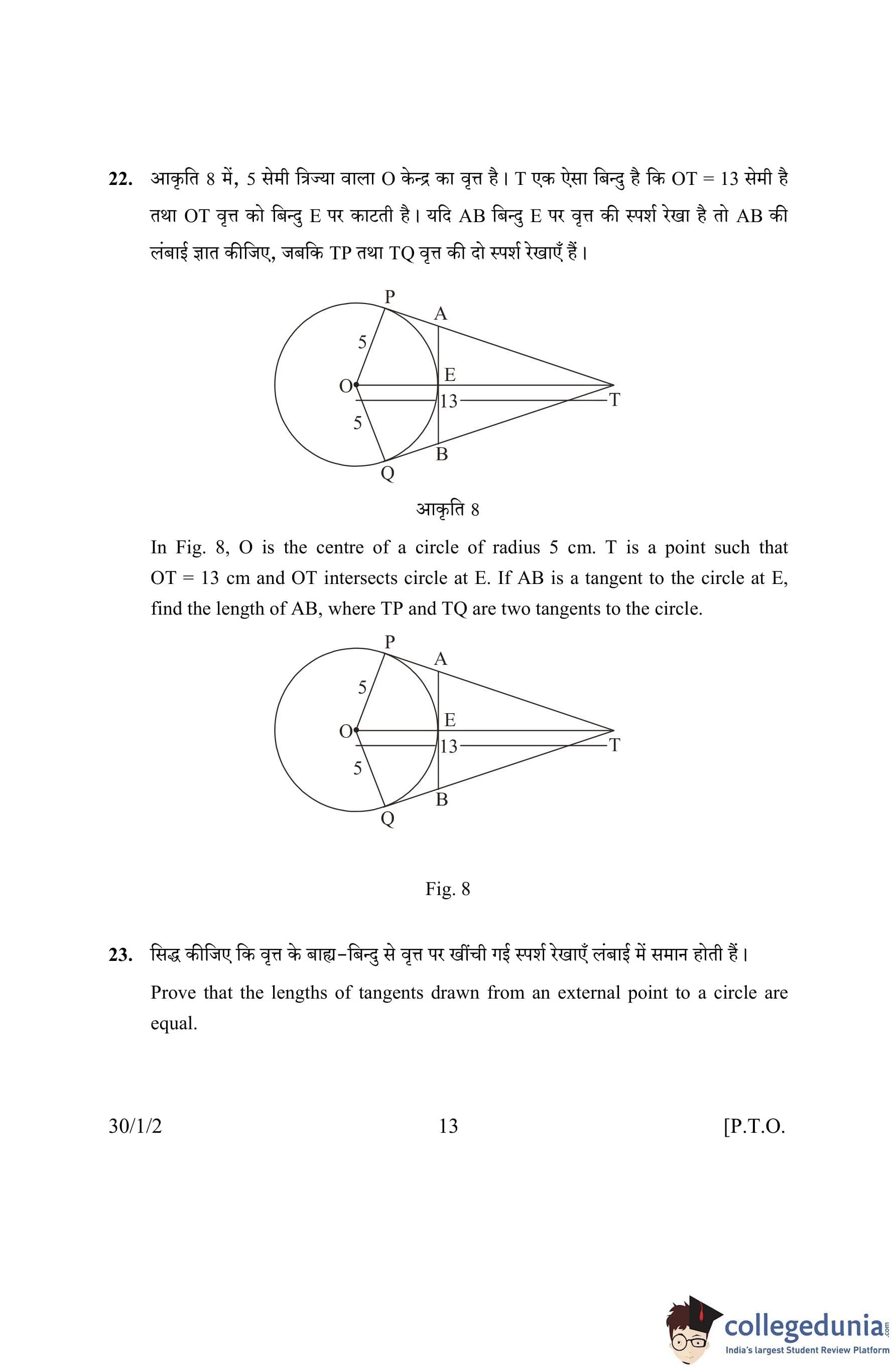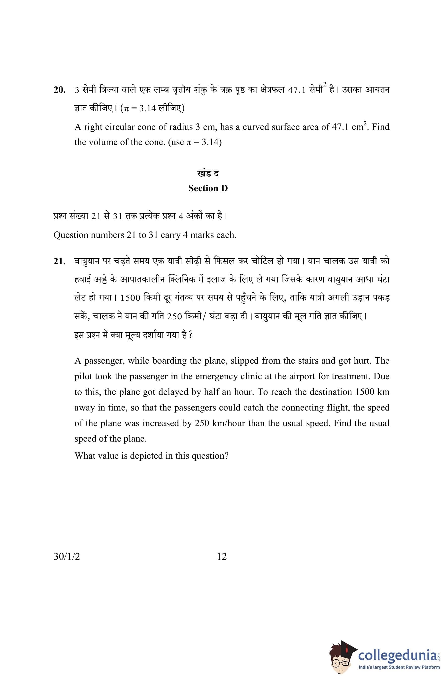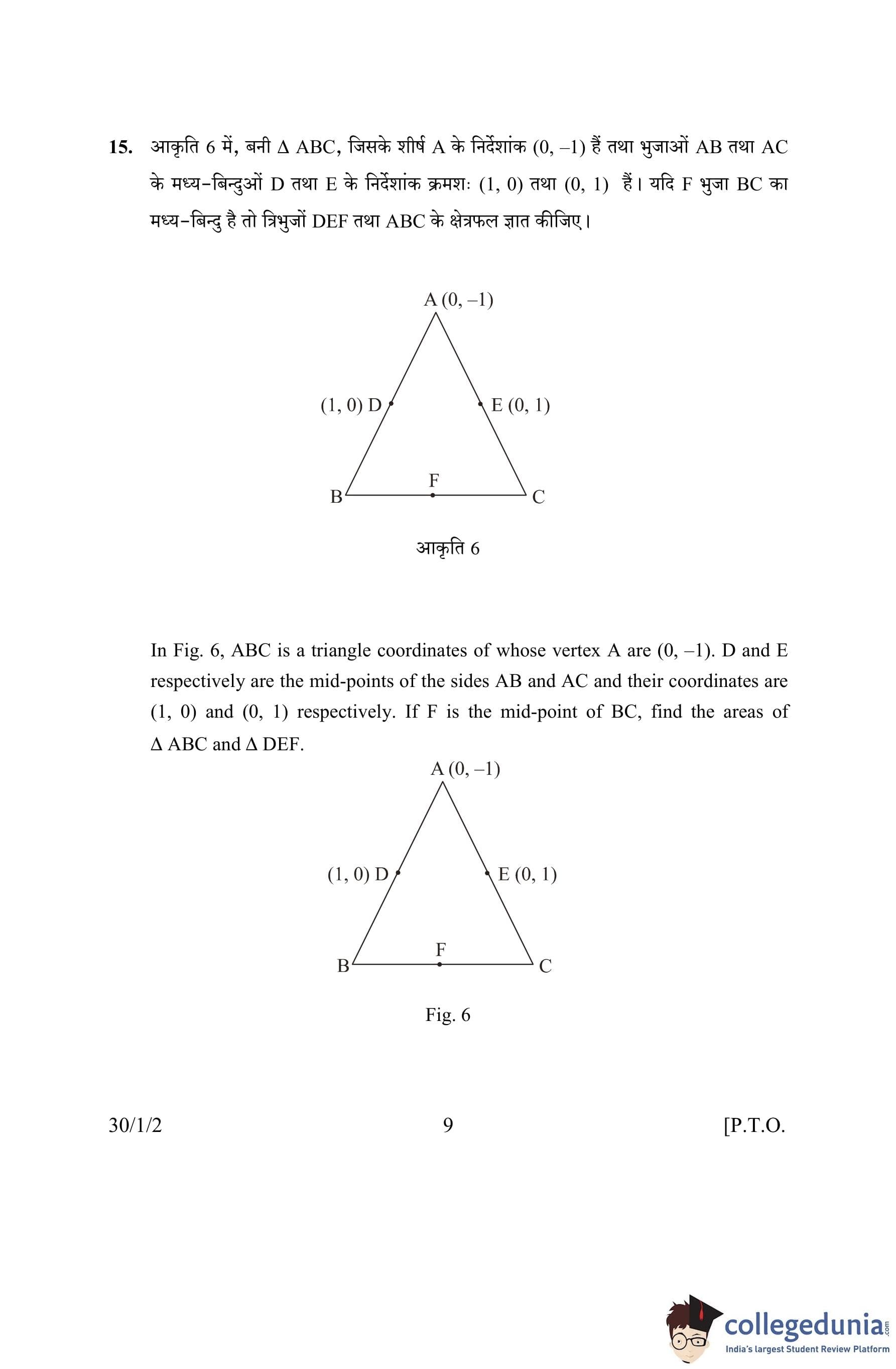 CBSE Class 10 Mathematics Question Paper 2016 with Answer Key Set 2- 30/1/2 is available for download. The exam was conducted by the Central Board of Secondary Education on March 19, 2016 in the Morning Session 10:30 AM to 1:30 PM. The medium of paper was English and Hindi. The question paper comprised a total of 31 questions divided among 4 sections.