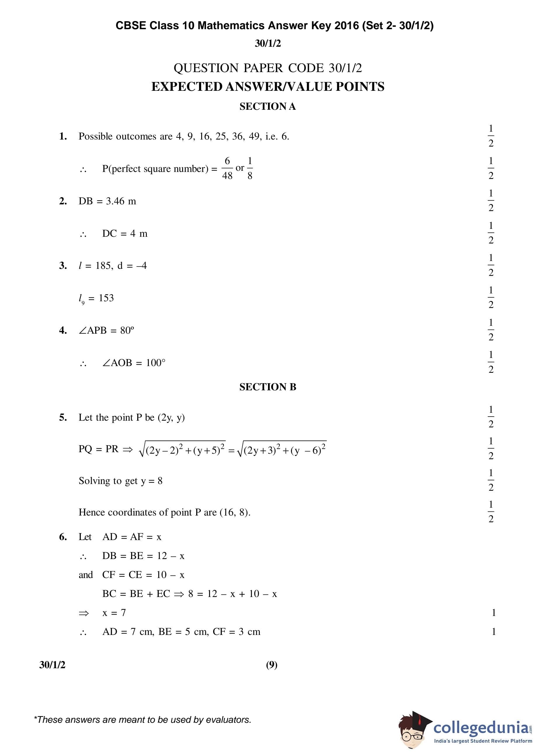| CBSE Class 10 Mathematics Question Paper 2016 PDF | CBSE Class 10 Mathematics Answer Key 2016 PDF | Detailed Solutions |