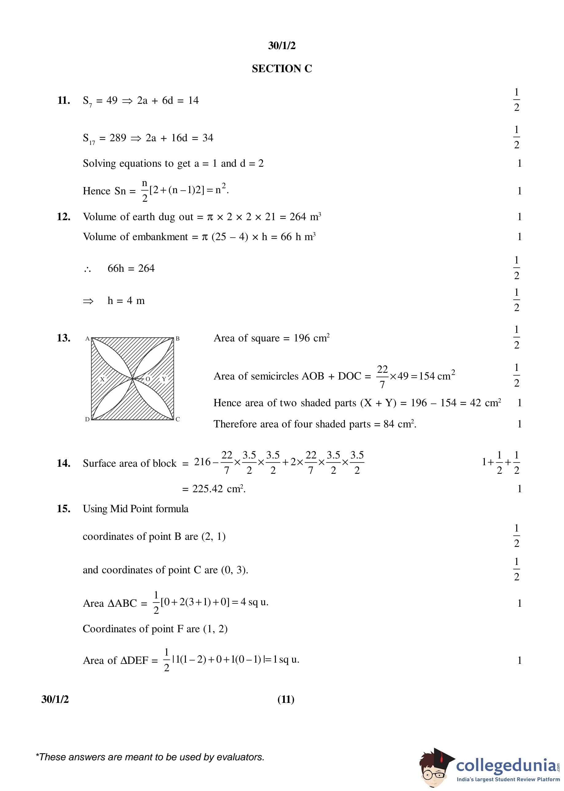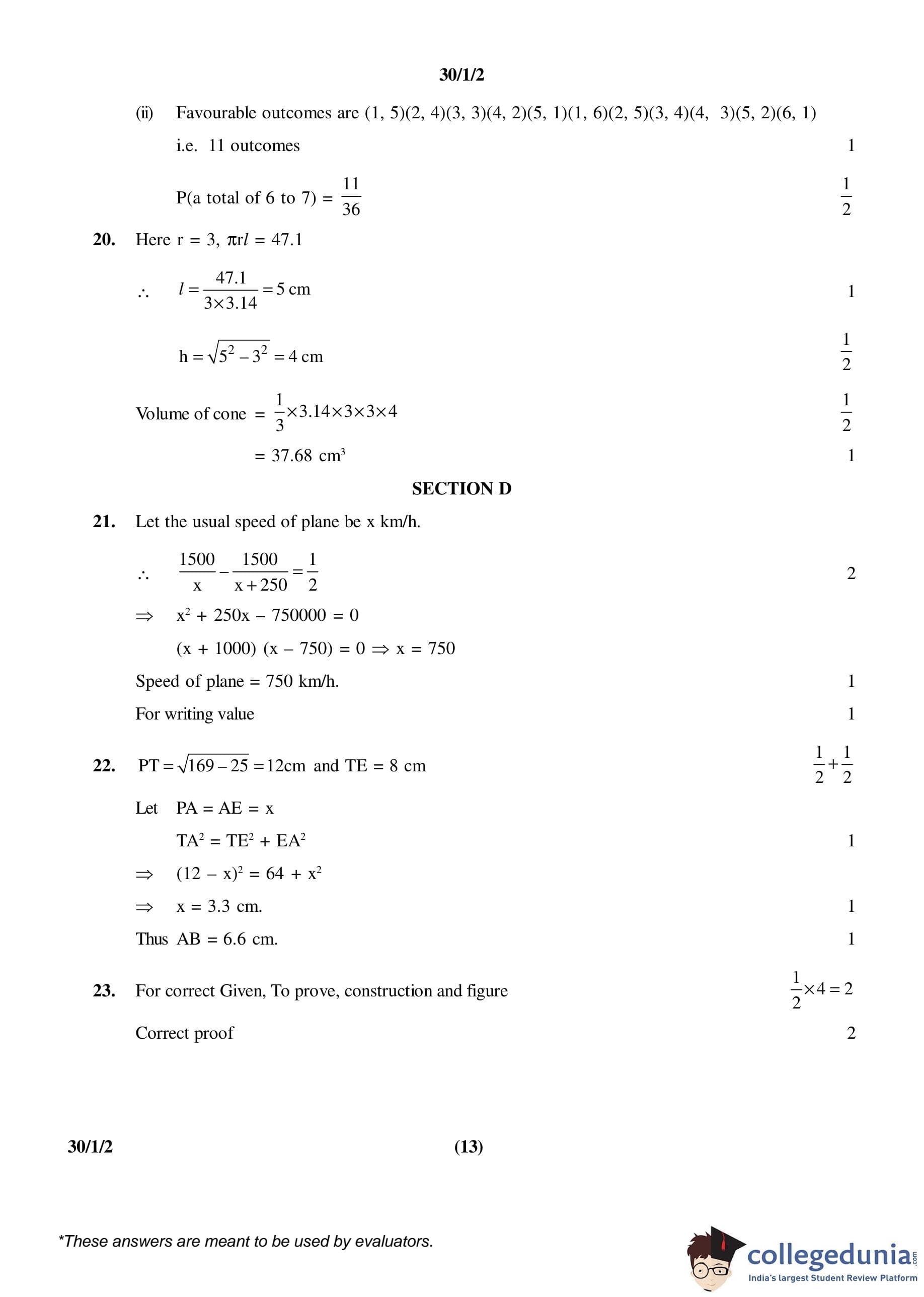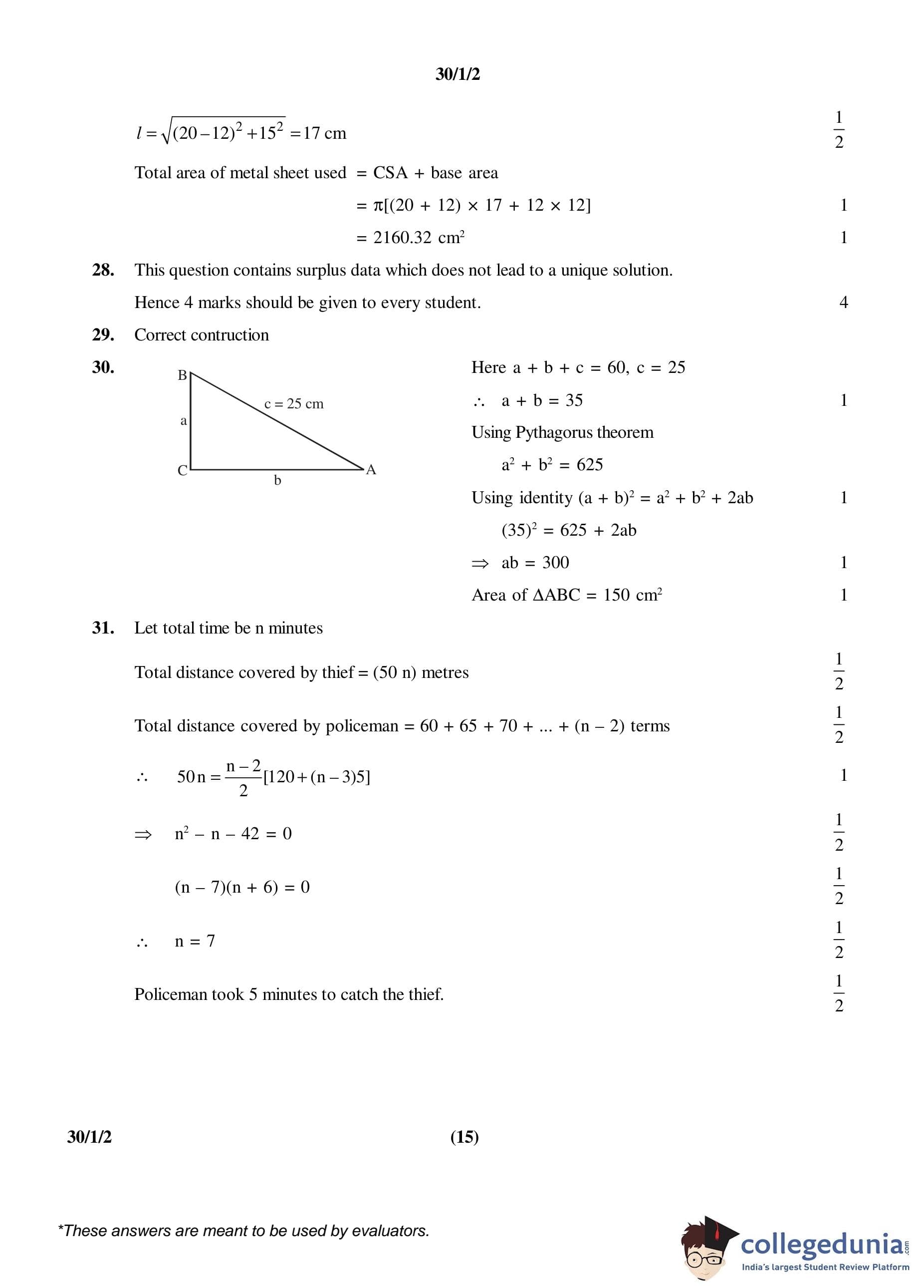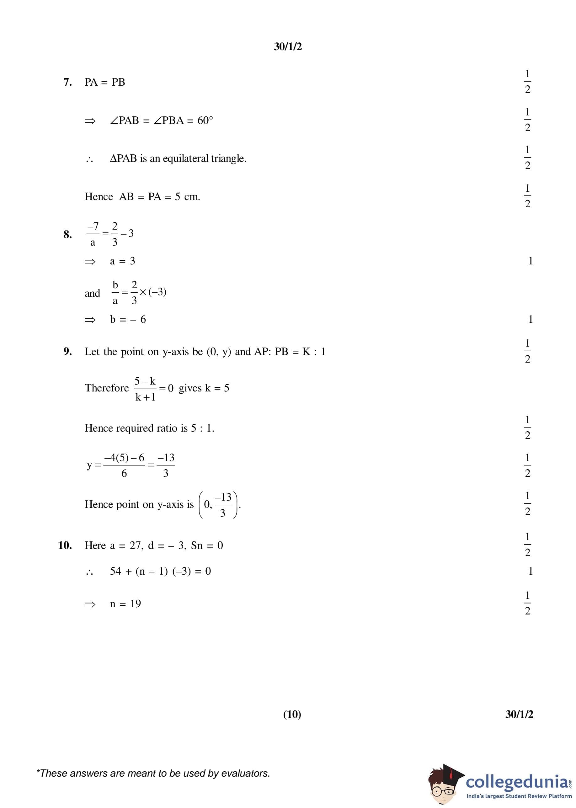 CBSE Class 10 Mathematics Set 2- 30/1/2 Question Paper 2016 with Answer Key (March 19)